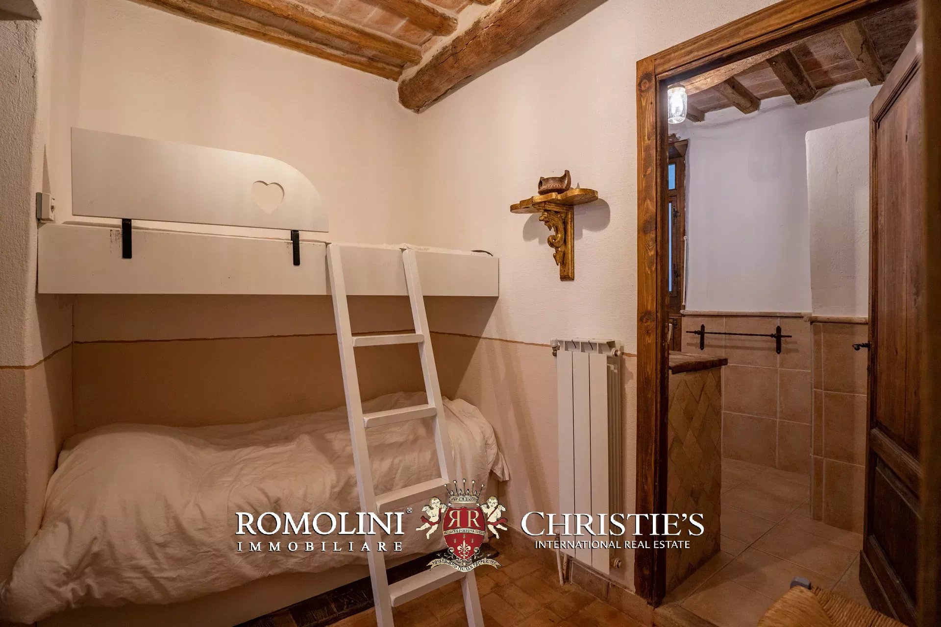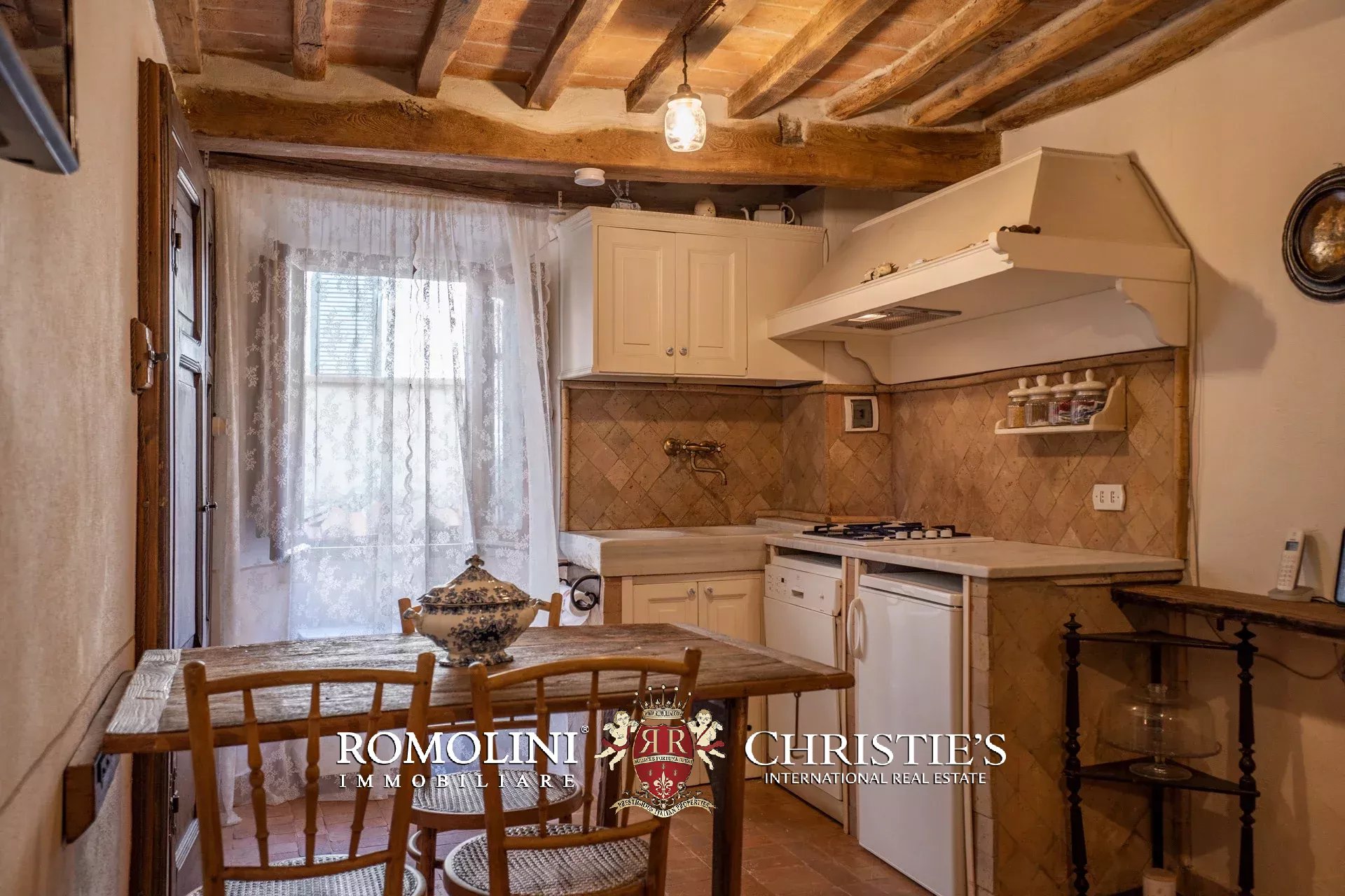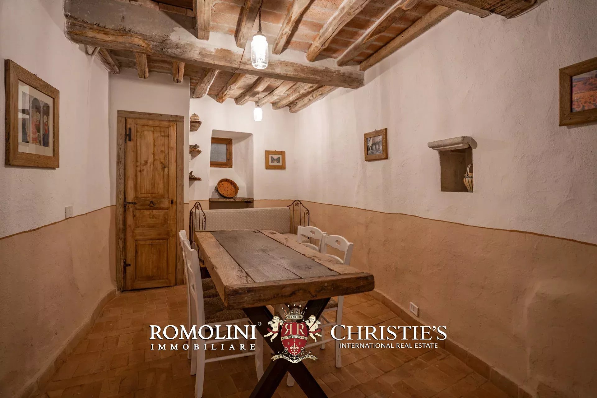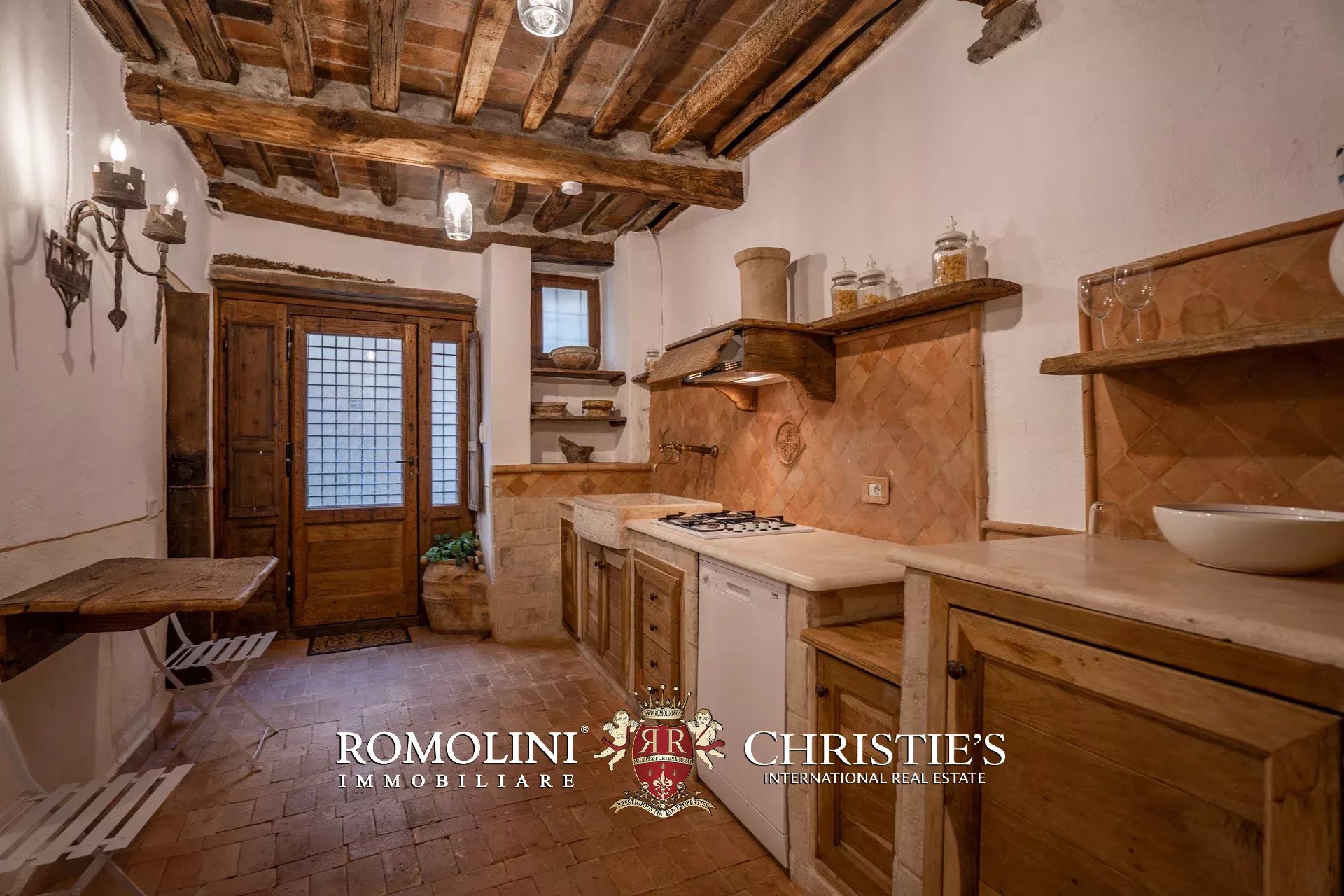 Nel cuore del borgo medievale di Cortona, lungo un vicolo molto scenografico, cieloterra rustico in vendita. L’abitazione (207 m²) si articola su tre piani e la distribuzione interna permetterebbe anche di dividere l’edificio in tre unità immobiliare separate da affittare. Le stanze sono tutte caratterizzate da finiture in linea con lo stile rustico dell’edificio e includono elementi originali quali un’acquasantiera in pietra, camini, travi in legno e muri in pietra a vista.