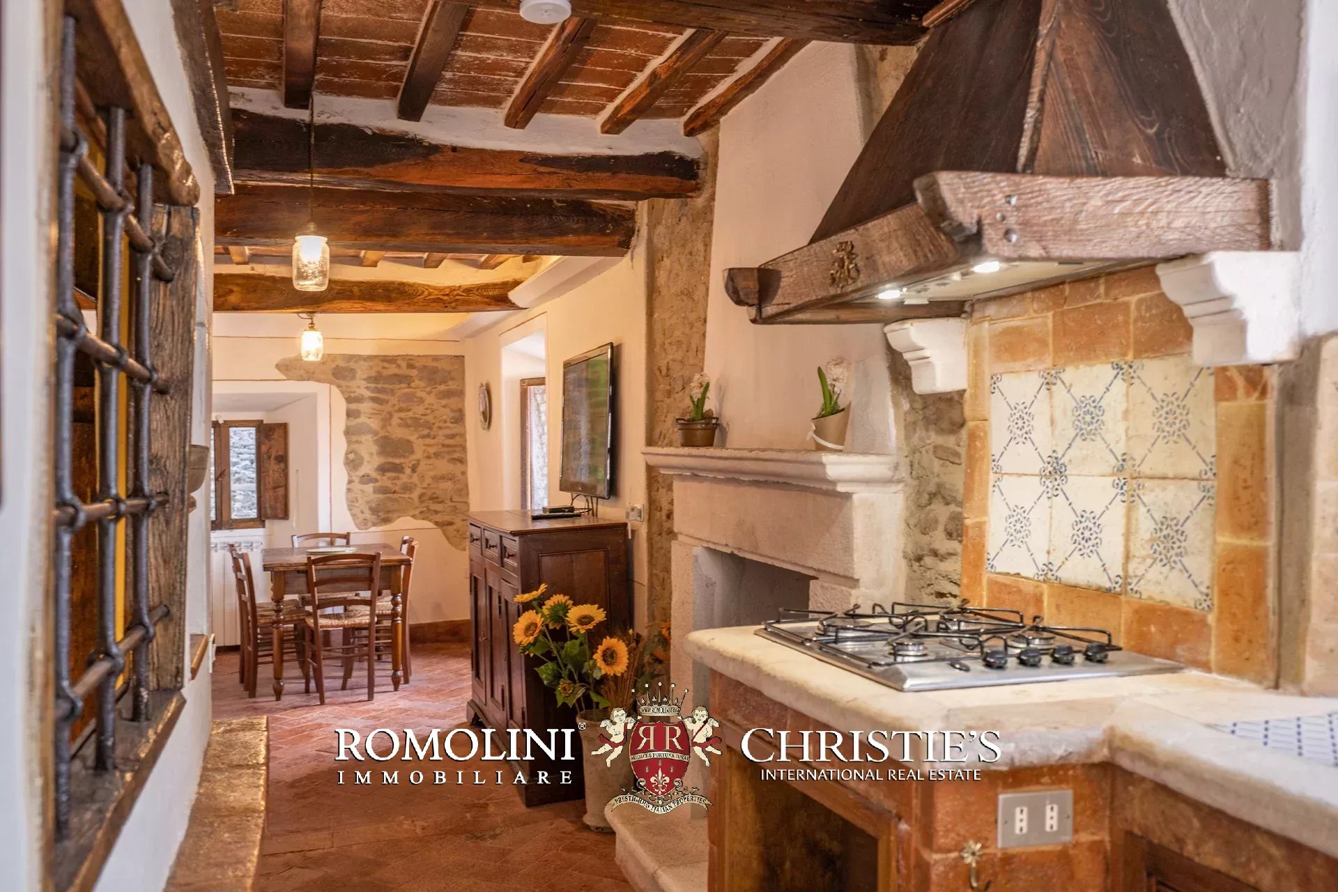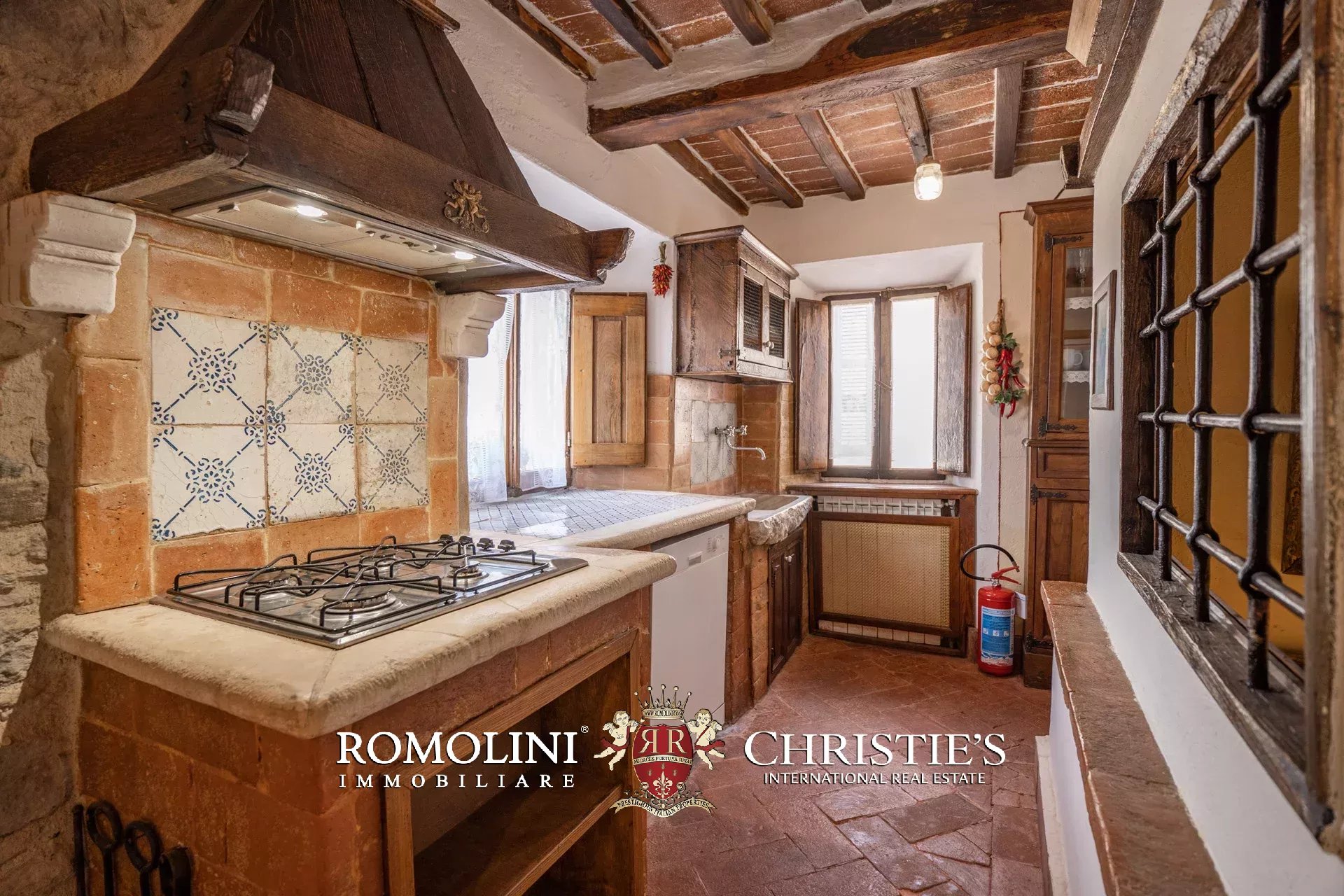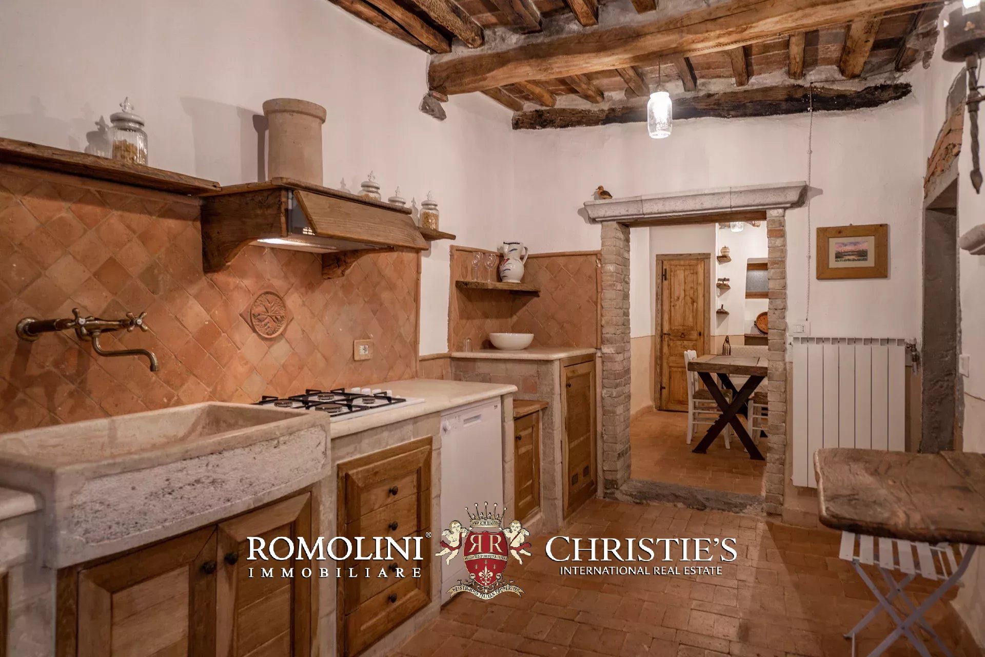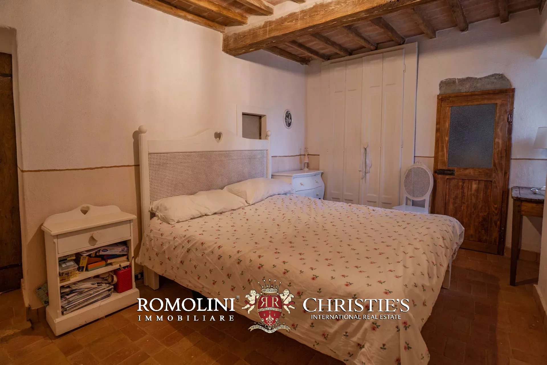 Nel cuore del borgo medievale di Cortona, lungo un vicolo molto scenografico, cieloterra rustico in vendita. L’abitazione (207 m²) si articola su tre piani e la distribuzione interna permetterebbe anche di dividere l’edificio in tre unità immobiliare separate da affittare. Le stanze sono tutte caratterizzate da finiture in linea con lo stile rustico dell’edificio e includono elementi originali quali un’acquasantiera in pietra, camini, travi in legno e muri in pietra a vista.