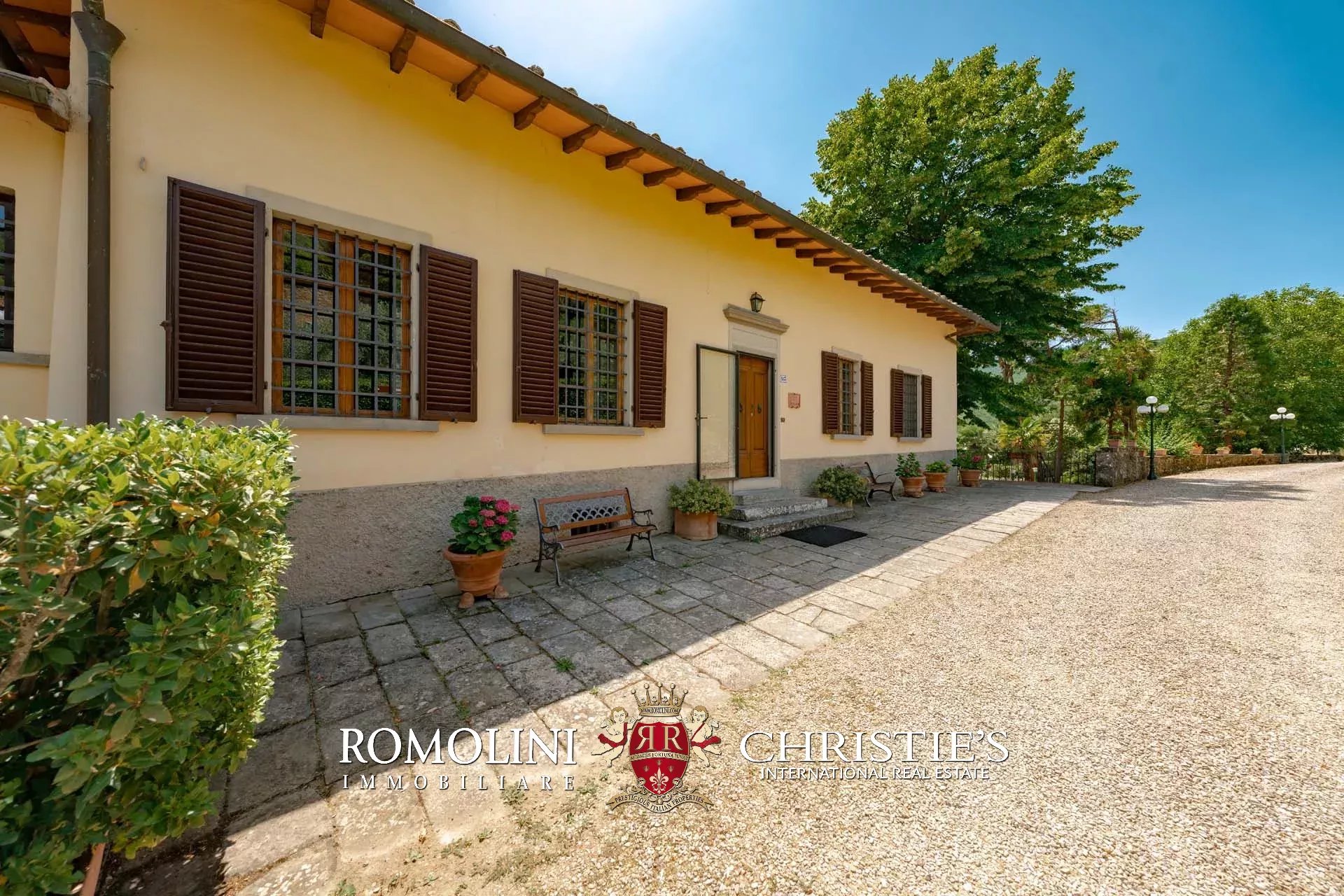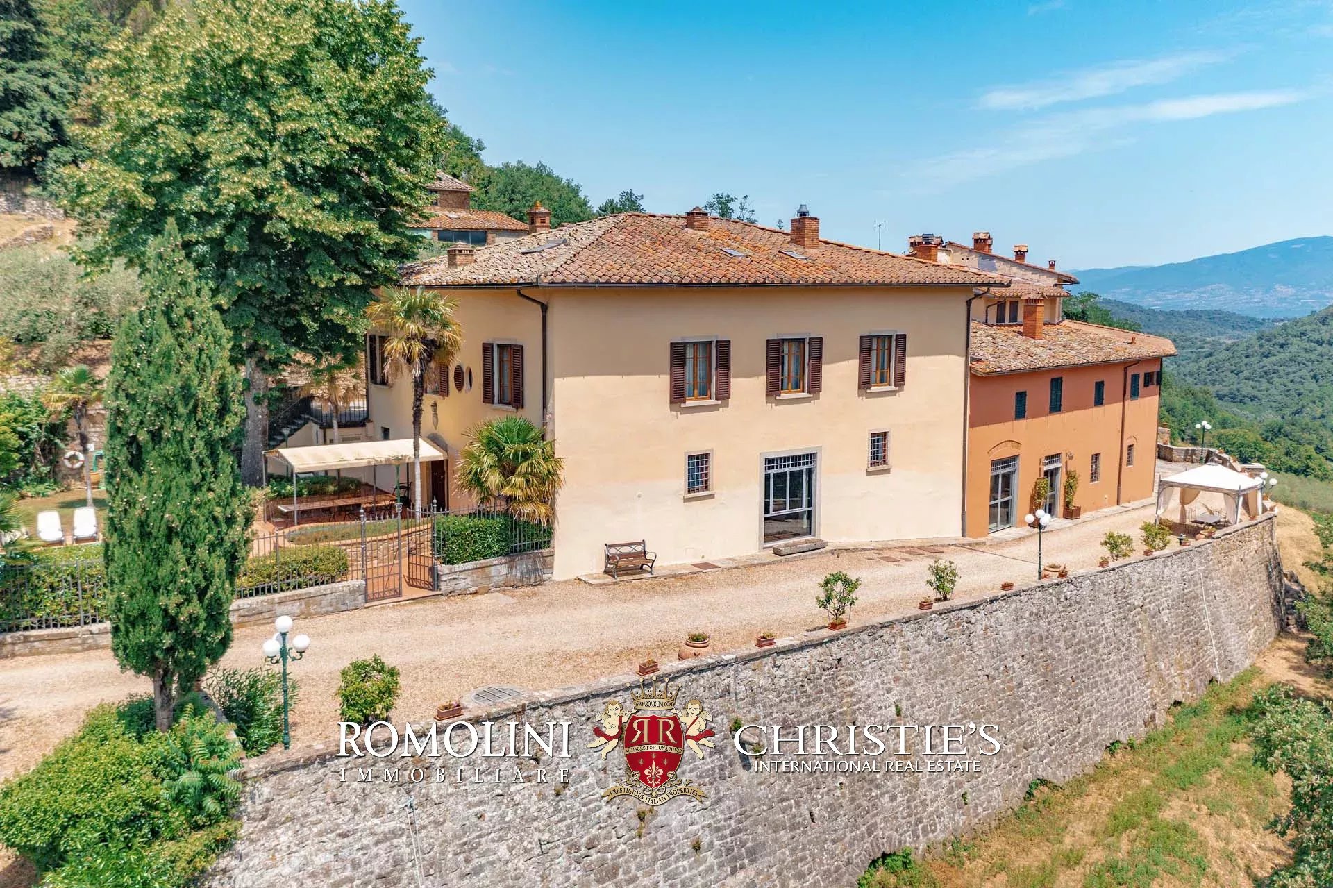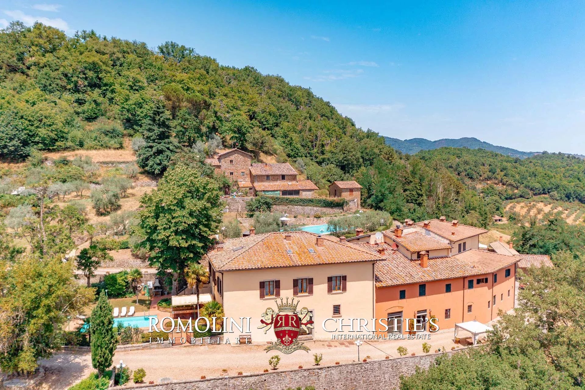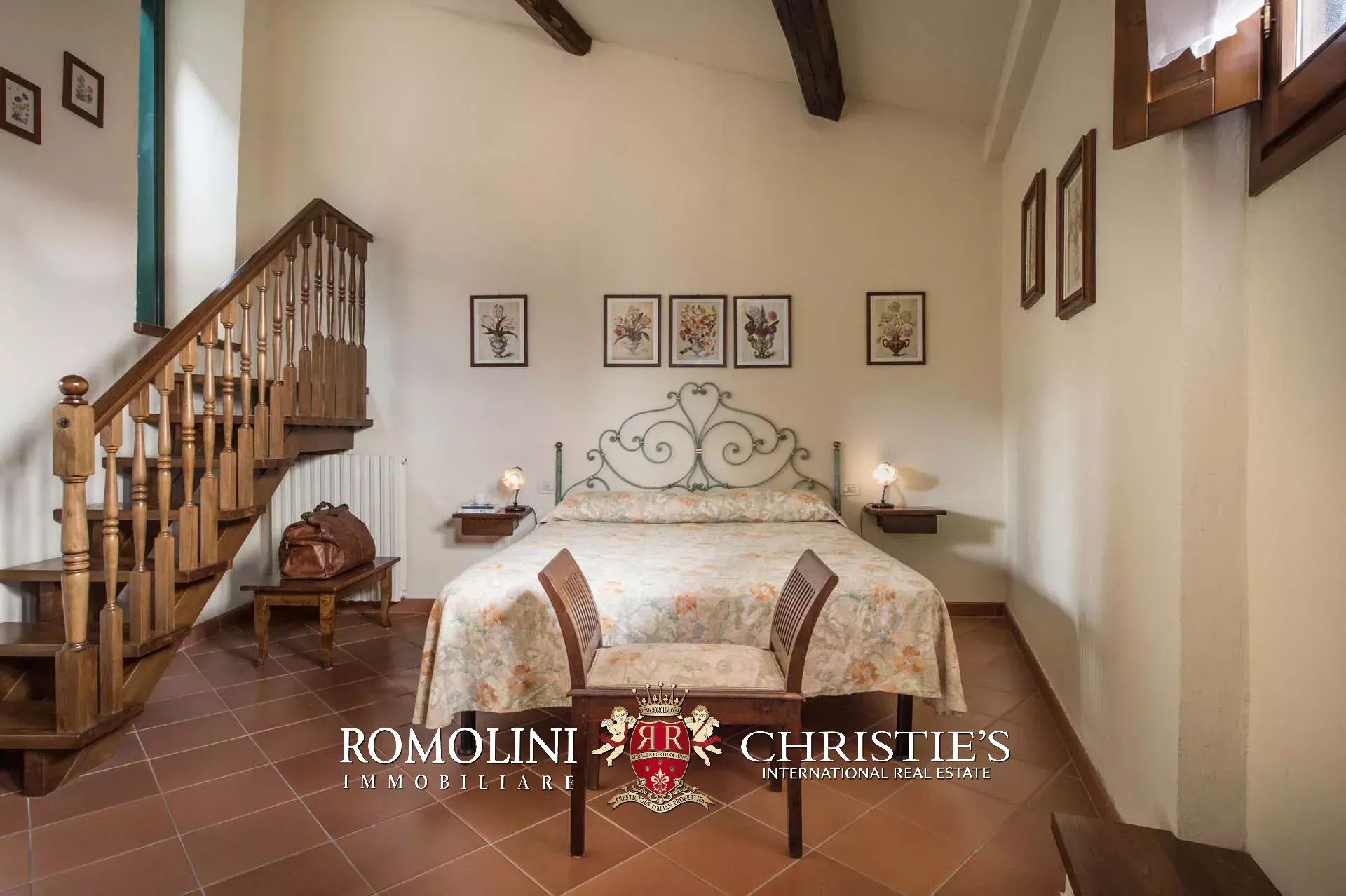 Questa bellissima villa storica si trova sulle colline di Greve, nel cuore del Chianti Classico e a breve distanza da Firenze. La proprietà (quasi 1.700 m²) è costituita da un bellissimo borgo che include una villa padronale del Seicento (4 camere), un agriturismo (12 camere) e una fattoria da ristrutturare, ideale per ampliare l’attività ricettiva o creare una cantina di vinificazione. La tenuta si estende per un totale di 50,1 ettari.