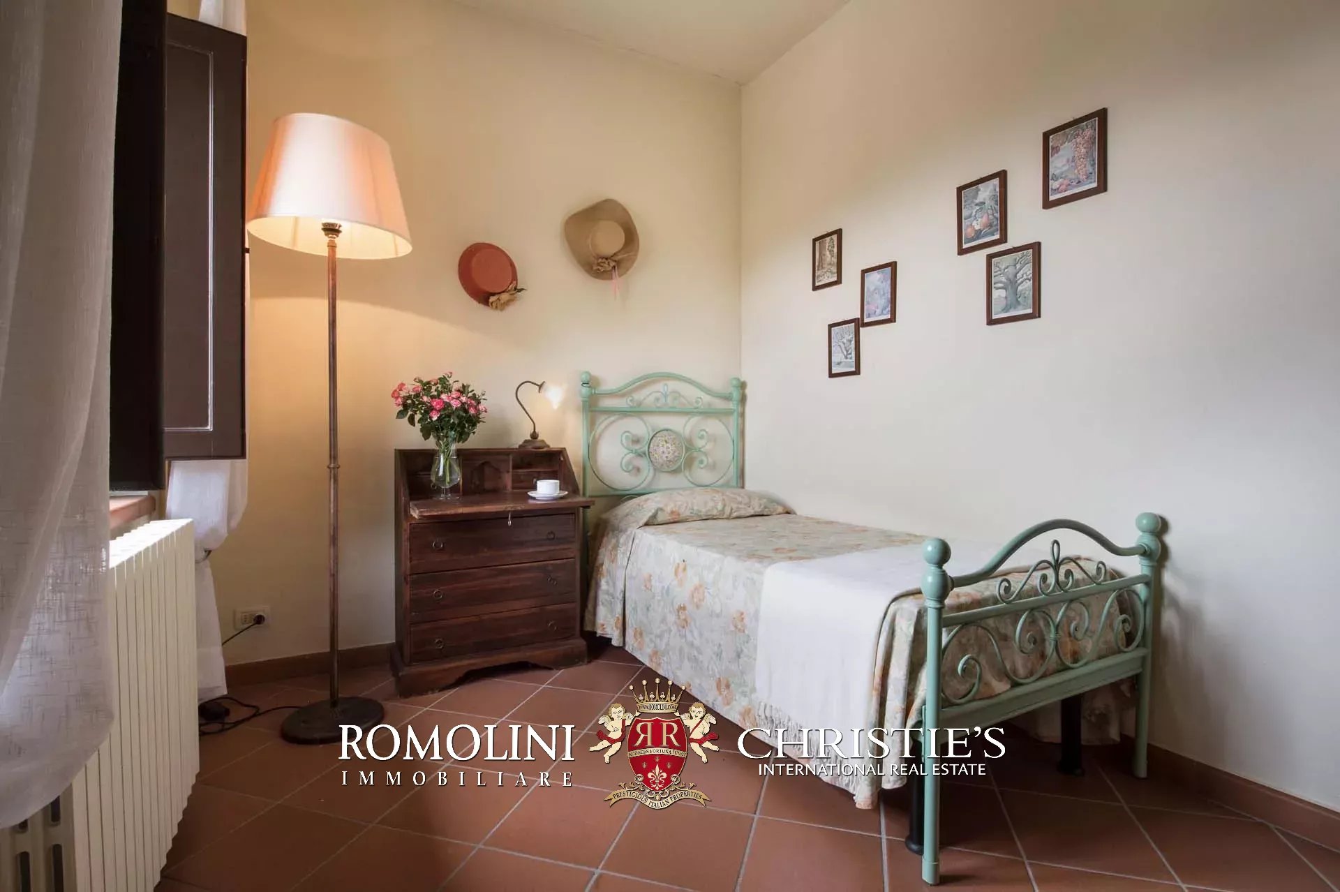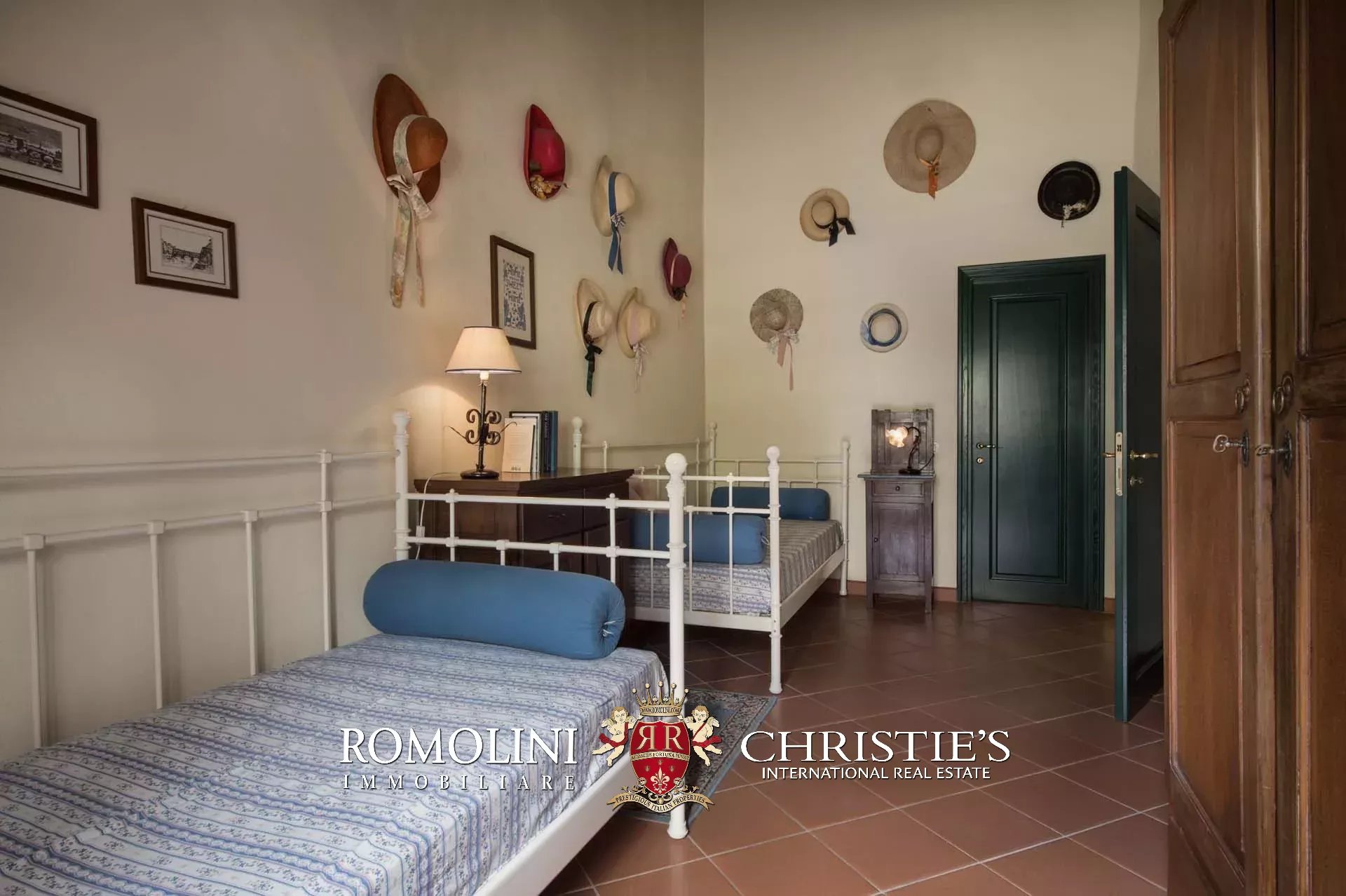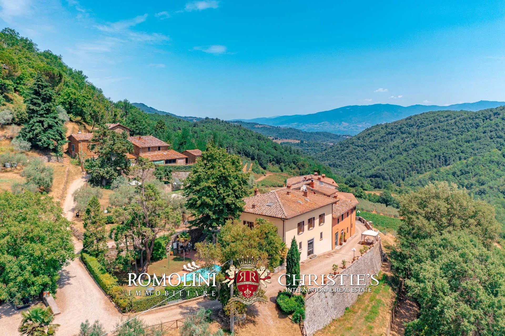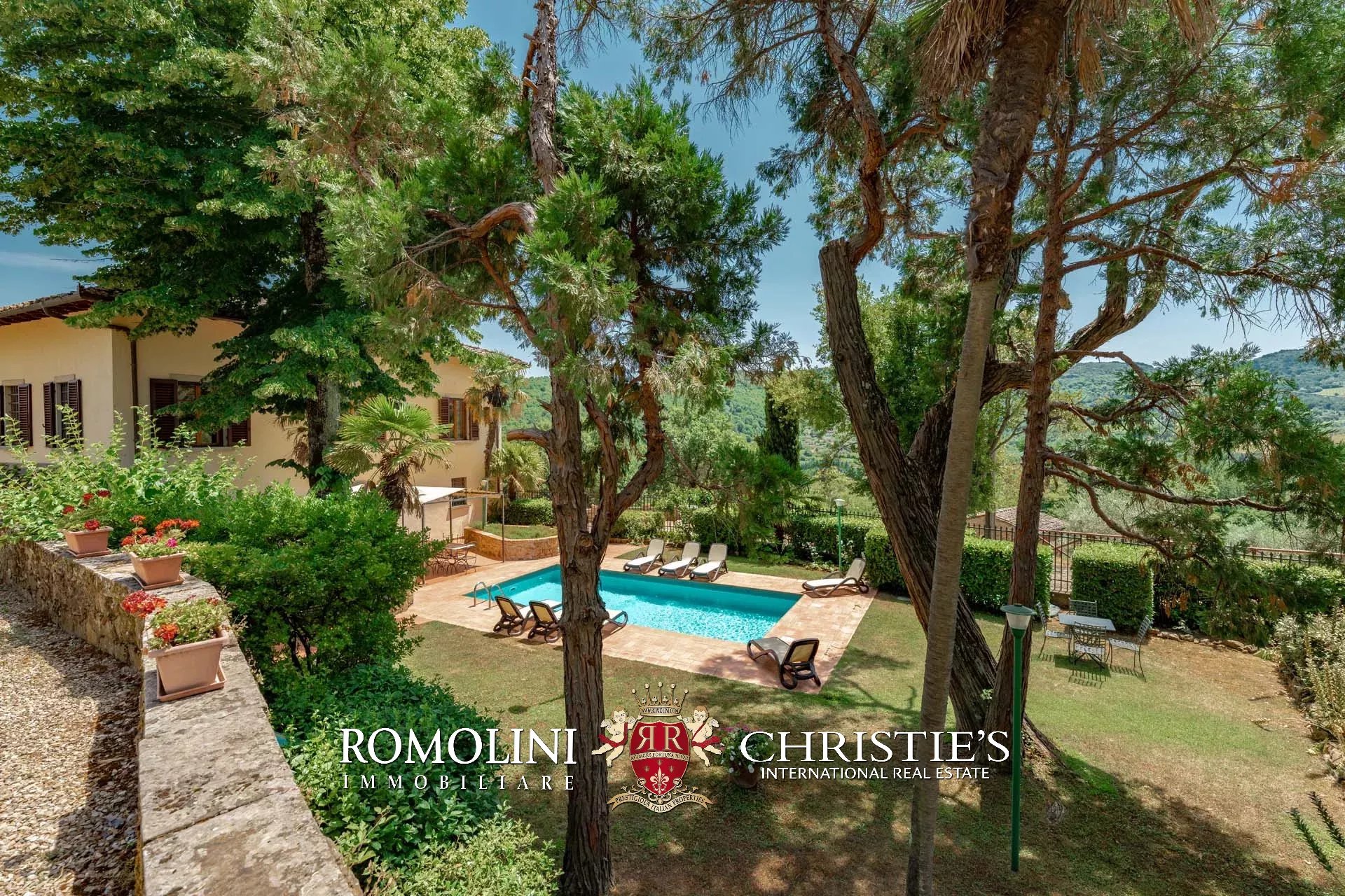 Questa bellissima villa storica si trova sulle colline di Greve, nel cuore del Chianti Classico e a breve distanza da Firenze. La proprietà (quasi 1.700 m²) è costituita da un bellissimo borgo che include una villa padronale del Seicento (4 camere), un agriturismo (12 camere) e una fattoria da ristrutturare, ideale per ampliare l’attività ricettiva o creare una cantina di vinificazione. La tenuta si estende per un totale di 50,1 ettari.