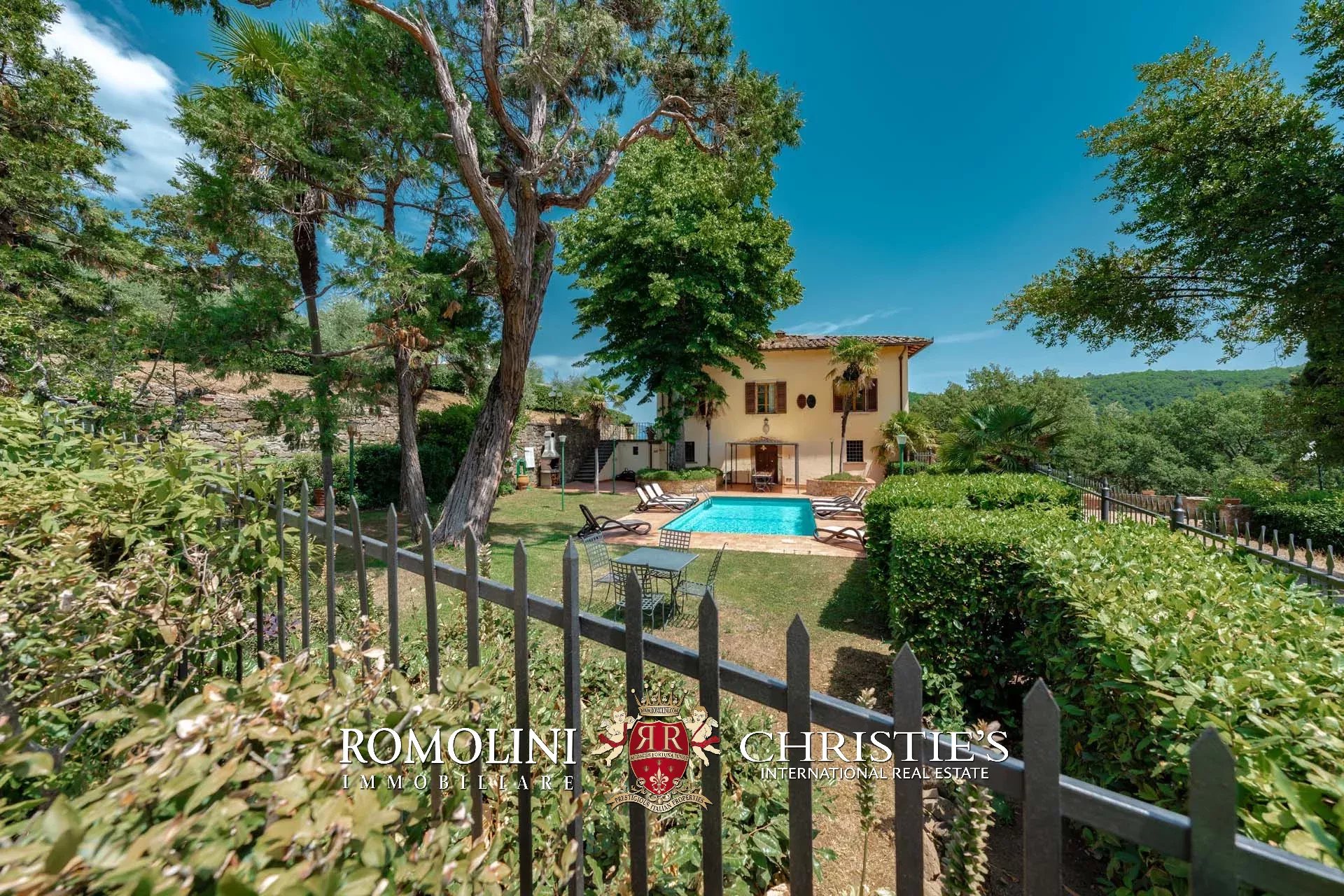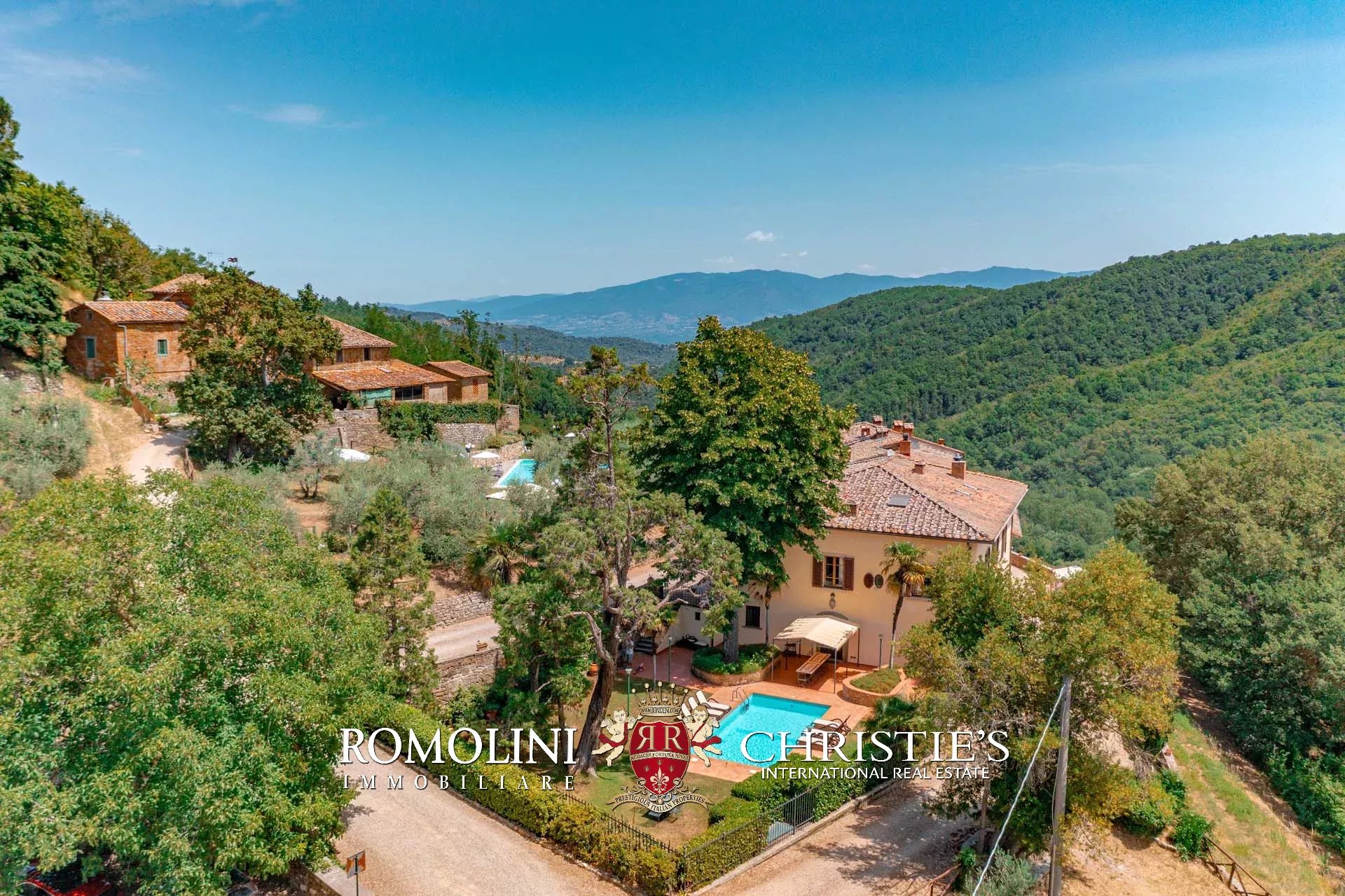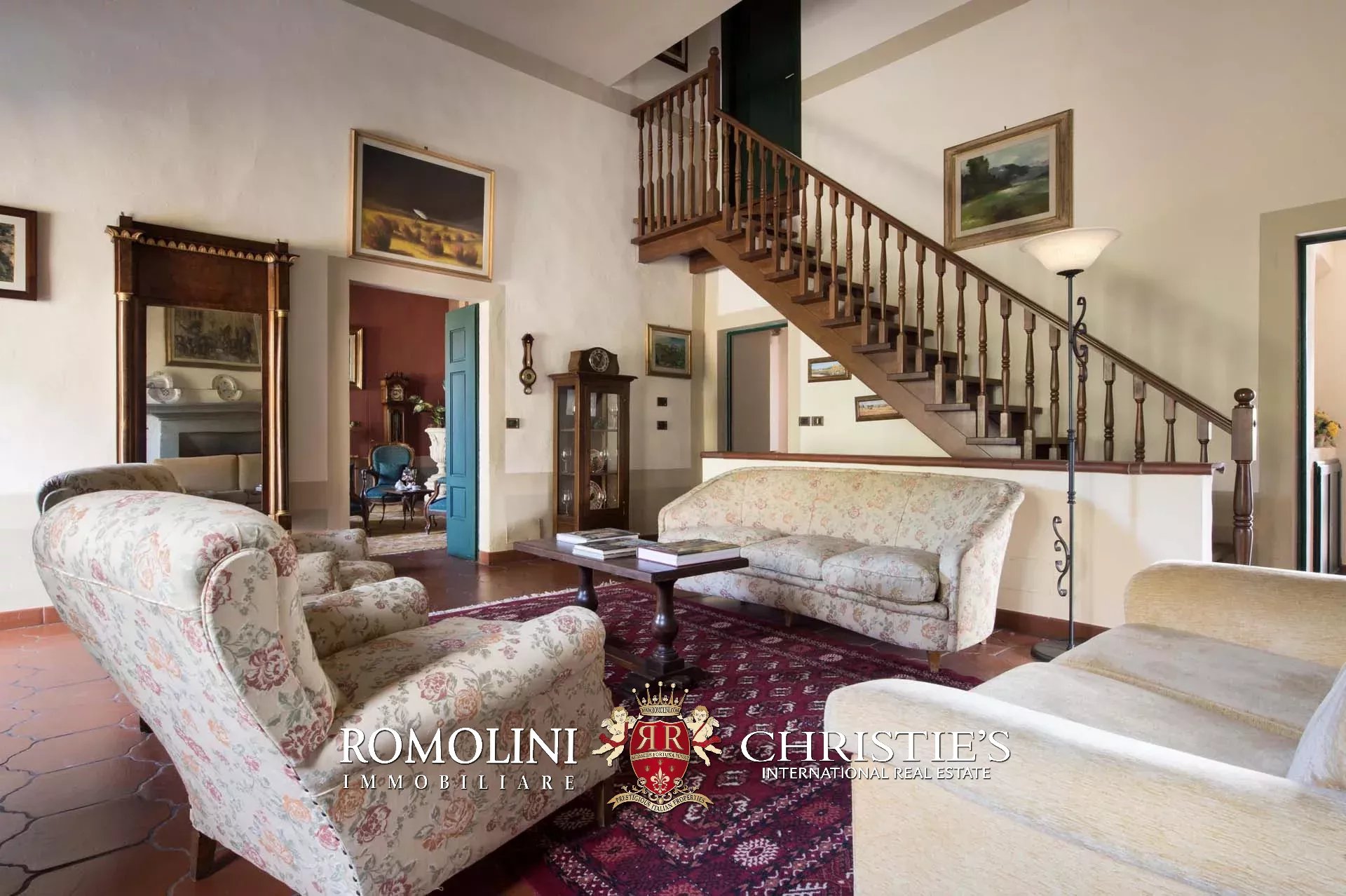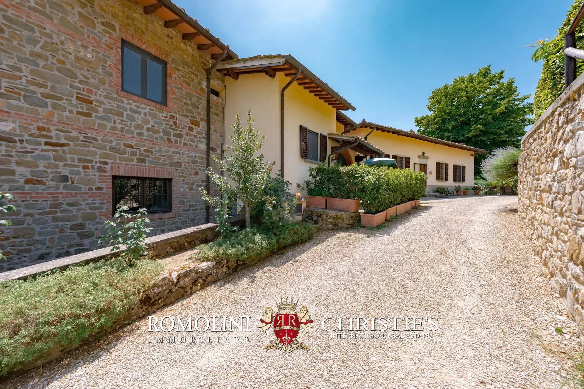 Questa bellissima villa storica si trova sulle colline di Greve, nel cuore del Chianti Classico e a breve distanza da Firenze. La proprietà (quasi 1.700 m²) è costituita da un bellissimo borgo che include una villa padronale del Seicento (4 camere), un agriturismo (12 camere) e una fattoria da ristrutturare, ideale per ampliare l’attività ricettiva o creare una cantina di vinificazione. La tenuta si estende per un totale di 50,1 ettari.