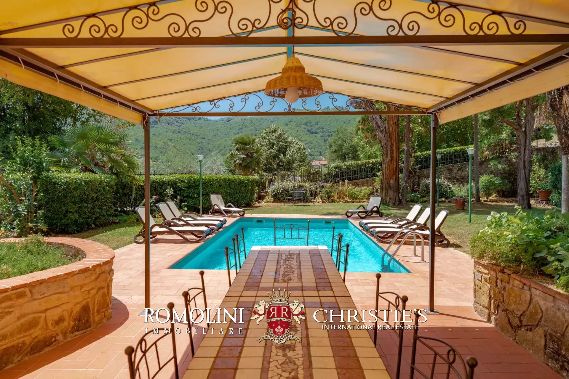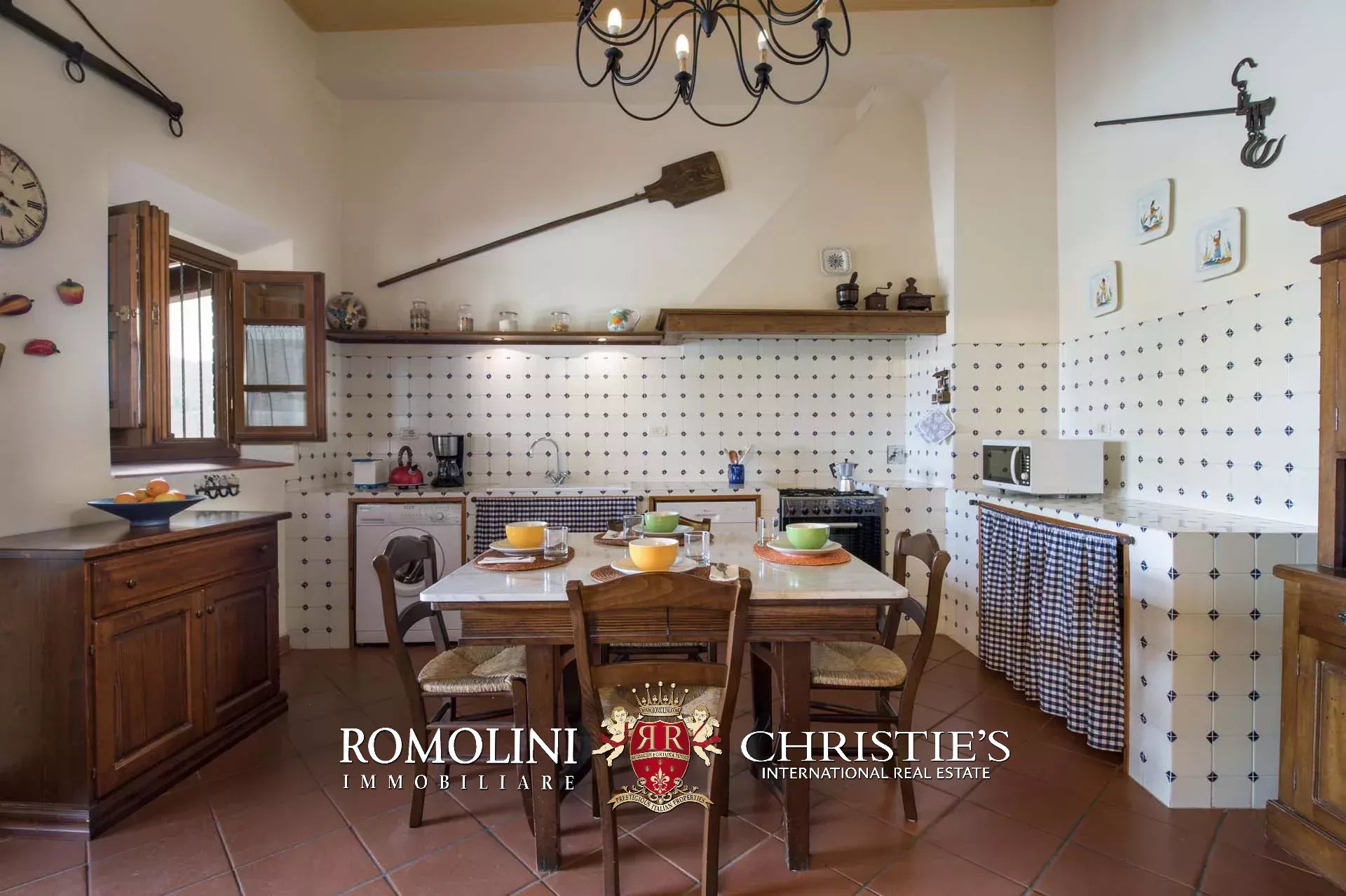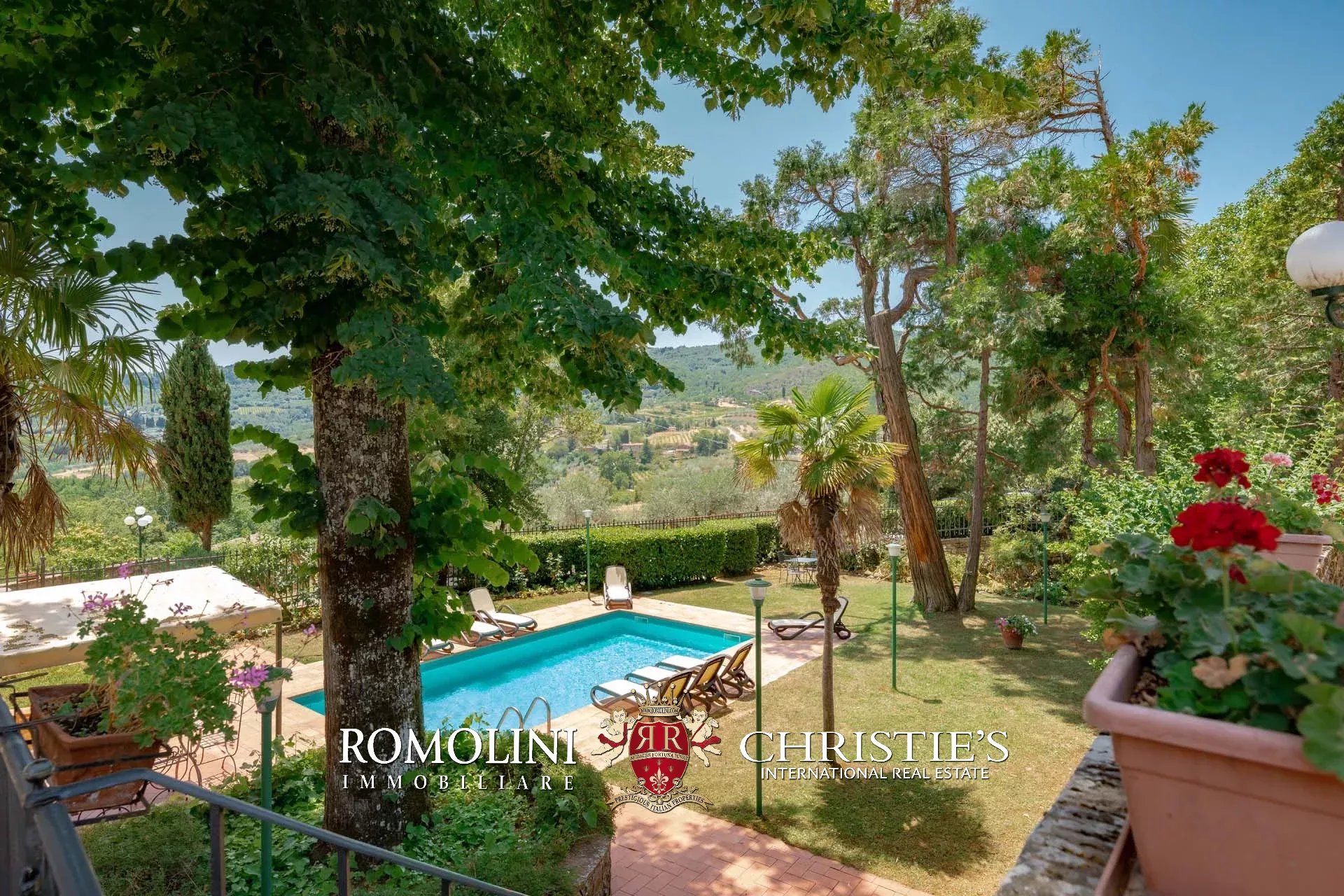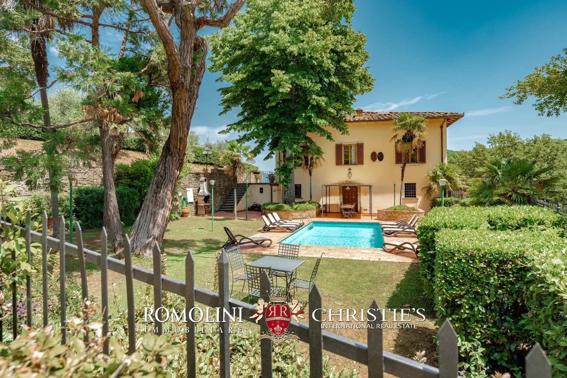Questa bellissima villa storica si trova sulle colline di Greve, nel cuore del Chianti Classico e a breve distanza da Firenze. La proprietà (quasi 1.700 m²) è costituita da un bellissimo borgo che include una villa padronale del Seicento (4 camere), un agriturismo (12 camere) e una fattoria da ristrutturare, ideale per ampliare l’attività ricettiva o creare una cantina di vinificazione. La tenuta si estende per un totale di 50,1 ettari.