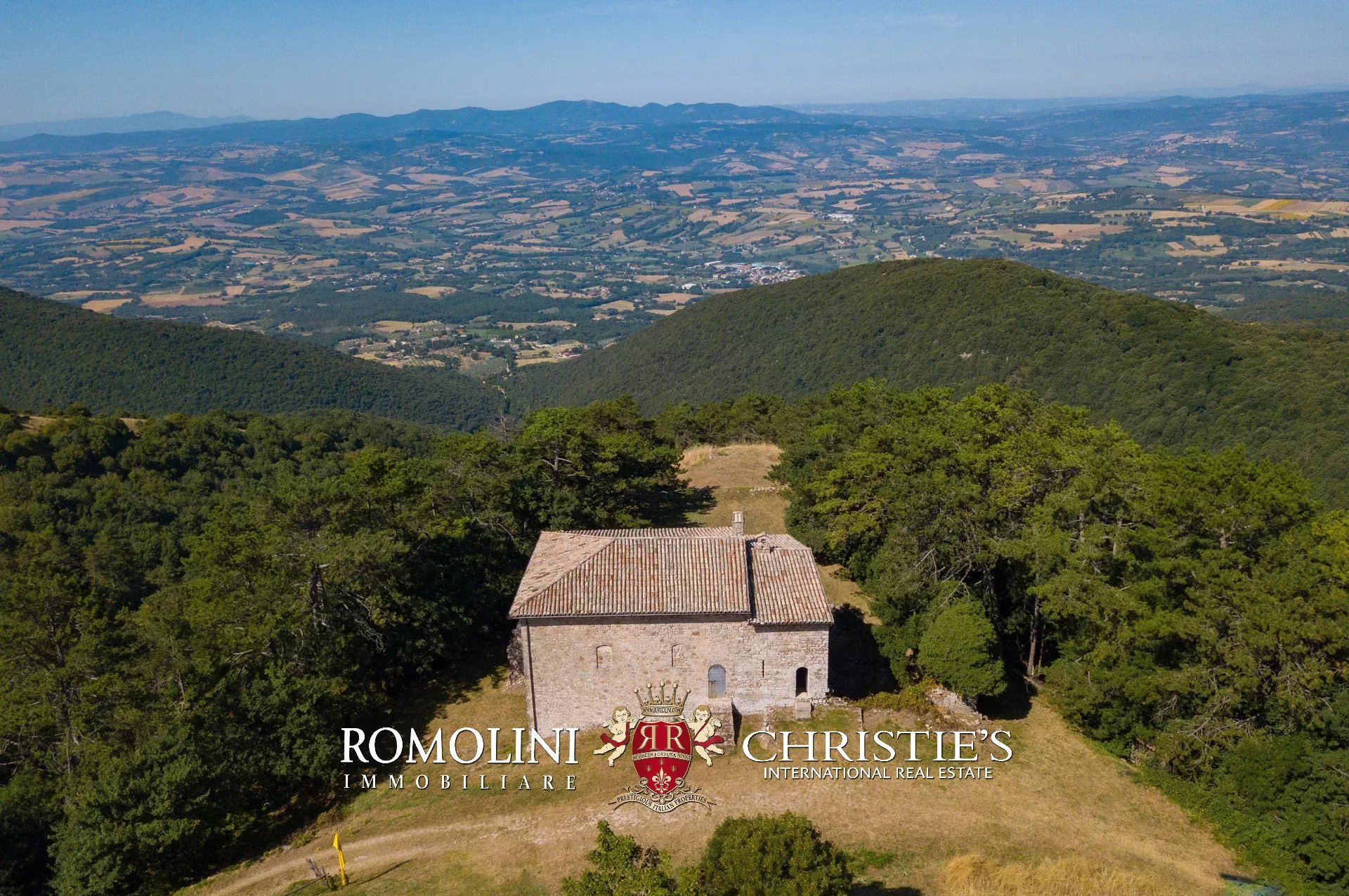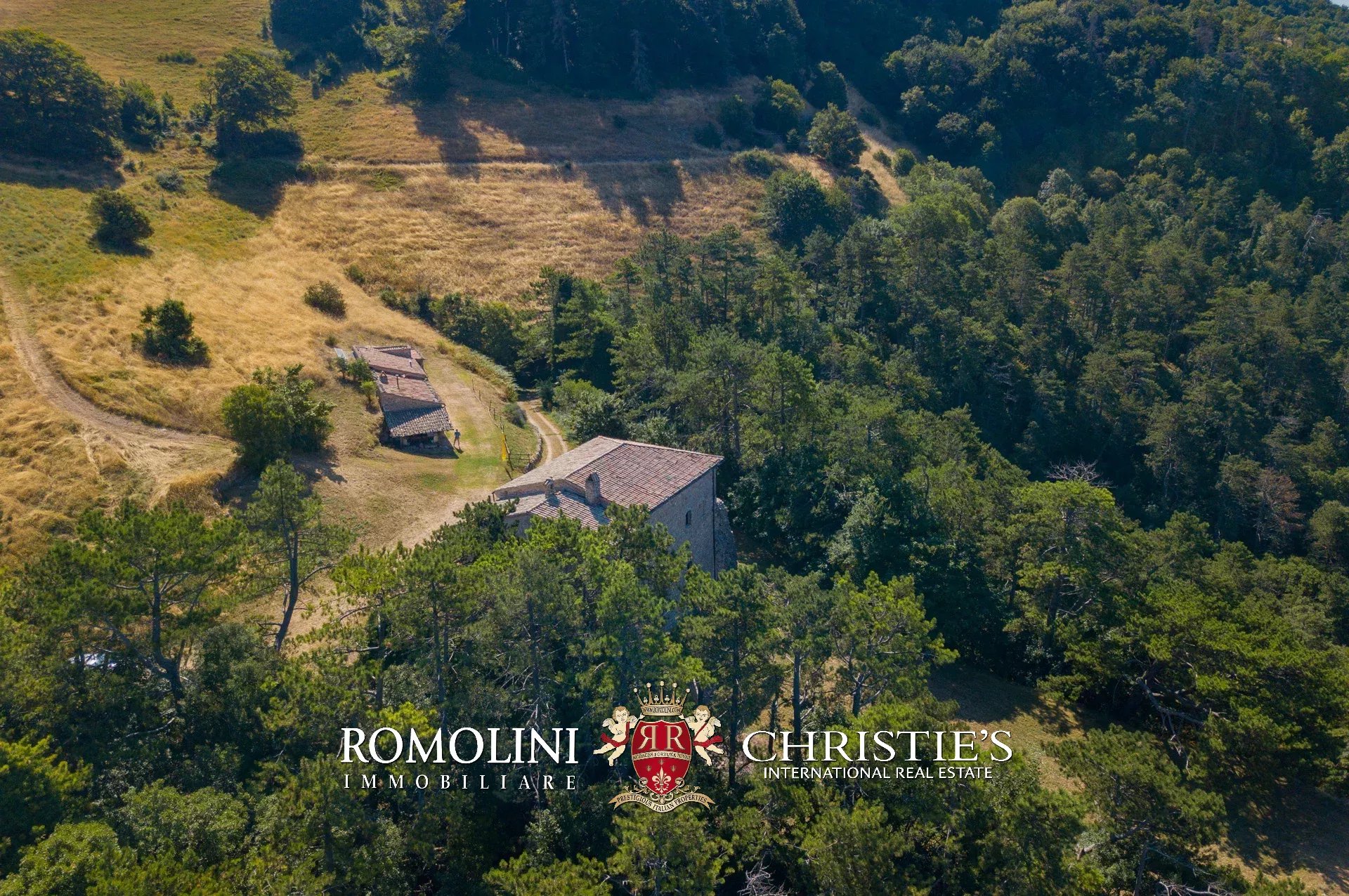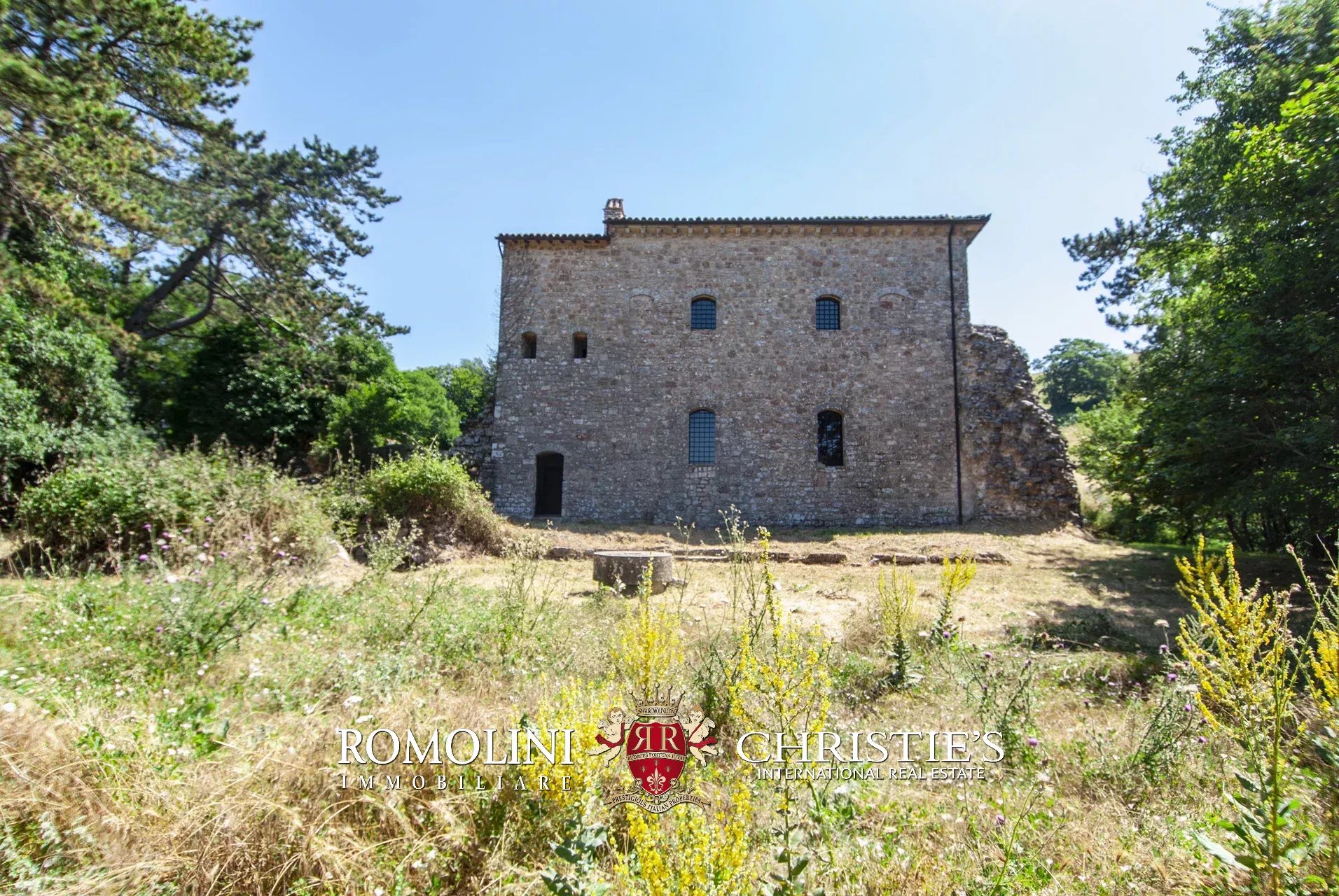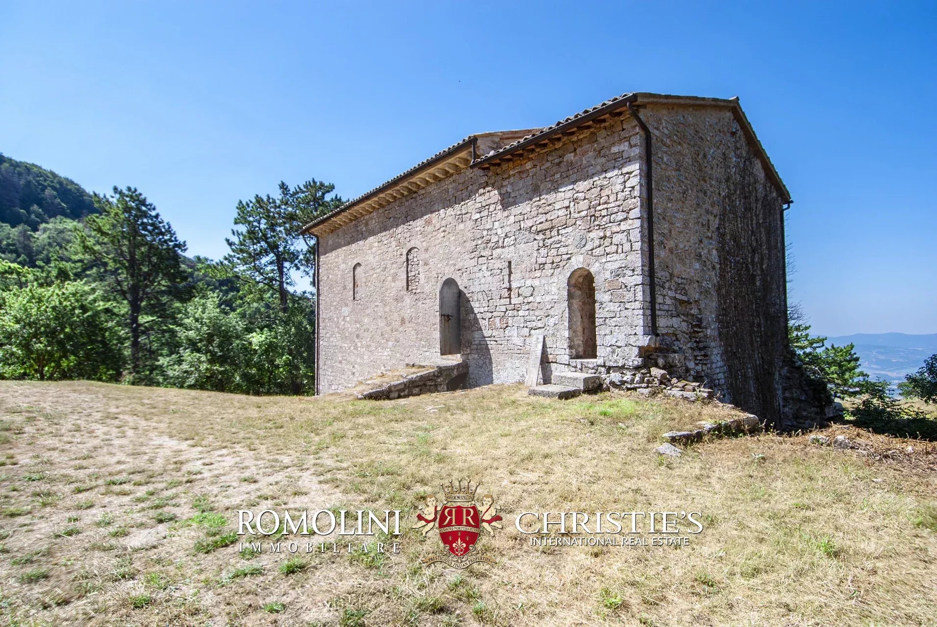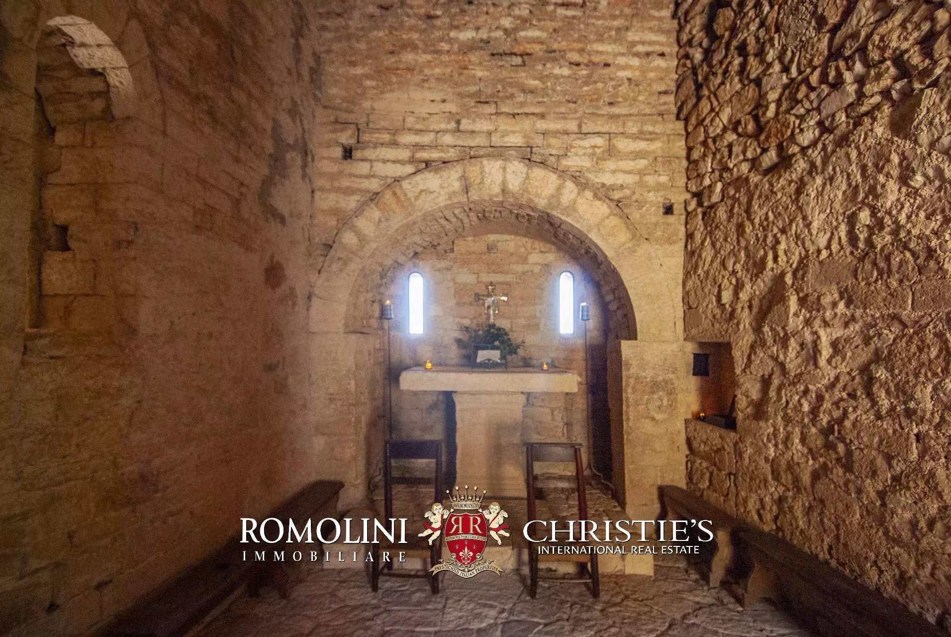 In posizione molto privata e panoramica nel cuore dell’Umbria, sulle colline che guardano la Val Todina, antica pieve ristrutturata in vendita. L’edificio principale è una chiesa dell’XI secolo (unica parte rimanente di una più grande abbazia) mentre l’abitazione vera e propria è un edificio in pietra su un solo piano a breve distanza dal precedente. La grande privacy è assicurata da oltre 230 ha di terra boschiva che assicurano pace e tranquillità.