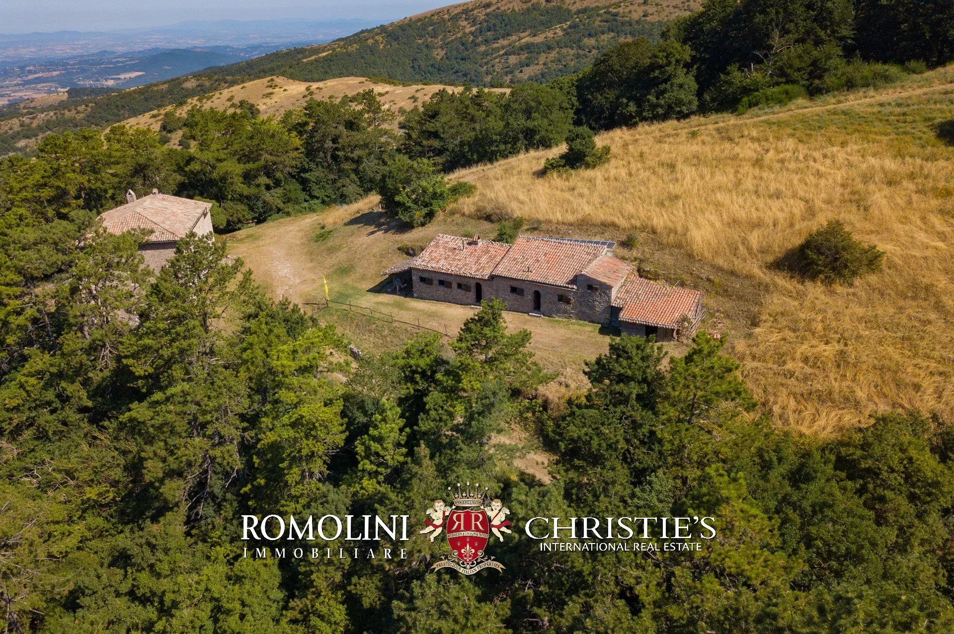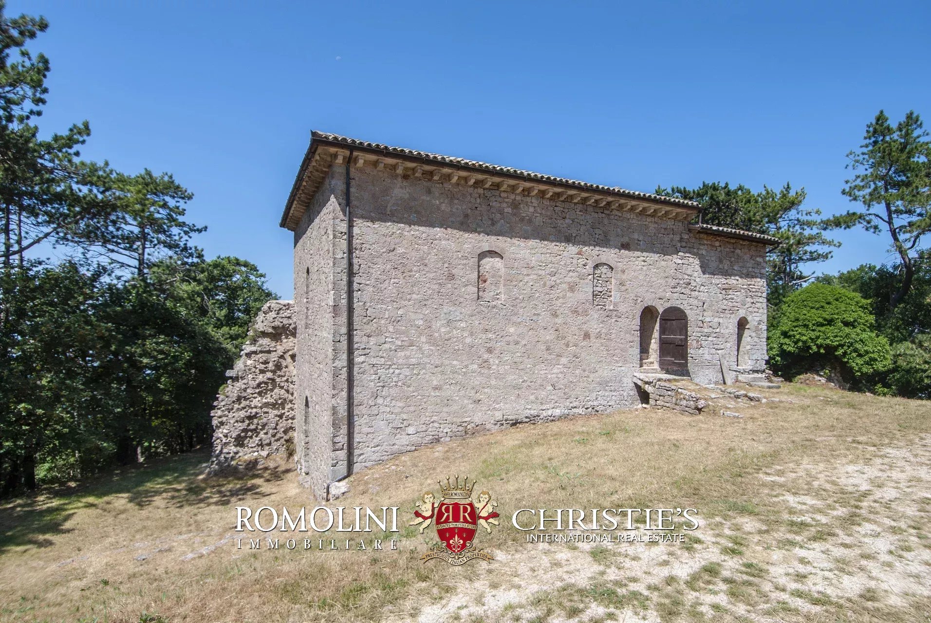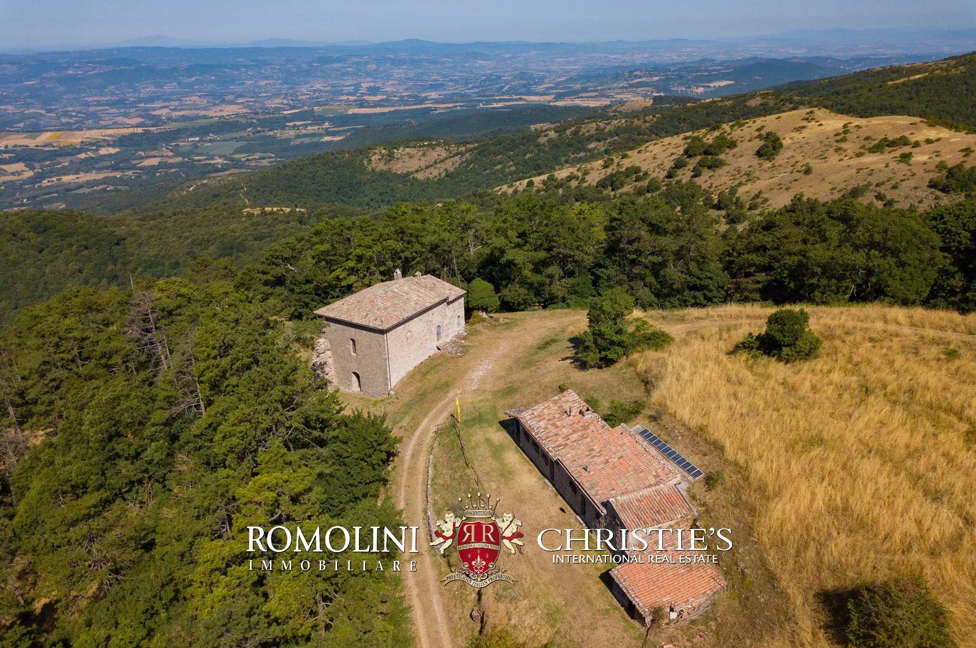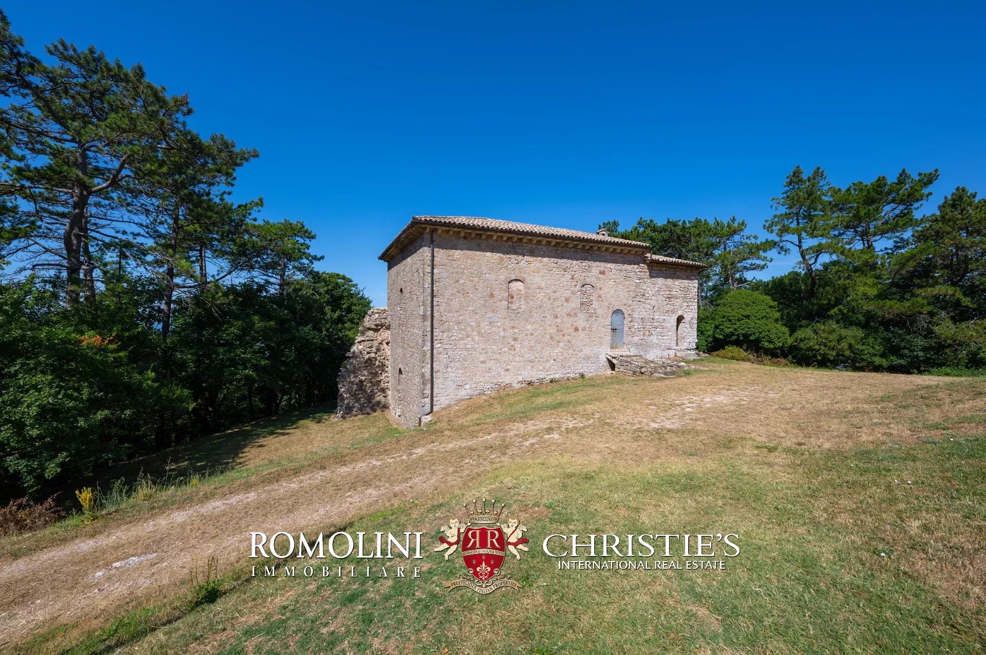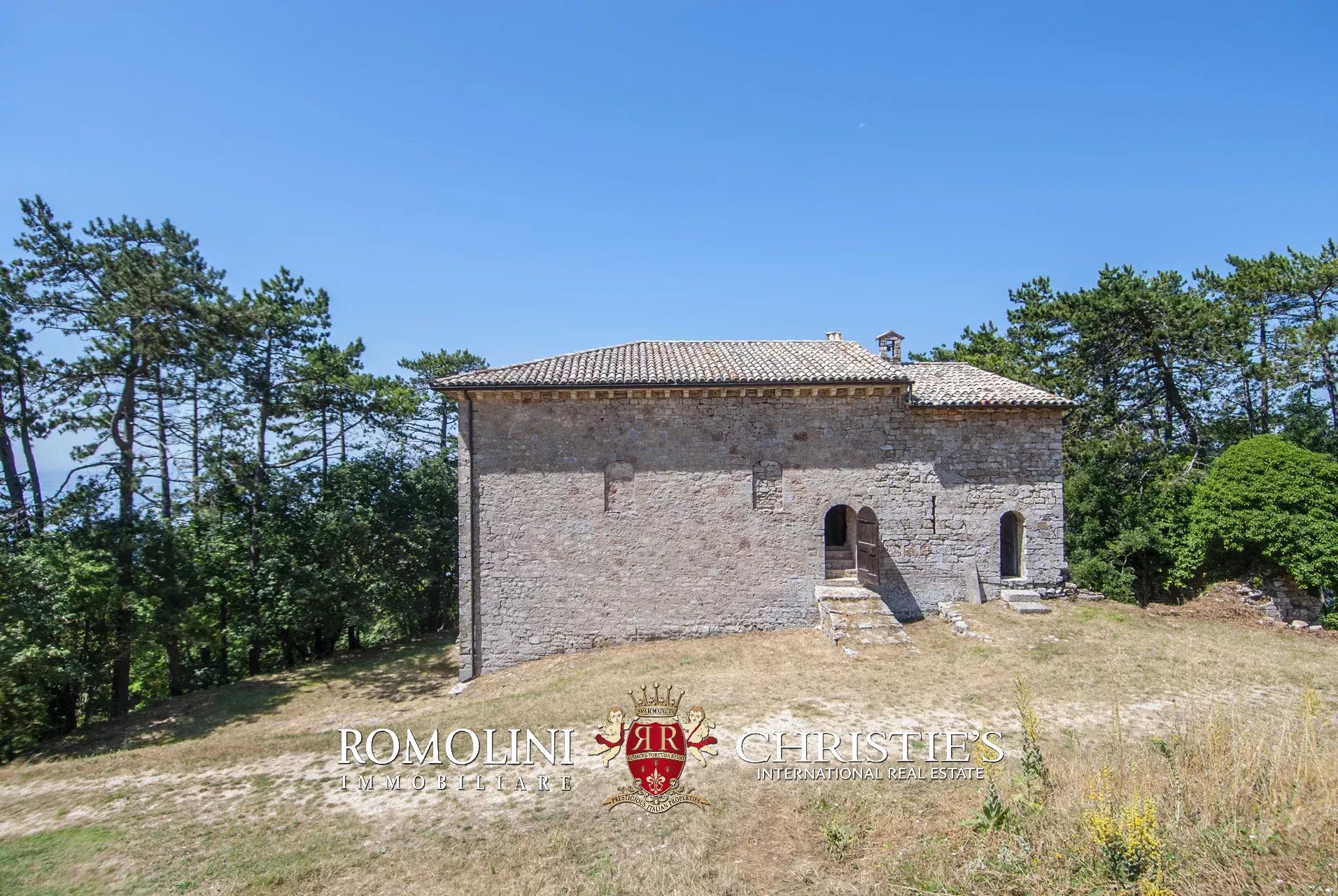 In posizione molto privata e panoramica nel cuore dell’Umbria, sulle colline che guardano la Val Todina, antica pieve ristrutturata in vendita. L’edificio principale è una chiesa dell’XI secolo (unica parte rimanente di una più grande abbazia) mentre l’abitazione vera e propria è un edificio in pietra su un solo piano a breve distanza dal precedente. La grande privacy è assicurata da oltre 230 ha di terra boschiva che assicurano pace e tranquillità.