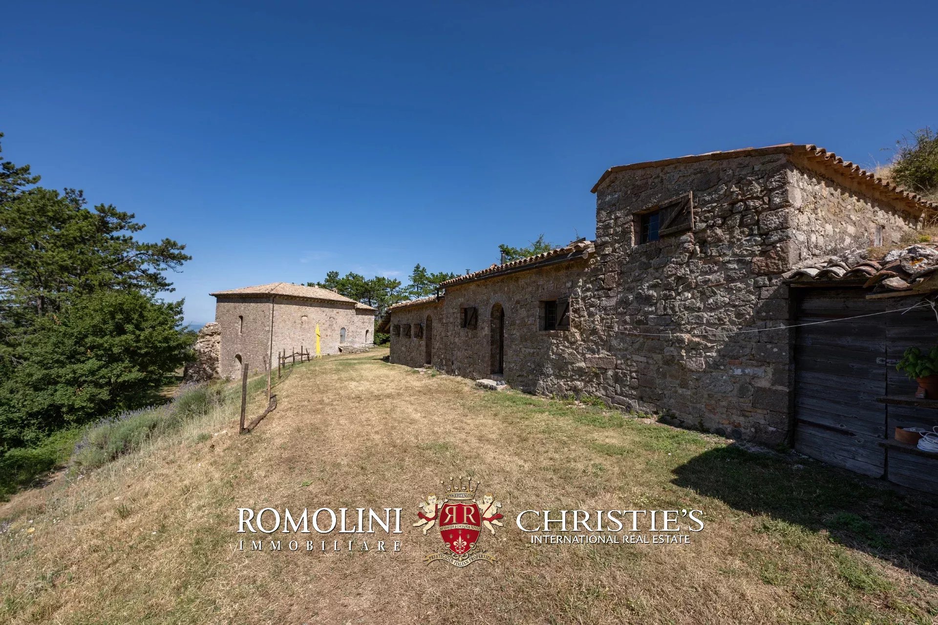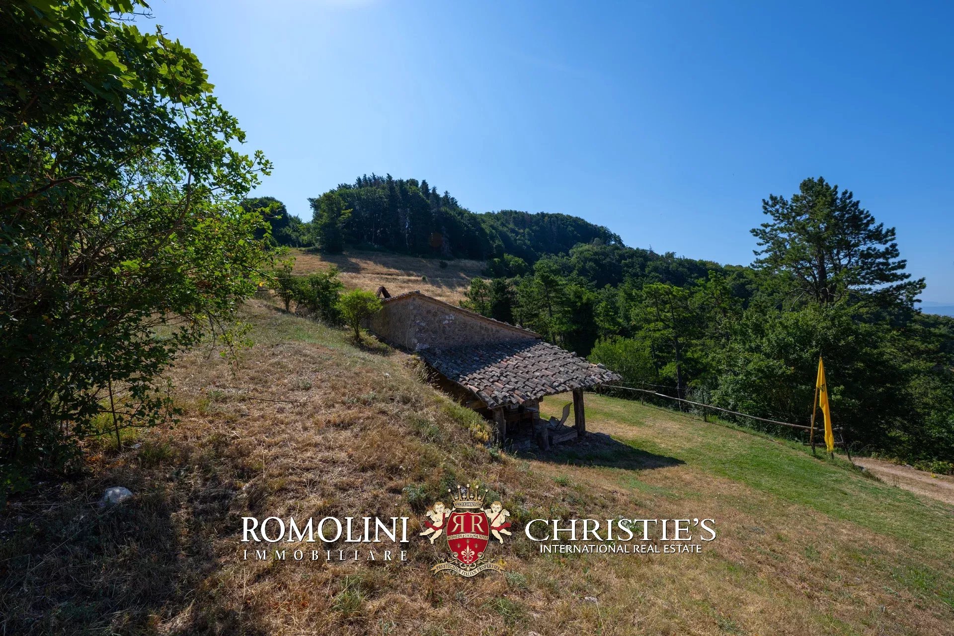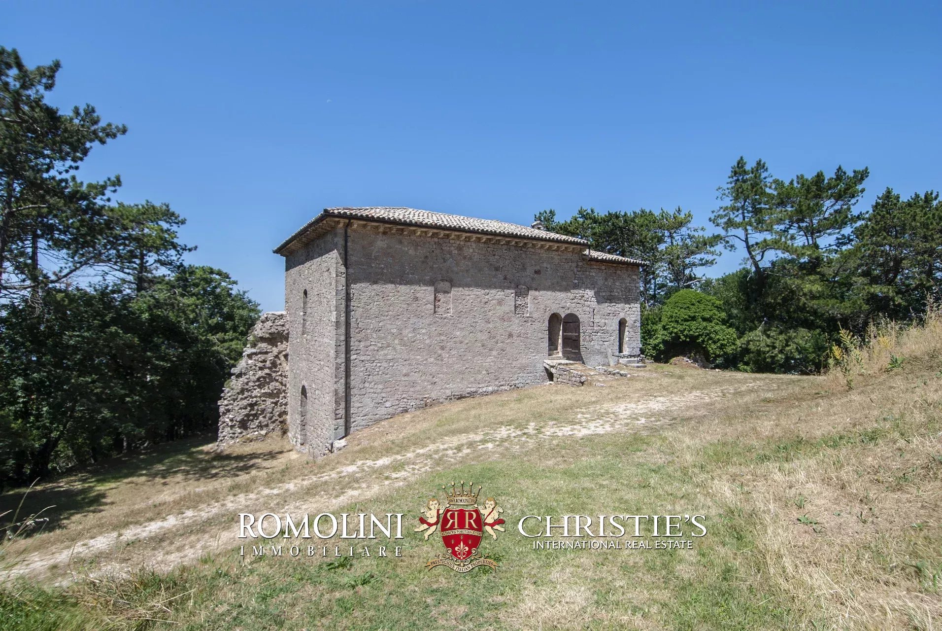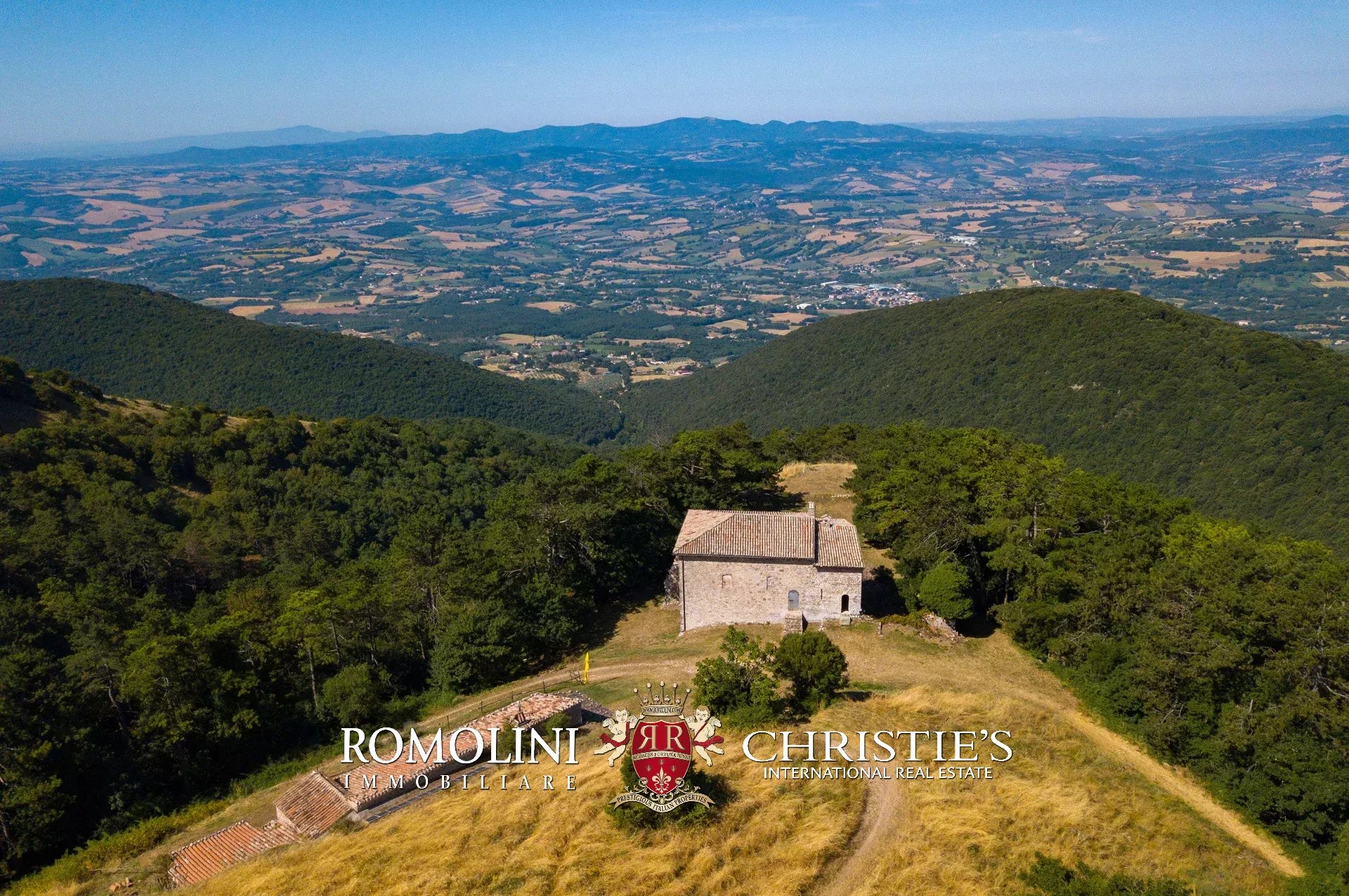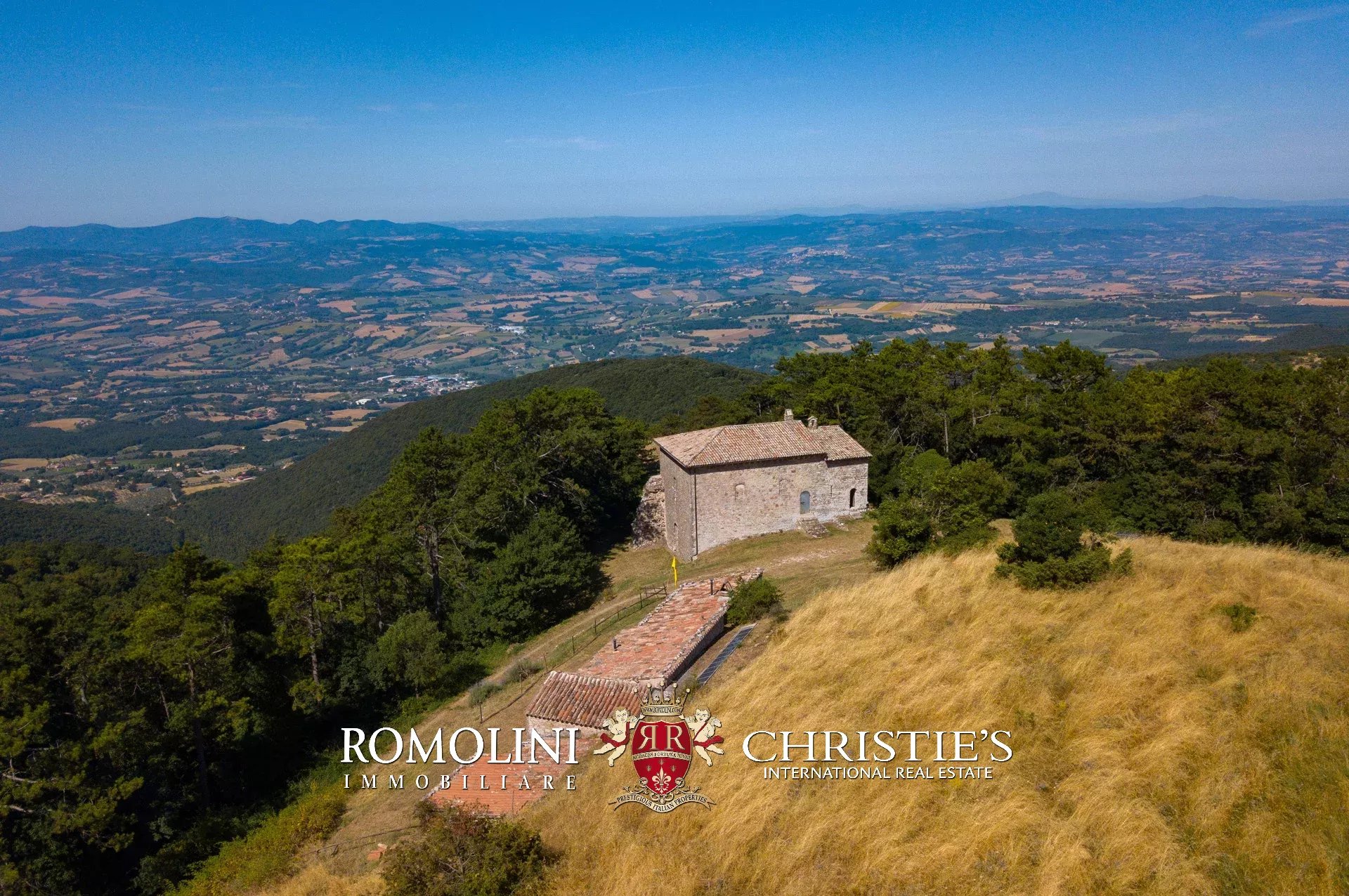 In posizione molto privata e panoramica nel cuore dell’Umbria, sulle colline che guardano la Val Todina, antica pieve ristrutturata in vendita. L’edificio principale è una chiesa dell’XI secolo (unica parte rimanente di una più grande abbazia) mentre l’abitazione vera e propria è un edificio in pietra su un solo piano a breve distanza dal precedente. La grande privacy è assicurata da oltre 230 ha di terra boschiva che assicurano pace e tranquillità.