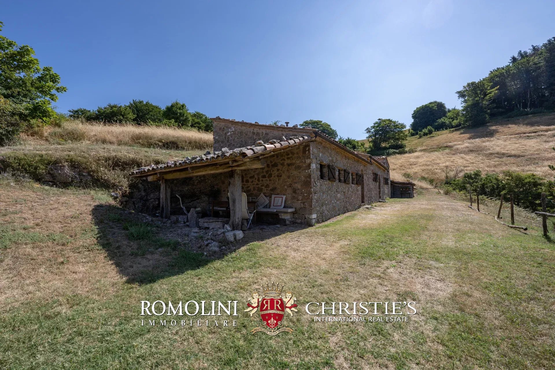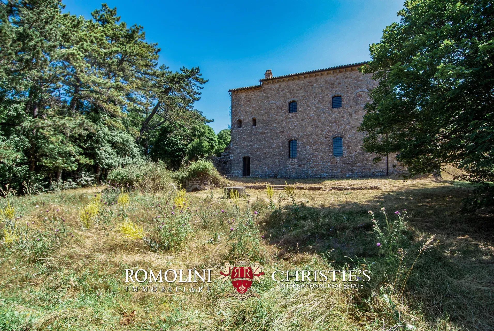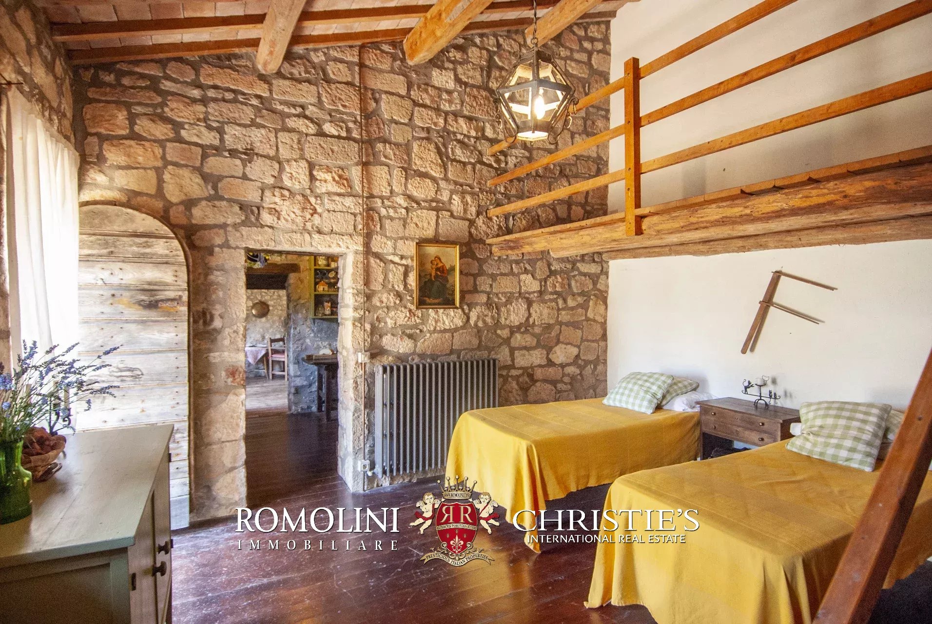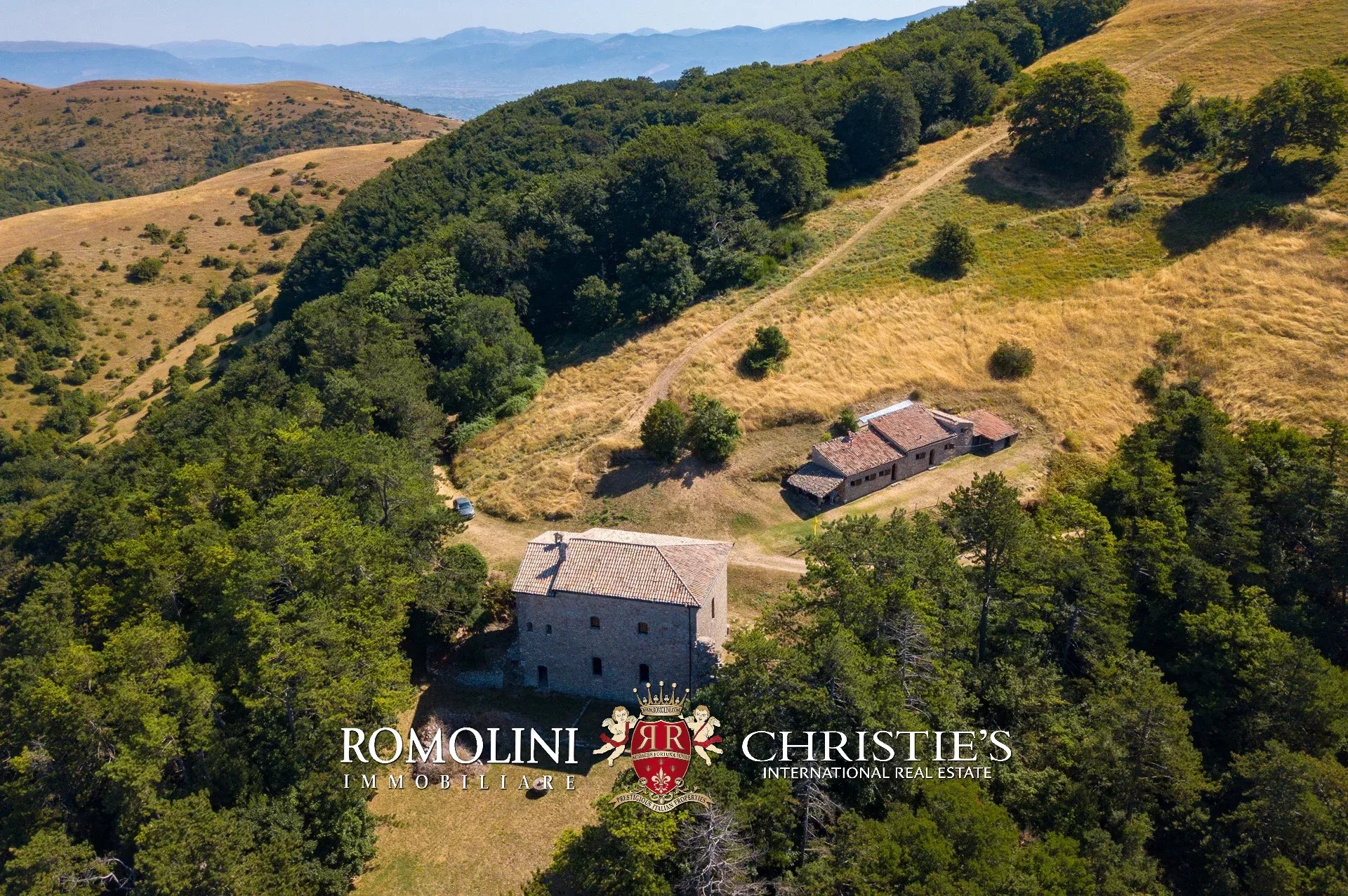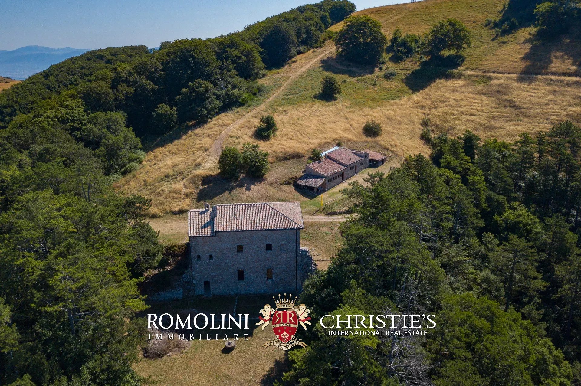 In posizione molto privata e panoramica nel cuore dell’Umbria, sulle colline che guardano la Val Todina, antica pieve ristrutturata in vendita. L’edificio principale è una chiesa dell’XI secolo (unica parte rimanente di una più grande abbazia) mentre l’abitazione vera e propria è un edificio in pietra su un solo piano a breve distanza dal precedente. La grande privacy è assicurata da oltre 230 ha di terra boschiva che assicurano pace e tranquillità.