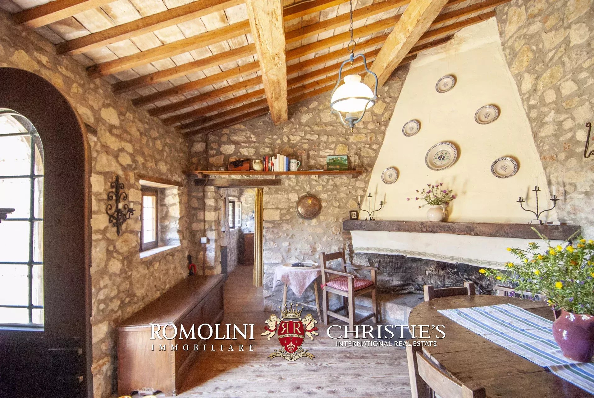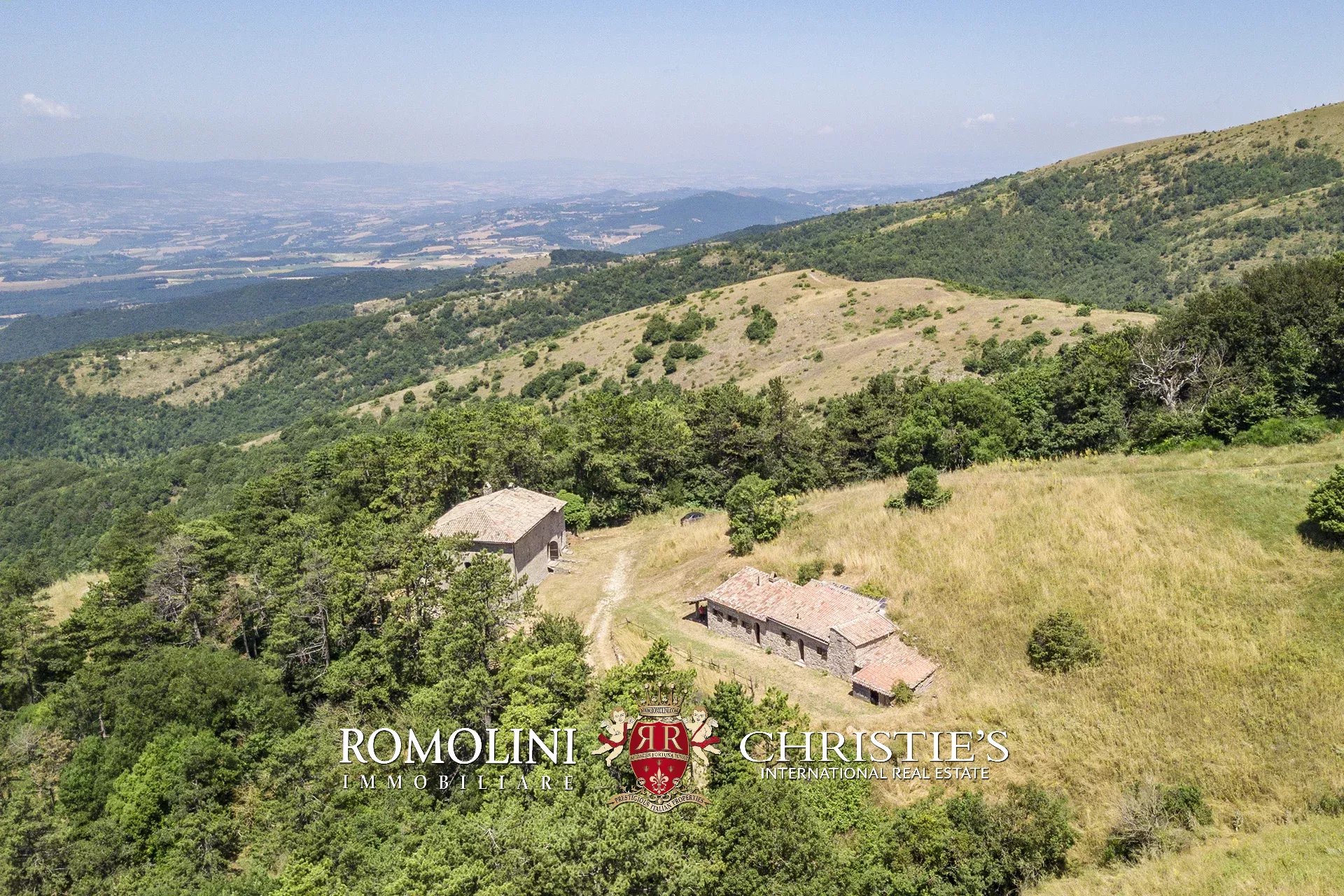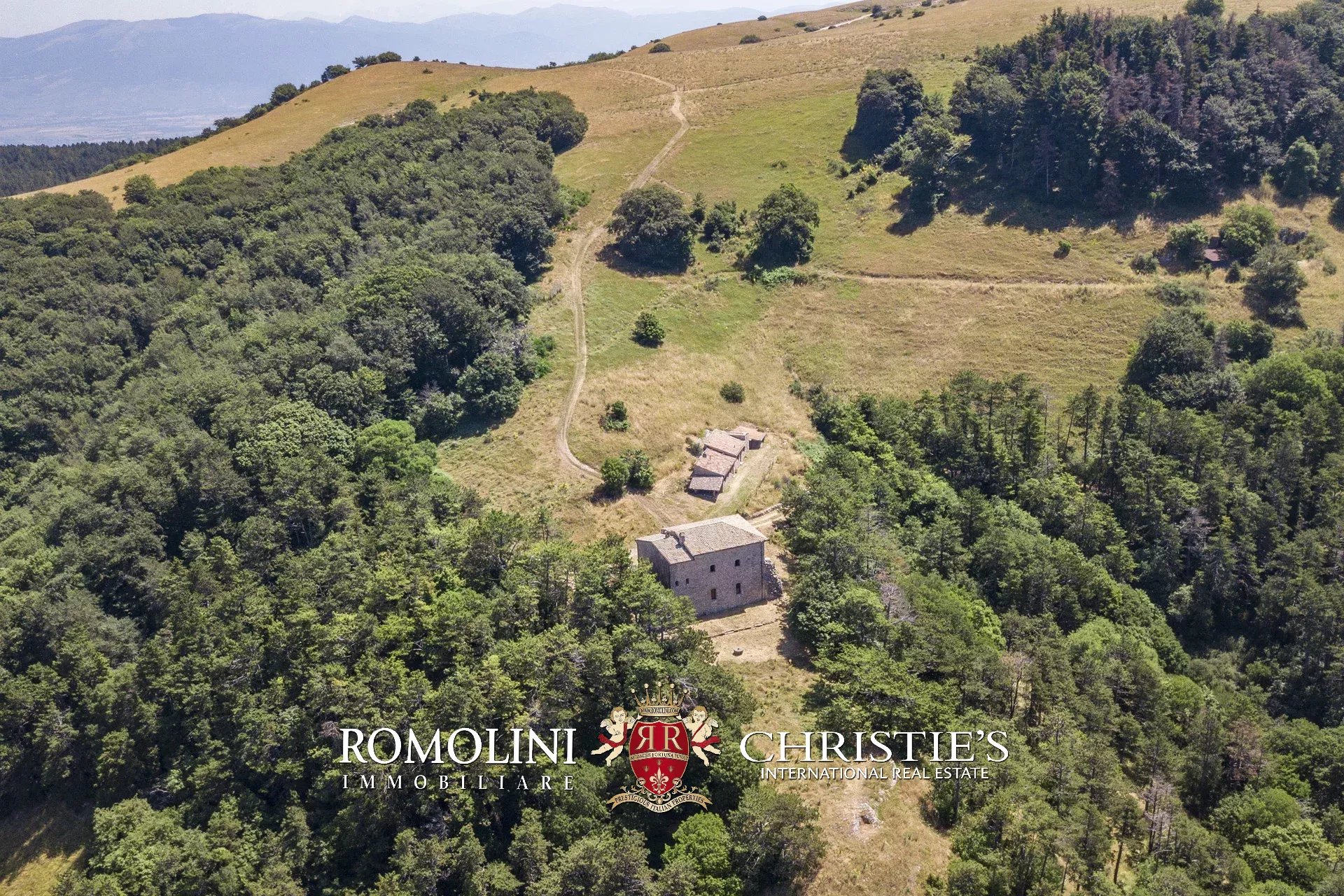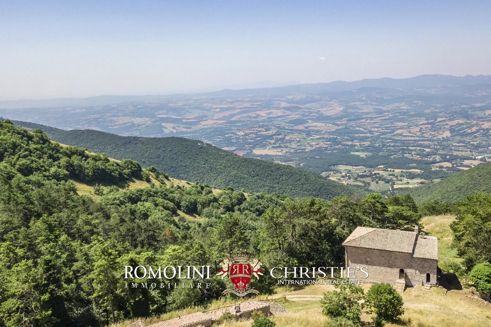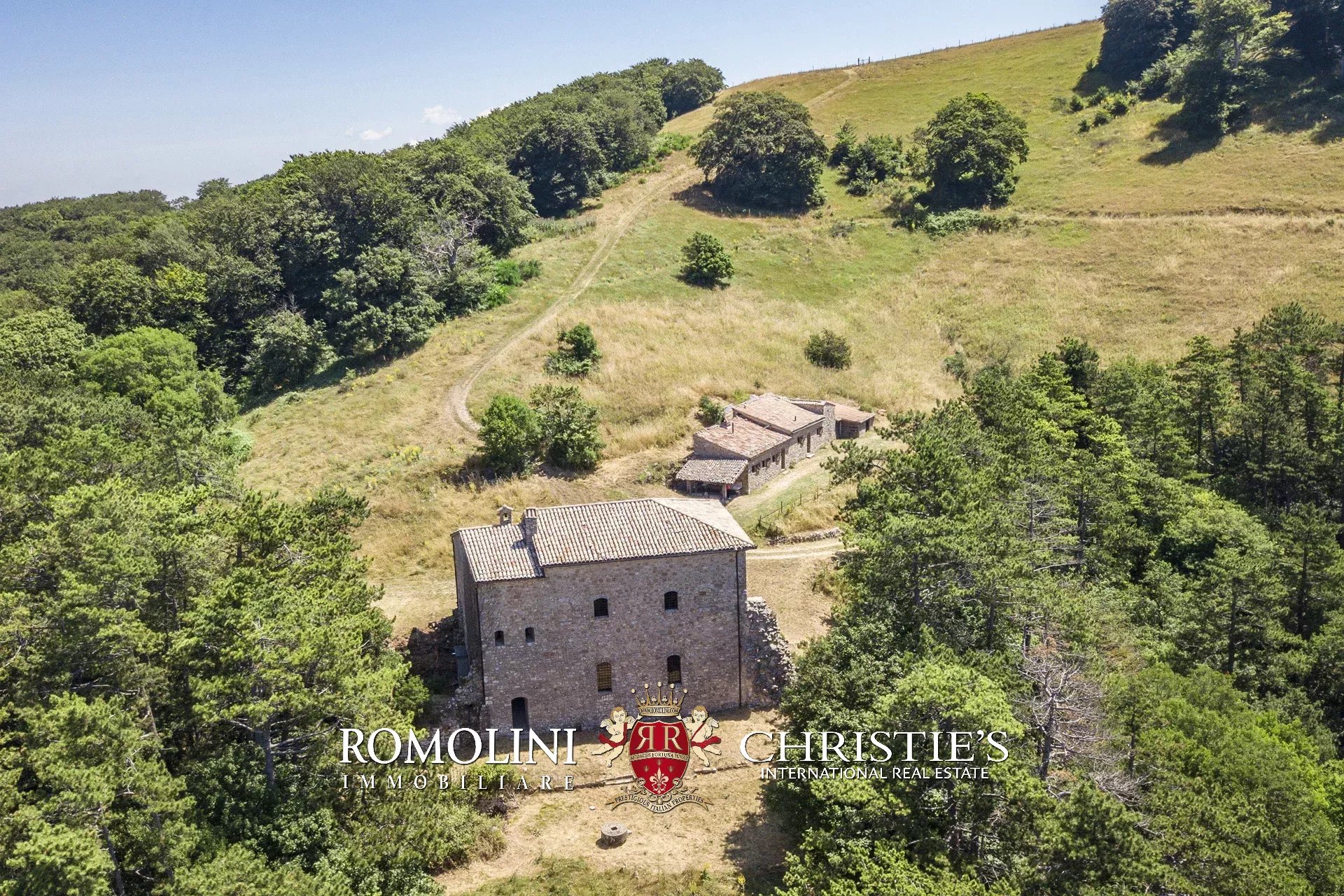 In posizione molto privata e panoramica nel cuore dell’Umbria, sulle colline che guardano la Val Todina, antica pieve ristrutturata in vendita. L’edificio principale è una chiesa dell’XI secolo (unica parte rimanente di una più grande abbazia) mentre l’abitazione vera e propria è un edificio in pietra su un solo piano a breve distanza dal precedente. La grande privacy è assicurata da oltre 230 ha di terra boschiva che assicurano pace e tranquillità.