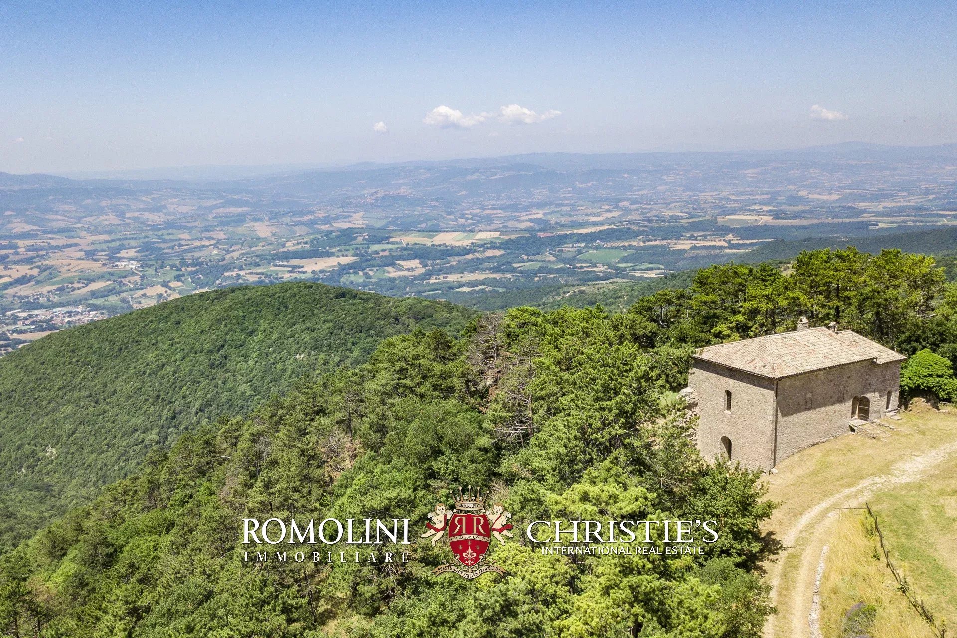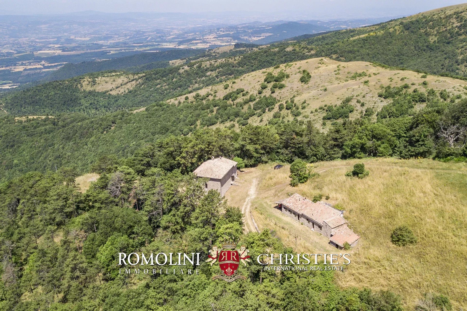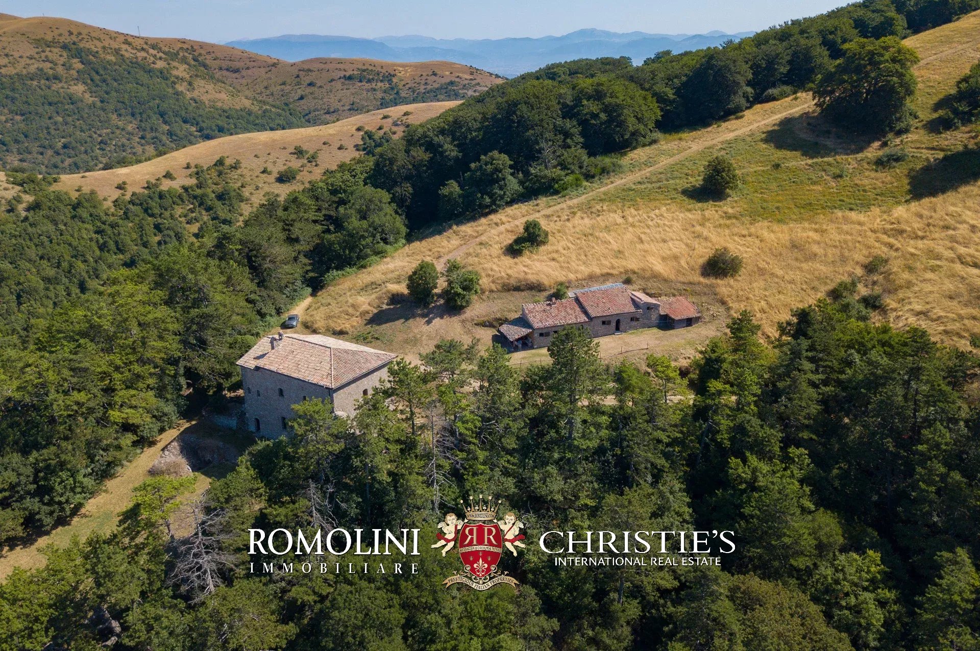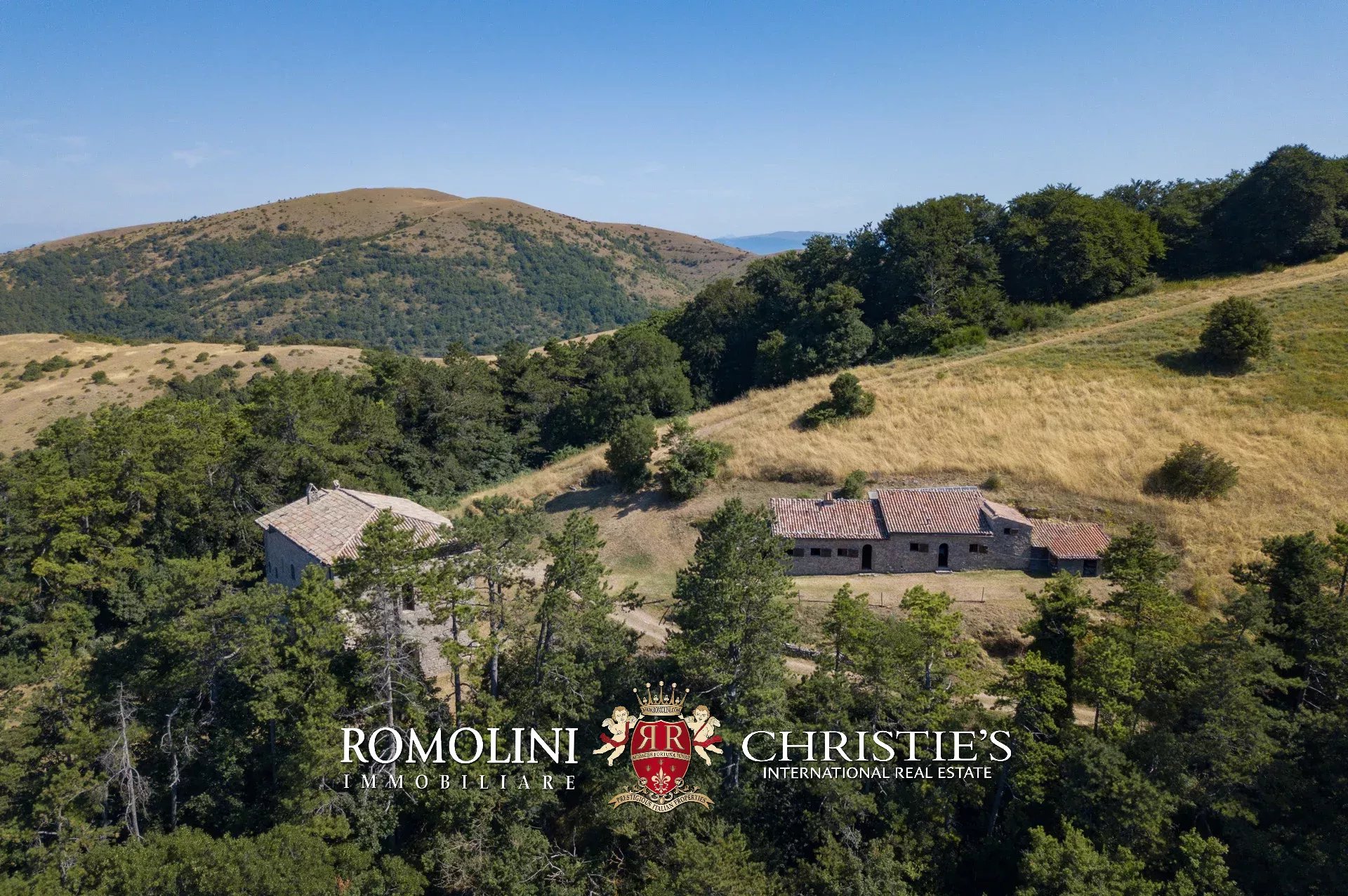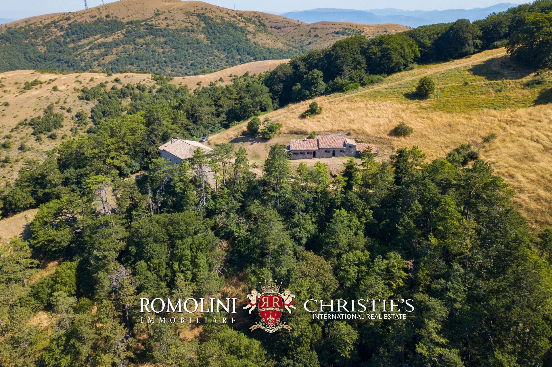 In posizione molto privata e panoramica nel cuore dell’Umbria, sulle colline che guardano la Val Todina, antica pieve ristrutturata in vendita. L’edificio principale è una chiesa dell’XI secolo (unica parte rimanente di una più grande abbazia) mentre l’abitazione vera e propria è un edificio in pietra su un solo piano a breve distanza dal precedente. La grande privacy è assicurata da oltre 230 ha di terra boschiva che assicurano pace e tranquillità.