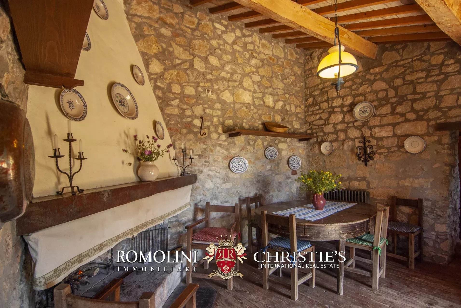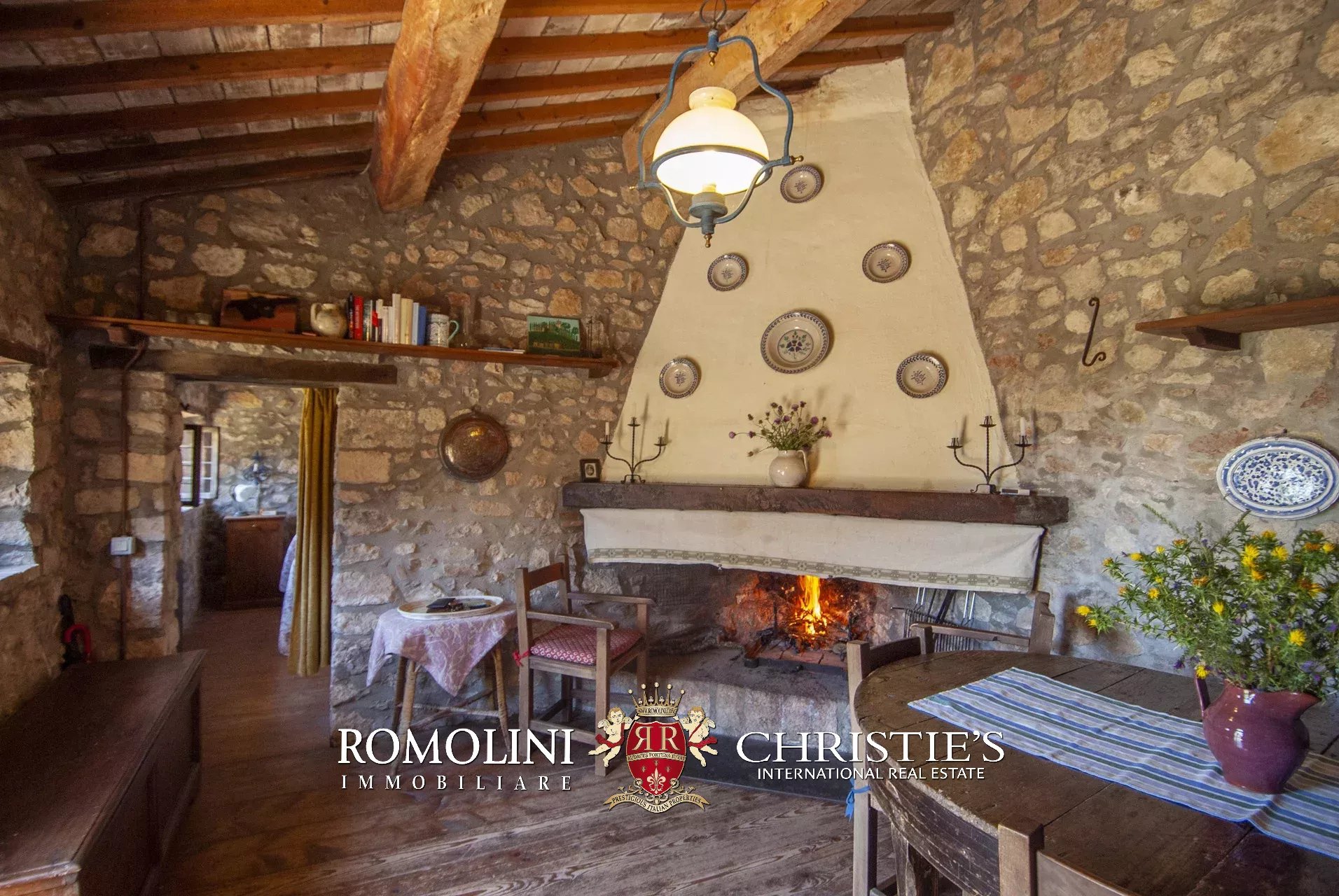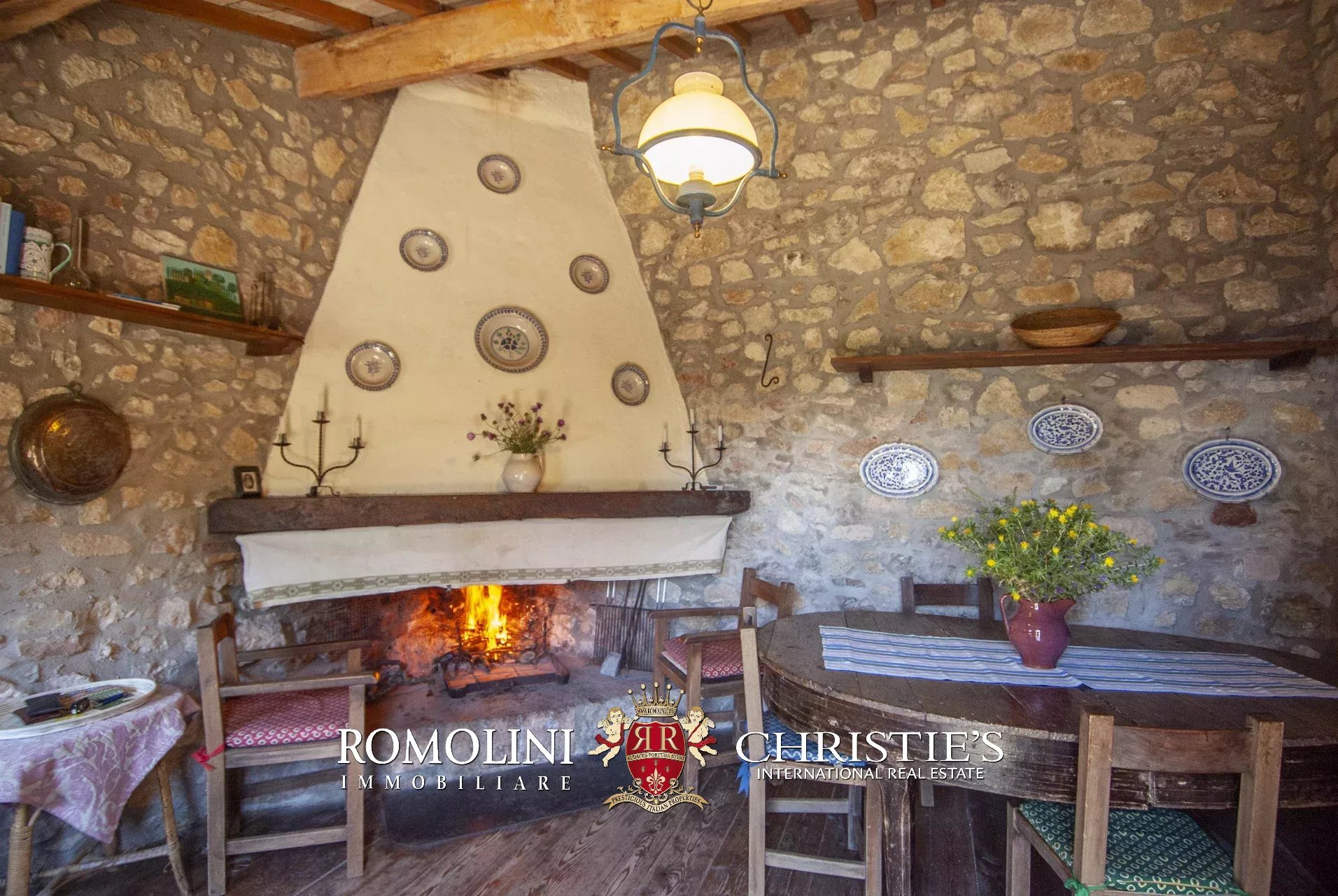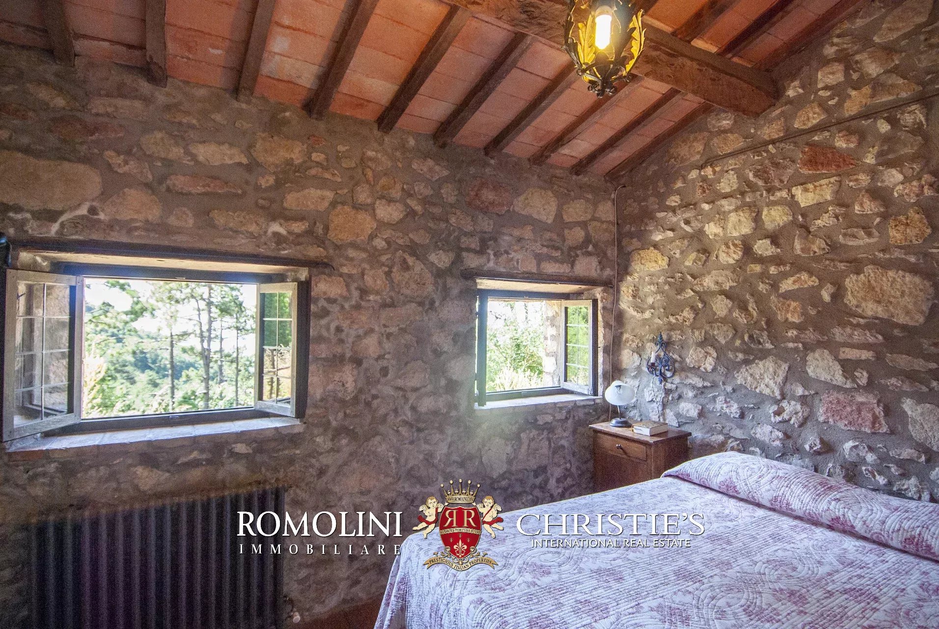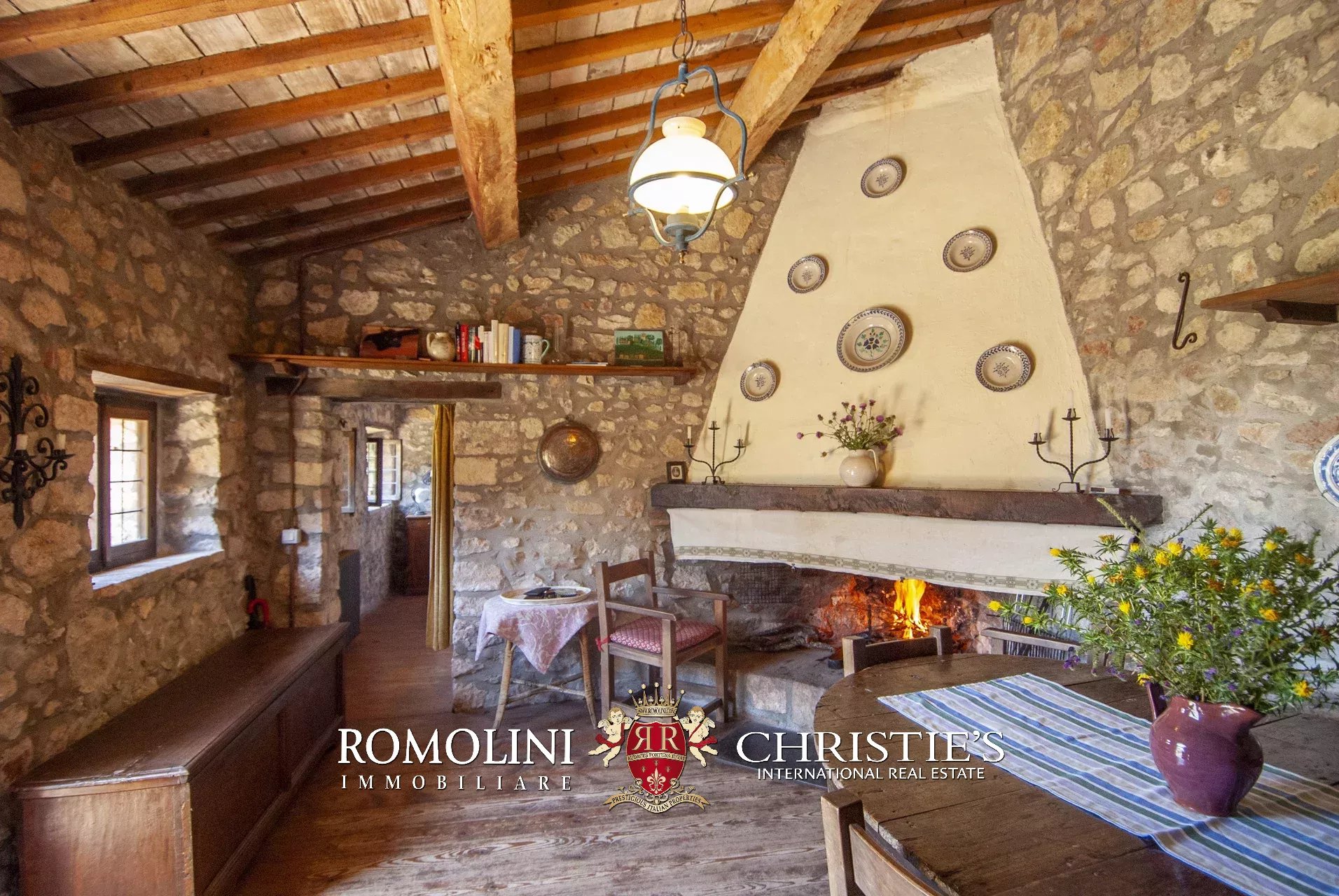 In posizione molto privata e panoramica nel cuore dell’Umbria, sulle colline che guardano la Val Todina, antica pieve ristrutturata in vendita. L’edificio principale è una chiesa dell’XI secolo (unica parte rimanente di una più grande abbazia) mentre l’abitazione vera e propria è un edificio in pietra su un solo piano a breve distanza dal precedente. La grande privacy è assicurata da oltre 230 ha di terra boschiva che assicurano pace e tranquillità.