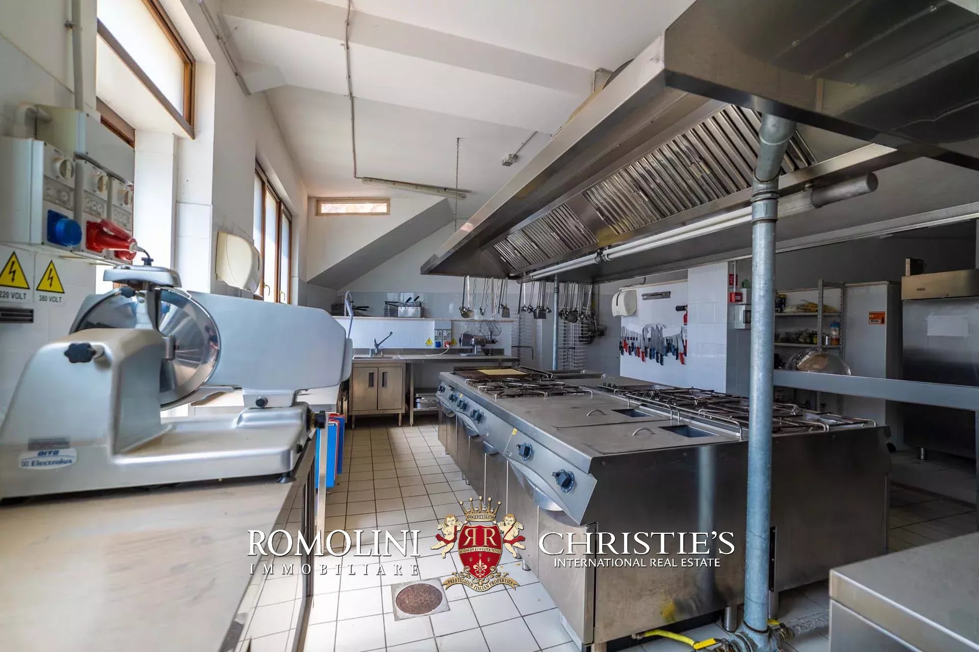 Al piano più alto è invece interamente occupato da una bellissima sala eventi (capacità massima di 200 ospiti) con volte a padiglione in struttura di legno lamellare e grandi vetrate con vista sulla zona circostante.