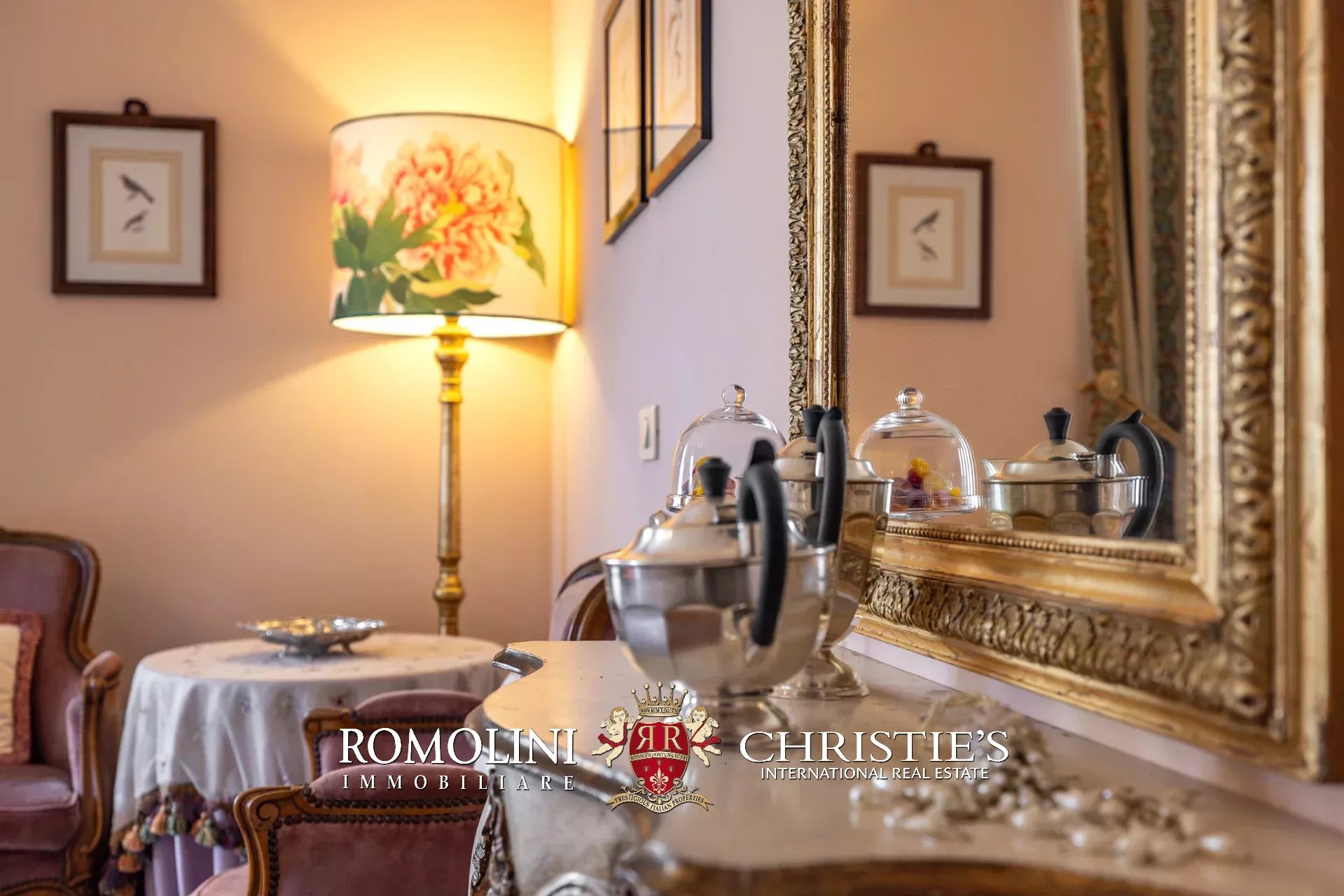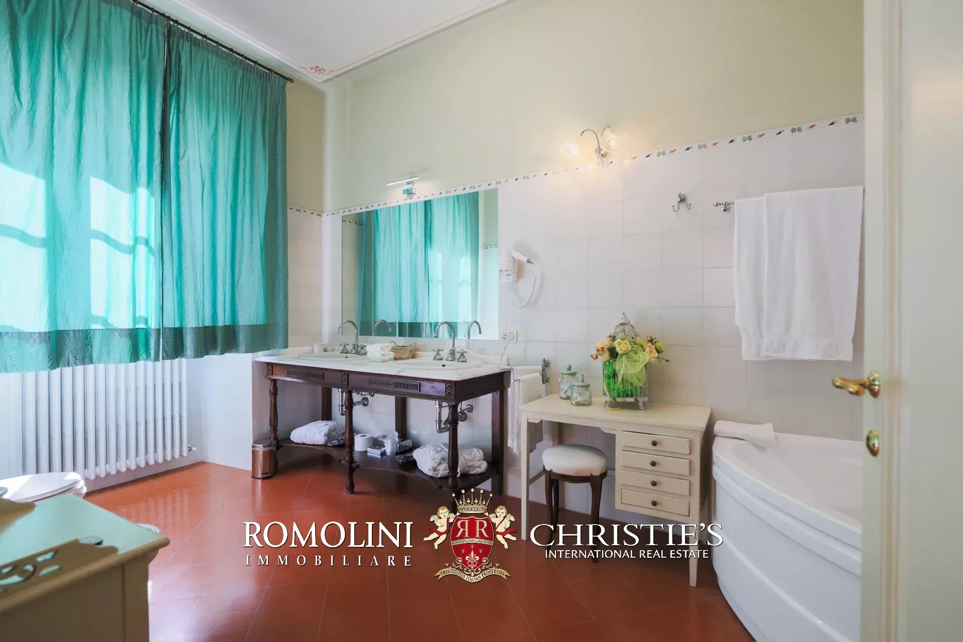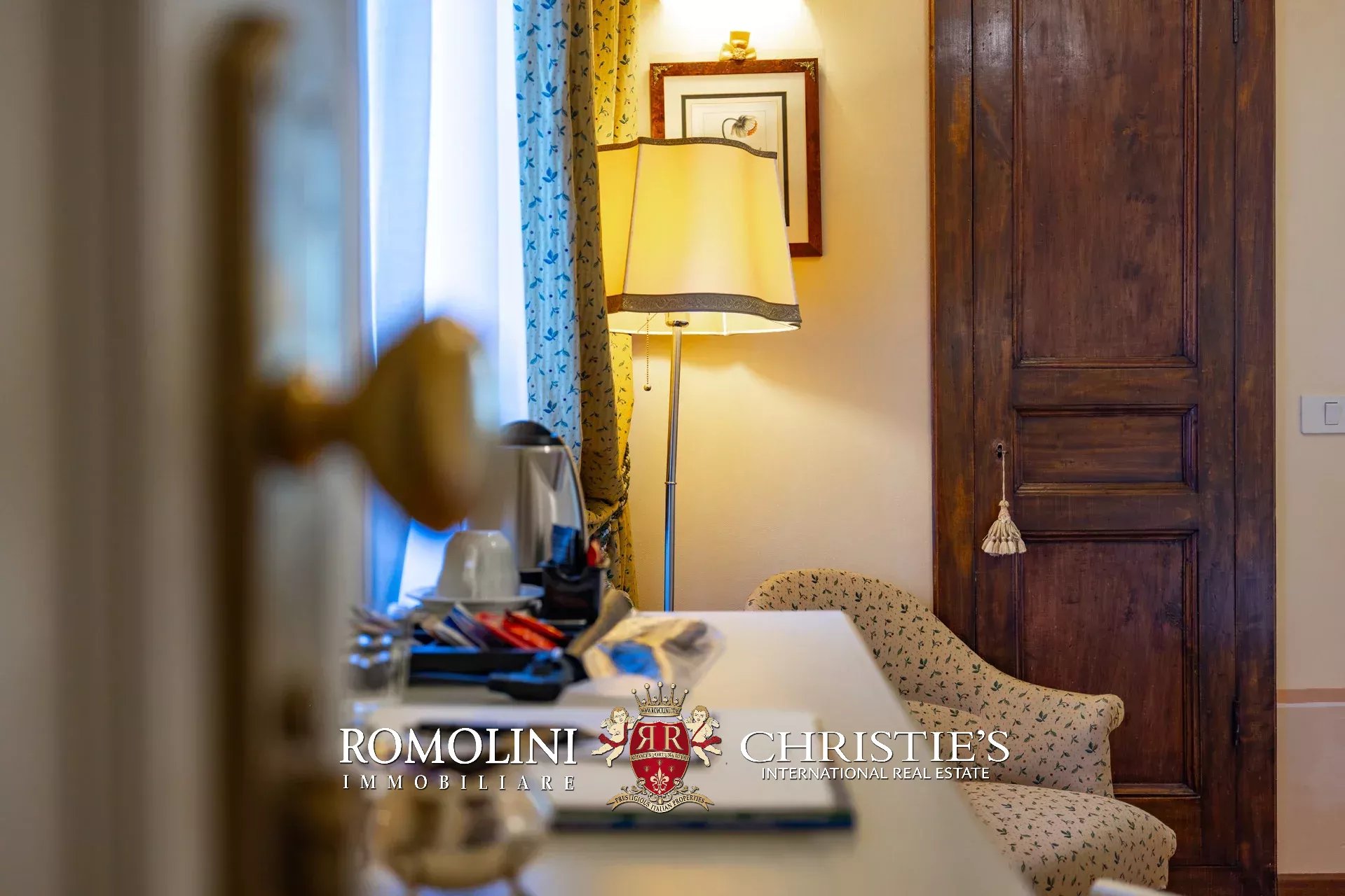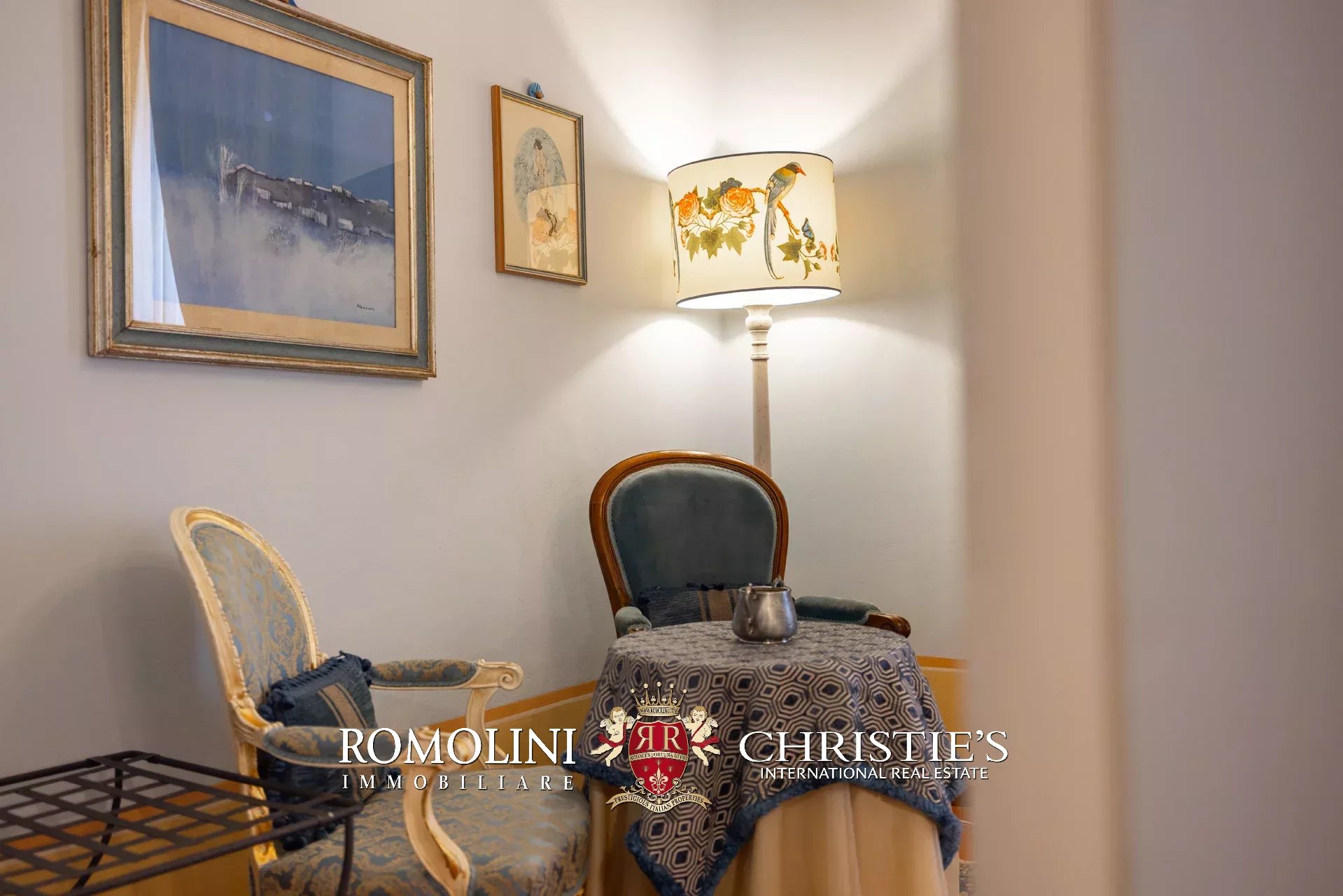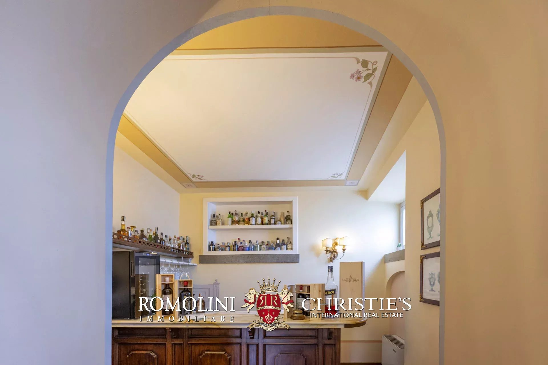 Tutto trasmette un senso di lusso e di prestigio, di ricercatezza e di eleganza. L’arredamento è composto da pezzi di alto antiquariato e tessuti preziosi, le pareti e i soffitti sono stati decorati da prestigiose maestranze toscane e i bagni realizzati rigorosamente in stile. Il riscaldamento è indipendente e zonale regolabile per ogni singola stanza.
