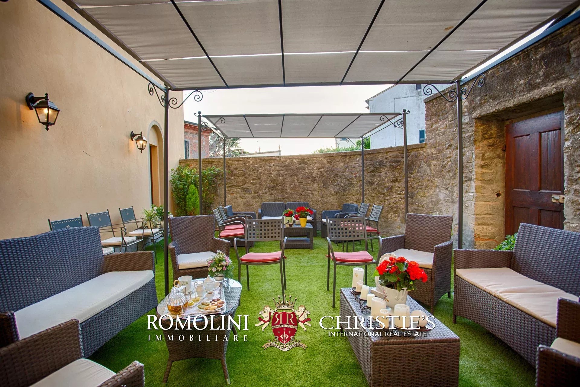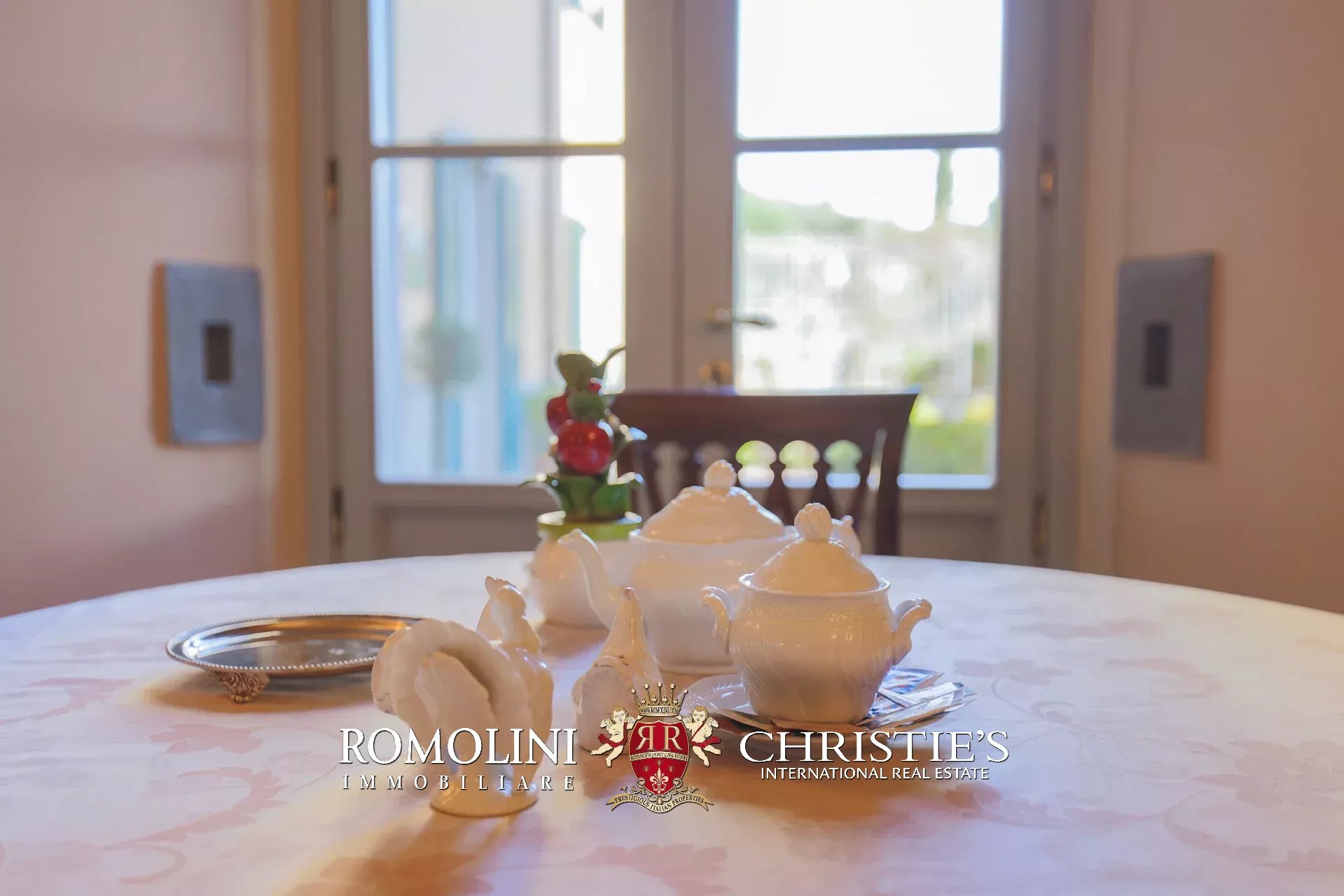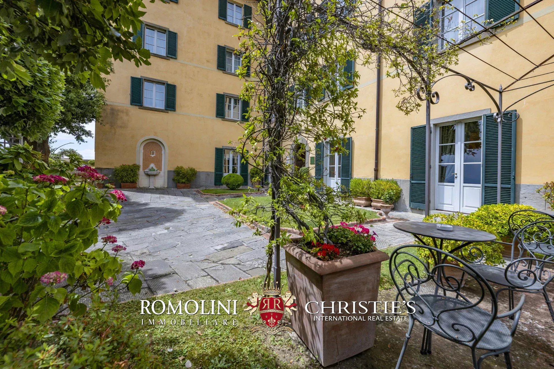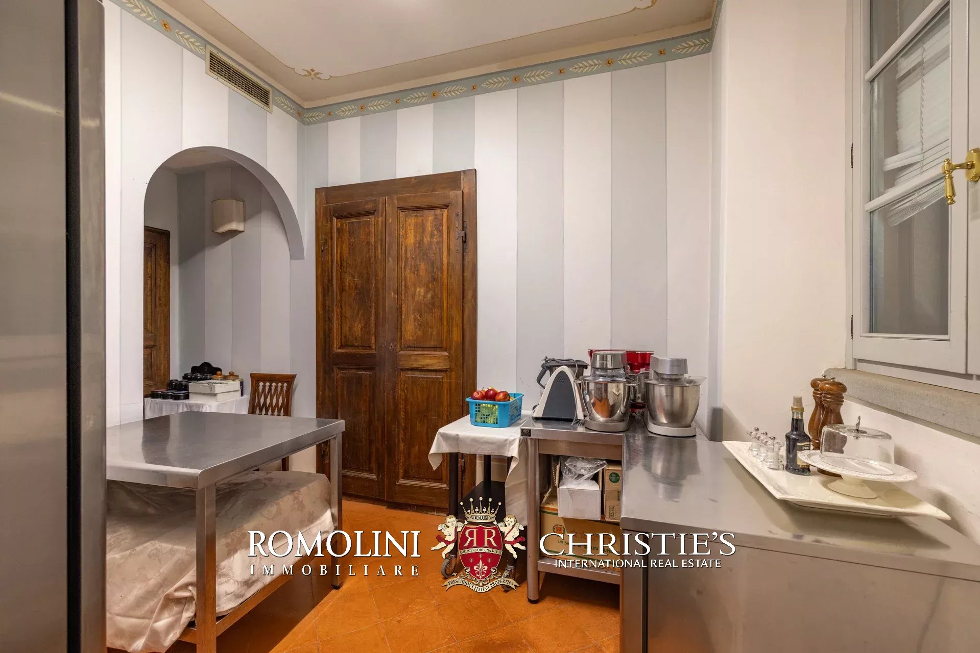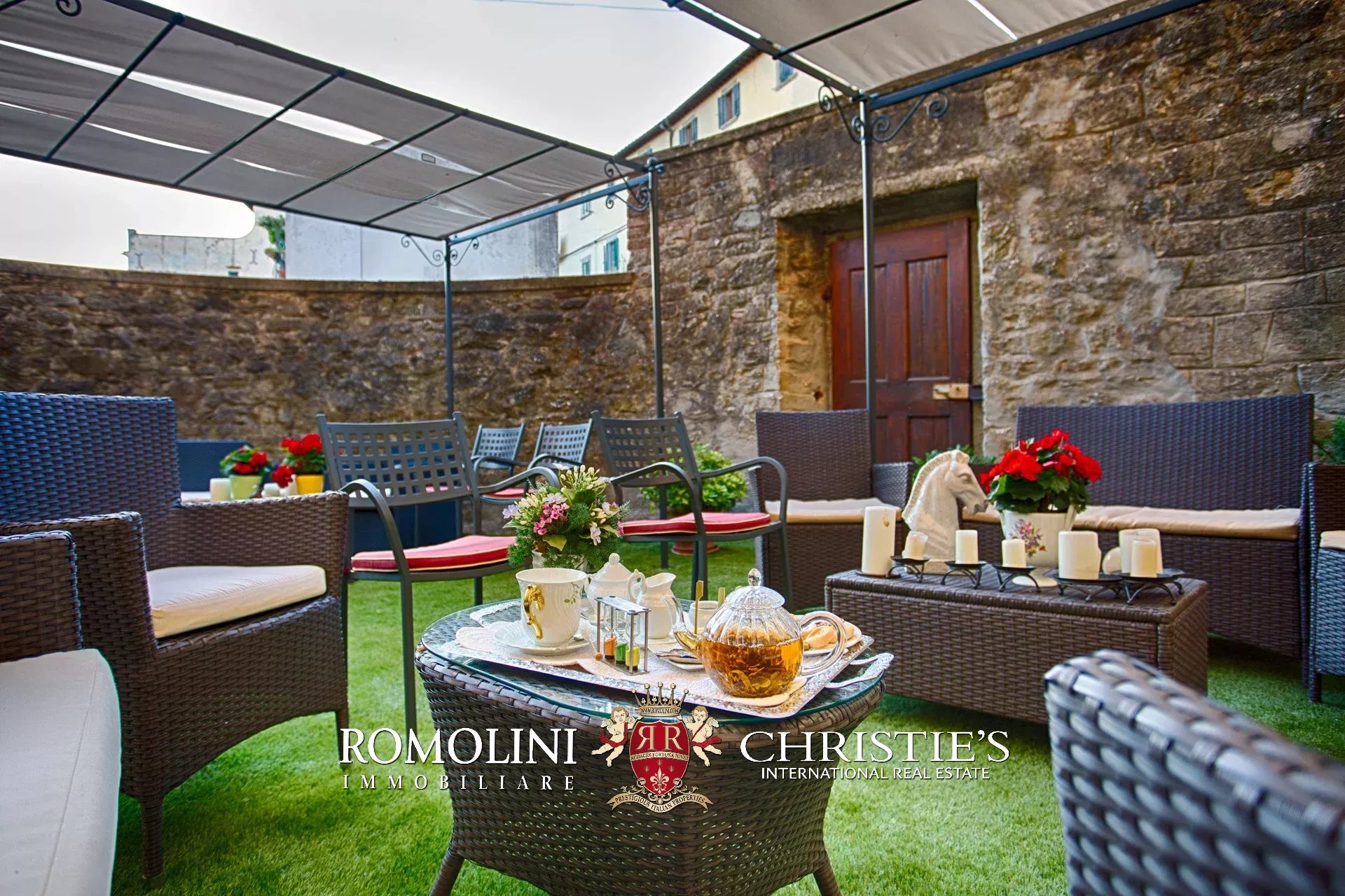 Tutto trasmette un senso di lusso e di prestigio, di ricercatezza e di eleganza. L’arredamento è composto da pezzi di alto antiquariato e tessuti preziosi, le pareti e i soffitti sono stati decorati da prestigiose maestranze toscane e i bagni realizzati rigorosamente in stile. Il riscaldamento è indipendente e zonale regolabile per ogni singola stanza.