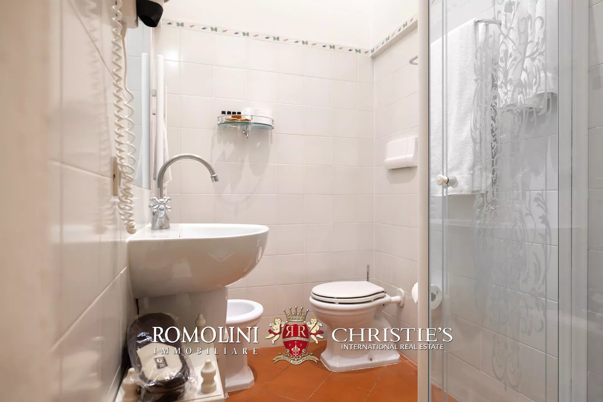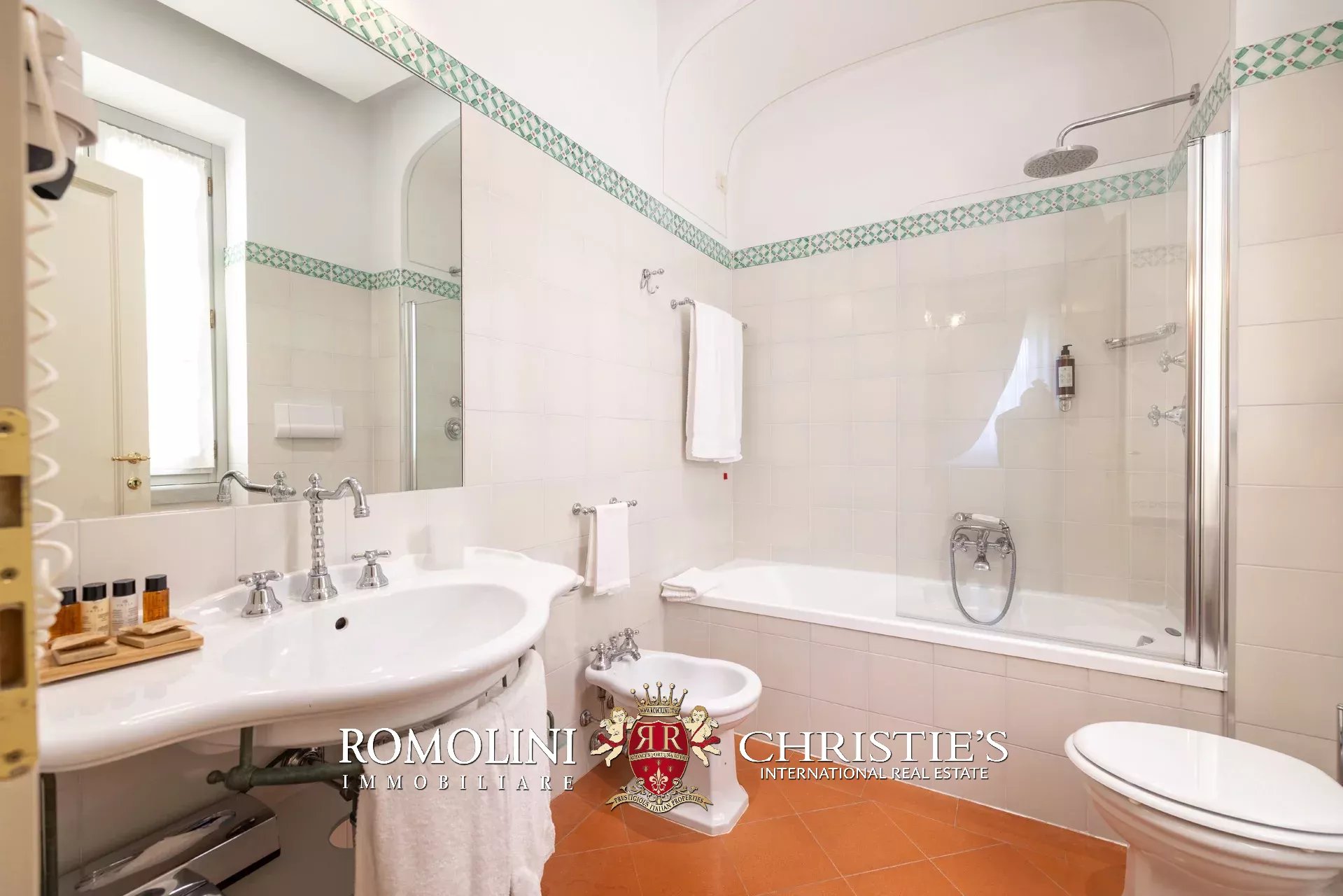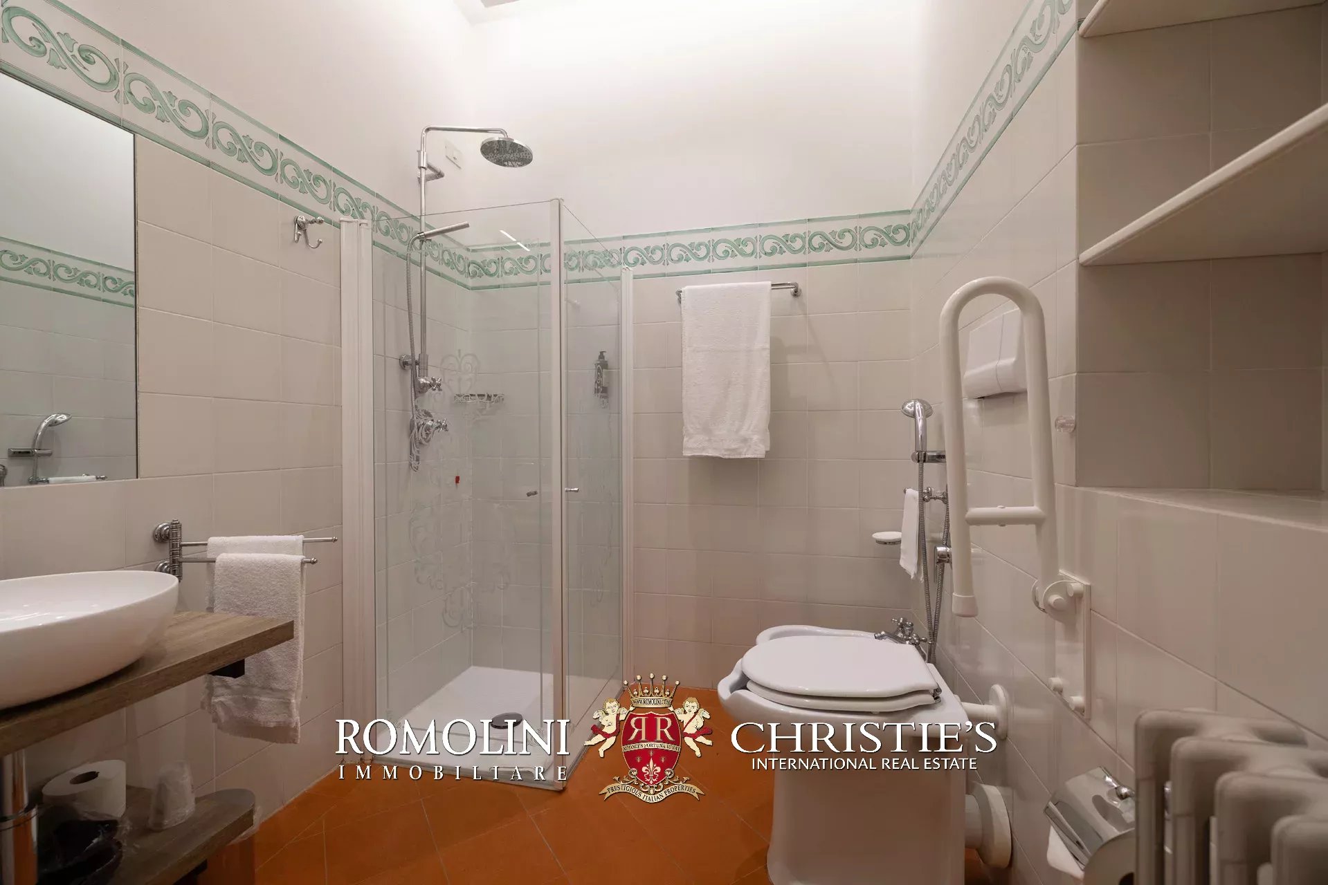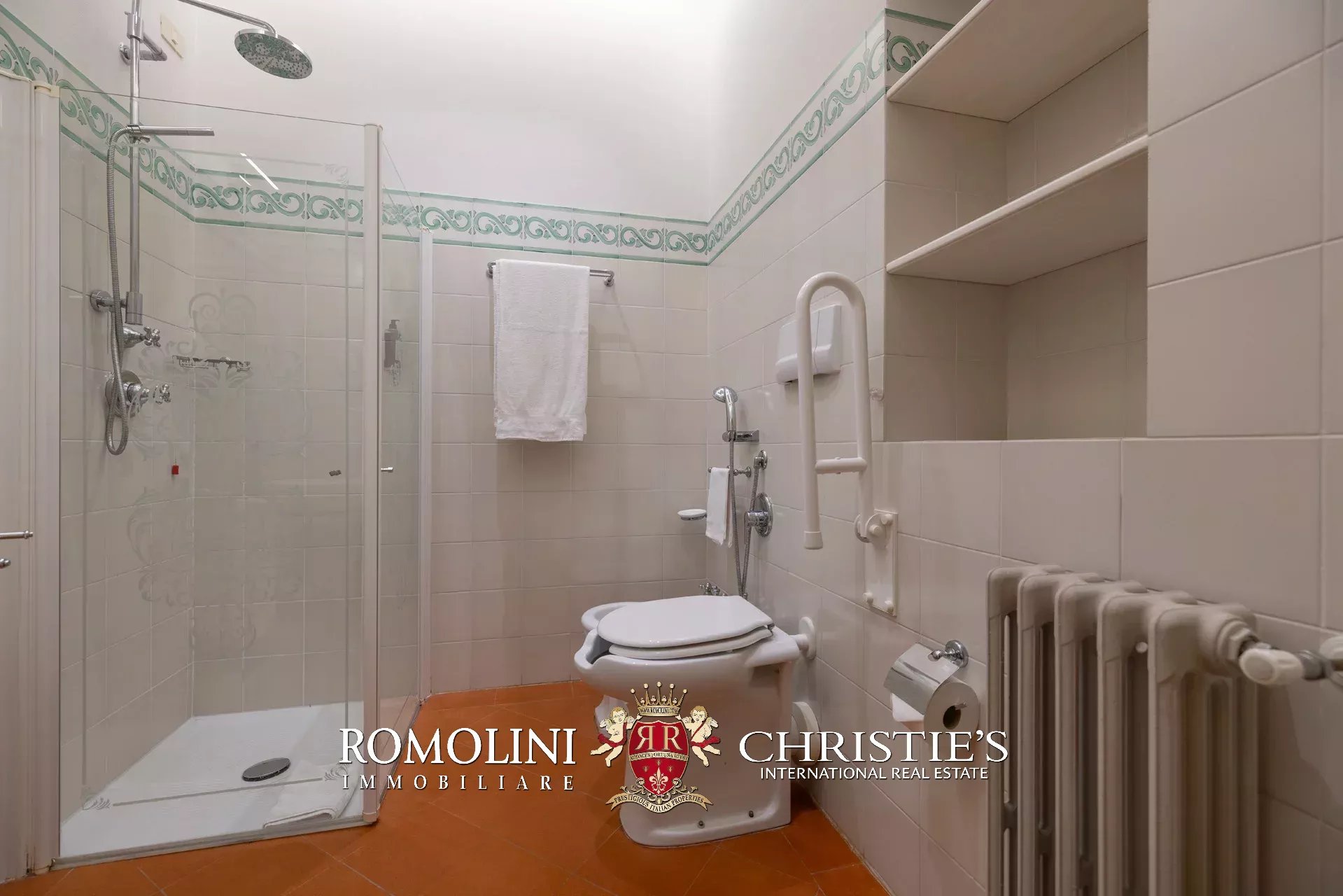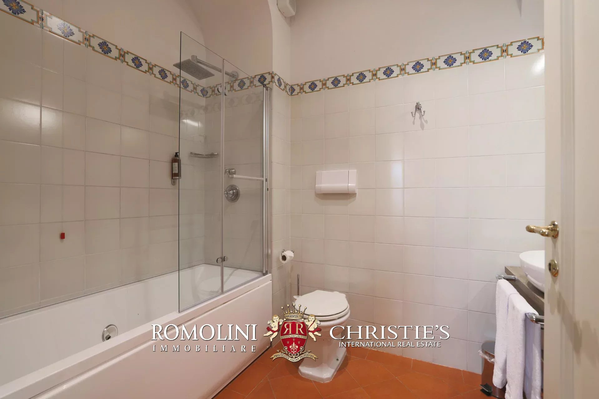 Tutto trasmette un senso di lusso e di prestigio, di ricercatezza e di eleganza. L’arredamento è composto da pezzi di alto antiquariato e tessuti preziosi, le pareti e i soffitti sono stati decorati da prestigiose maestranze toscane e i bagni realizzati rigorosamente in stile. Il riscaldamento è indipendente e zonale regolabile per ogni singola stanza.