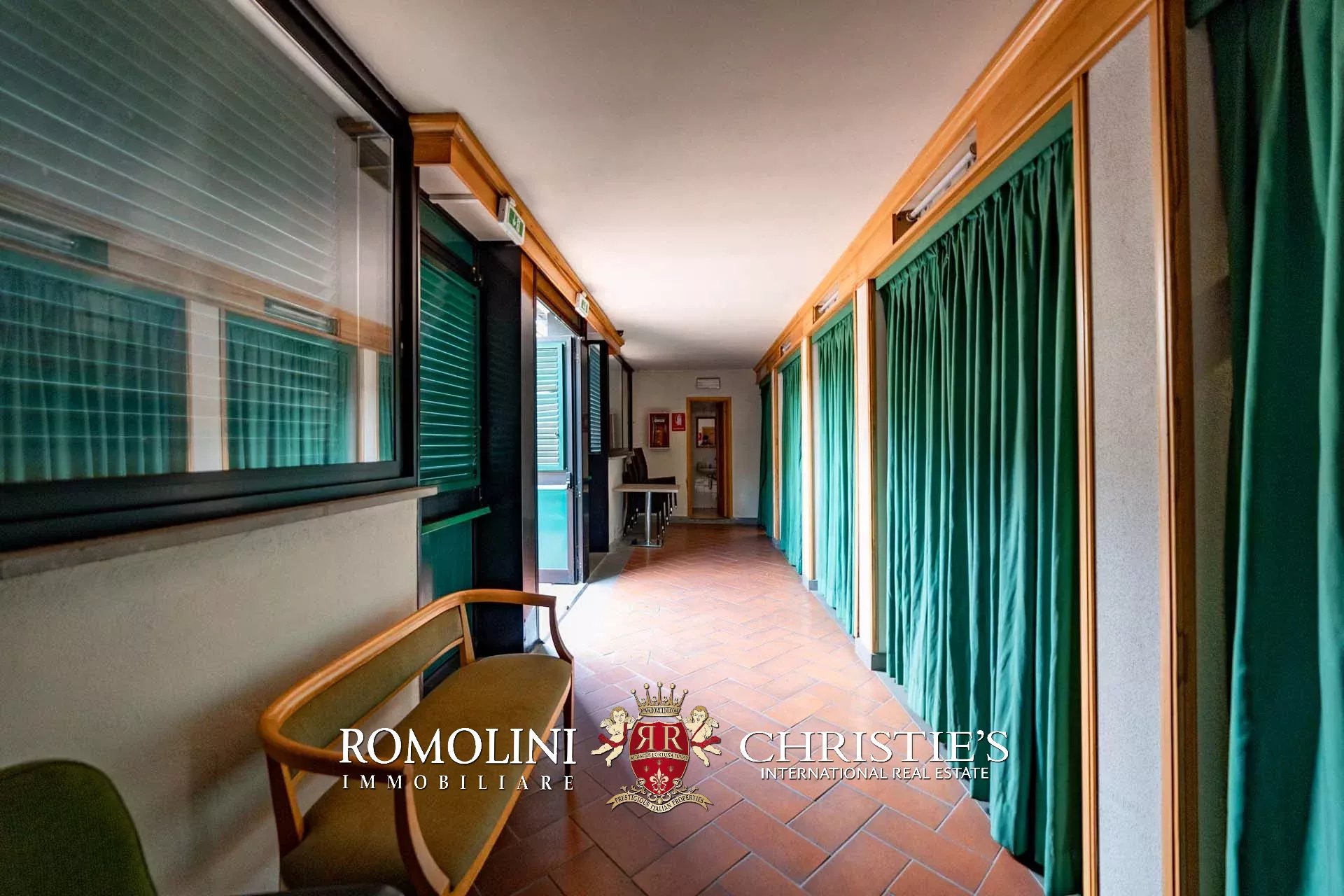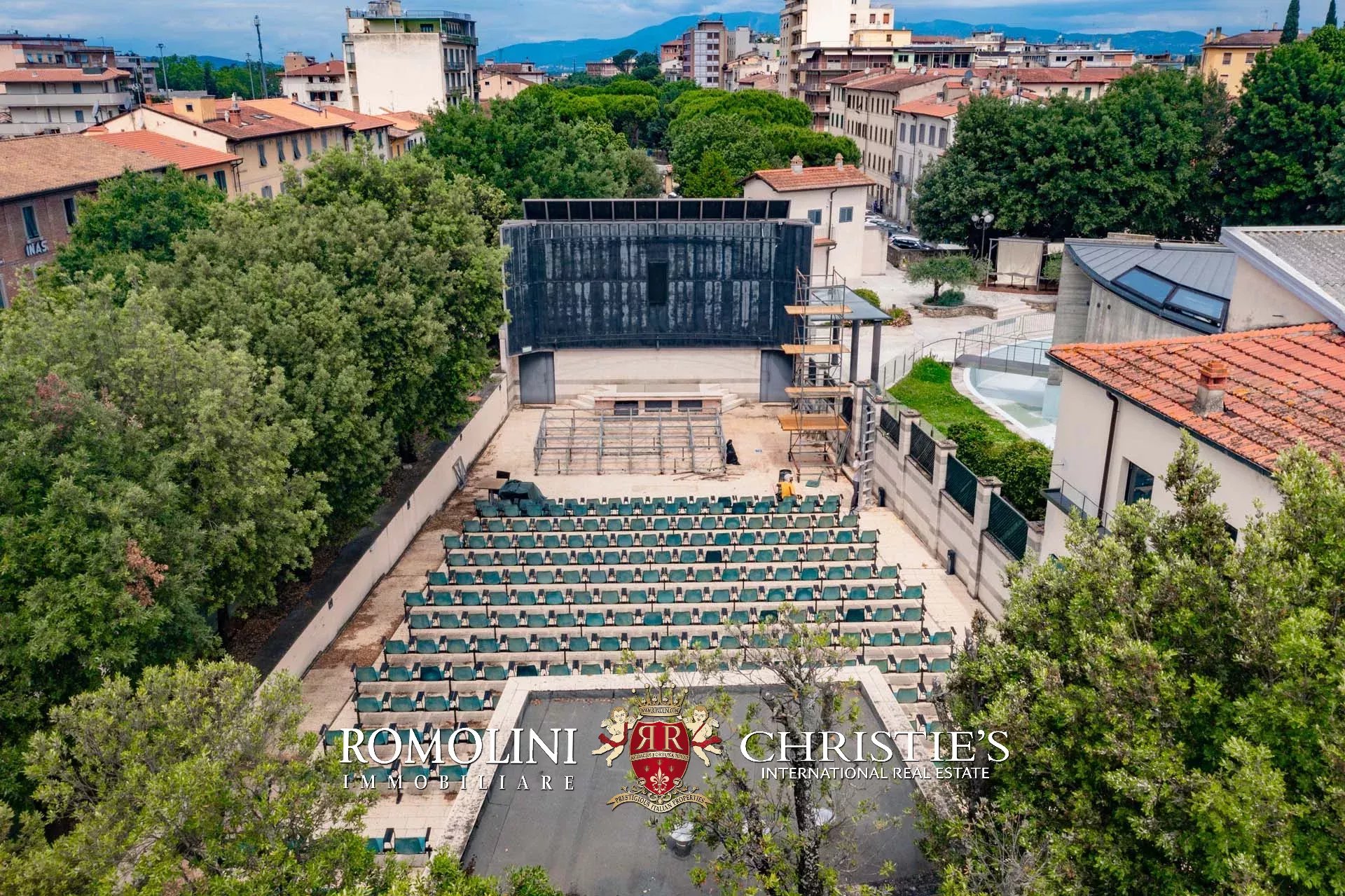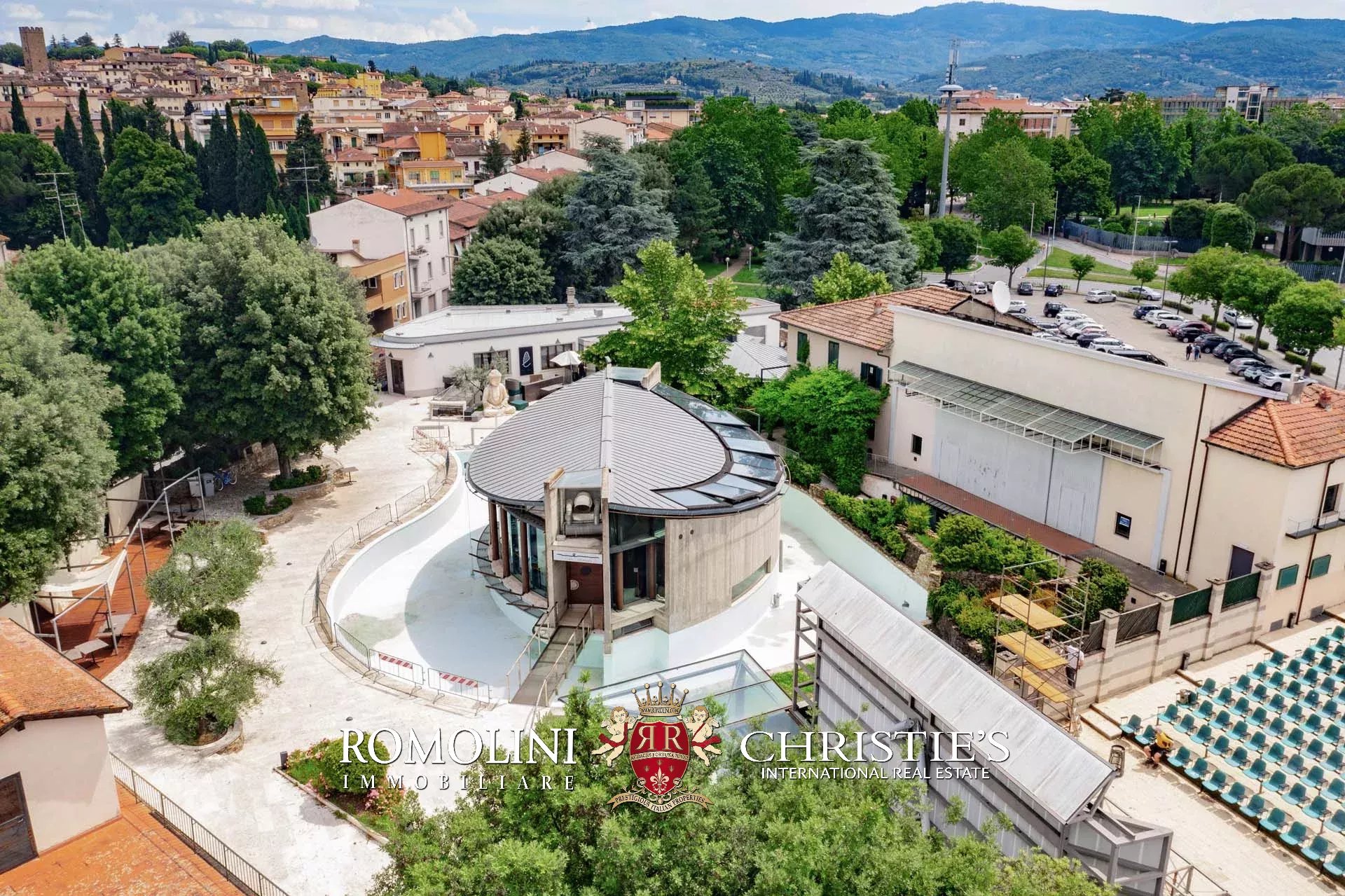 Nel centro storico di Arezzo, sopra uno dei bastioni lungo le mura cinquecentesche, immobile commerciale in vendita. Il complesso (oltre 1.700 m² in totale) è attualmente in attività e si presenta in ottime condizioni, con edifici moderni caratterizzati da grandi vetrate e continuità tra spazi interni ed esterni. I 3.700 m² di cortili e piazzali che collegano gli edifici sono perfetti per eventi all’aperto e il ristorante può comodamente ospitare fino a 230 commensali per eventi e cerimonie.