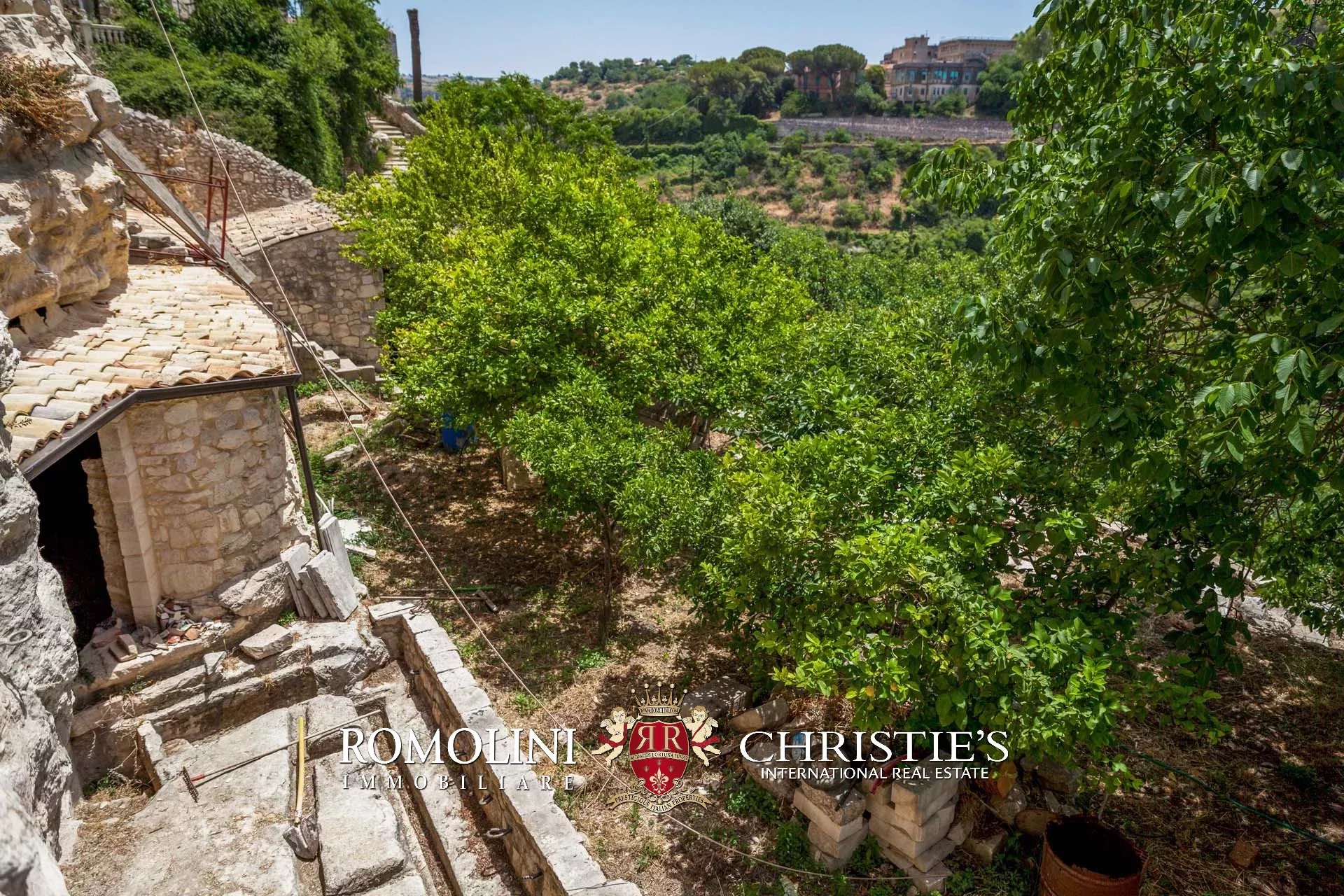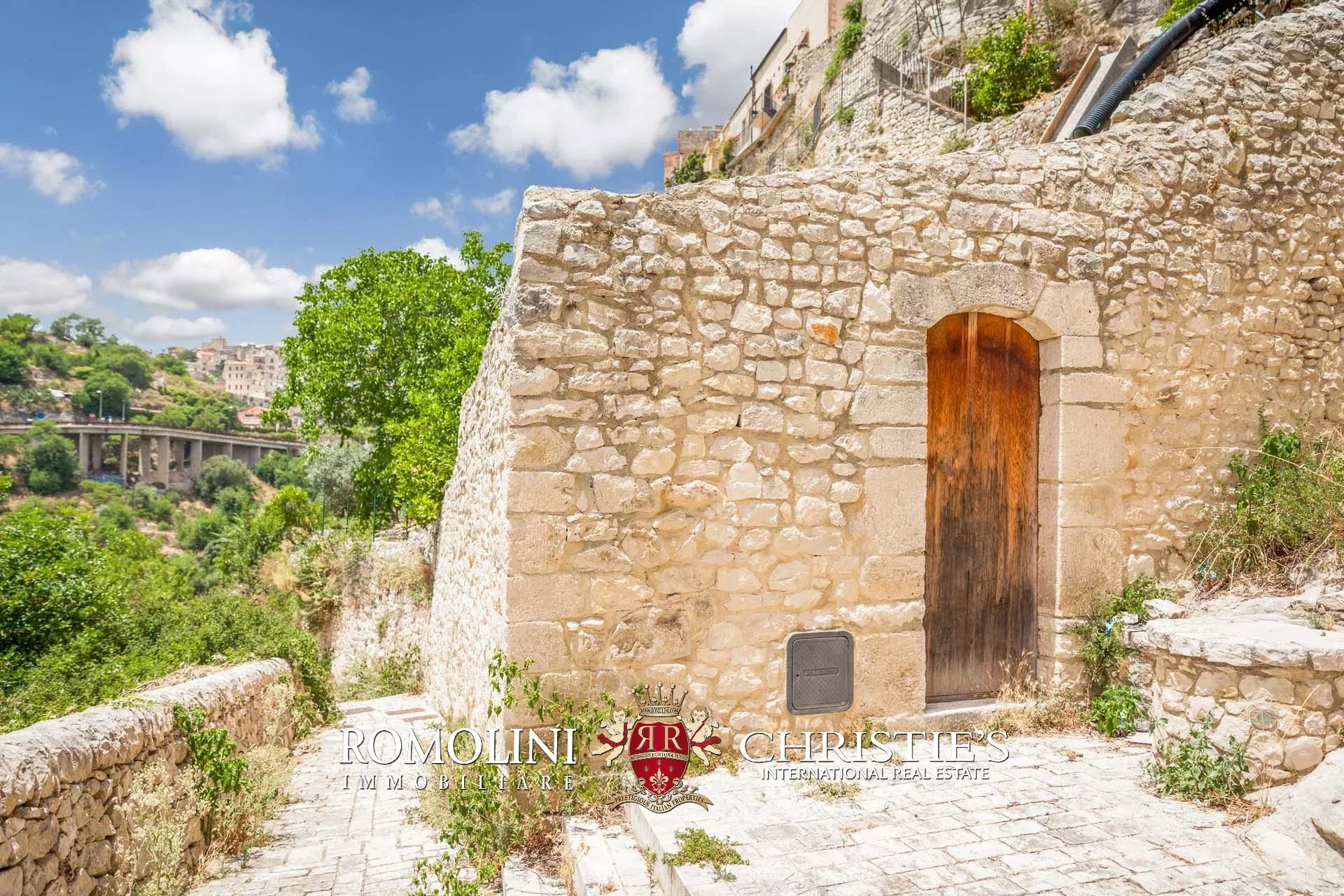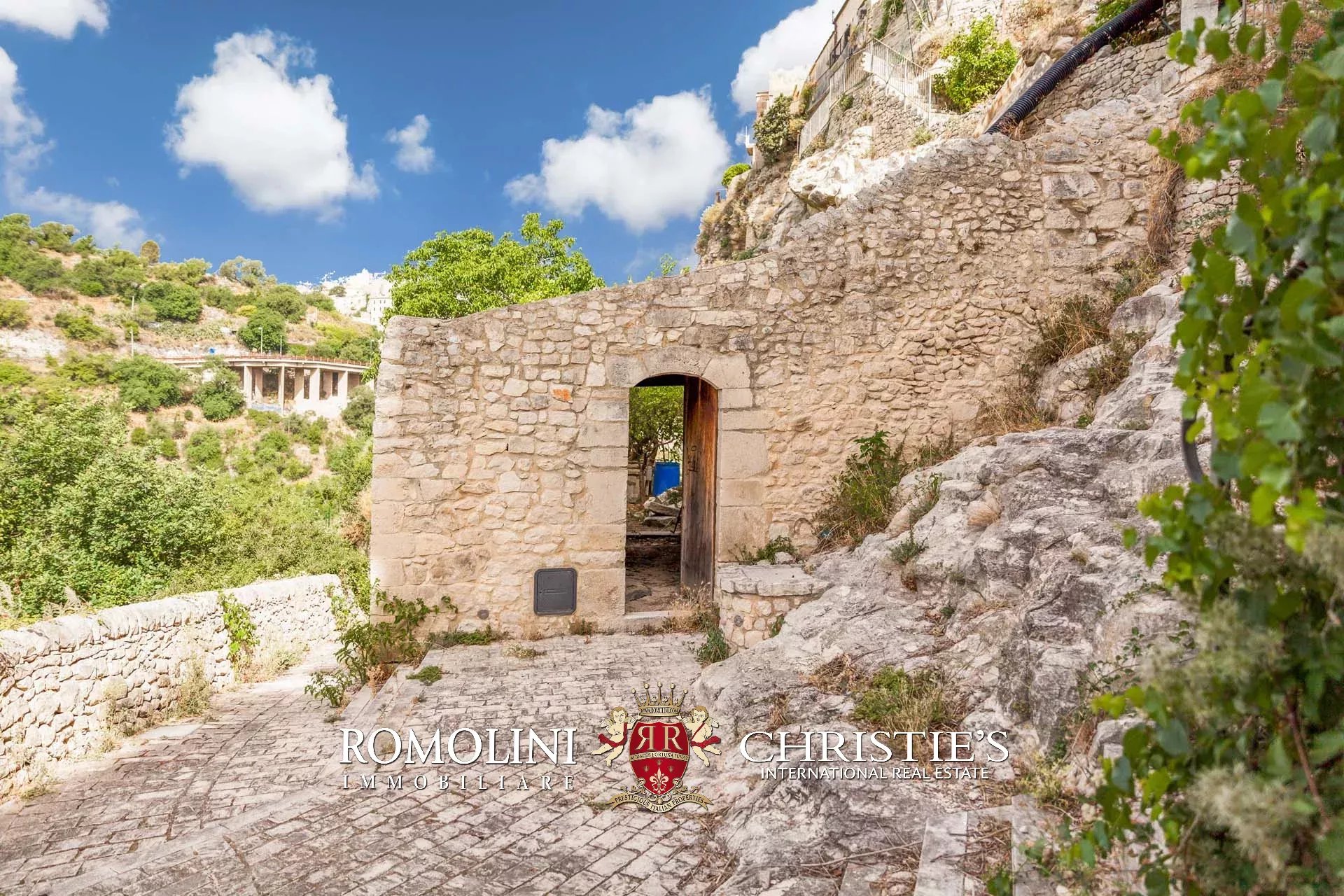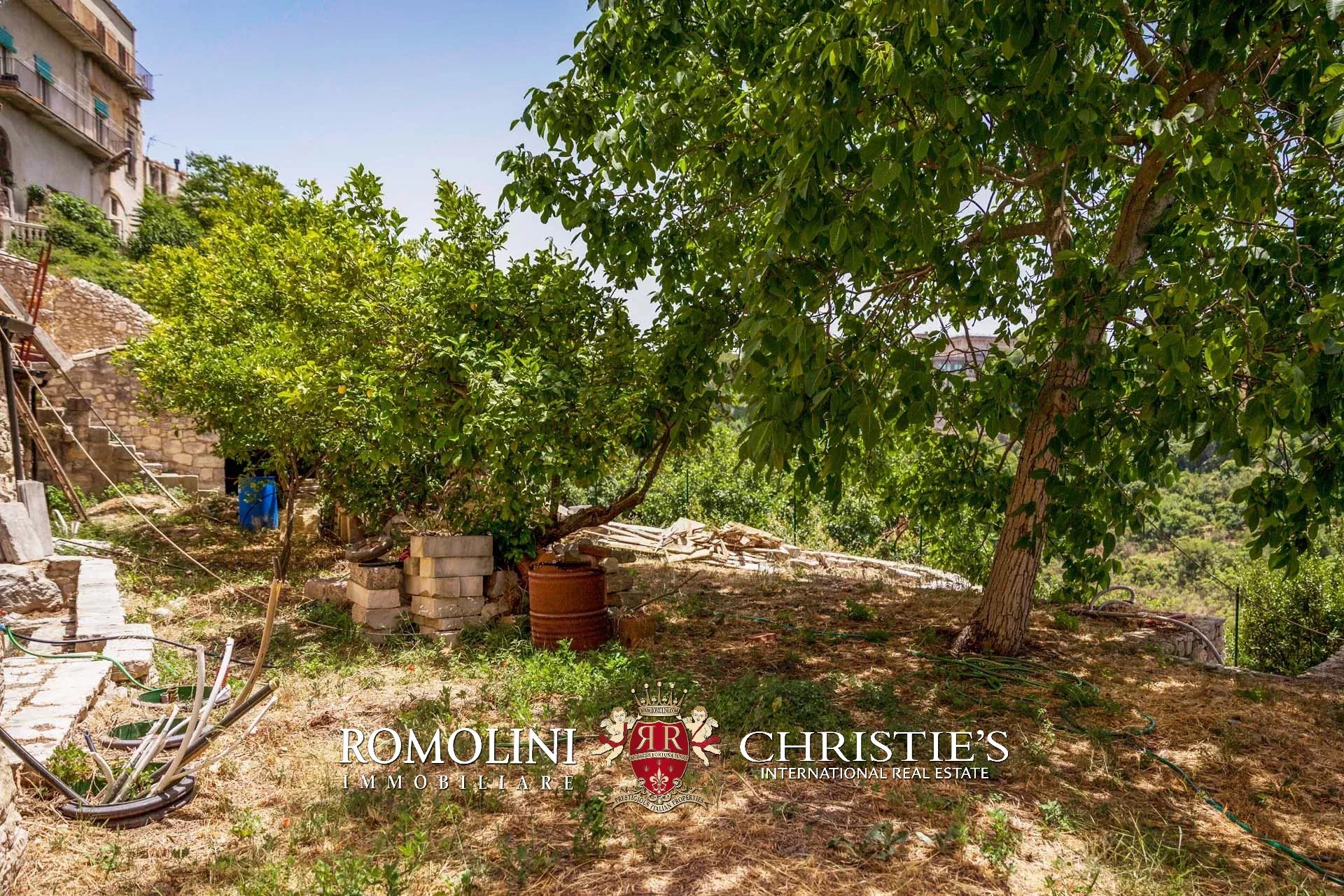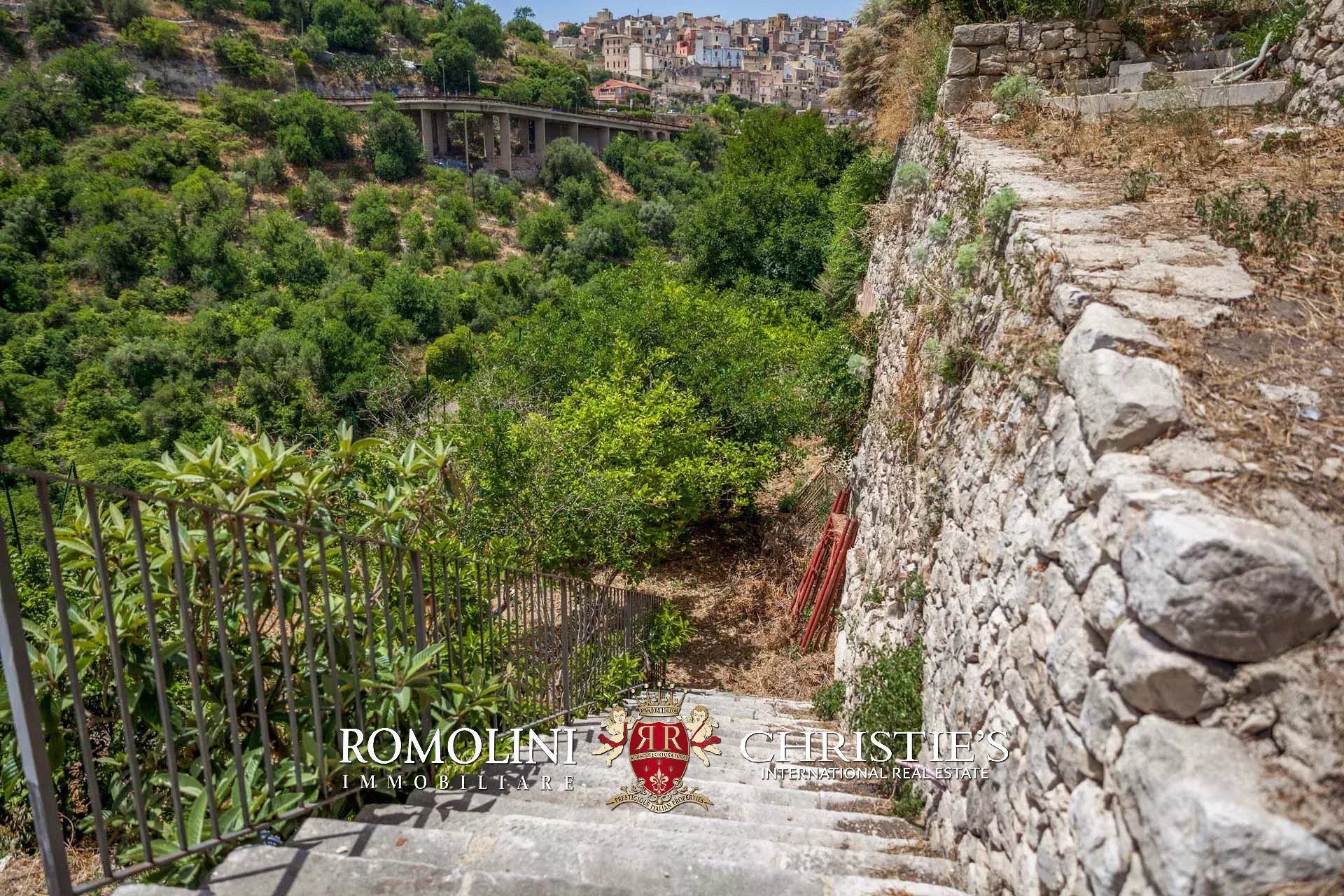 Questa proprietà si trova sulla scogliera di Ragusa Ibla, lungo il tragitto delle vecchie mura che circondavano il centro storico della città. Con i suoi 495 m² di superficie, il compendio si compone di quattro fabbricati (in vario stato di manutenzione, ma tutti da ristrutturare e/o completare) che potrebbero essere convertiti sia in una caratteristica abitazione privata che in un attività ricettiva di tipo B&B. Il giardino di 3.000 m² è distribuito su una serie di terrazze in pietra e ospita piante da frutto, aromatiche e un laghetto per la realizzazione di una piscina.