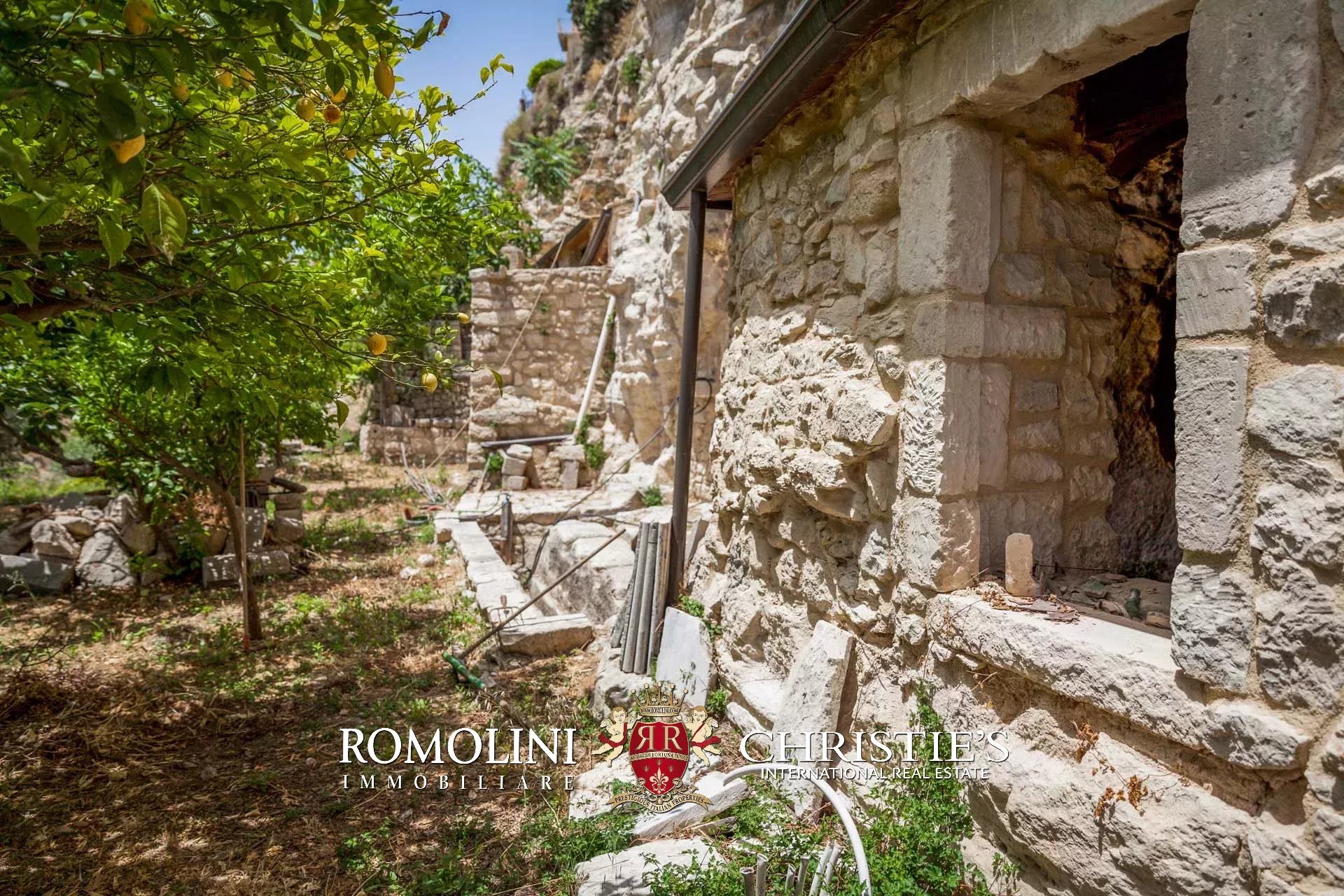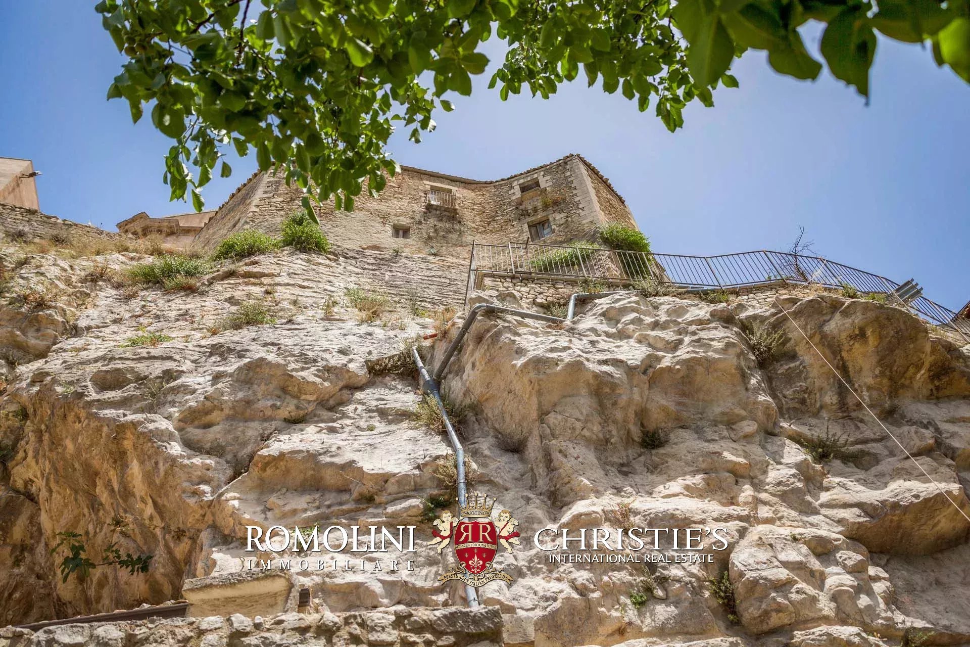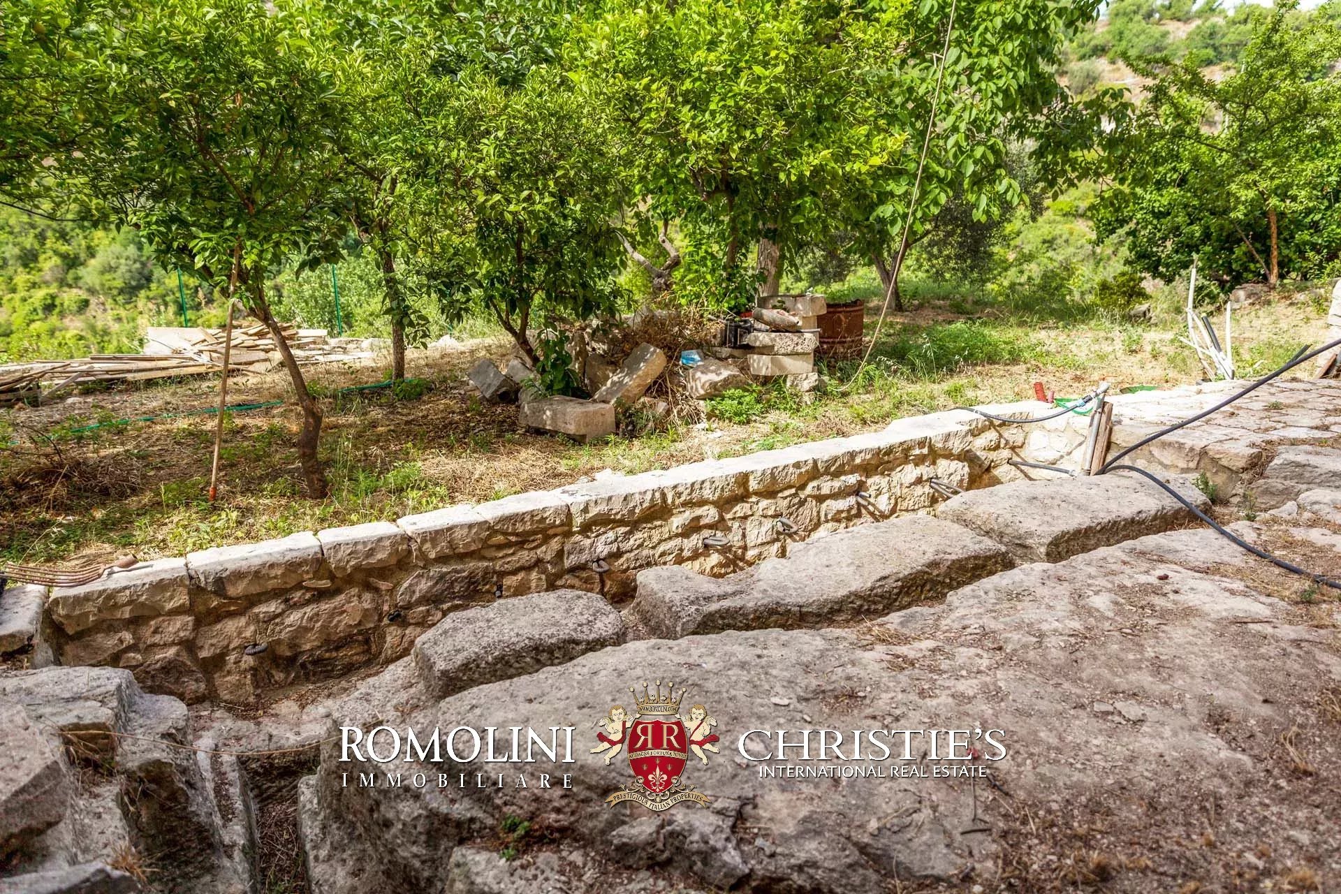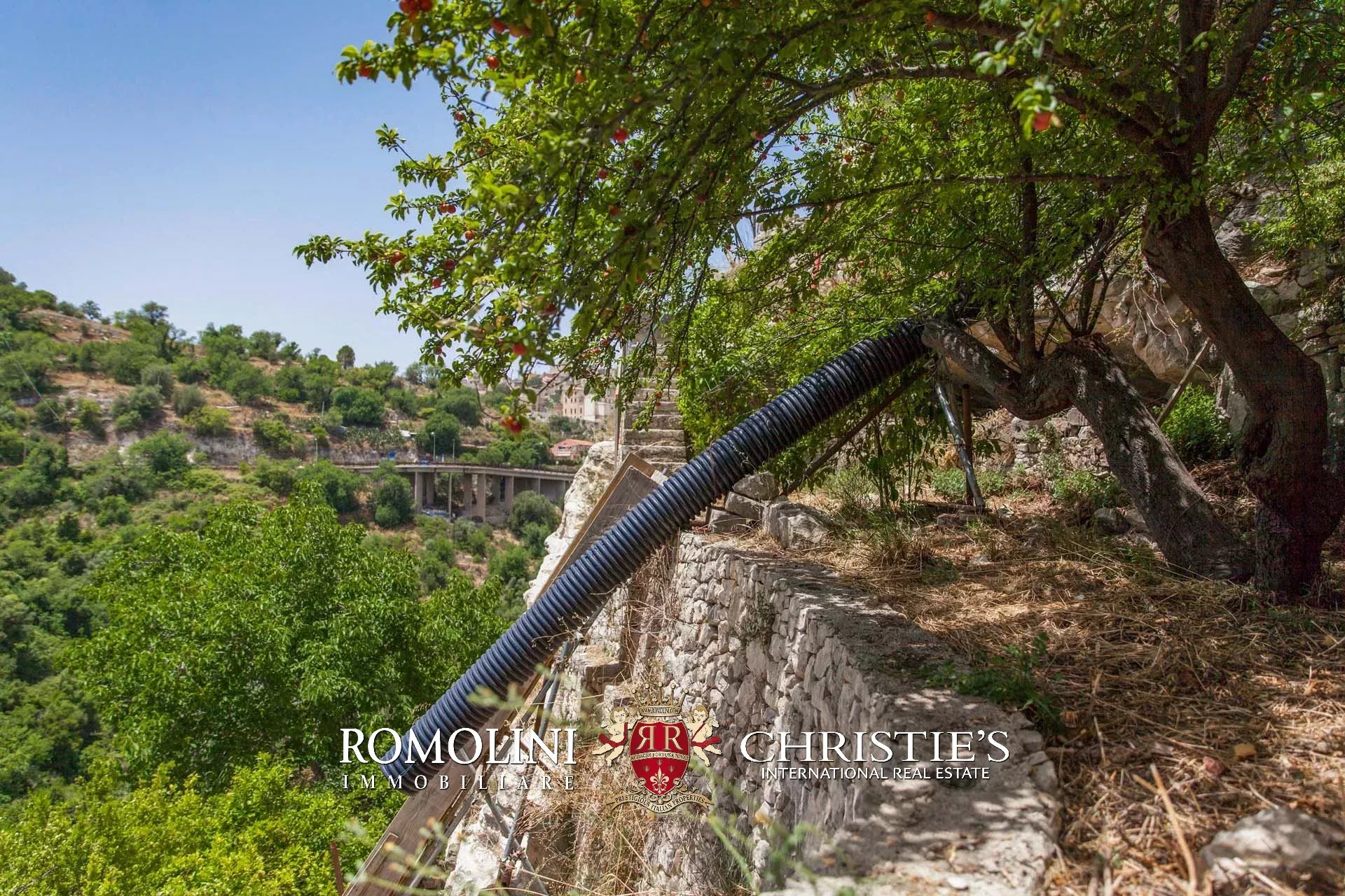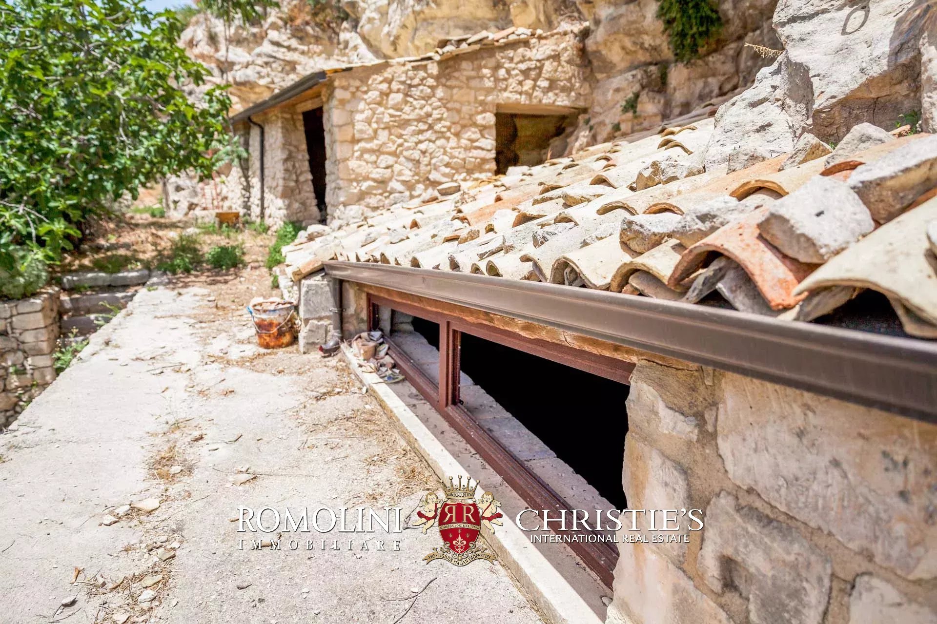 Questa proprietà si trova sulla scogliera di Ragusa Ibla, lungo il tragitto delle vecchie mura che circondavano il centro storico della città. Con i suoi 495 m² di superficie, il compendio si compone di quattro fabbricati (in vario stato di manutenzione, ma tutti da ristrutturare e/o completare) che potrebbero essere convertiti sia in una caratteristica abitazione privata che in un attività ricettiva di tipo B&B. Il giardino di 3.000 m² è distribuito su una serie di terrazze in pietra e ospita piante da frutto, aromatiche e un laghetto per la realizzazione di una piscina.