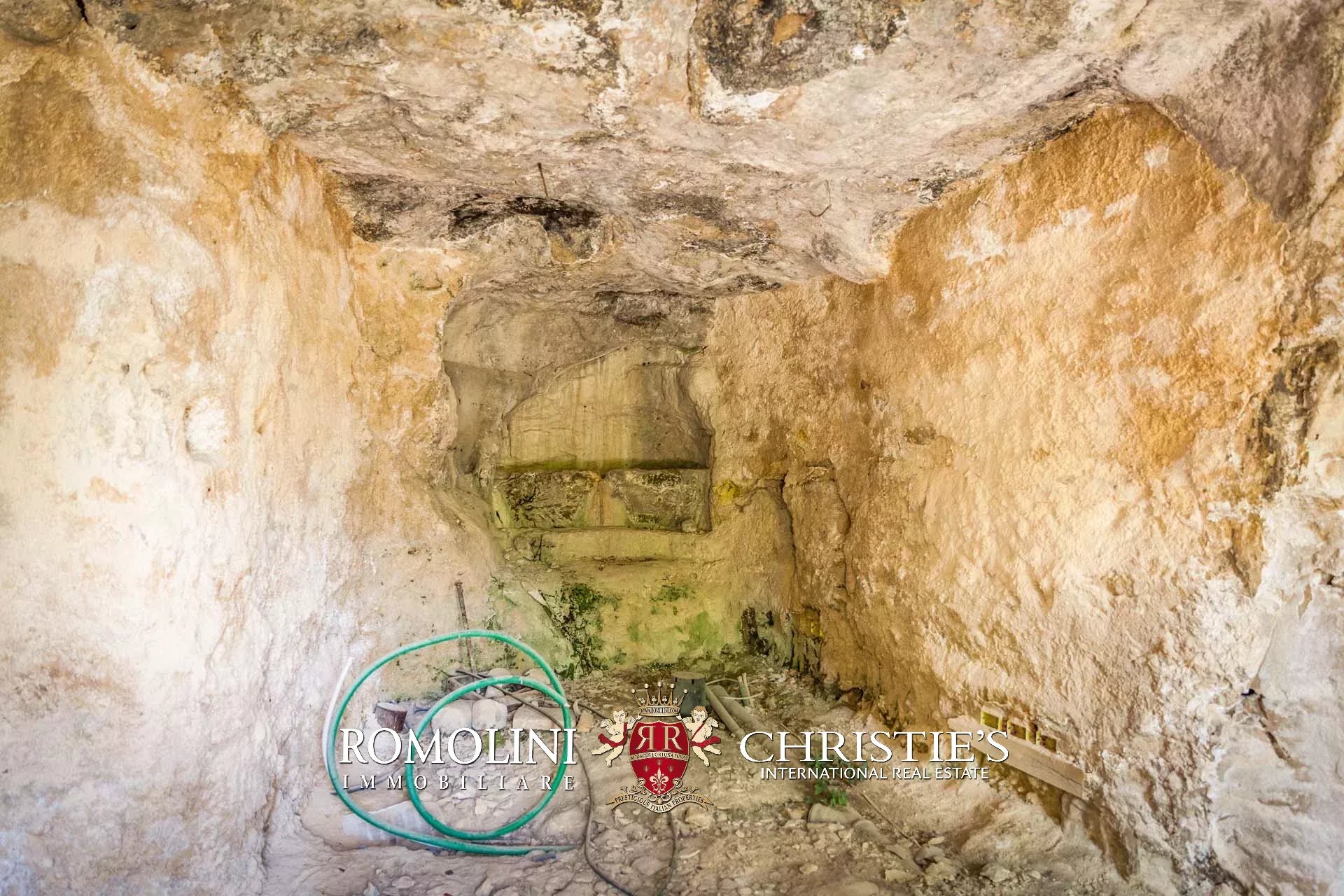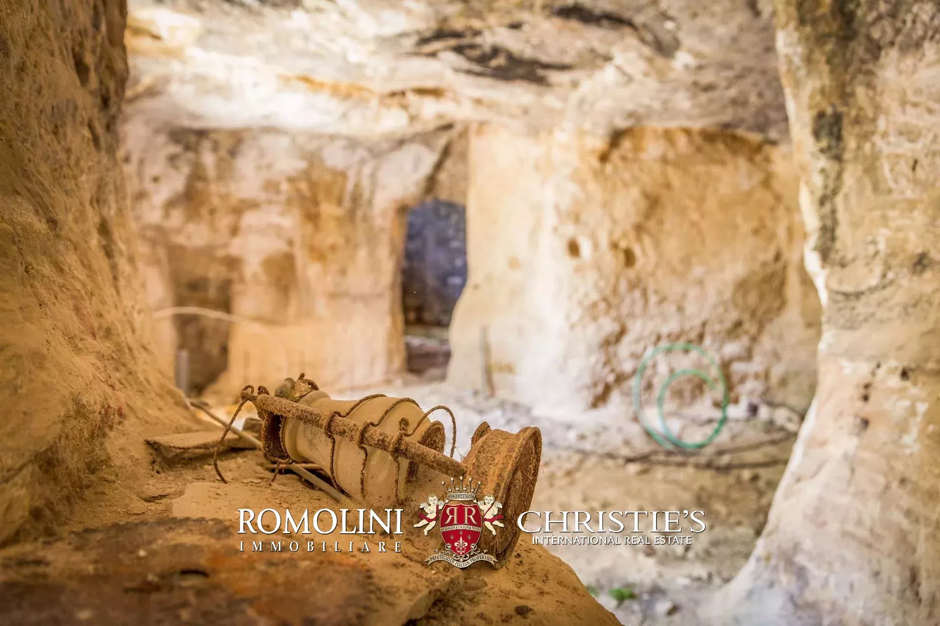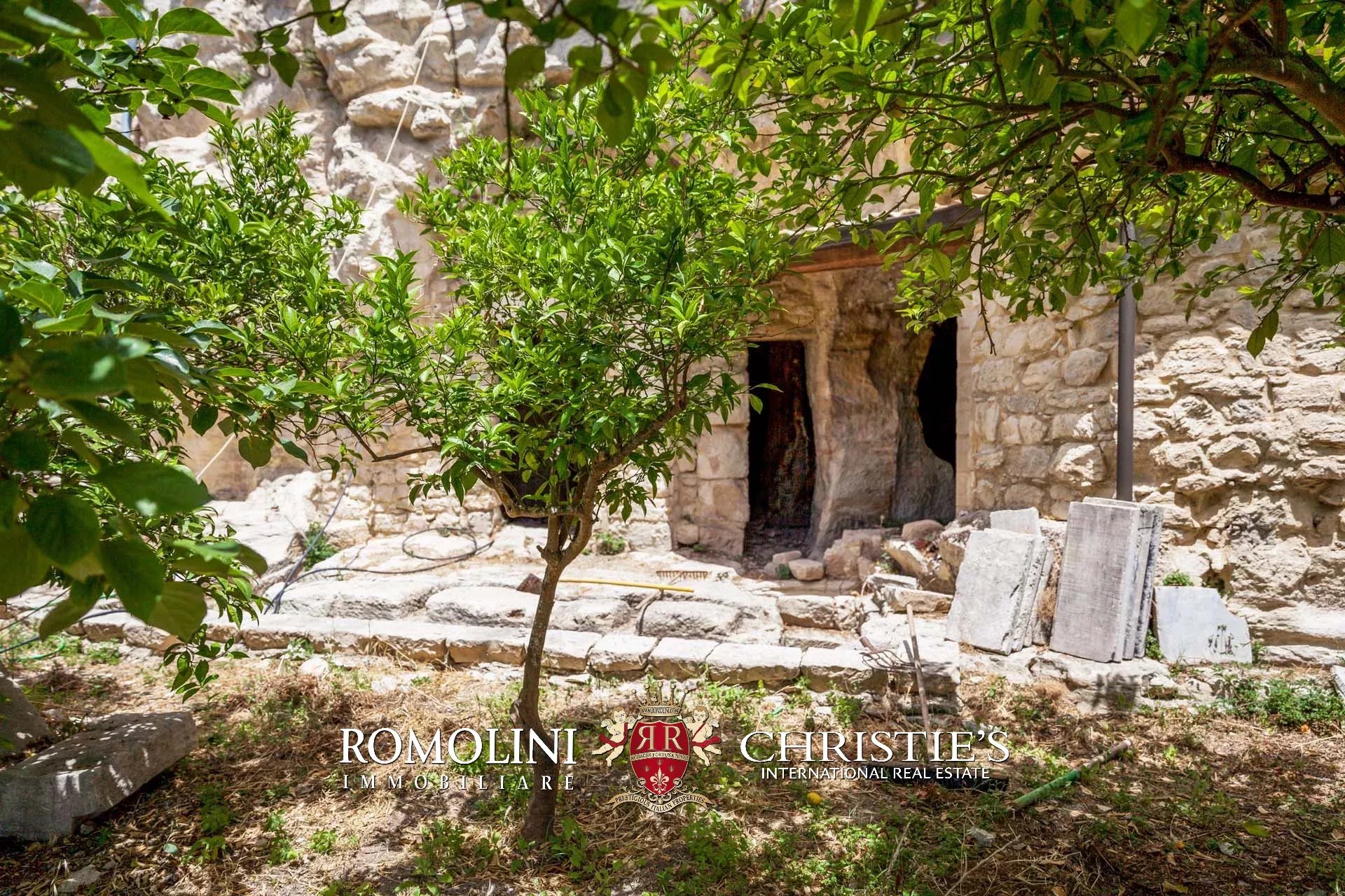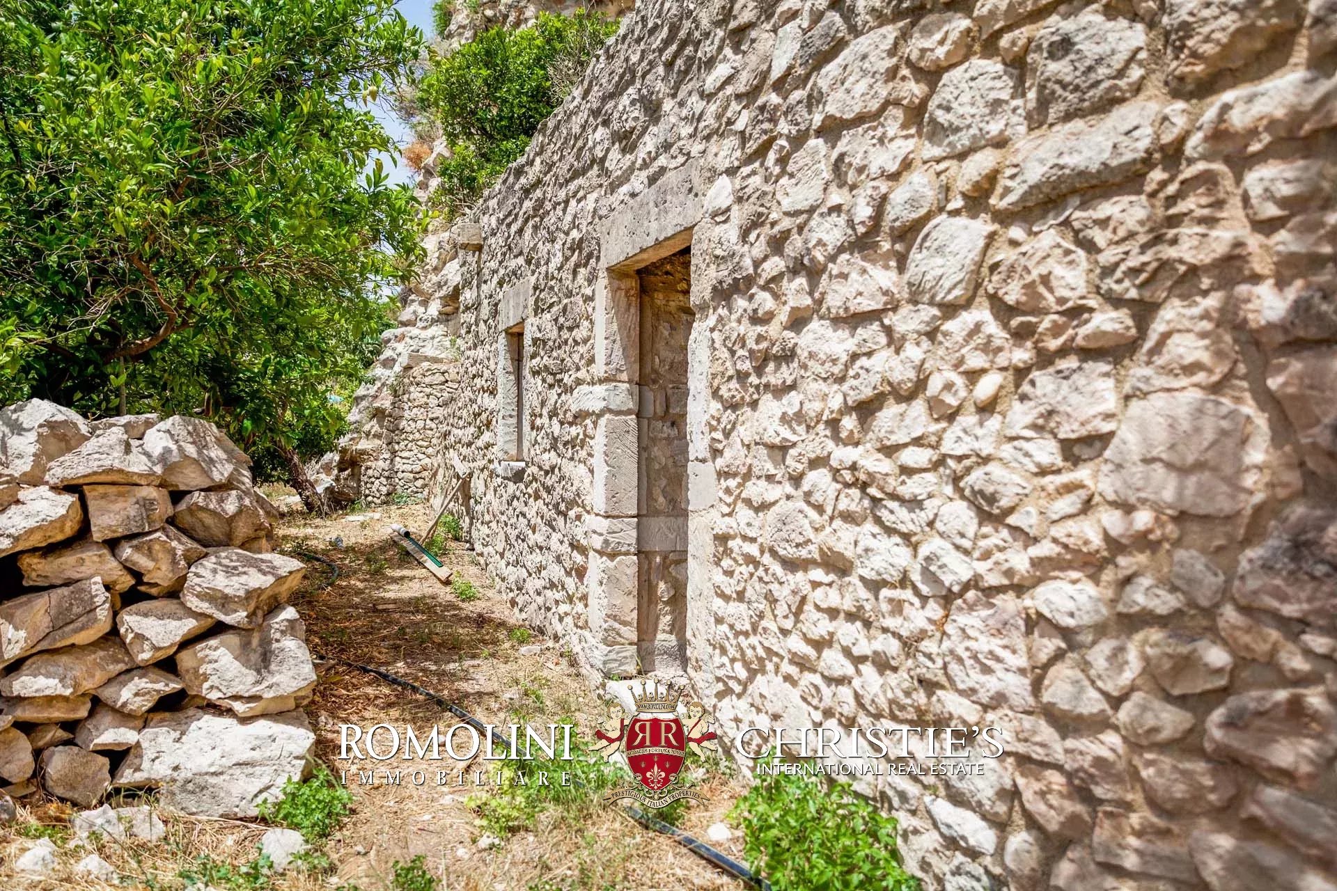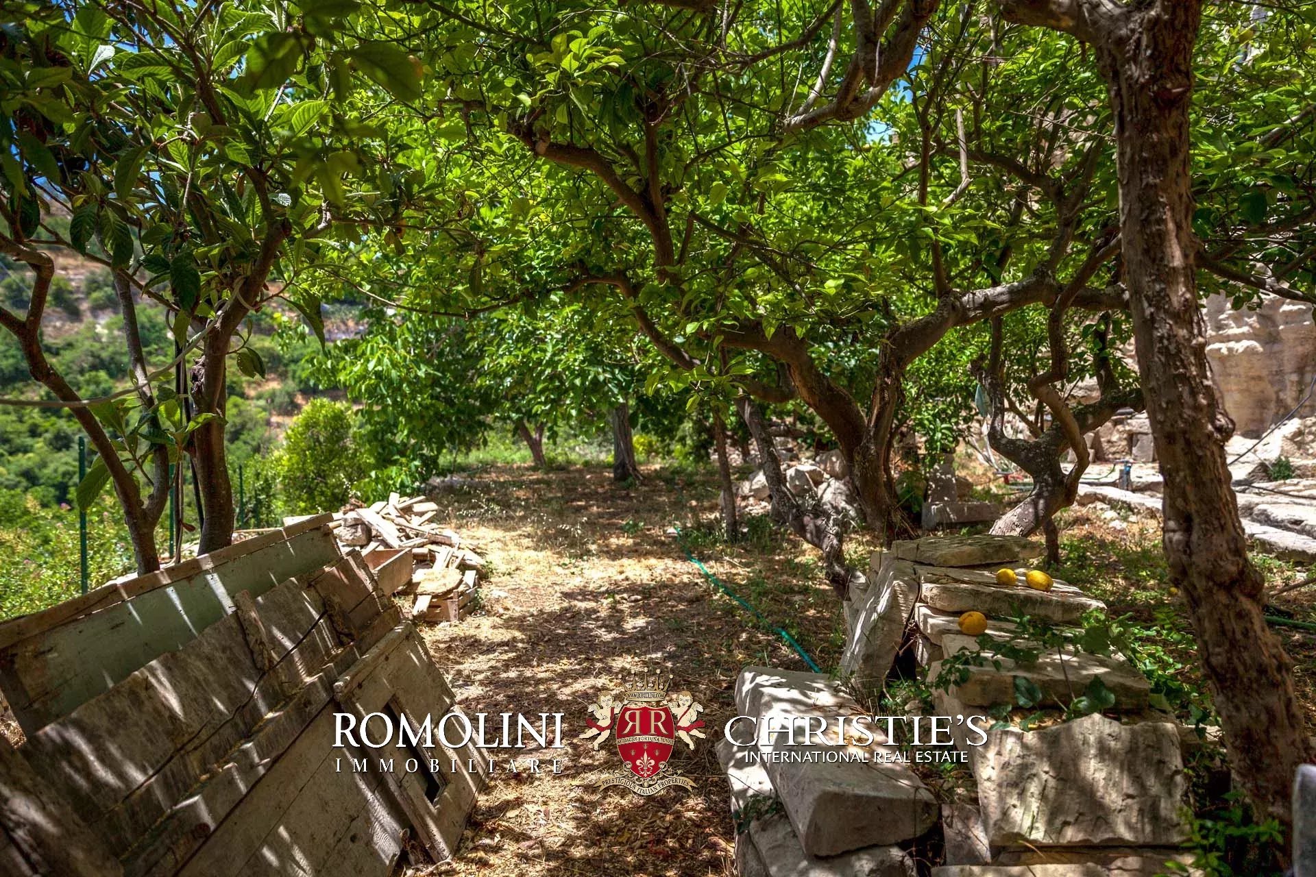 Questa proprietà si trova sulla scogliera di Ragusa Ibla, lungo il tragitto delle vecchie mura che circondavano il centro storico della città. Con i suoi 495 m² di superficie, il compendio si compone di quattro fabbricati (in vario stato di manutenzione, ma tutti da ristrutturare e/o completare) che potrebbero essere convertiti sia in una caratteristica abitazione privata che in un attività ricettiva di tipo B&B. Il giardino di 3.000 m² è distribuito su una serie di terrazze in pietra e ospita piante da frutto, aromatiche e un laghetto per la realizzazione di una piscina.