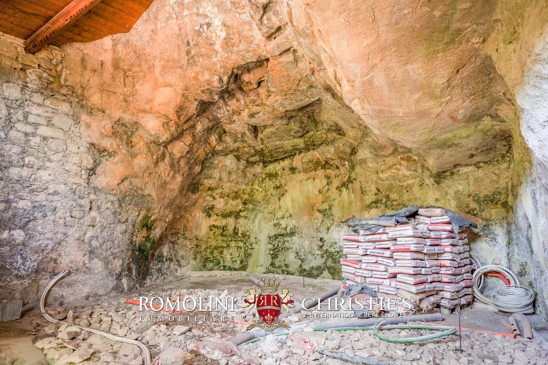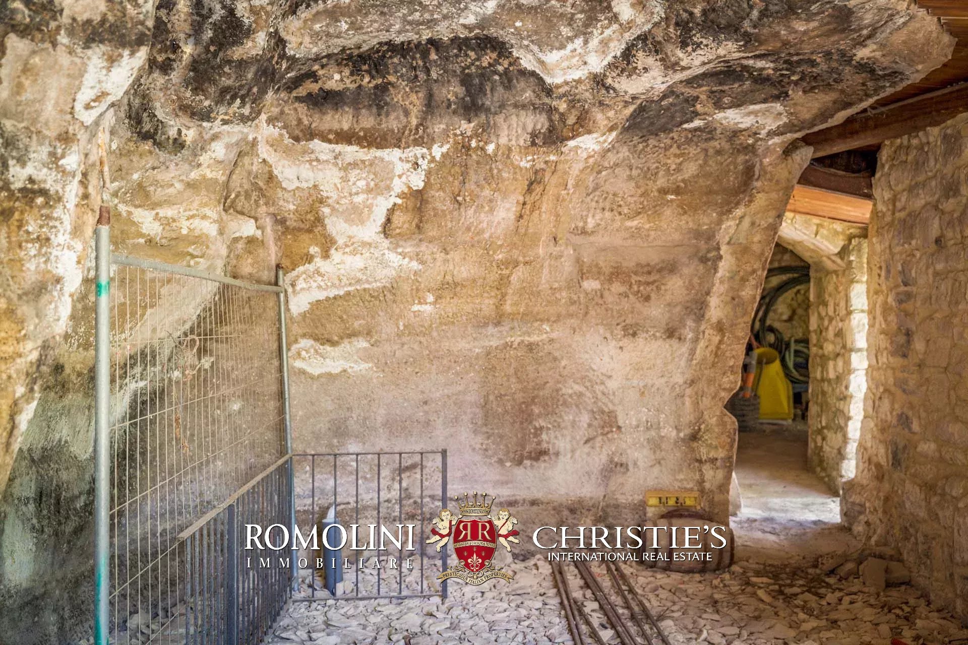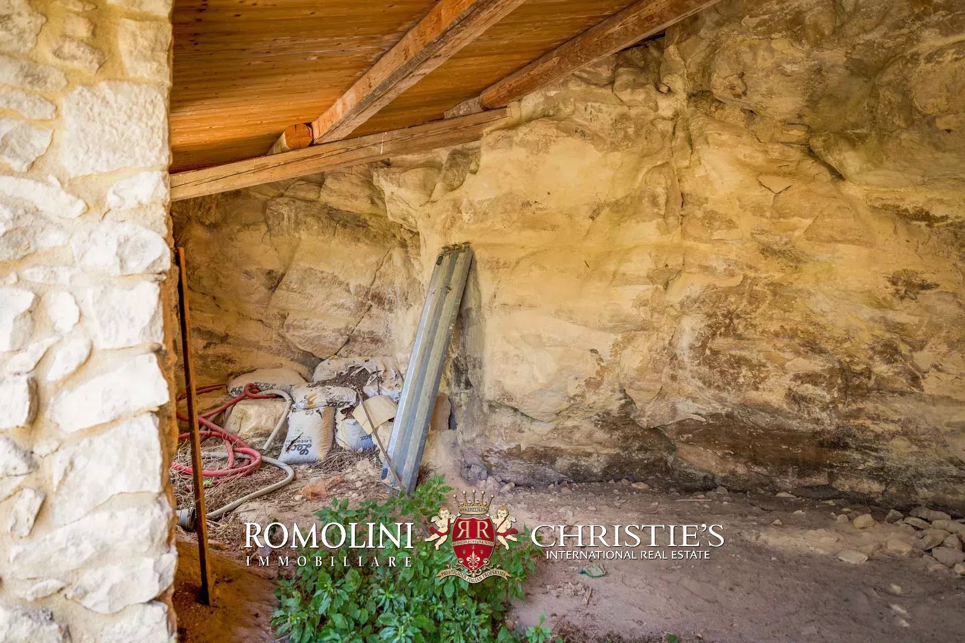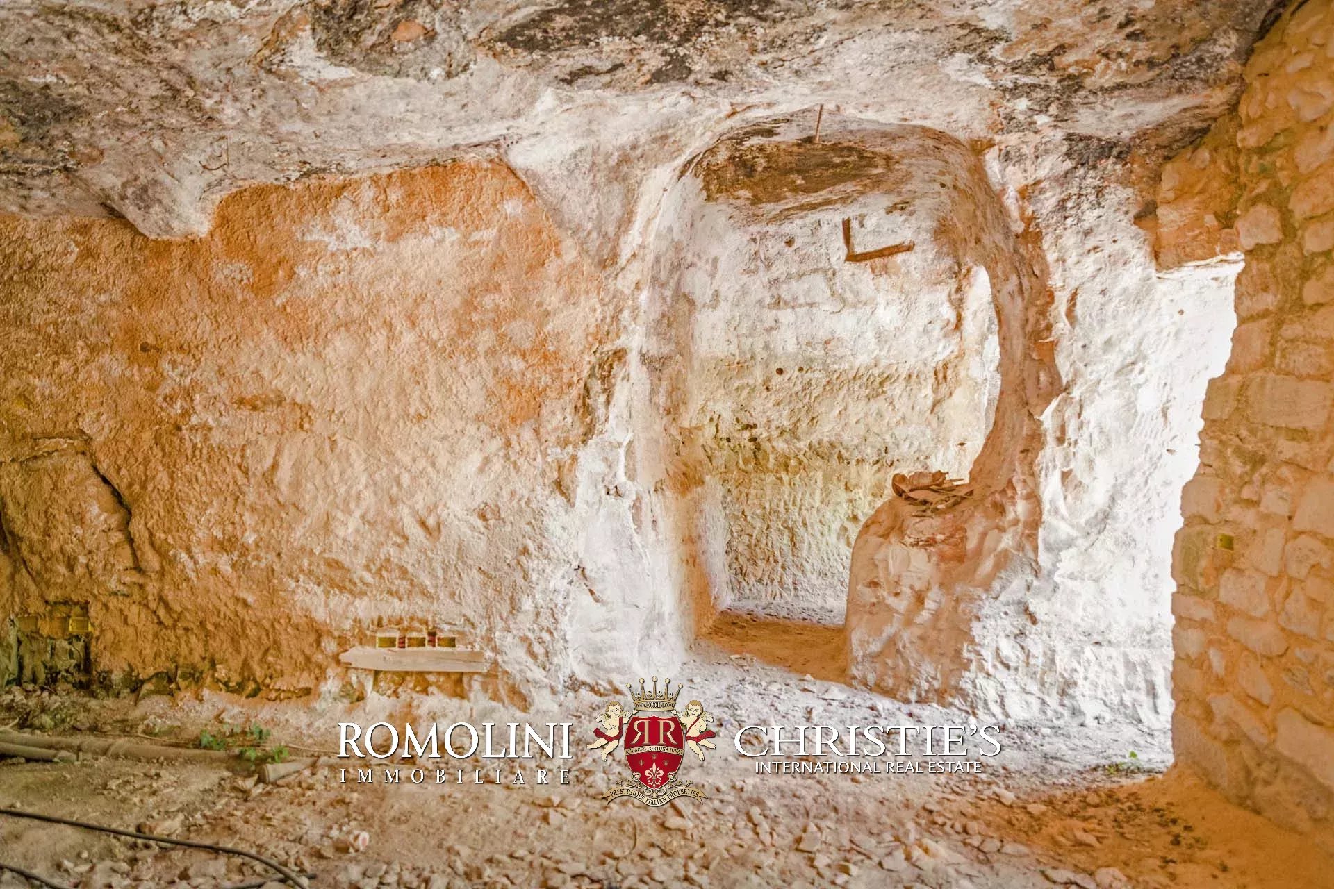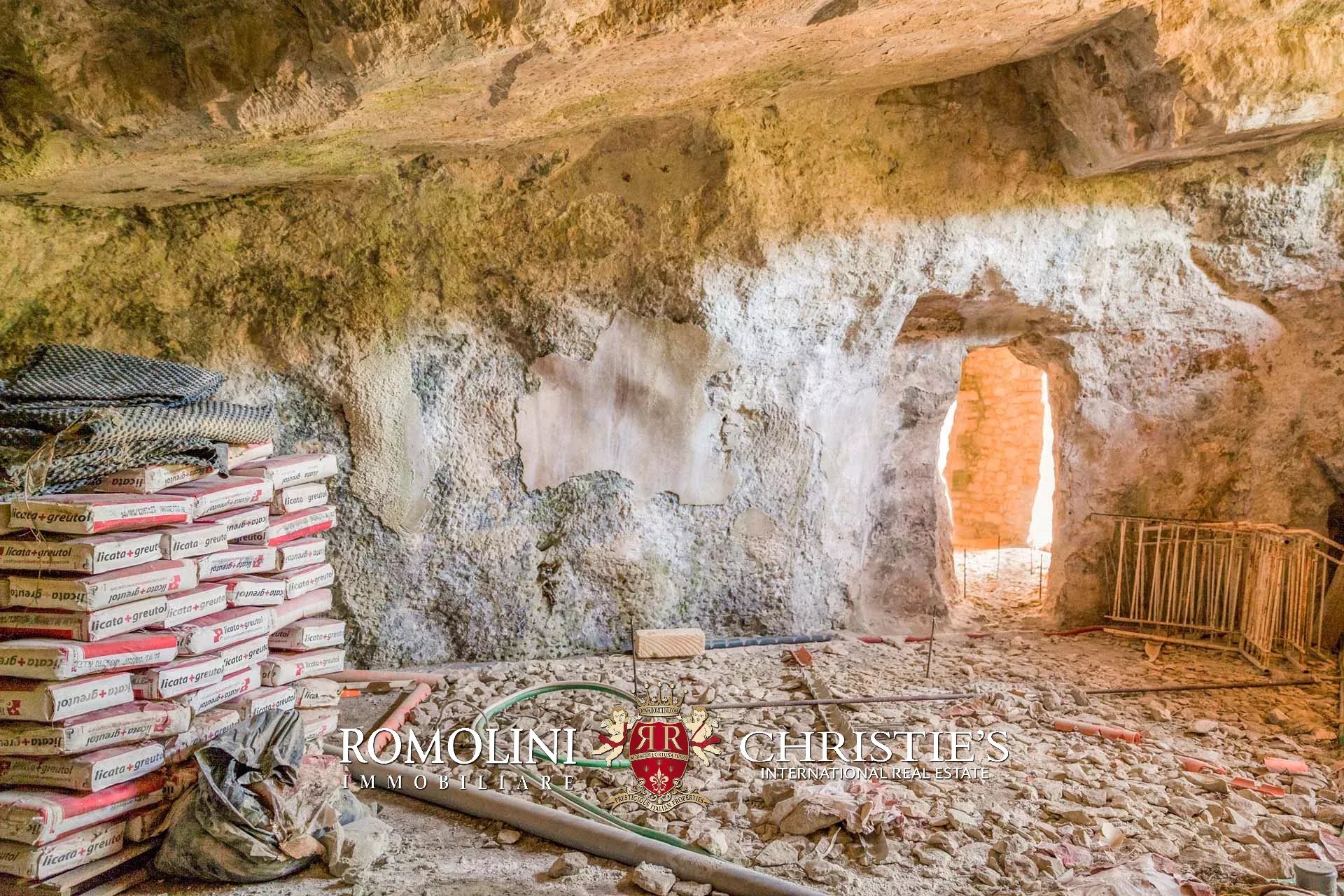 - Il fabbricato A (220 m²) è un edificio scavato parzialmente nella rupe di Ragusa, con vani rivestiti in cocciopesto (ex cisterne dell’acqua), parte delle pavimentazioni in pietra e coperture interamente ristrutturate. L’edificio dispone già di allaccio per acqua, gas, corrente e fognatura.
