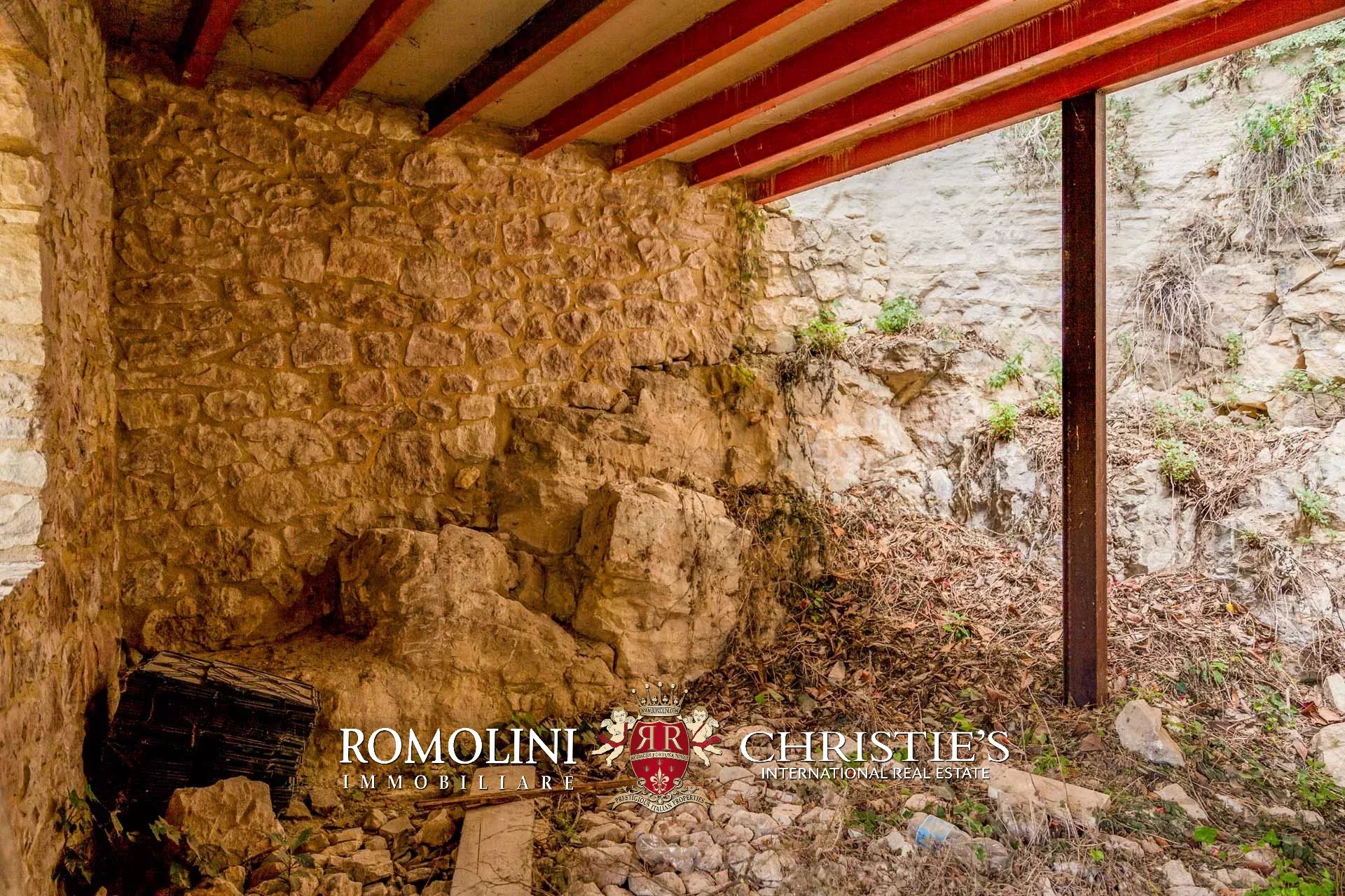 - Il fabbricato D (190 m², 3 camere e 1 bagno) è un’abitazione indipendente con accesso diretto dalla strada. Il piano terra dell’edificio (110 m²) è tecnicamente abitabile ma sono necessari interventi di restauro e ammodernamento per quanto riguarda finiture e impianti. L’abitazione si compone attualmente di ingresso, cucina abitabile con zona pranzo e dispensa, disimpegno, tre camere e bagno. Il tetto ospita una bellissima terrazza panoramica (30 m²) mentre il seminterrato (80 m²) è ancora nelle condizioni originali ma necessita di una ristrutturazione completa.