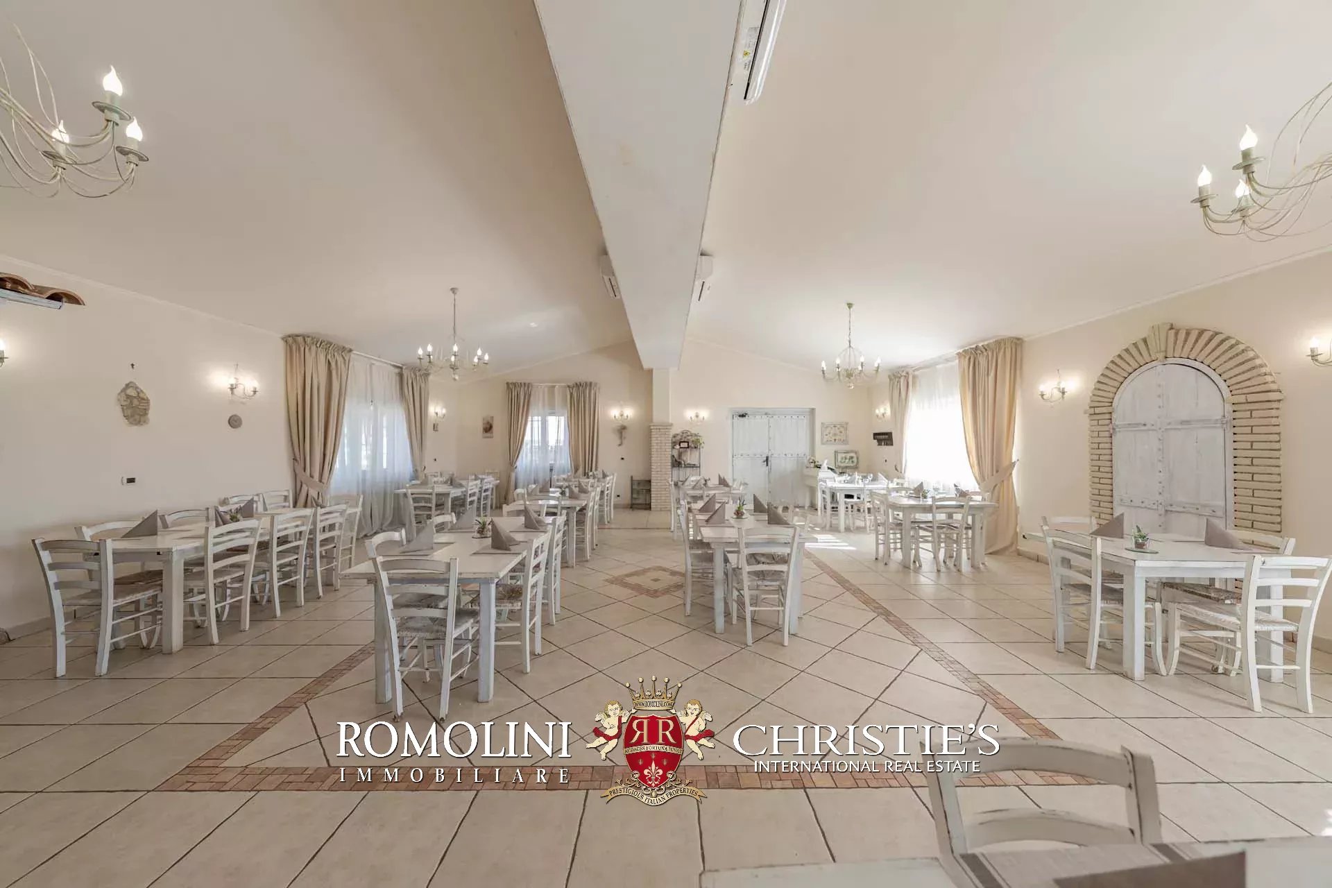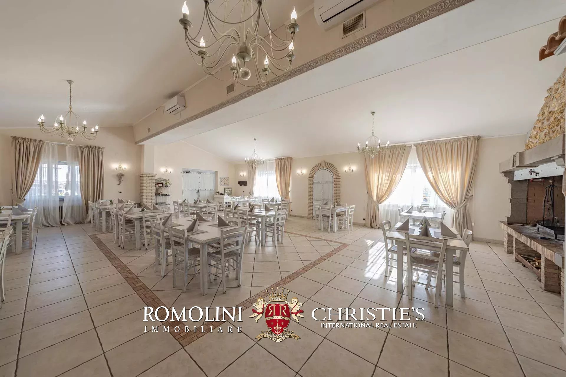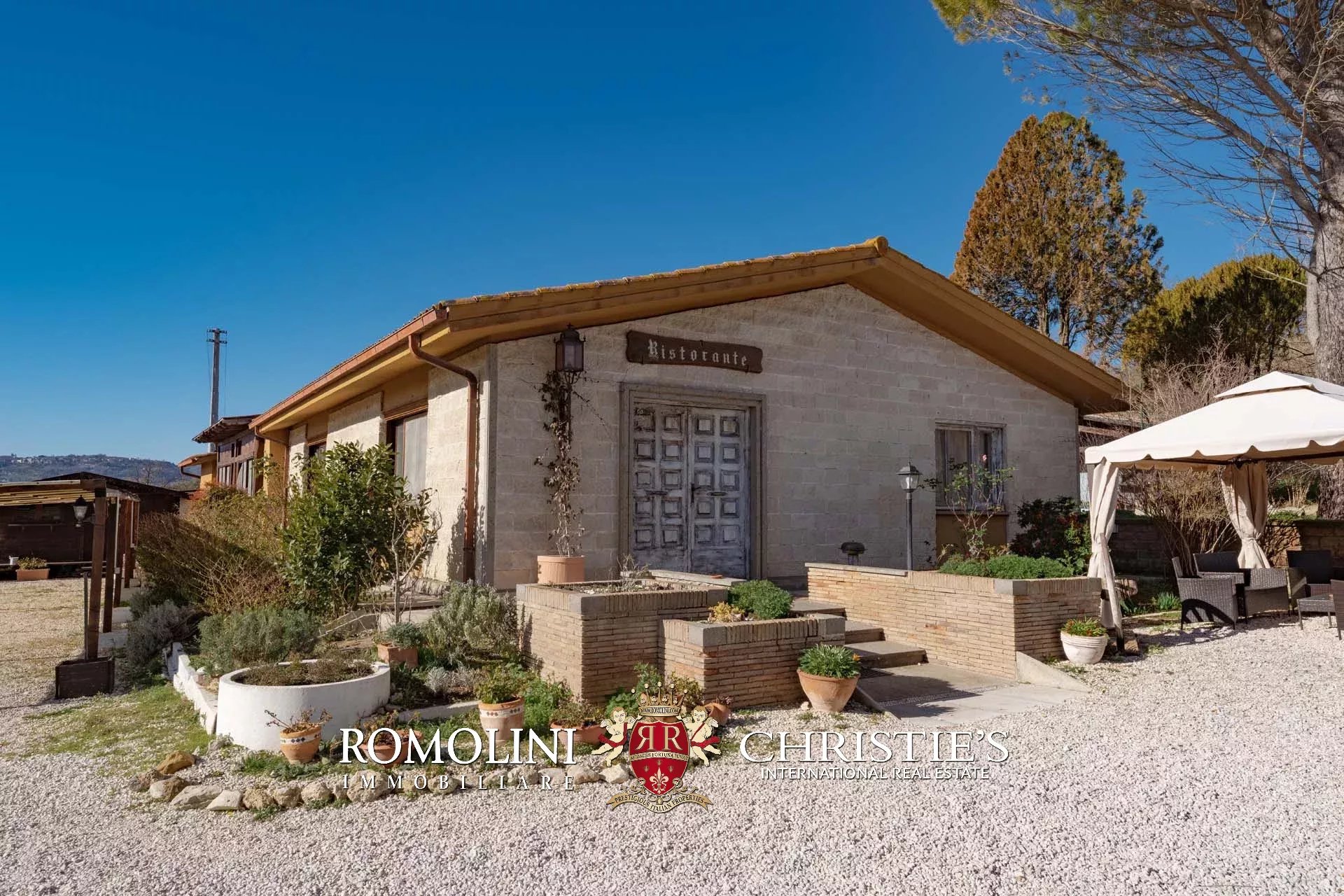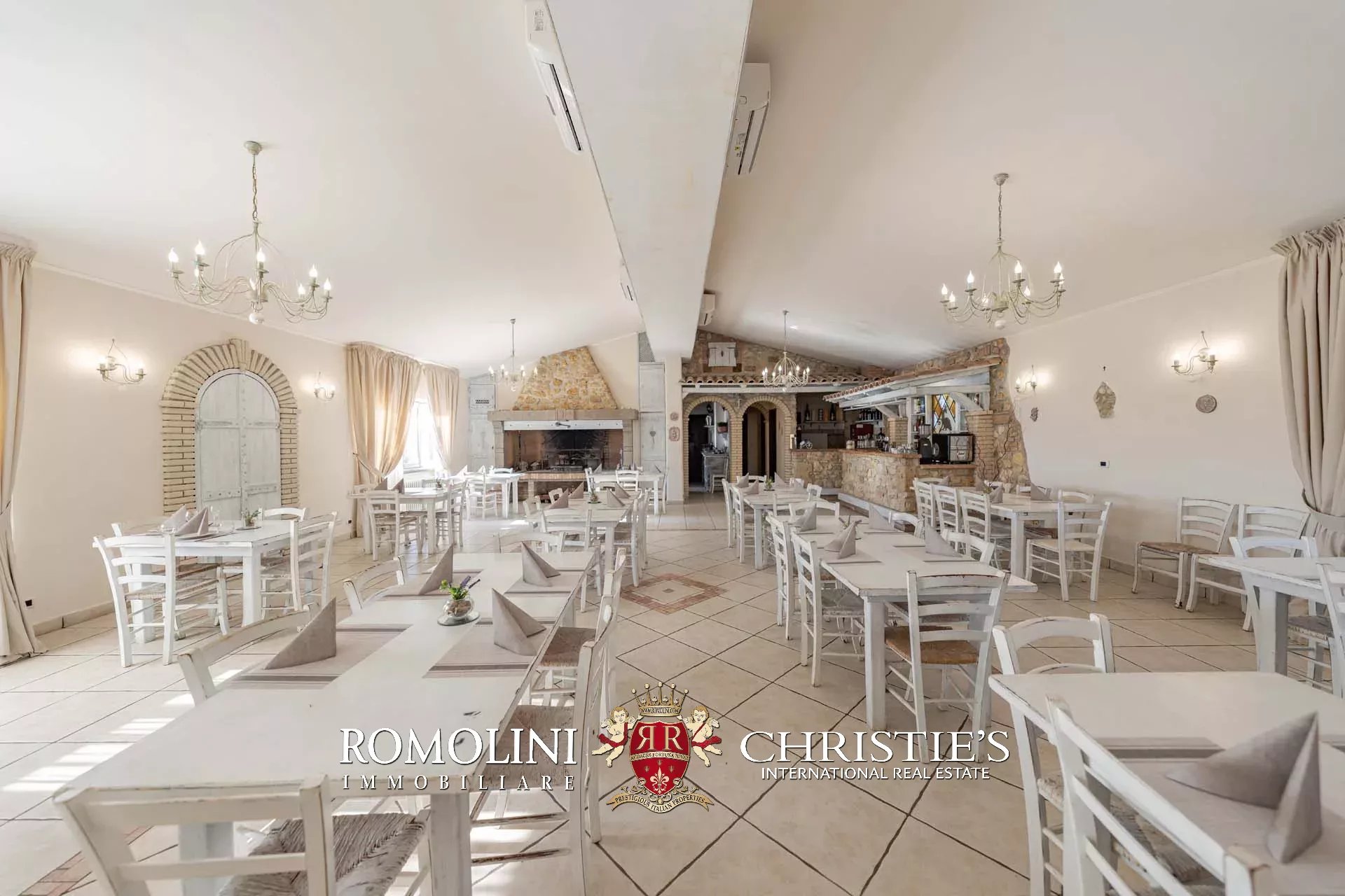 Di fronte al castello si trova il ristorante (260 m², 2 bagni), costruito di recente ma rifinito con pietre locali e travi in castagno così modo da ricordare gli edifici rustici delle campagne umbre. All’interno, una grande sala per gli ospiti è decorata da un grande camino a parete, mentre sul retro dell’edificio si trovano la cucina professionale, una dispensa, un grande ripostiglio, un ufficio e i bagni a uso degli ospiti.