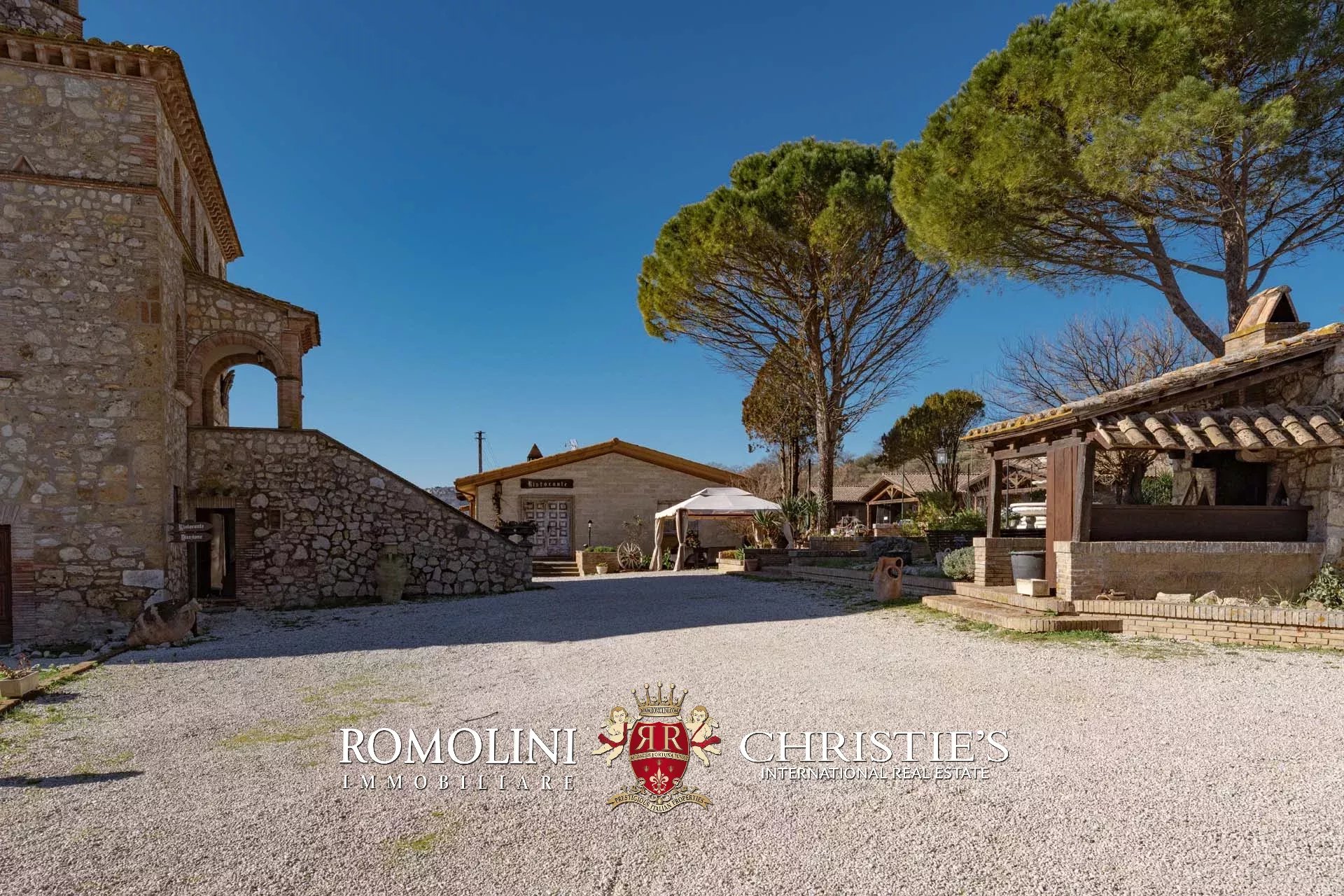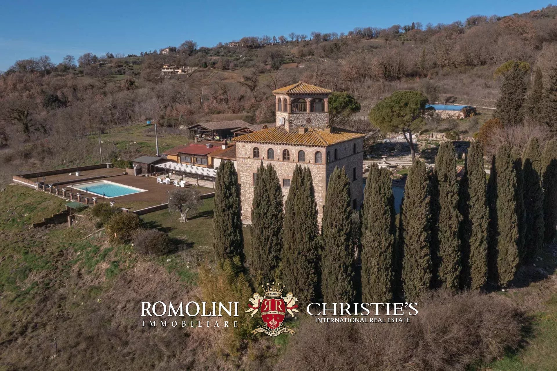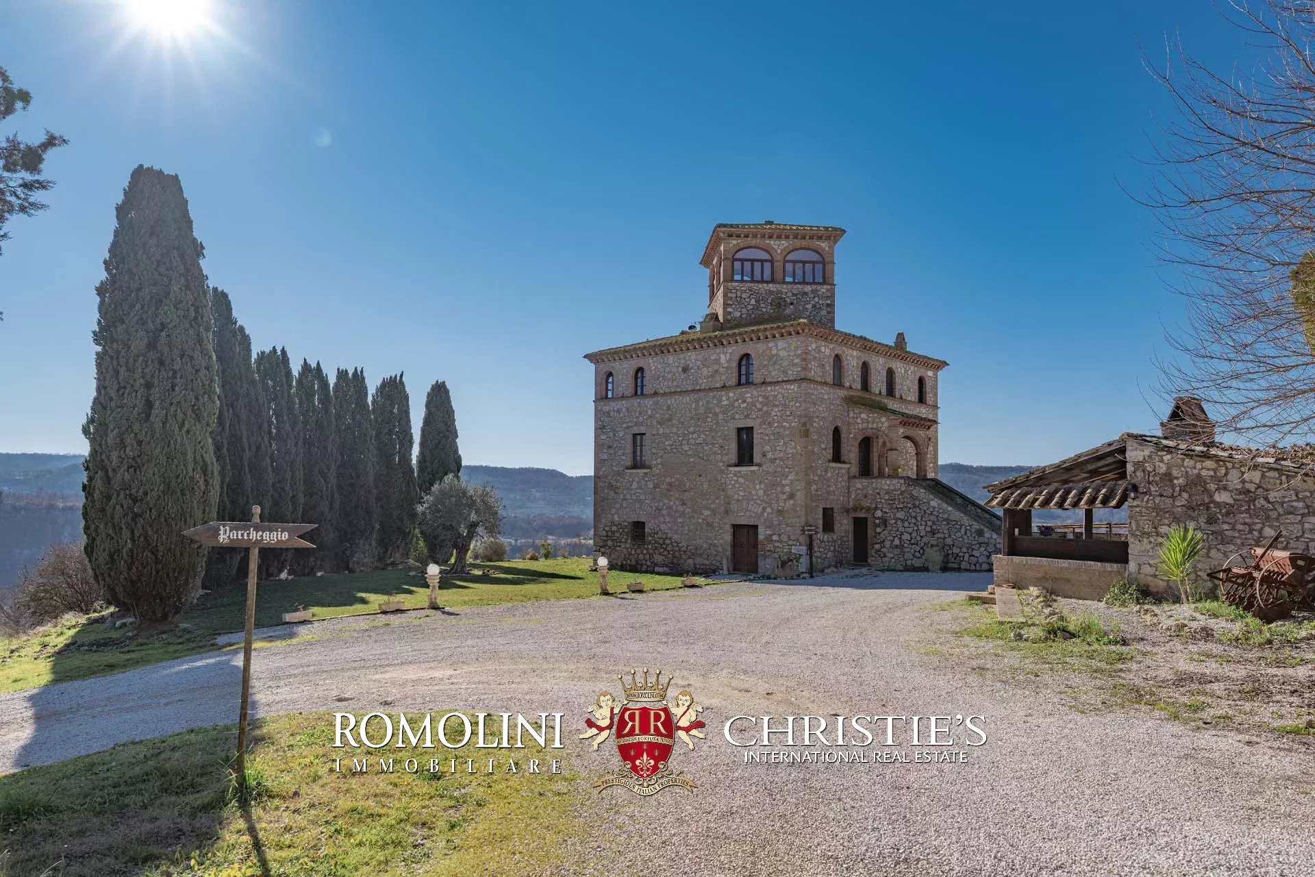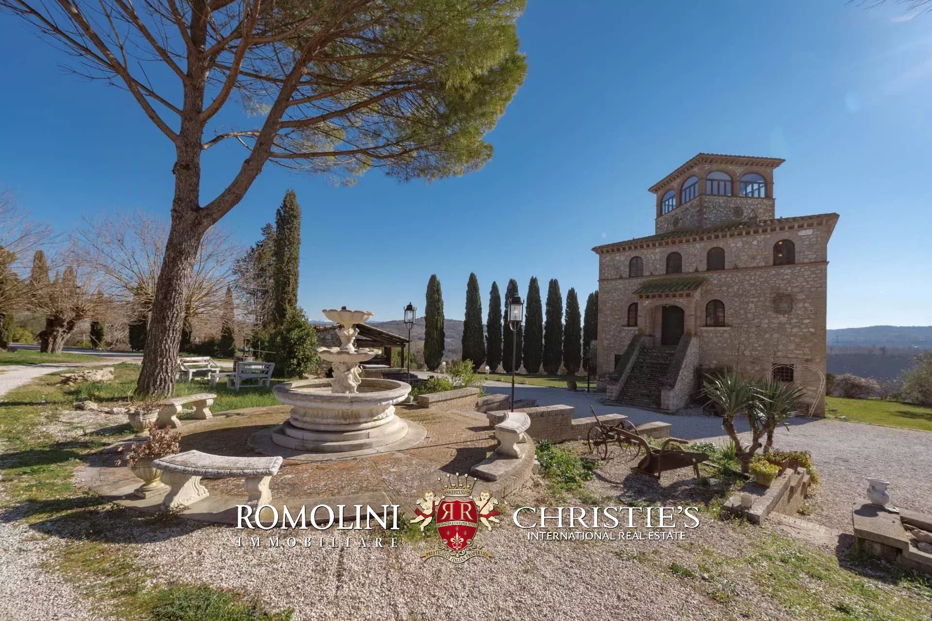 Questo castelletto medievale si trova al confine tra Umbria e Lazio, non lontano da un caratteristico borgo medievale. La proprietà (oltre 2.300 m² in totale) si compone del castelletto (6 camere per gli ospiti) con centro benessere, un ristorante, tre villette (14 camere, attualmente usate dai proprietari), la stalla per gli animali (350 m²) e un grande capannone per gli attrezzi (1.200 m²). Tutto attorno, la tenuta si stende su circa 20,1 ettari di terra e dispone di un piccolo oliveto (50 piante). L’azienda si trova lungo il cosiddetto Cammino della Luce, un suggestivo percorso analogo a quello di Santiago, che collega le città di Roma e Aquileia.
