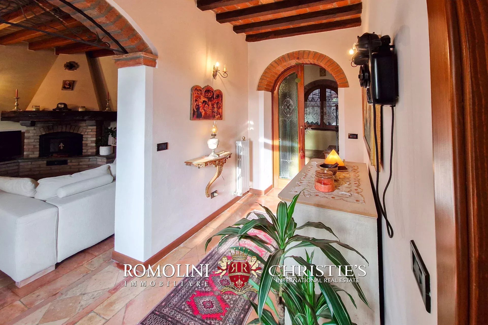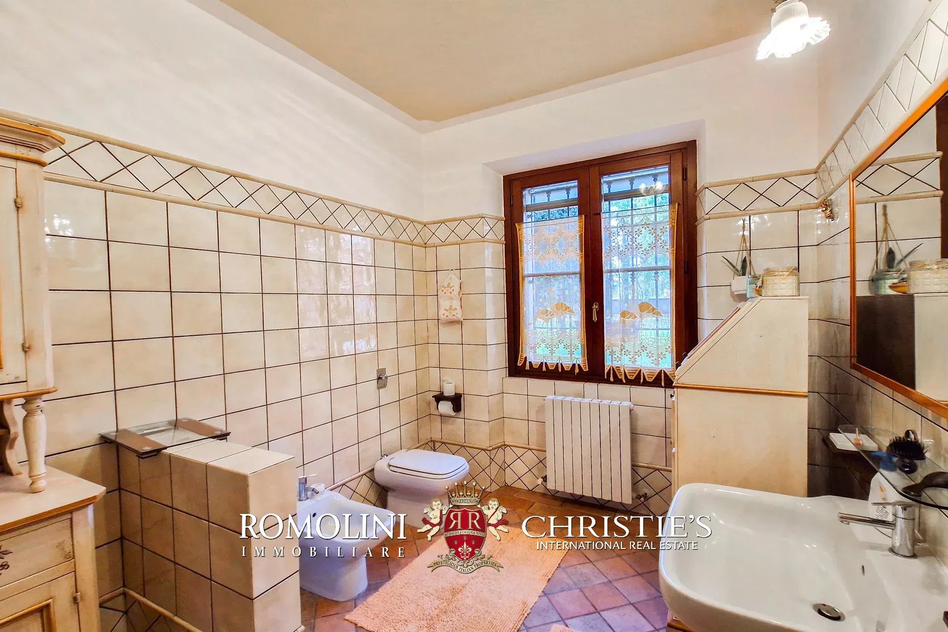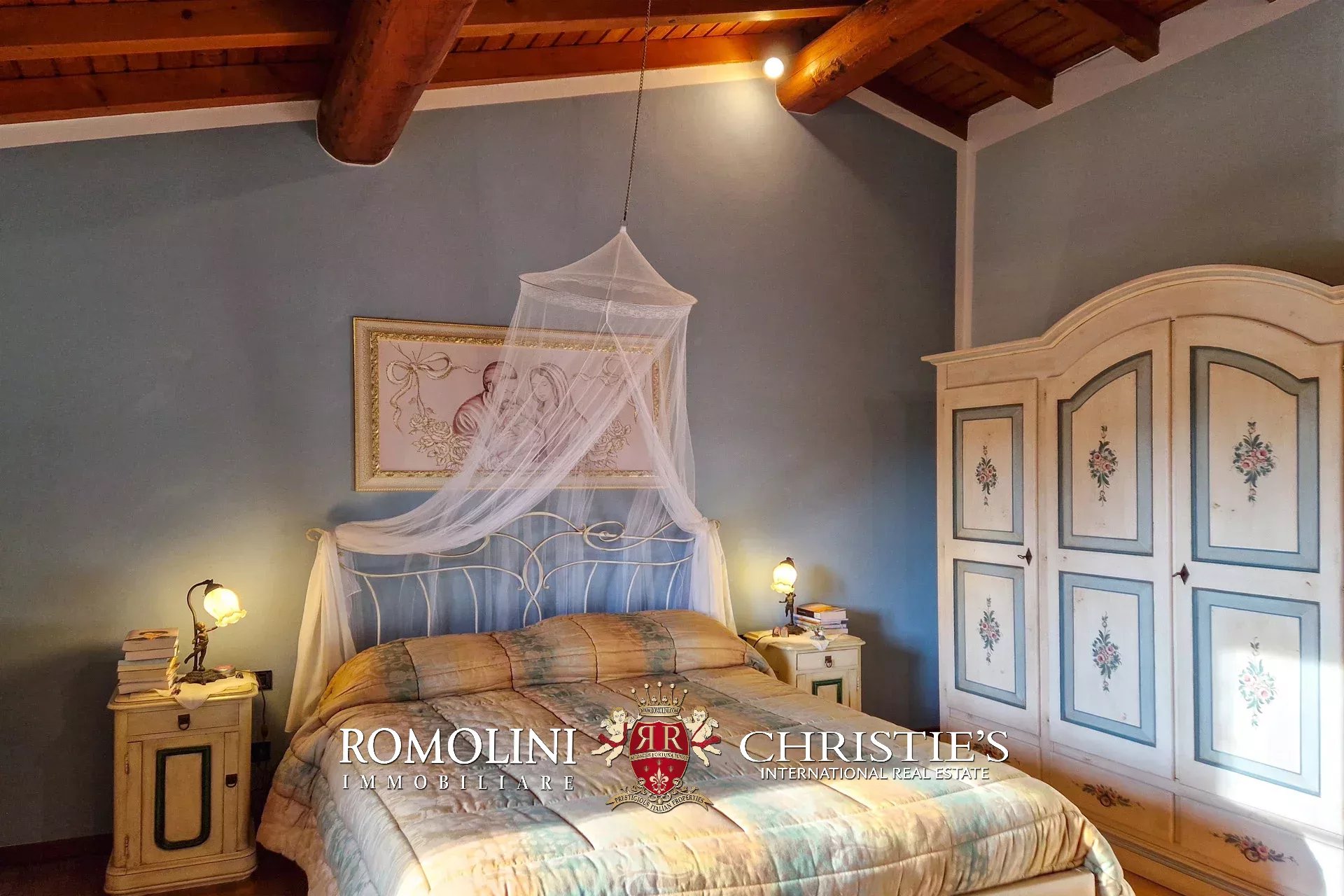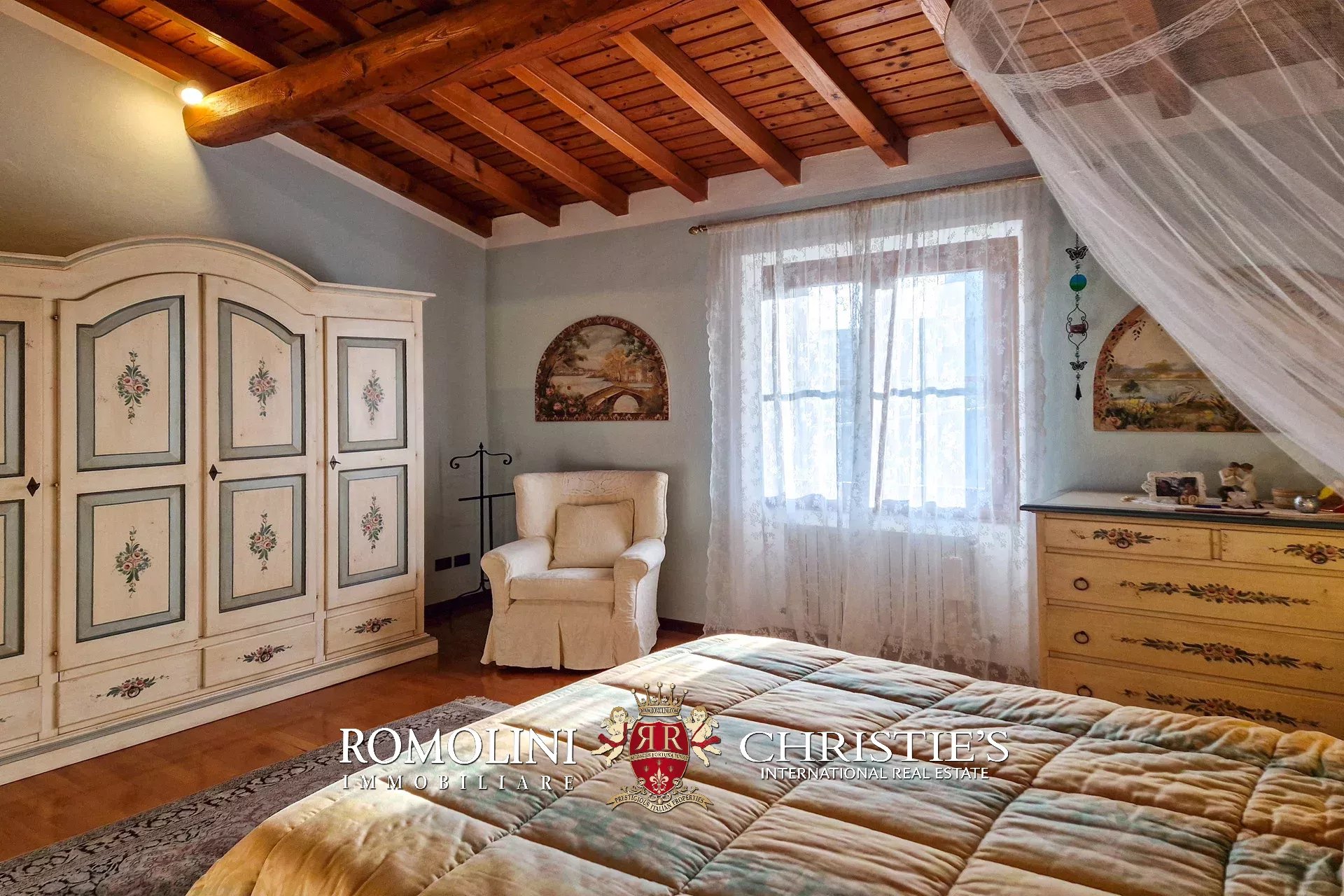 L’edificio è raggiungibile tramite un caratteristico vicolo che si dirama dalla via principale del paese. Attraversando il cancello di accesso si entra nel parco della proprietà, circa 4.500 m², circondato da alberi e delimitato sul fianco nordoccidentale da un torrente. L’ampio spazio disponibile potrebbe essere facilmente usato per posizionare una piscina o dei gazebi ombreggianti per eventi all’aperto.