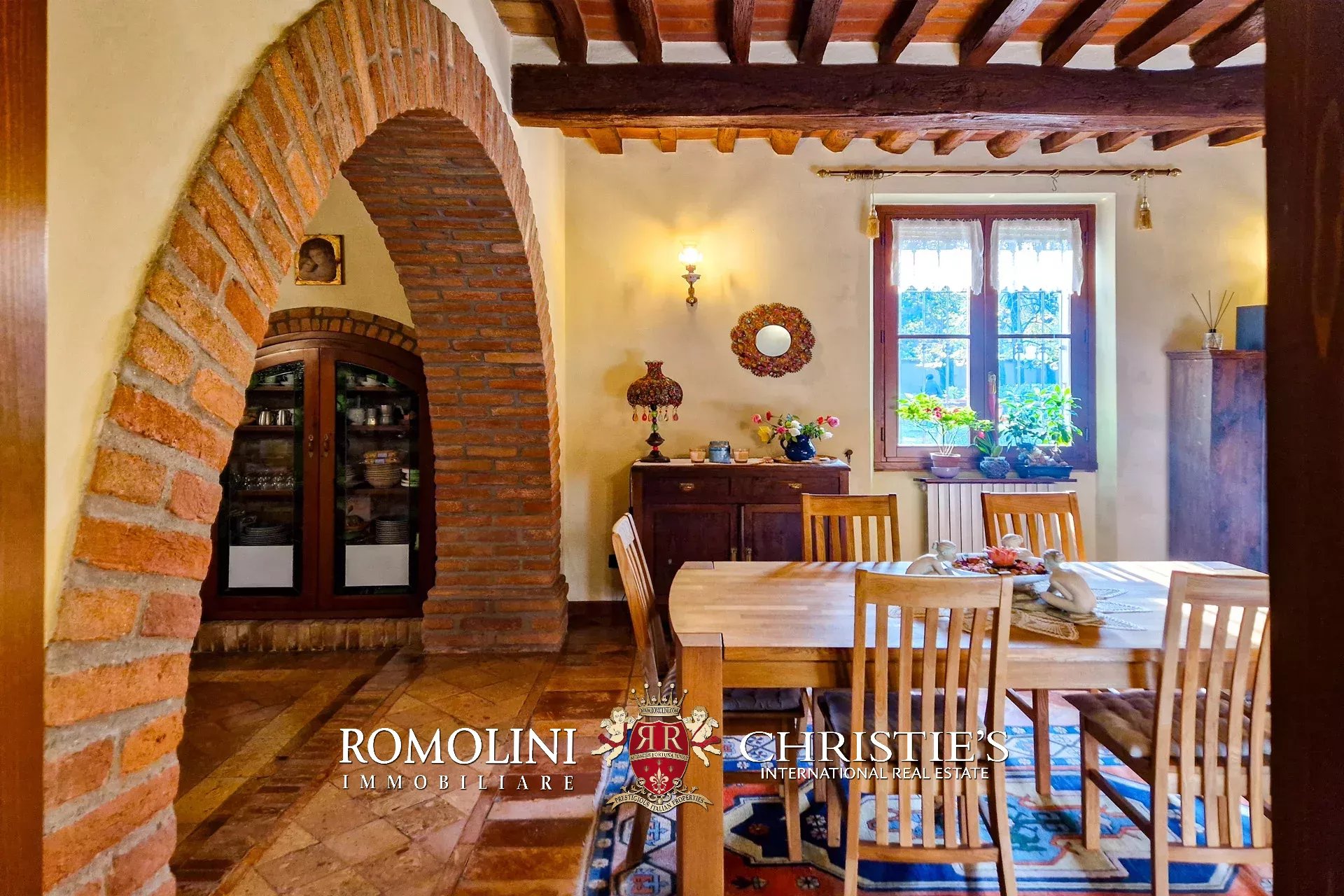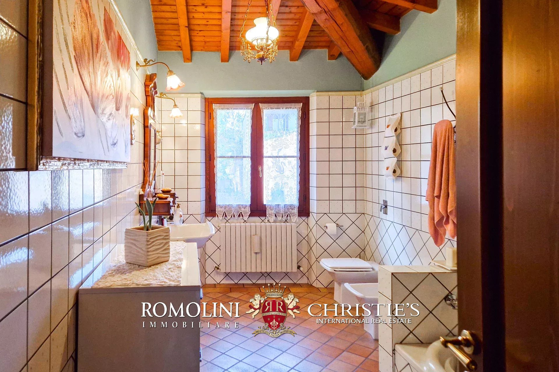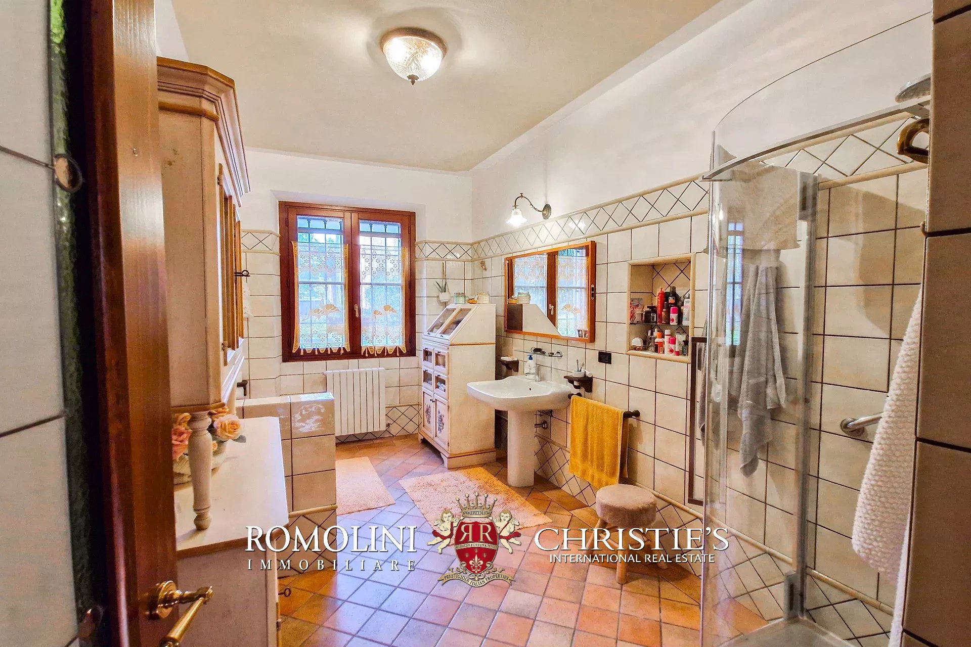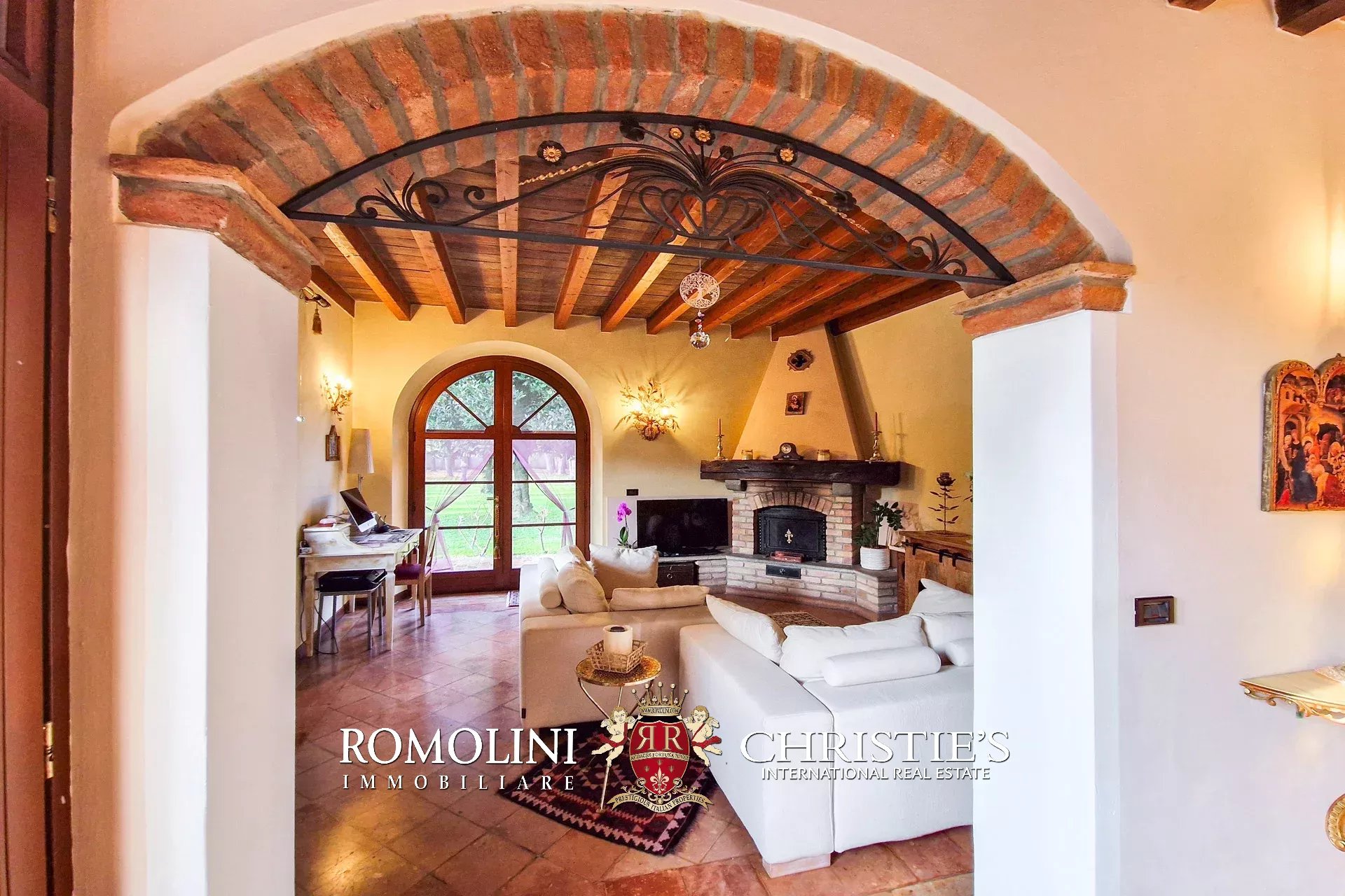 L’edificio è raggiungibile tramite un caratteristico vicolo che si dirama dalla via principale del paese. Attraversando il cancello di accesso si entra nel parco della proprietà, circa 4.500 m², circondato da alberi e delimitato sul fianco nordoccidentale da un torrente. L’ampio spazio disponibile potrebbe essere facilmente usato per posizionare una piscina o dei gazebi ombreggianti per eventi all’aperto.