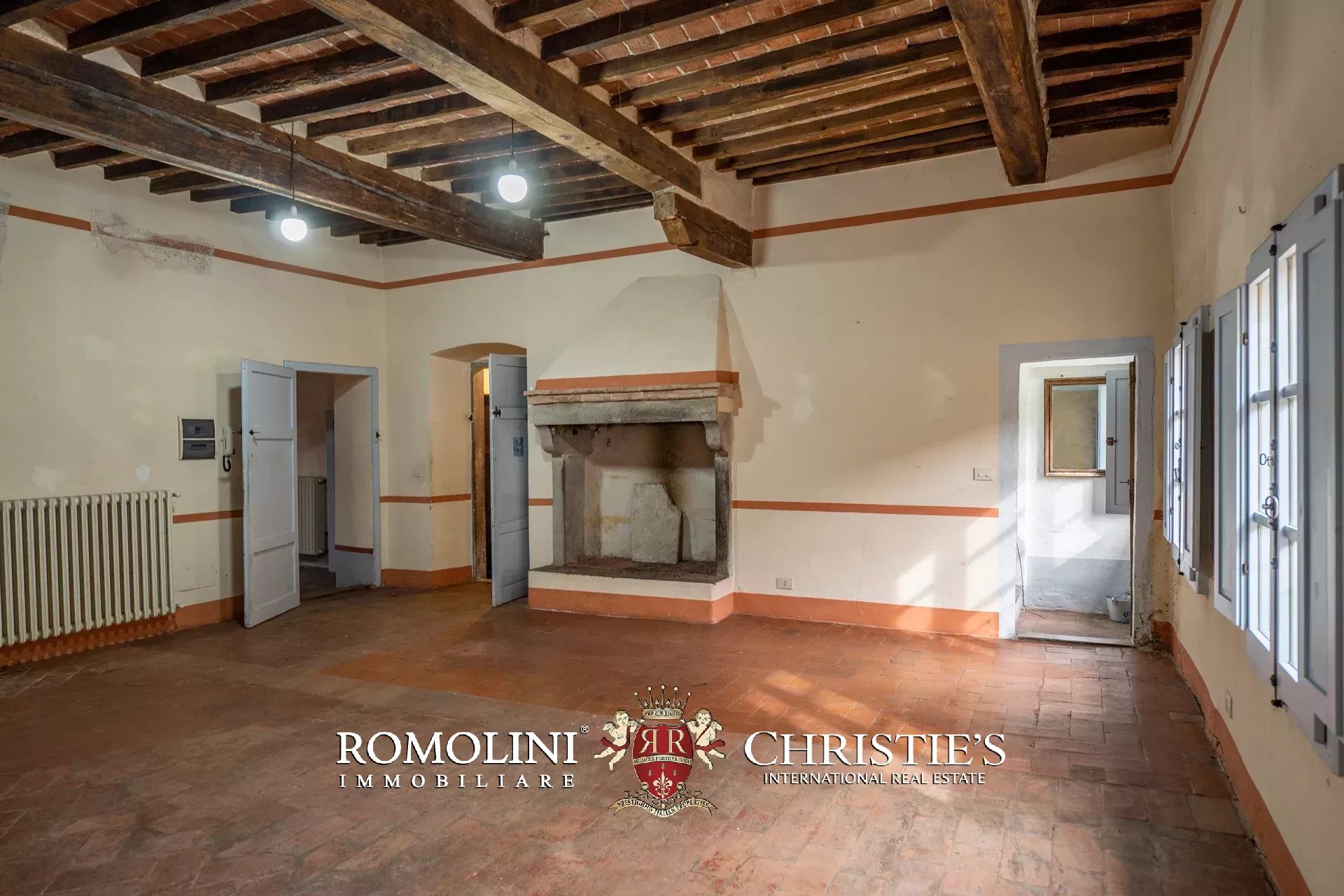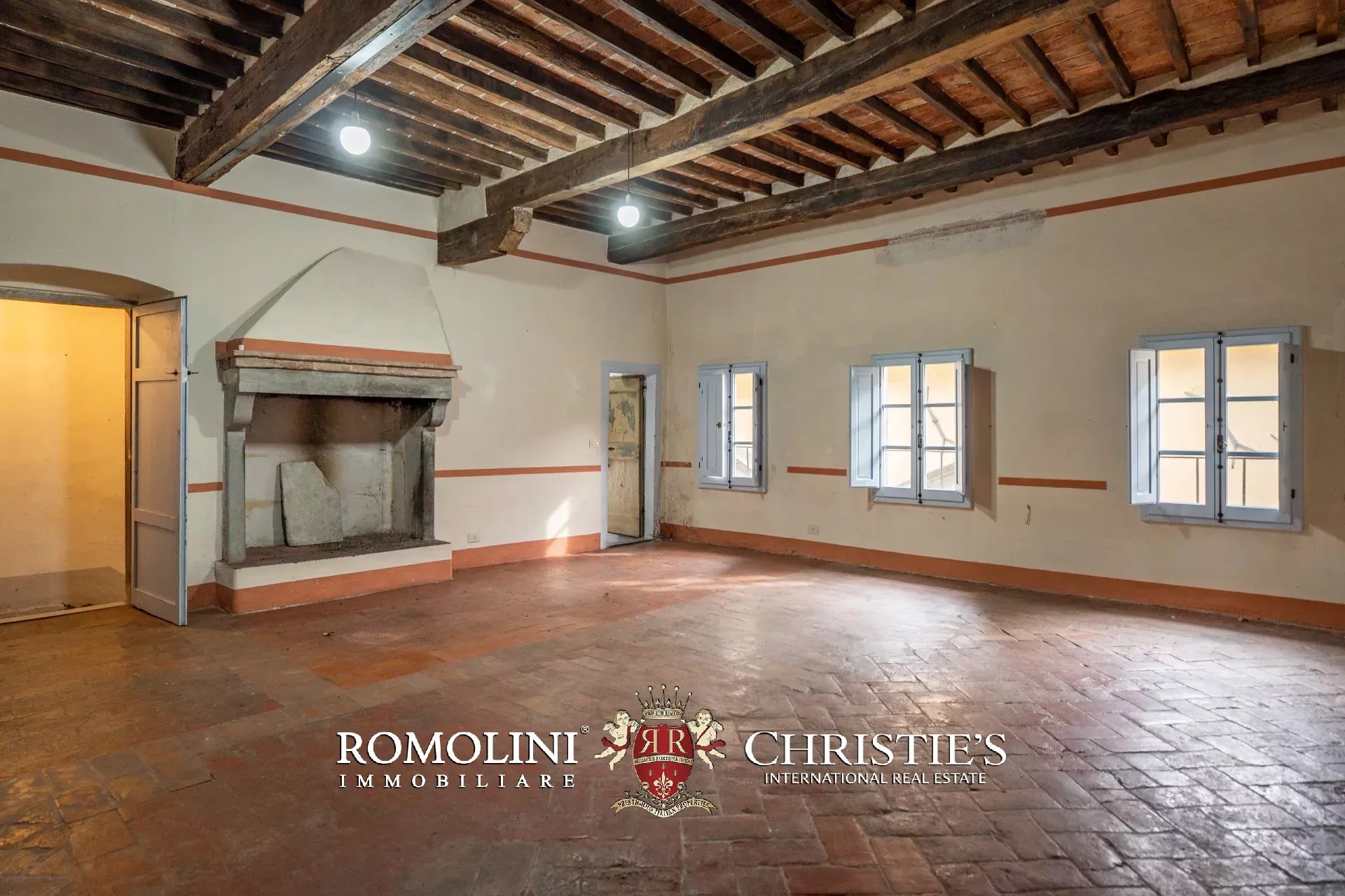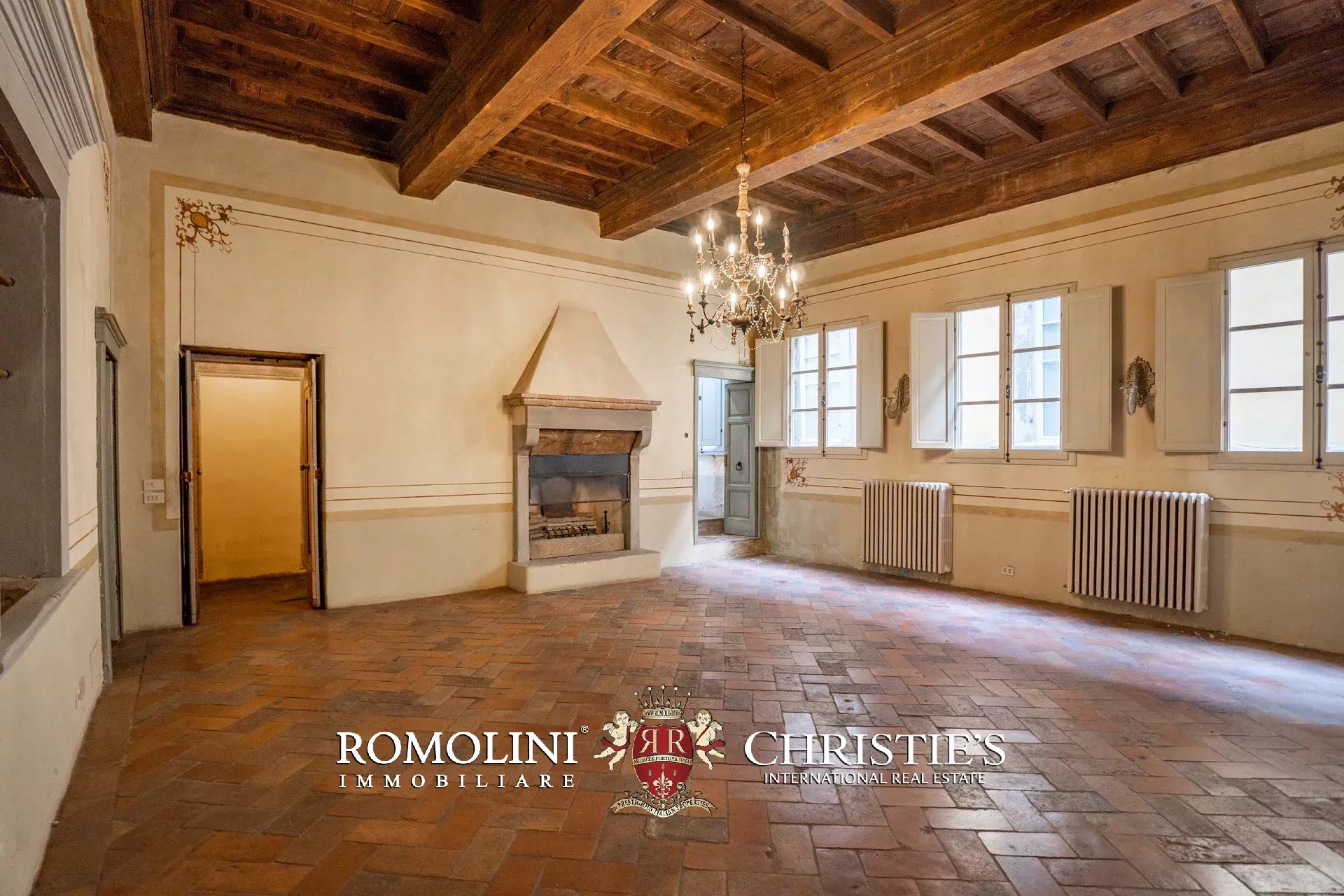Il palazzo (245 m², 3 camere e 3 bagni) è stato interamente ristrutturato ripristinando tutti gli elementi decorativi che lo caratterizzano e che erano stati nel tempo coperti e nascosti con materiali all’epoca considerati moderni. Ed ecco che troviamo splendidi pavimenti in cotto rosso antico, soffitti a cassettoni in alcune stanze e travi in legno con pianelle in altre, imponenti camini in pietra, soffitti alti e pareti affrescate, come era usanza nei palazzi rinascimentali.