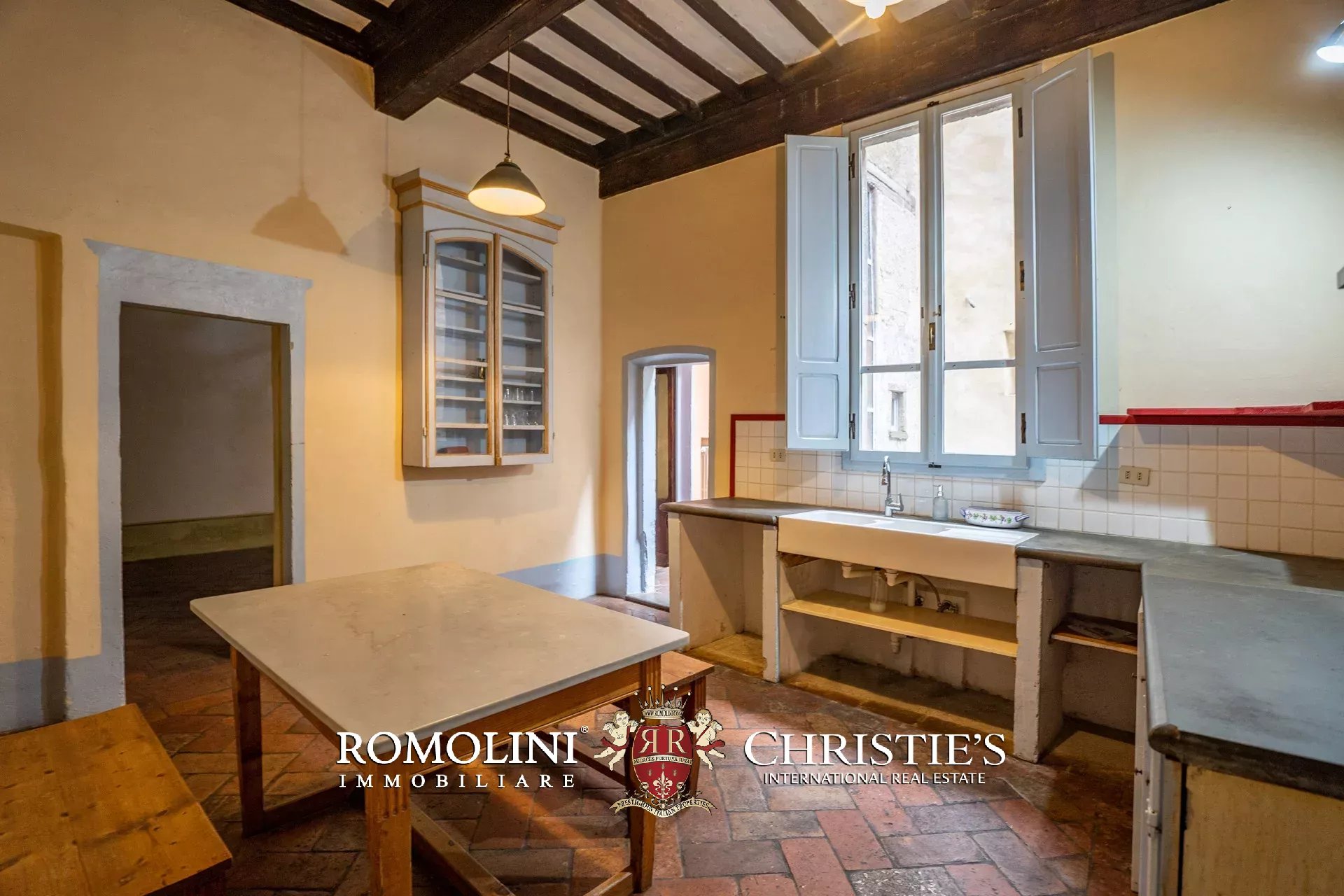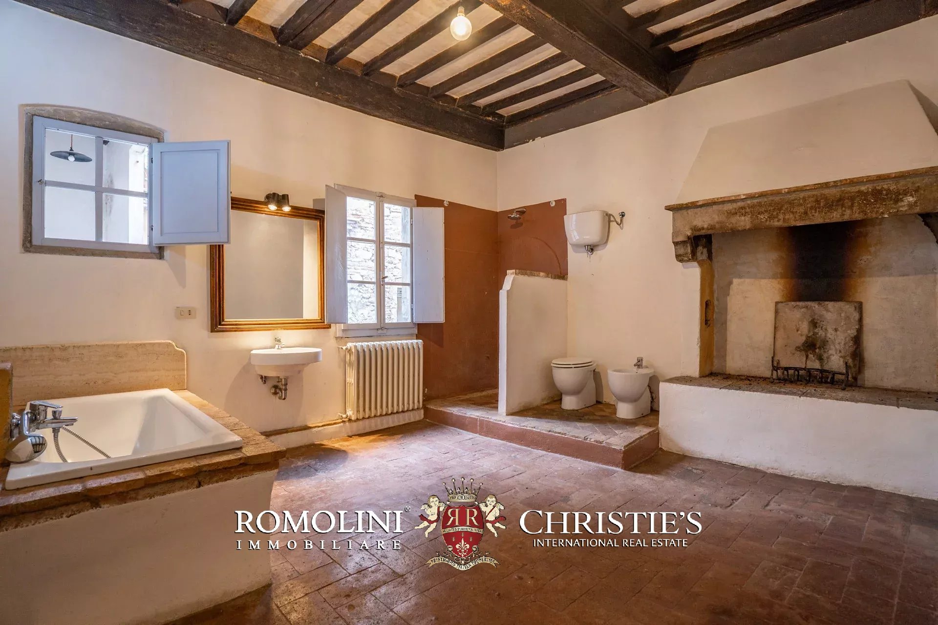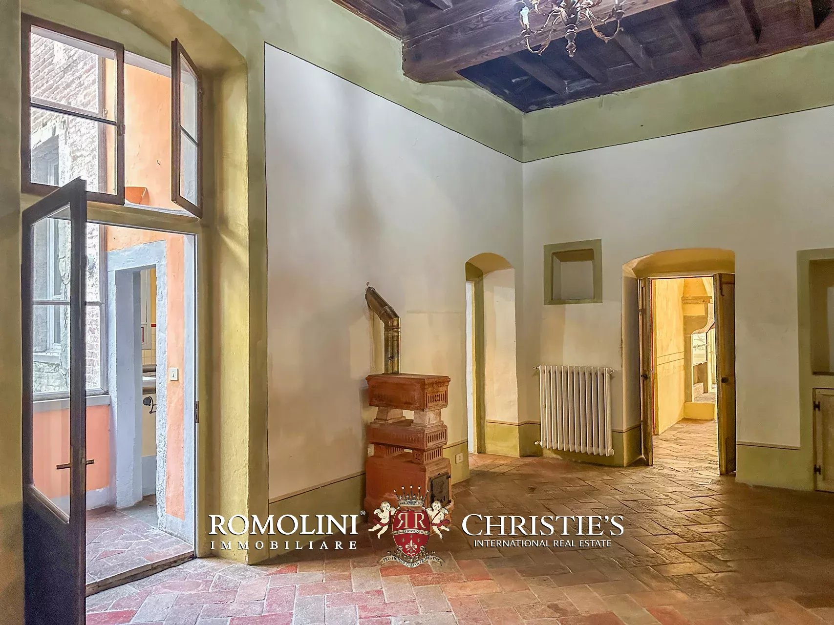 Il palazzo (245 m², 3 camere e 3 bagni) è stato interamente ristrutturato ripristinando tutti gli elementi decorativi che lo caratterizzano e che erano stati nel tempo coperti e nascosti con materiali all’epoca considerati moderni. Ed ecco che troviamo splendidi pavimenti in cotto rosso antico, soffitti a cassettoni in alcune stanze e travi in legno con pianelle in altre, imponenti camini in pietra, soffitti alti e pareti affrescate, come era usanza nei palazzi rinascimentali.