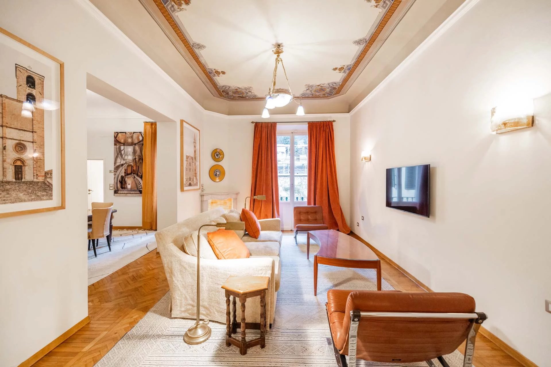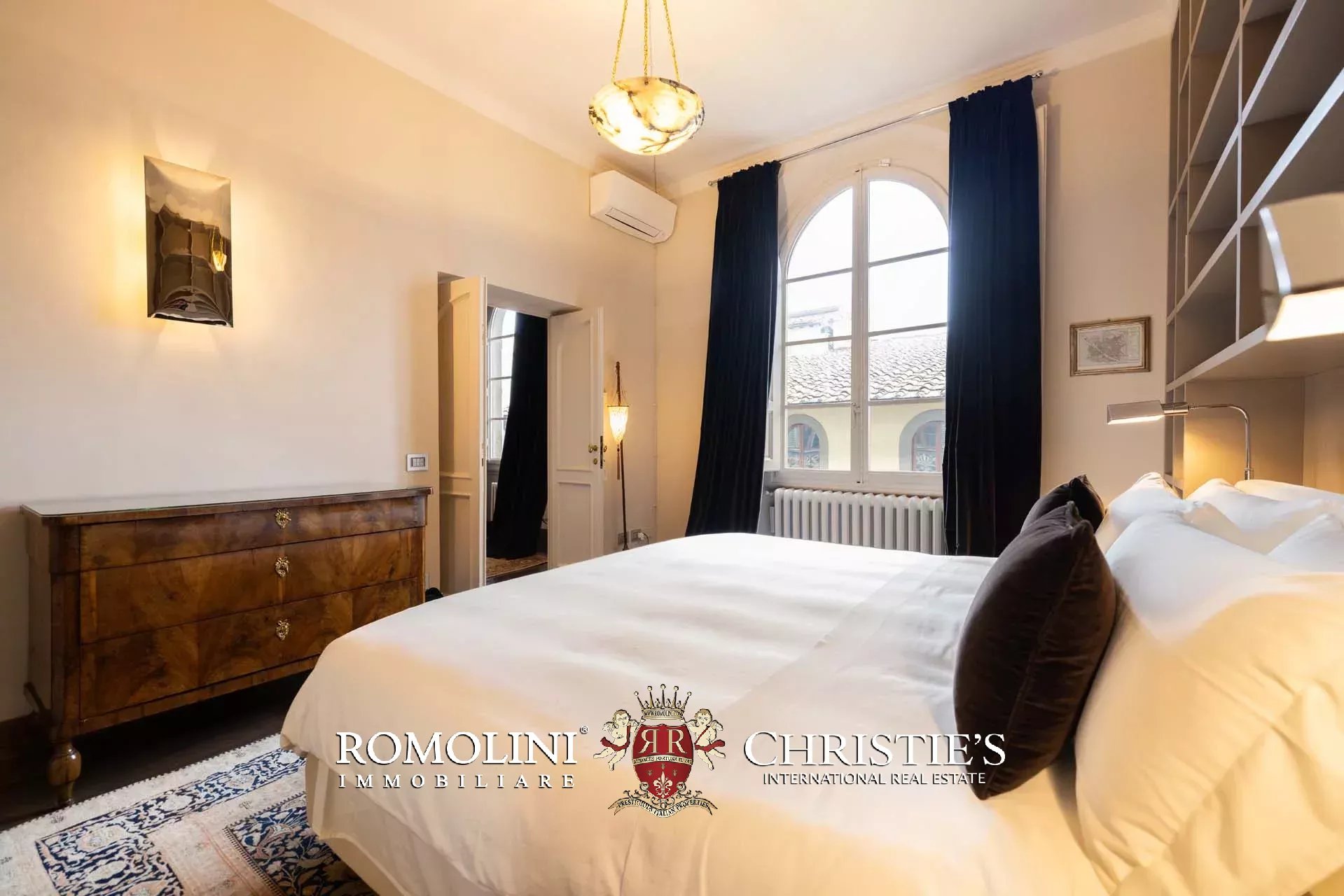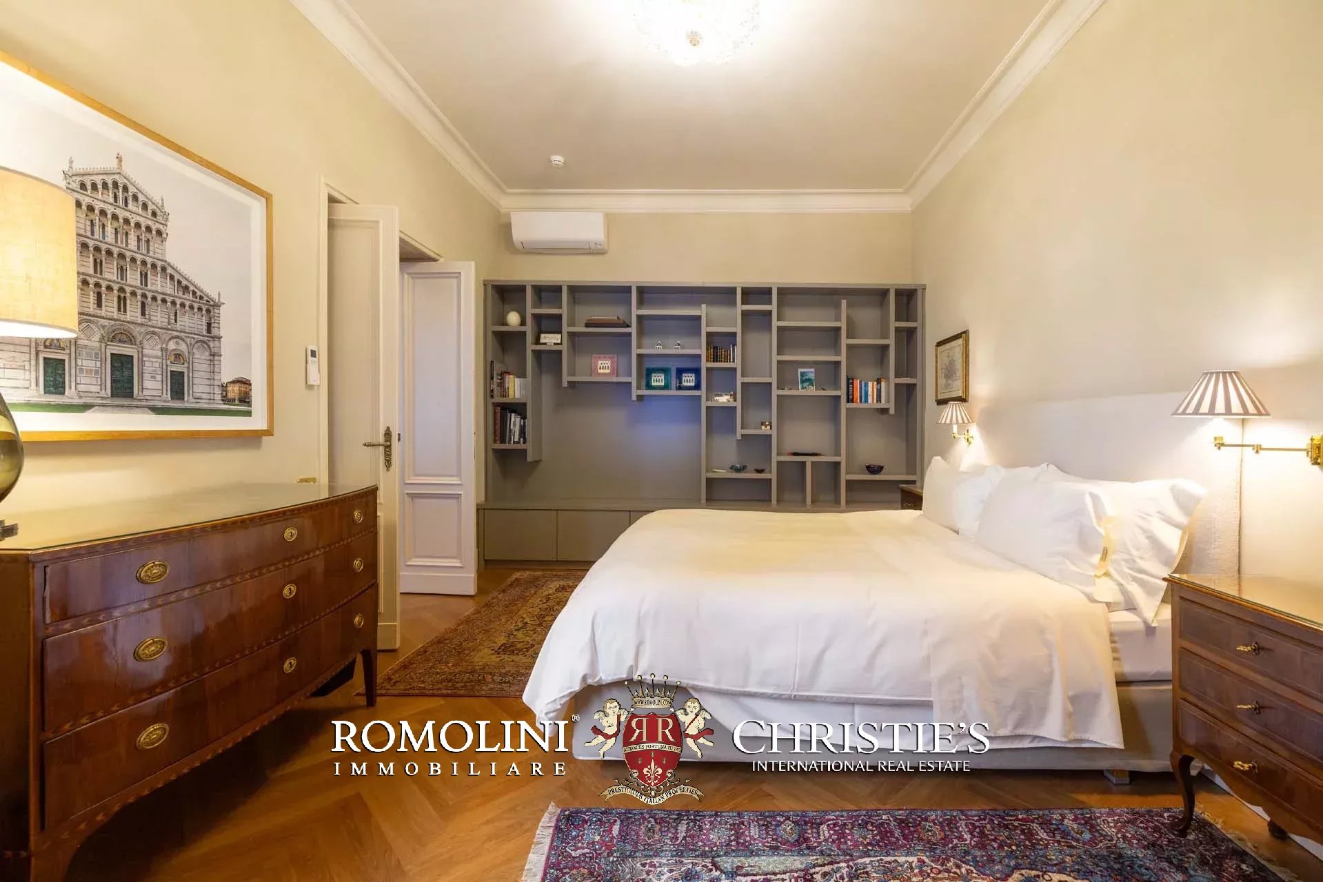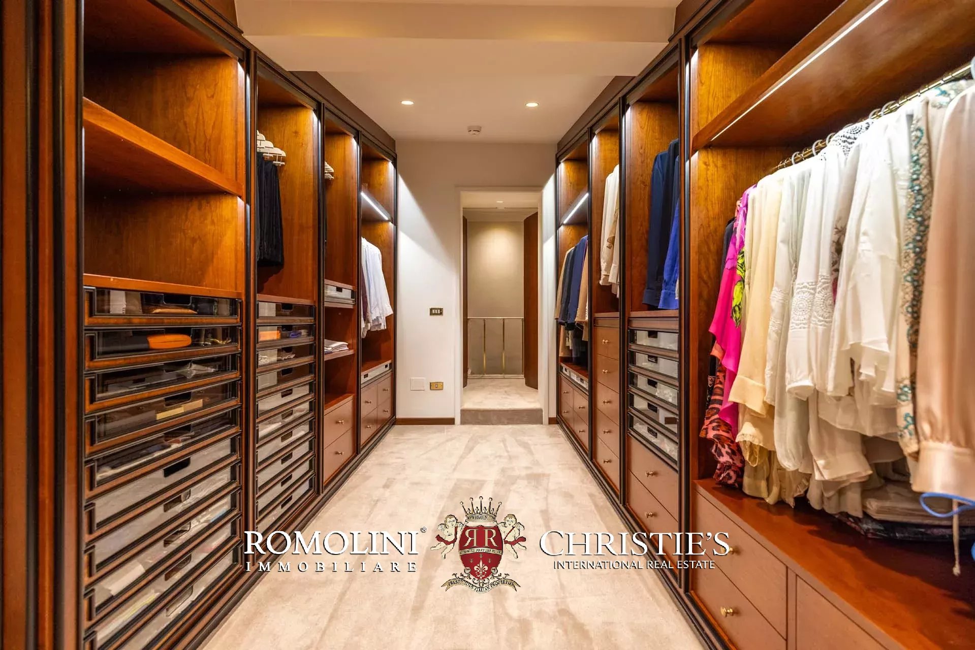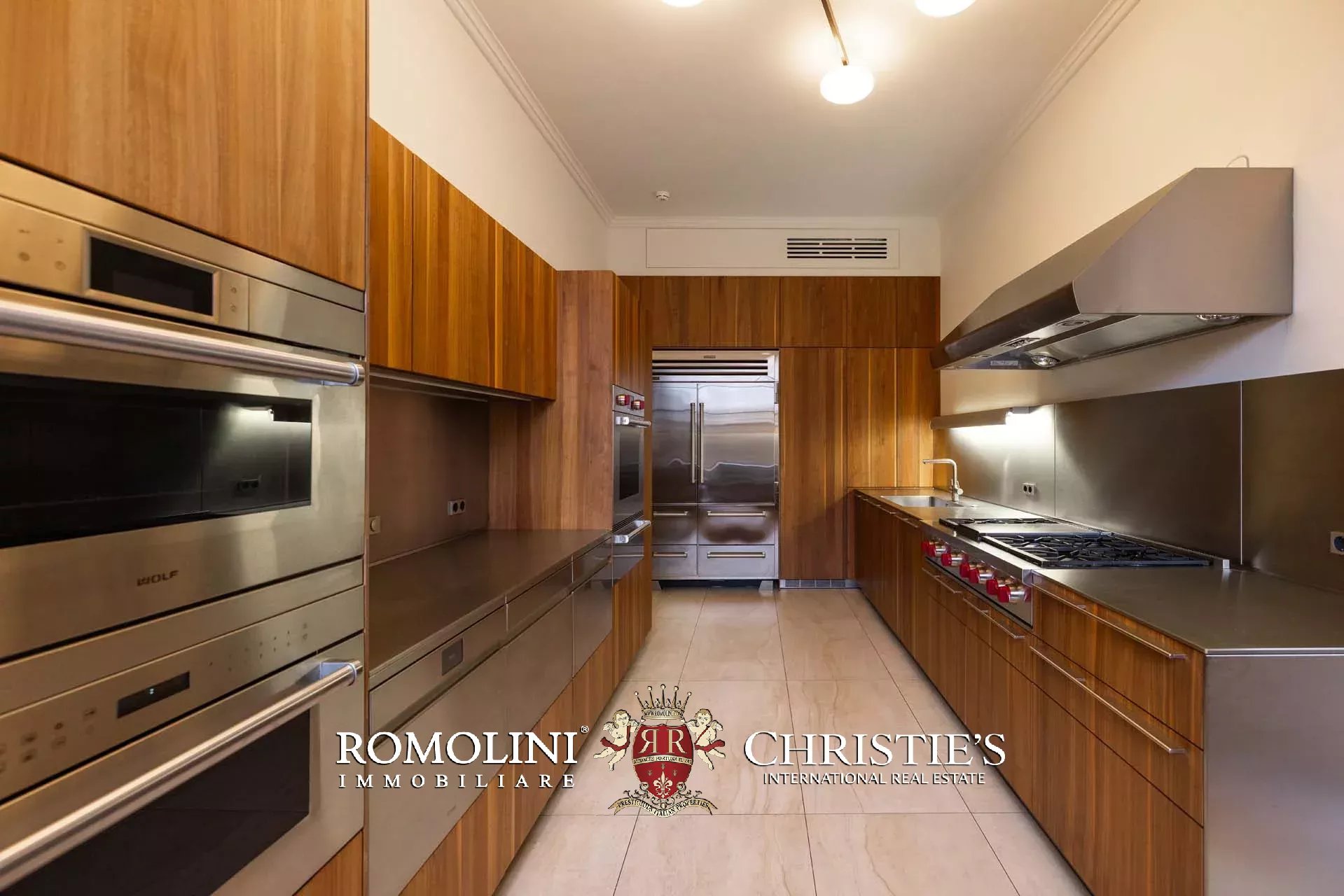 - Appartamento Vasari (257 m², 3 camere e 4 bagni): posta di fronte all’appartamento Donatello, questa unità si apre con un grande salone di rappresentanza corredato da un piccolo bagno di servizio. Da qui si passa poi alla sala da pranzo con cucina e a tre grandi camere, tutte dotate di bagno privato.