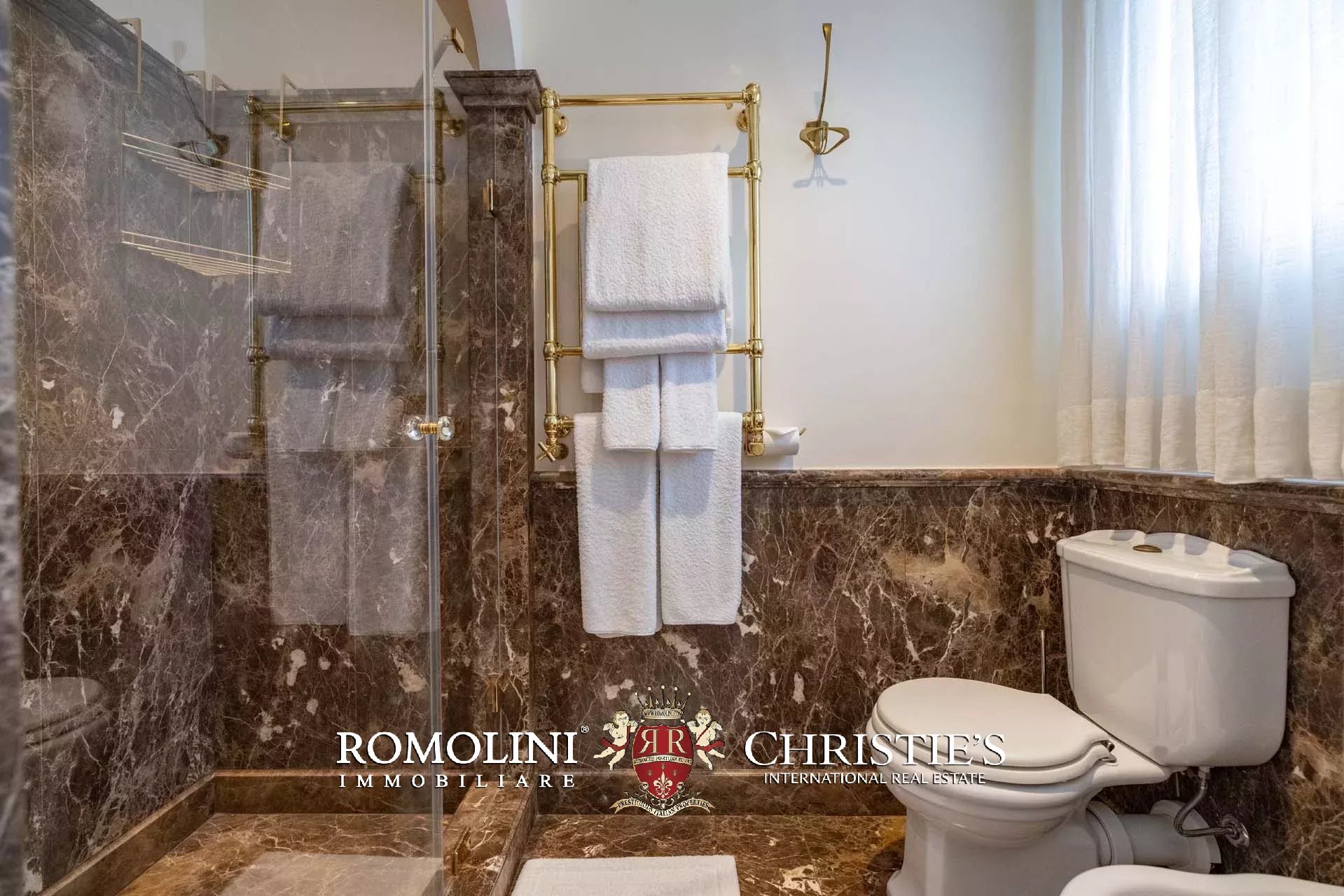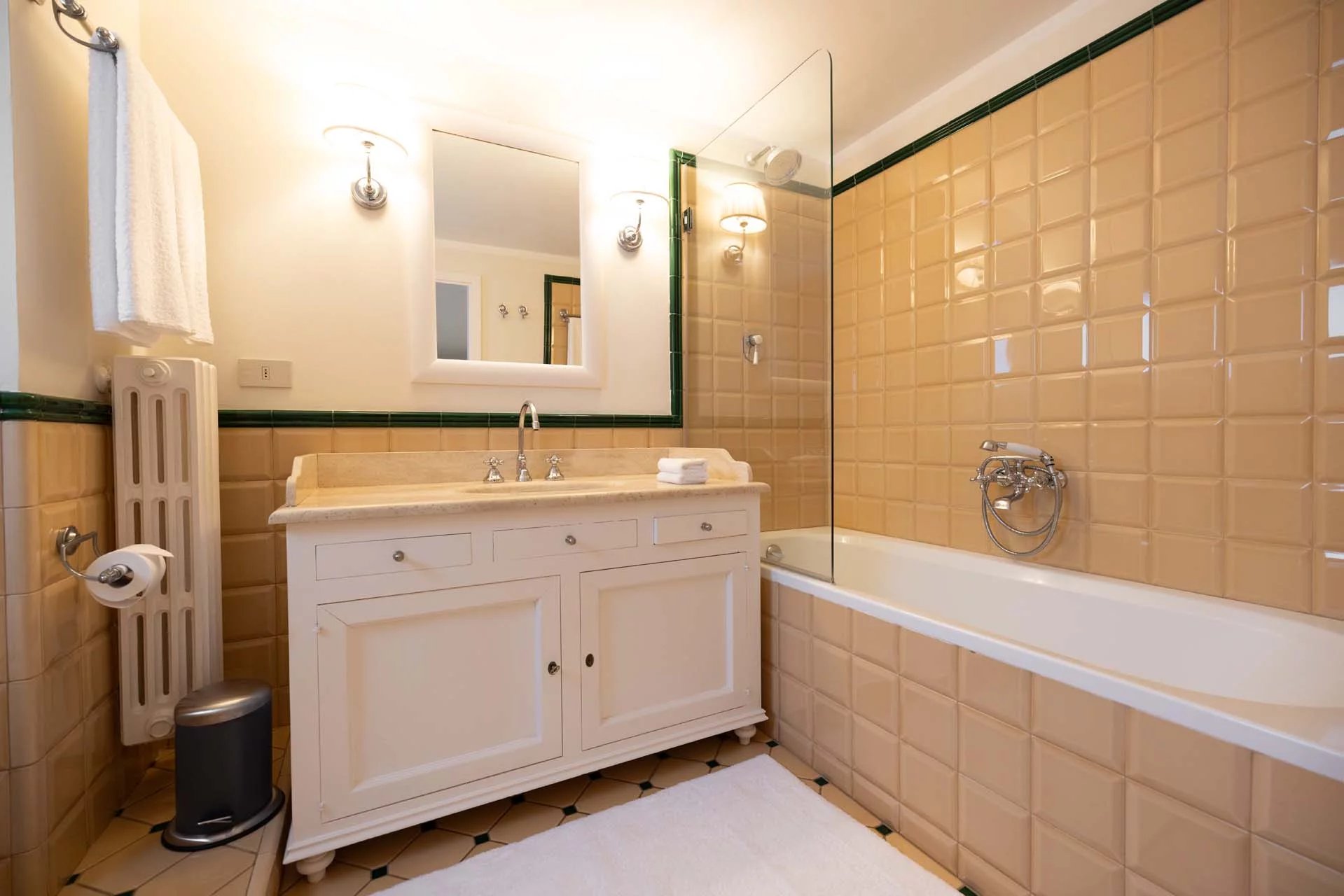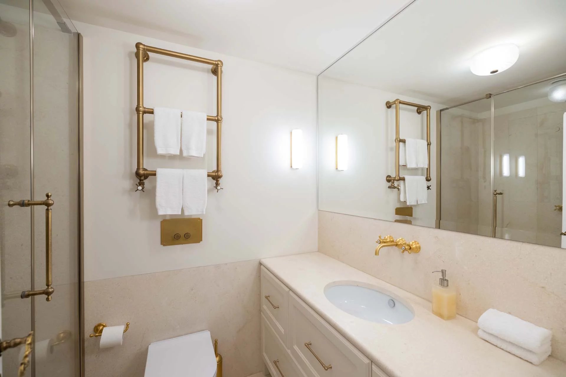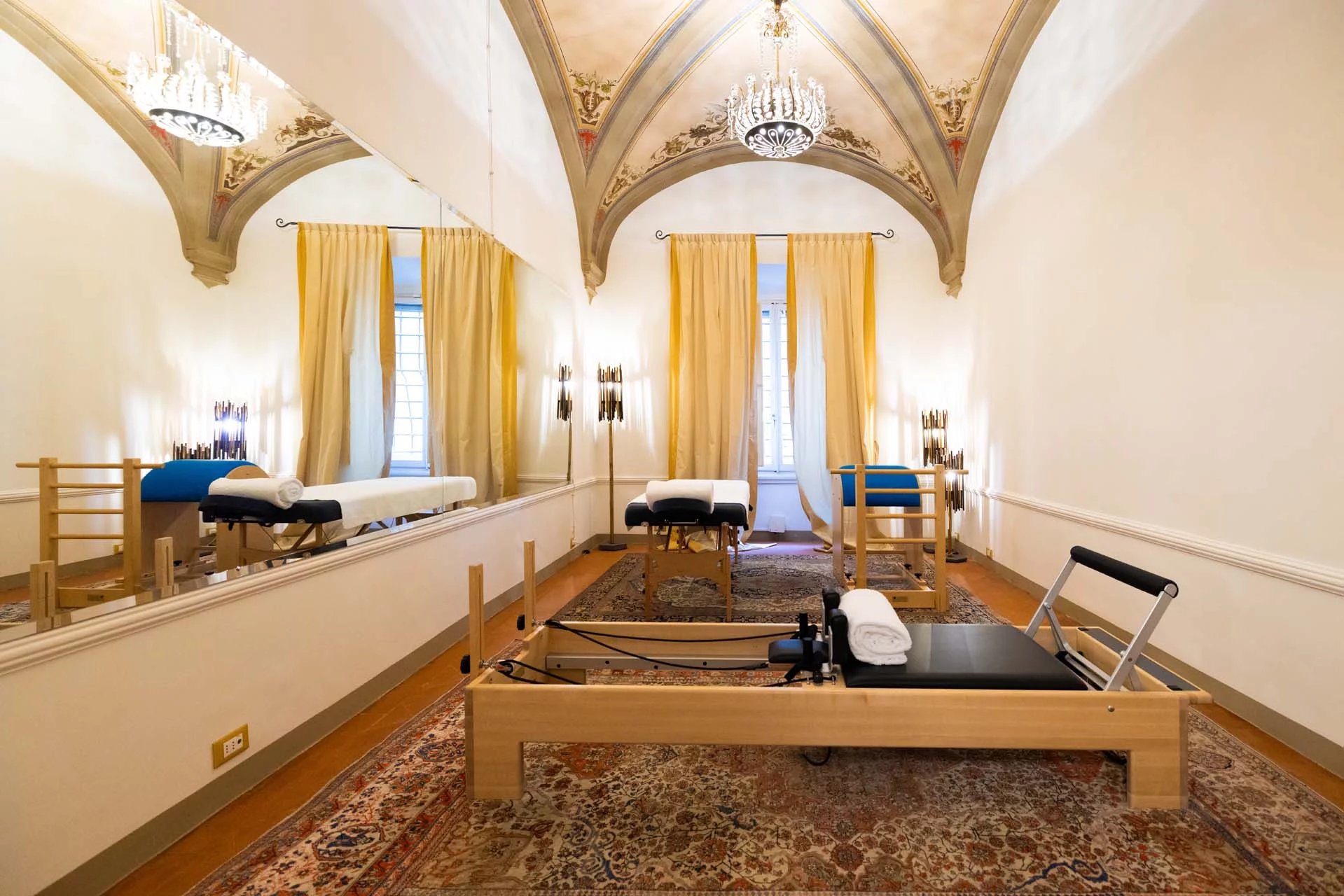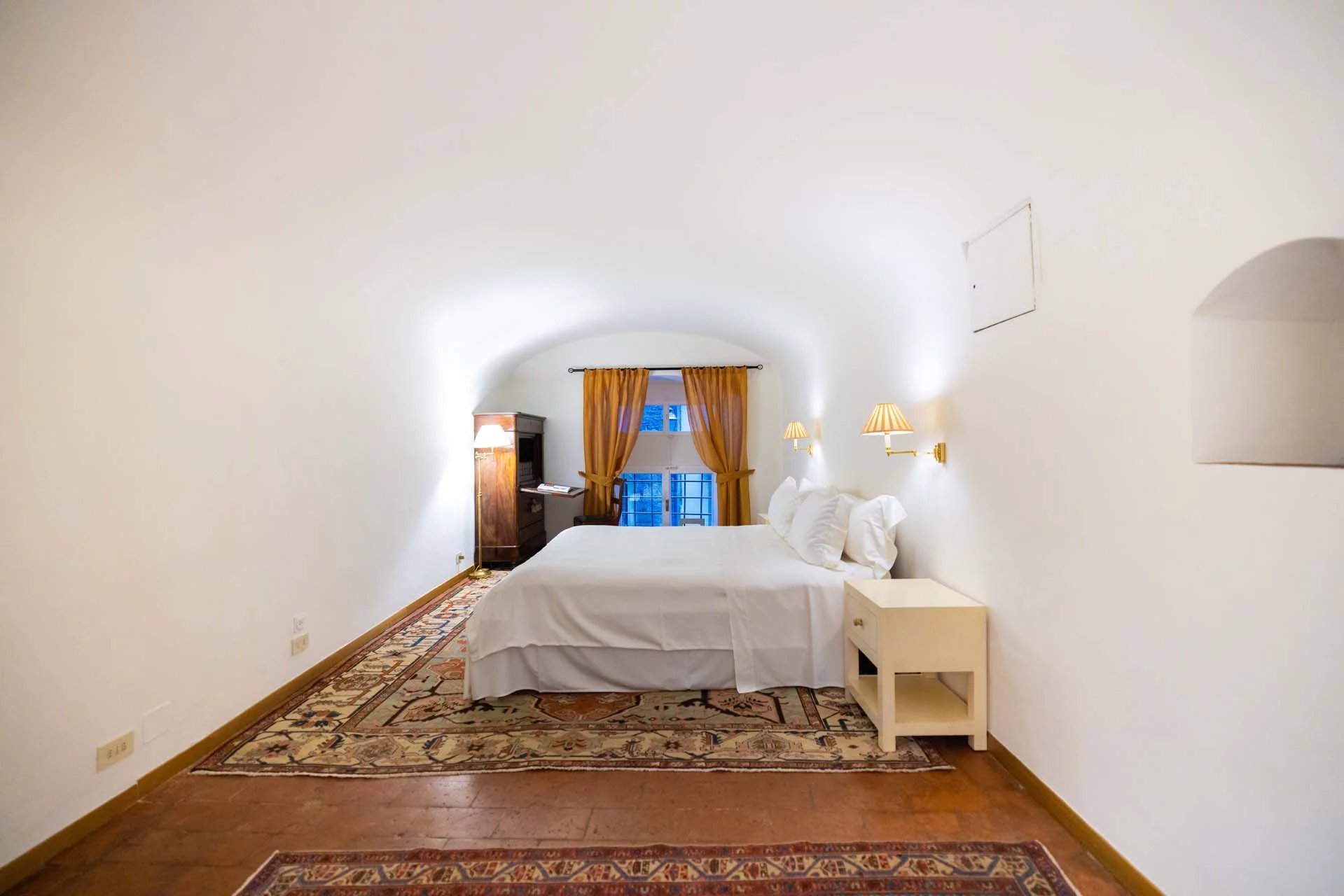 - Appartamento Vasari (257 m², 3 camere e 4 bagni): posta di fronte all’appartamento Donatello, questa unità si apre con un grande salone di rappresentanza corredato da un piccolo bagno di servizio. Da qui si passa poi alla sala da pranzo con cucina e a tre grandi camere, tutte dotate di bagno privato.