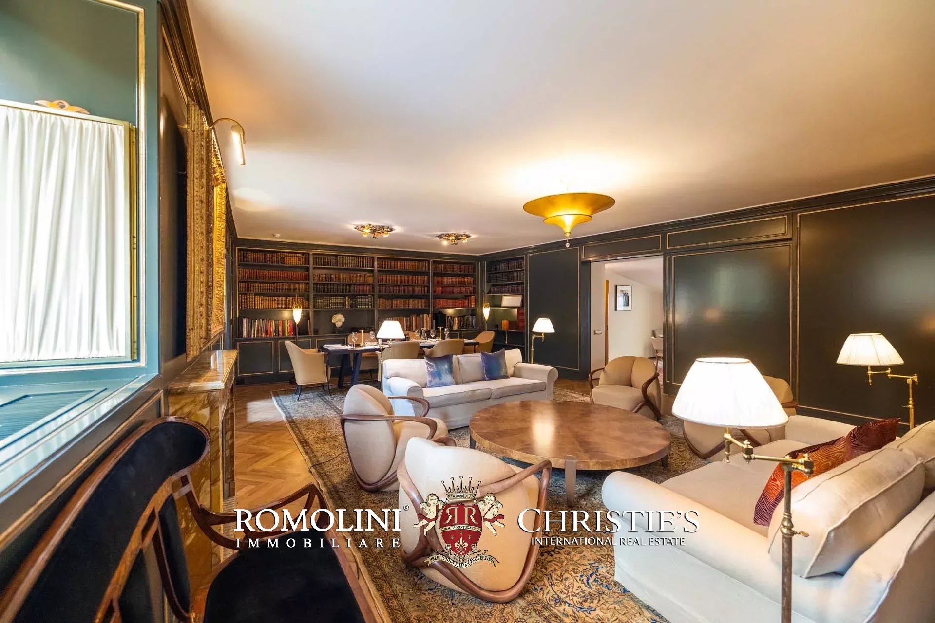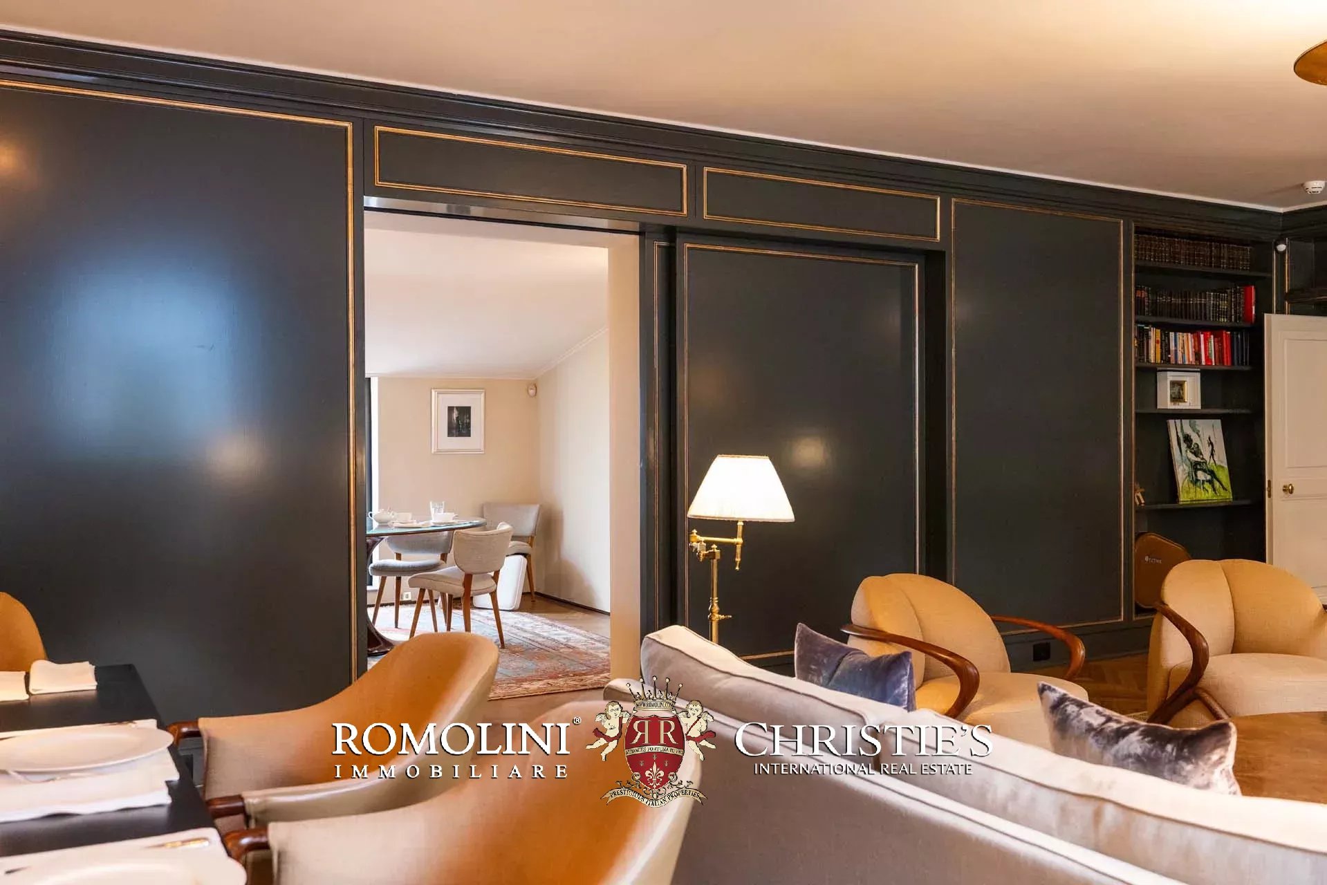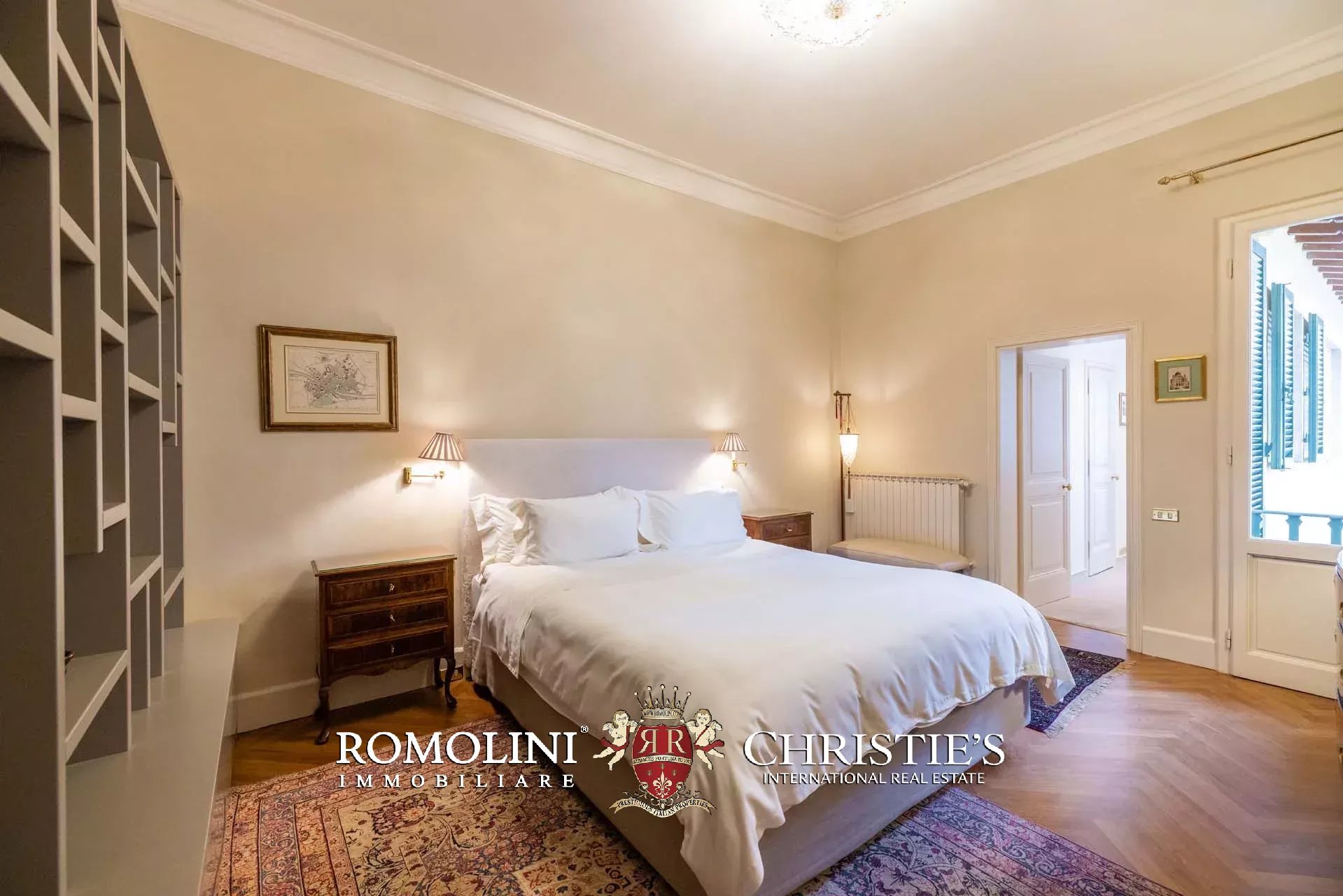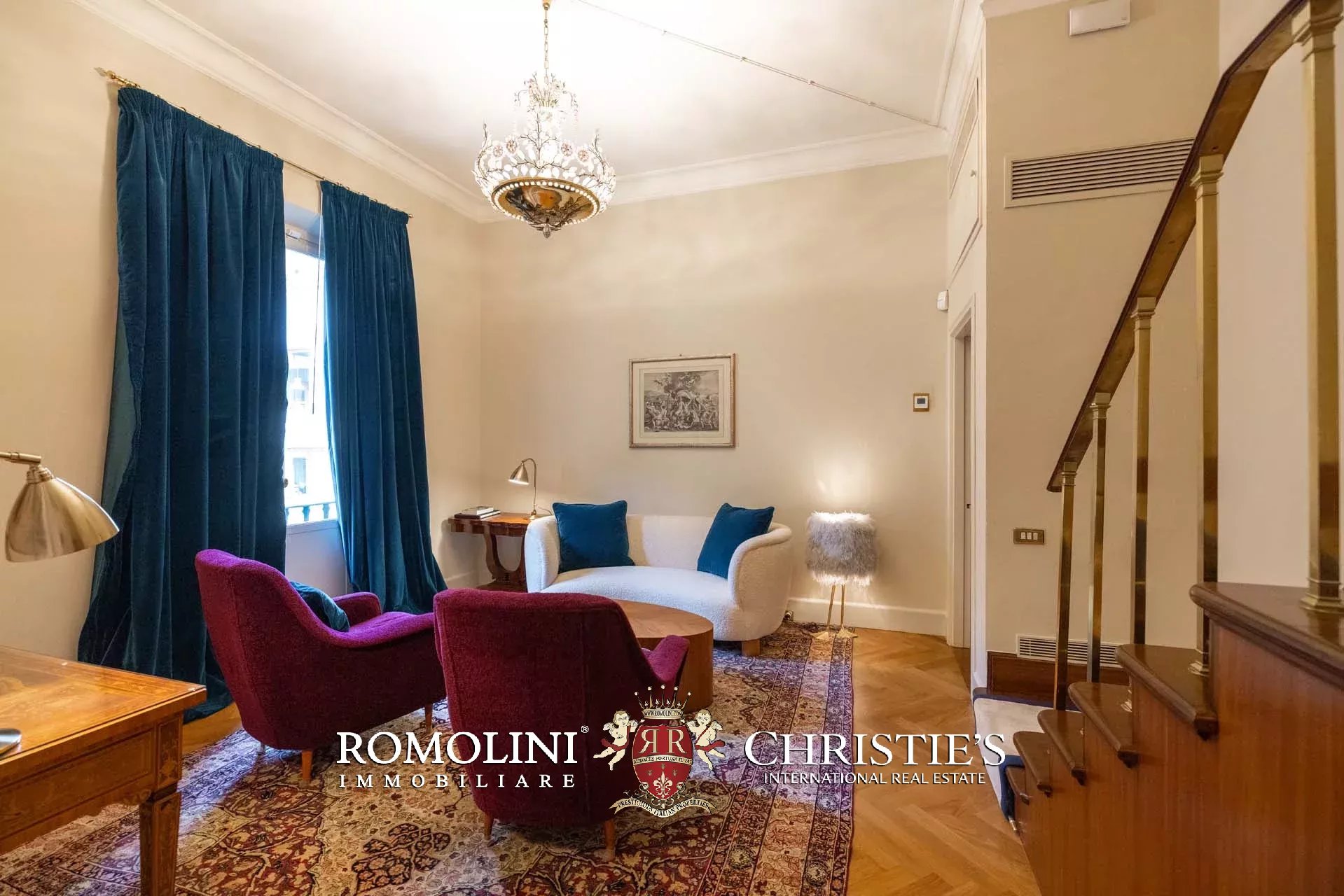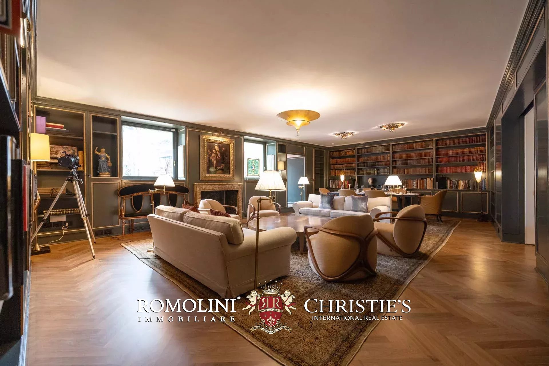 - Appartamento Botticelli (264 m², 3 camere e 4 bagni): accanto all’appartamento Leonardo, questa unità si apre con un piccolo ingresso collegato al grande salone di rappresentanza con bagno di servizio. A fianco della sala si trovano la zona pranzo e la cucina con dispensa, mentre agli angoli due porte conducono a tre camere con bagno en-suite e cabina armadio (una delle camere è accessibile scendendo una breve scala).