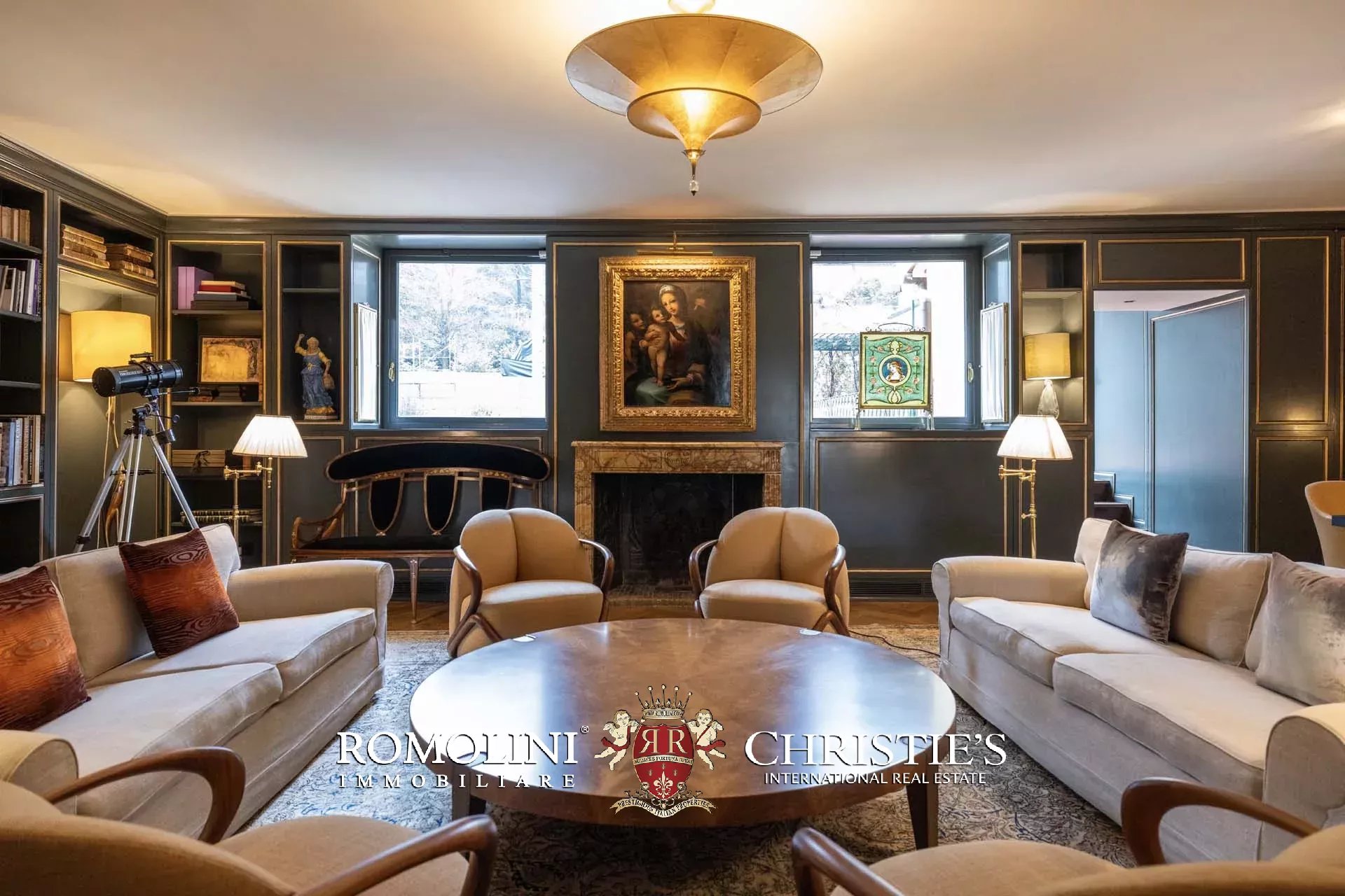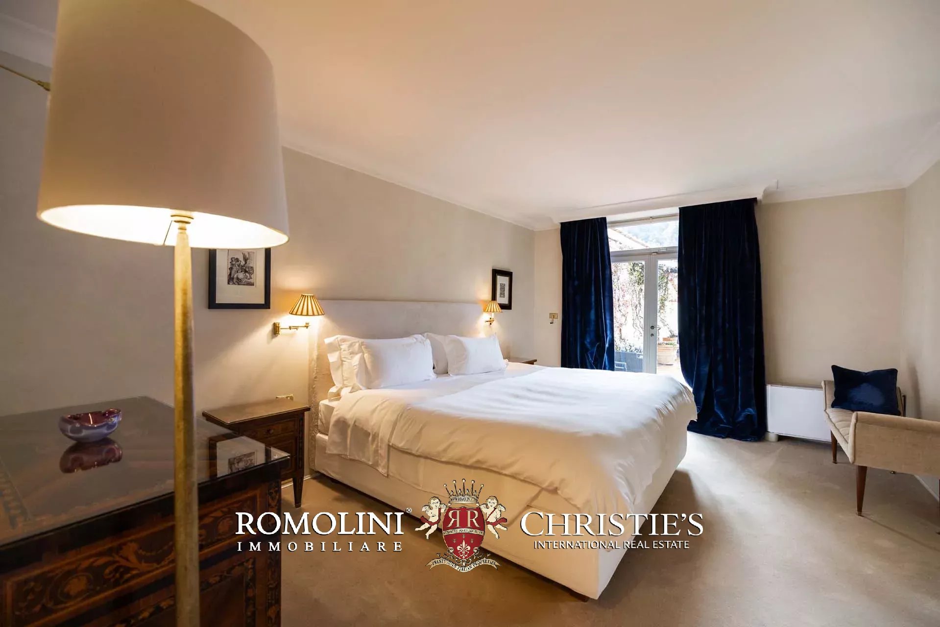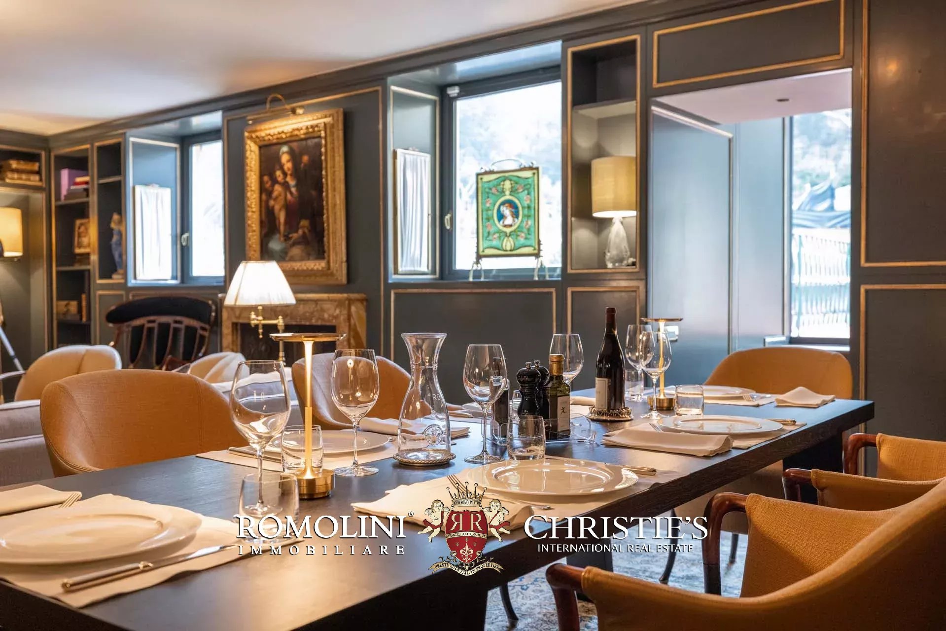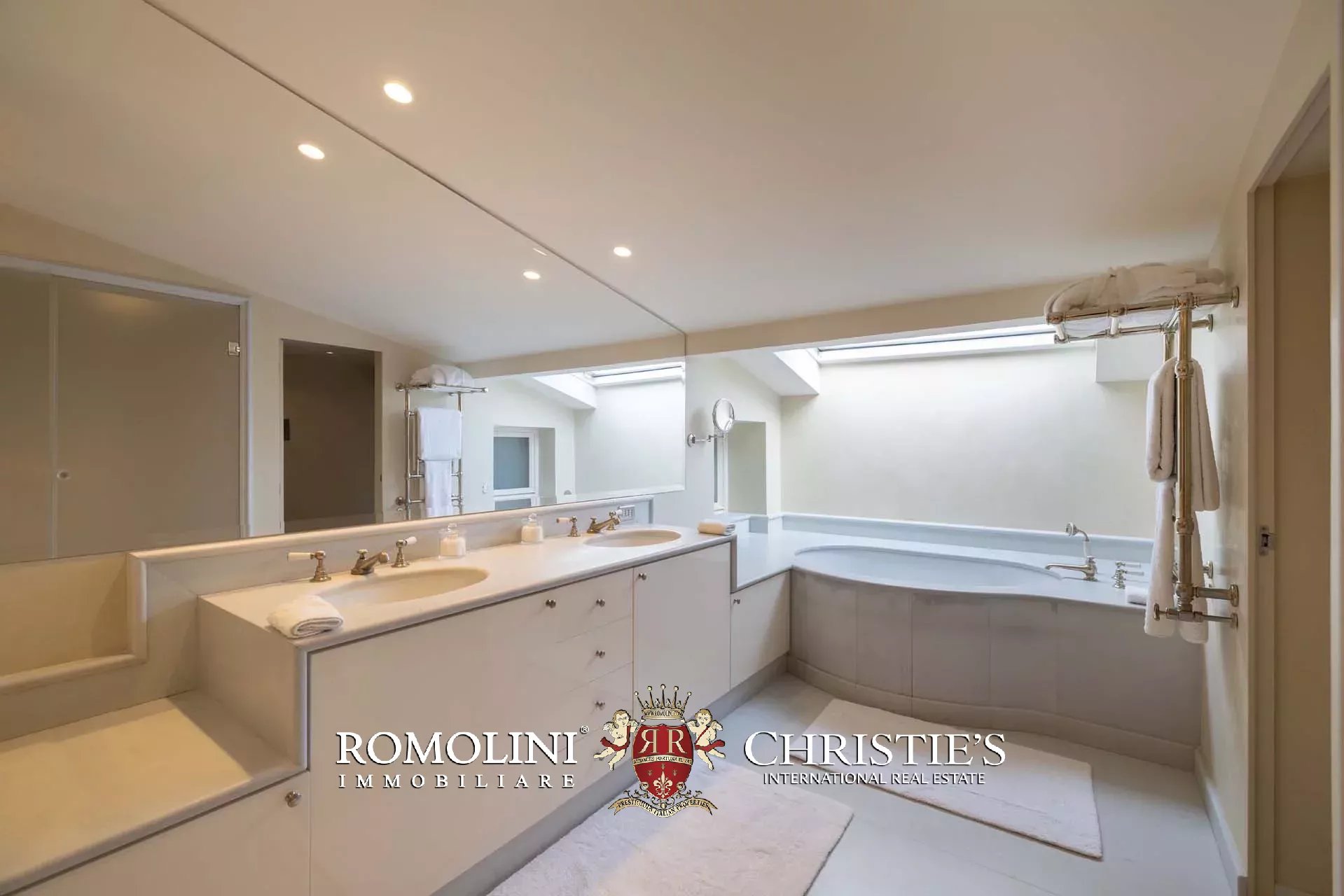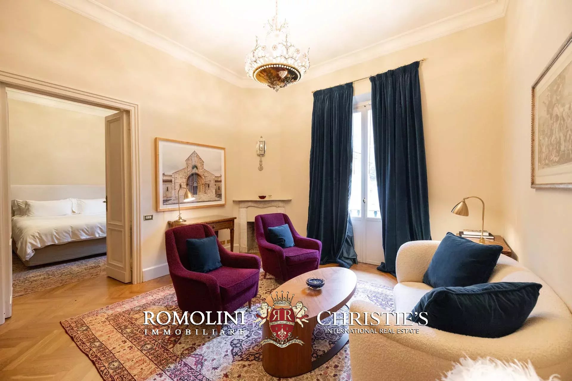 - Appartamento Botticelli (264 m², 3 camere e 4 bagni): accanto all’appartamento Leonardo, questa unità si apre con un piccolo ingresso collegato al grande salone di rappresentanza con bagno di servizio. A fianco della sala si trovano la zona pranzo e la cucina con dispensa, mentre agli angoli due porte conducono a tre camere con bagno en-suite e cabina armadio (una delle camere è accessibile scendendo una breve scala).