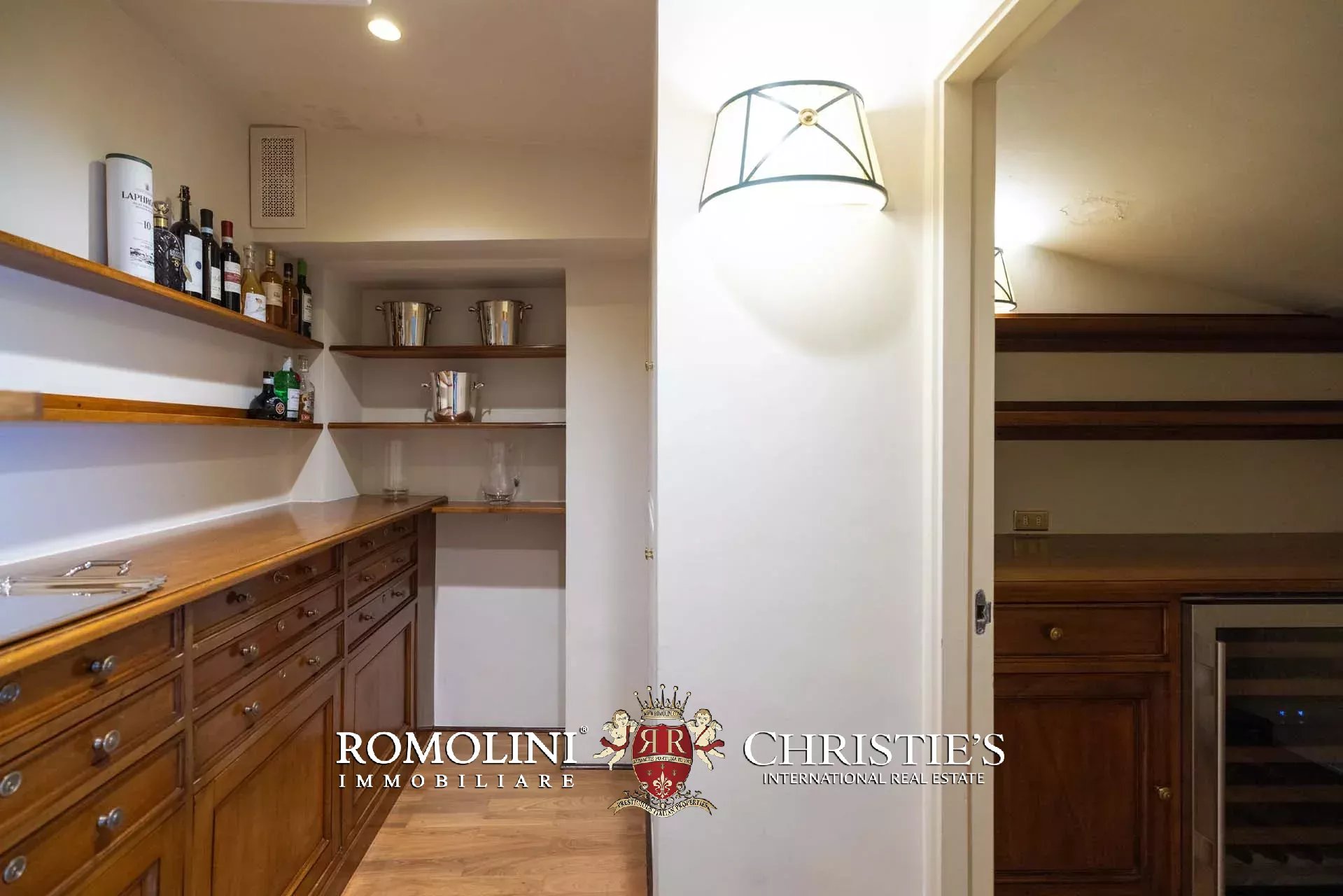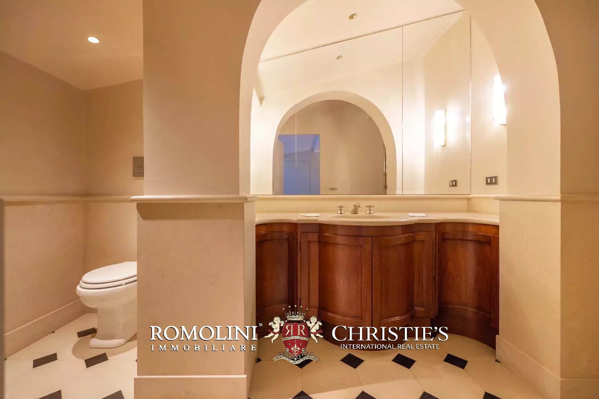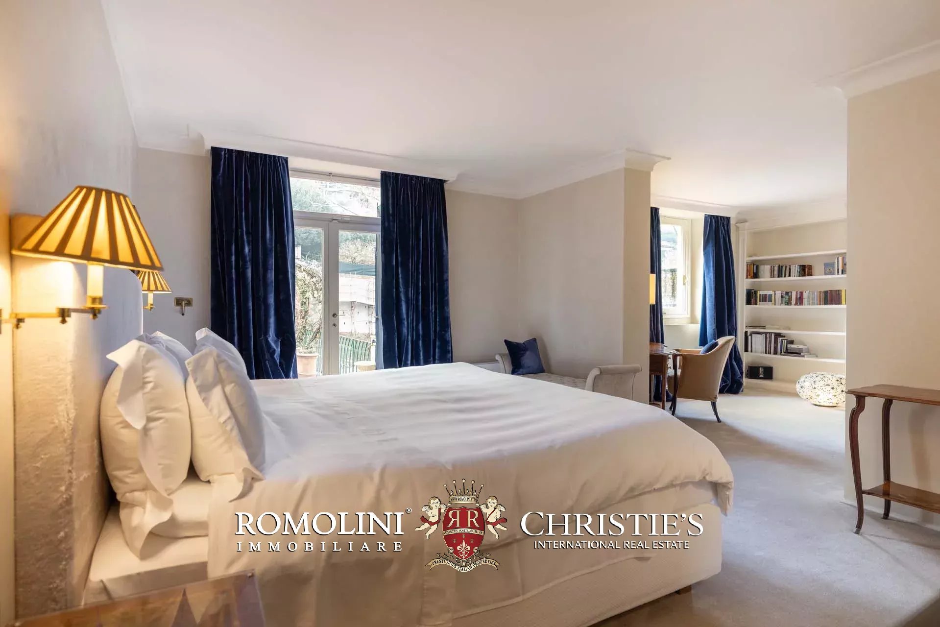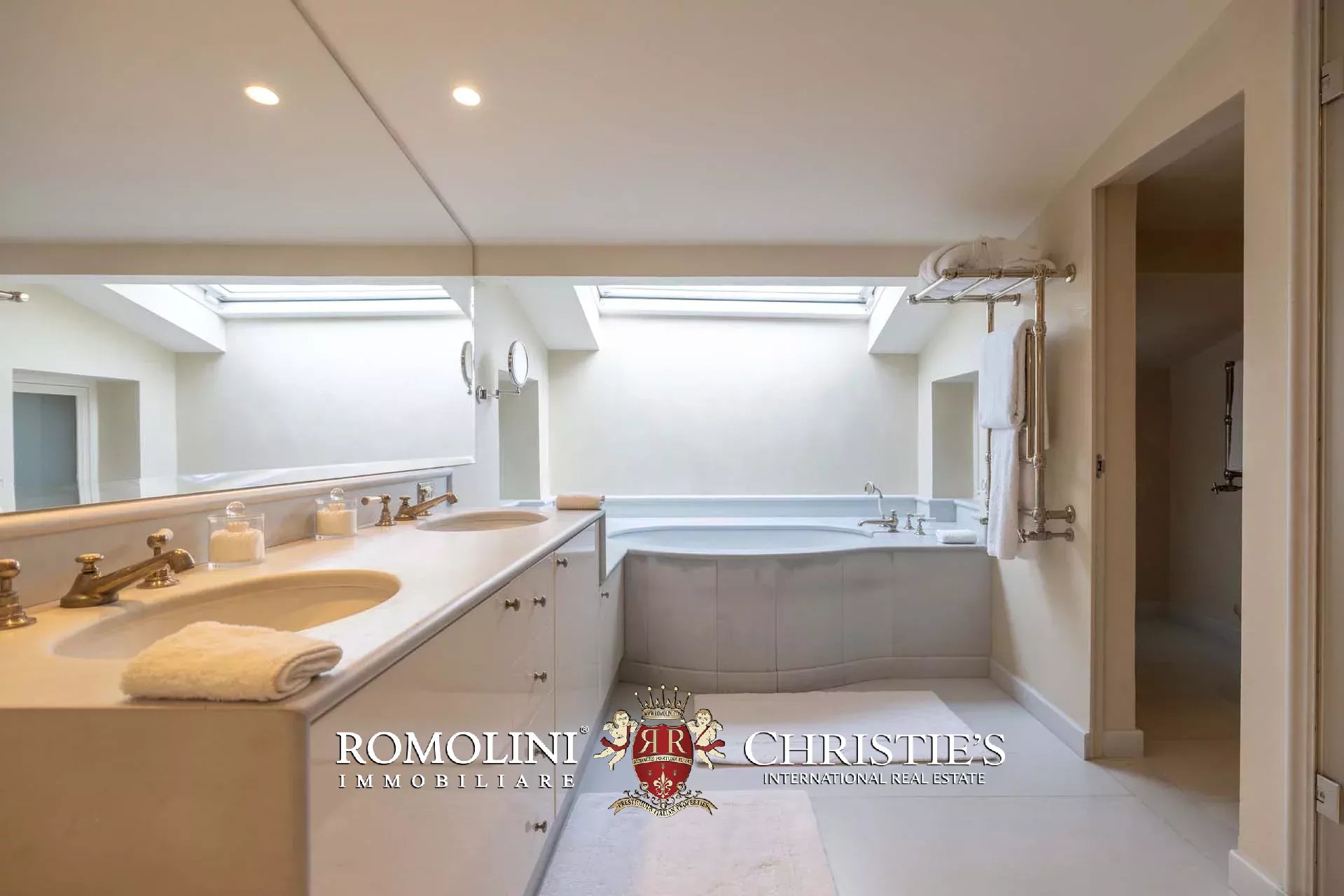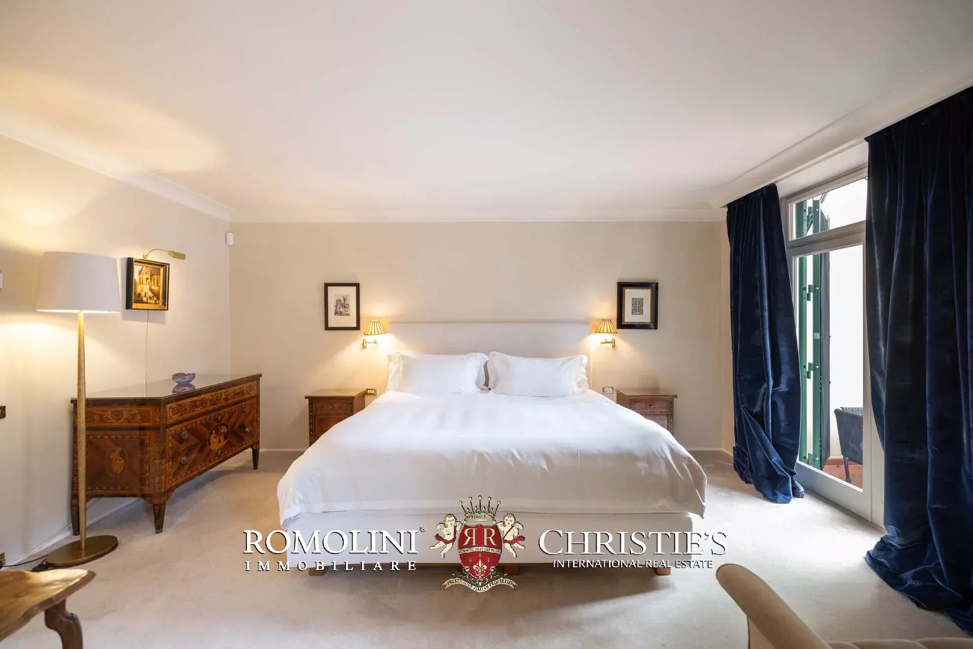 - Appartamento Botticelli (264 m², 3 camere e 4 bagni): accanto all’appartamento Leonardo, questa unità si apre con un piccolo ingresso collegato al grande salone di rappresentanza con bagno di servizio. A fianco della sala si trovano la zona pranzo e la cucina con dispensa, mentre agli angoli due porte conducono a tre camere con bagno en-suite e cabina armadio (una delle camere è accessibile scendendo una breve scala).