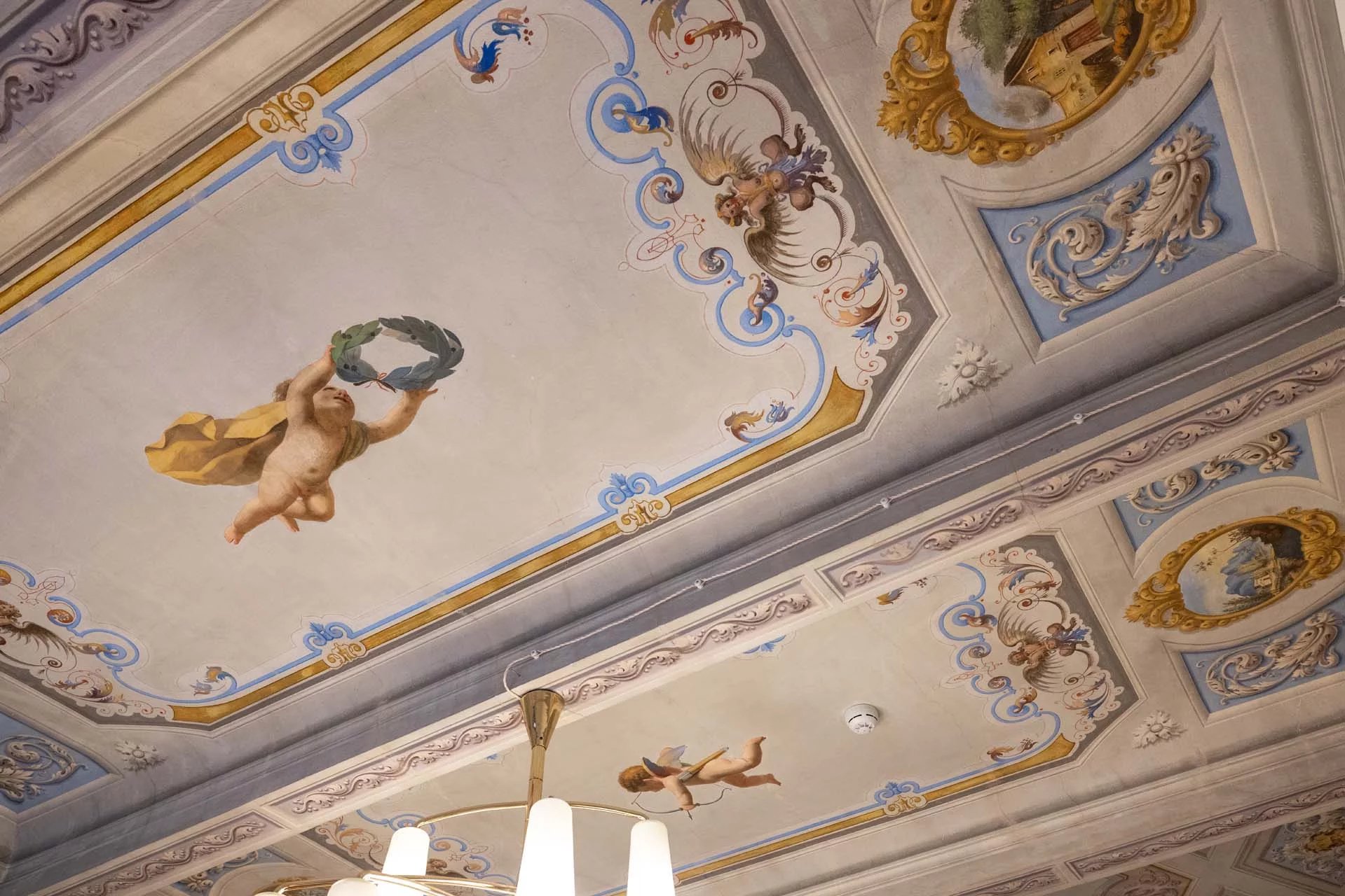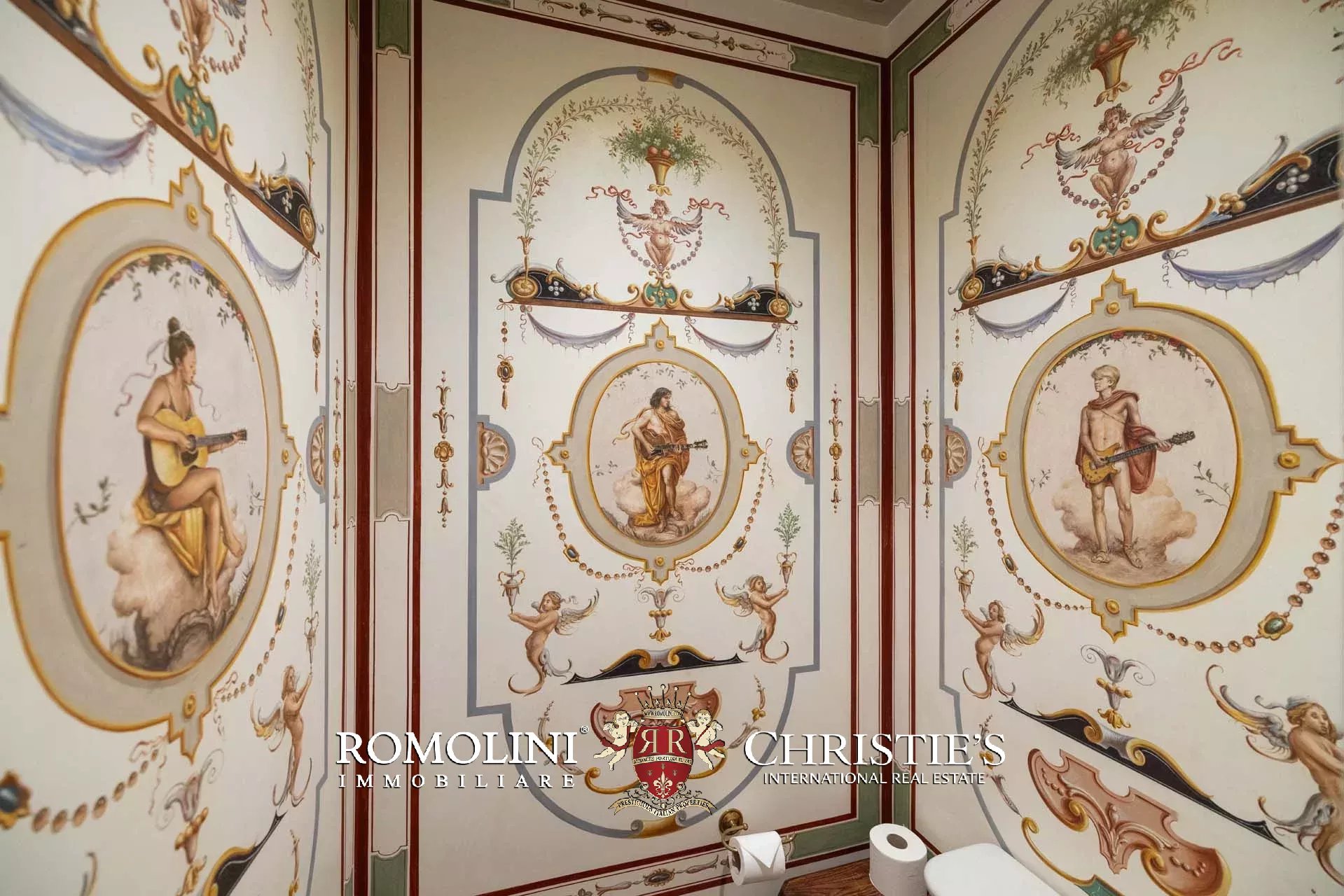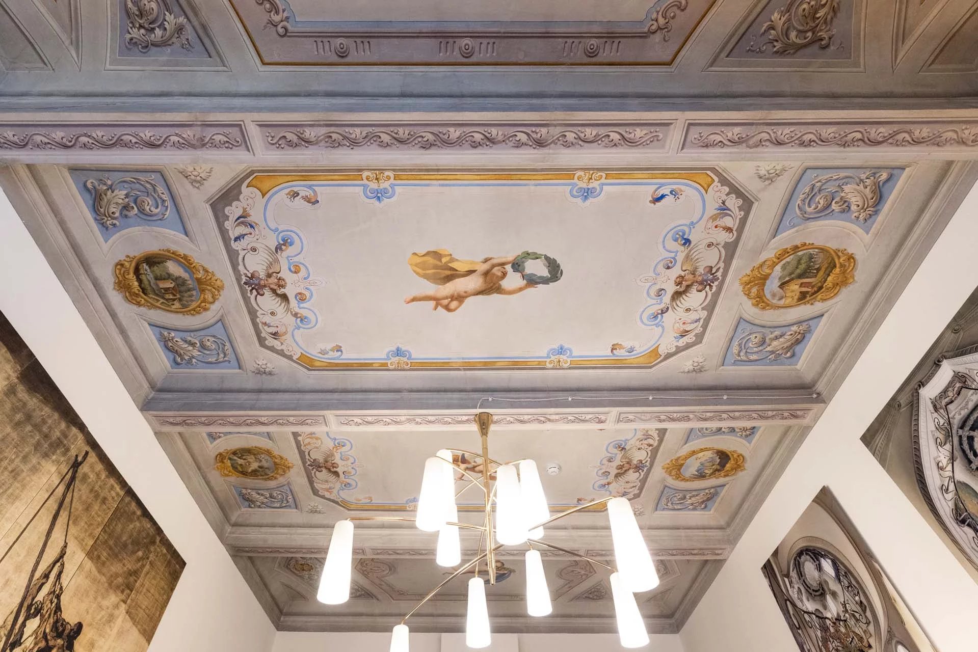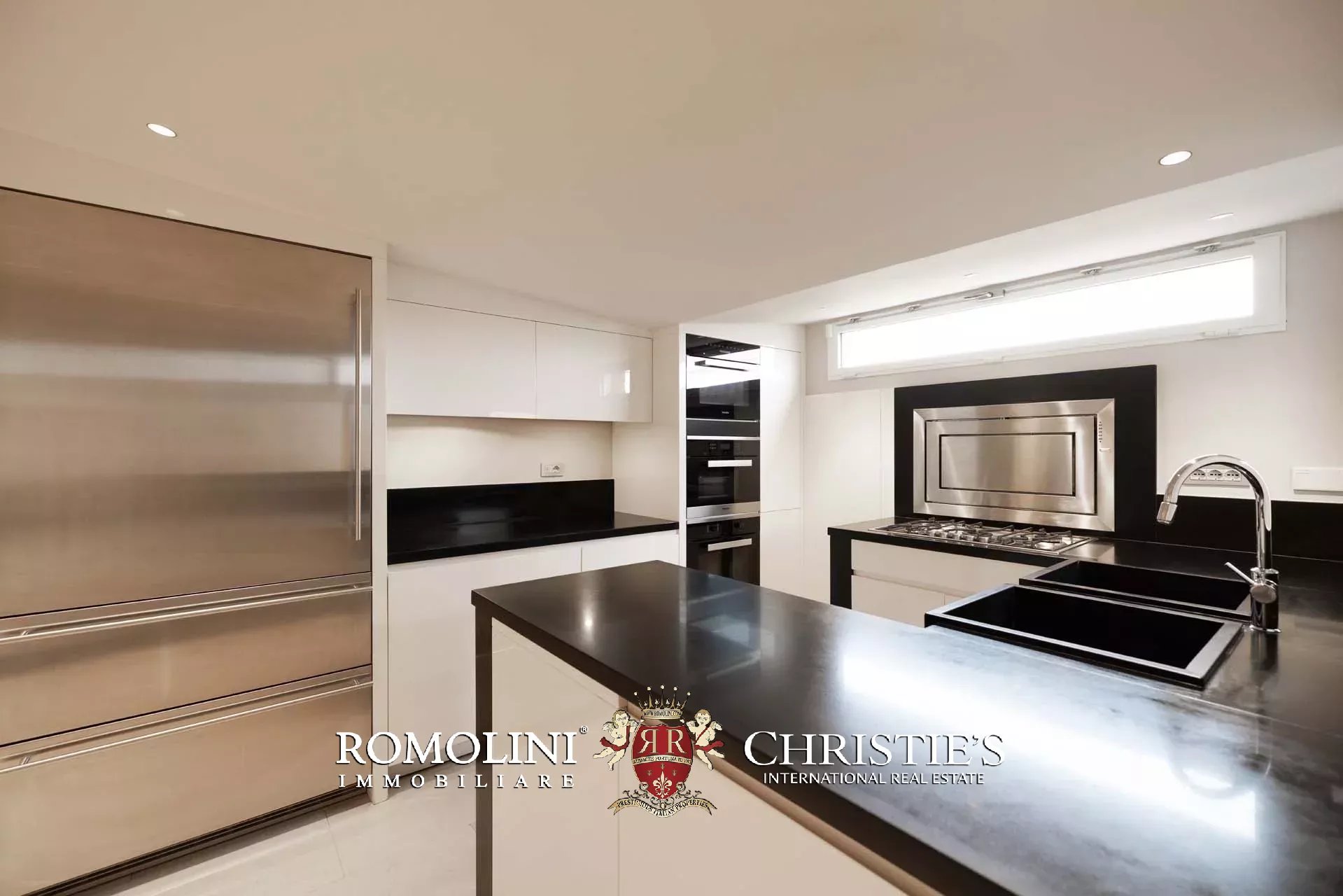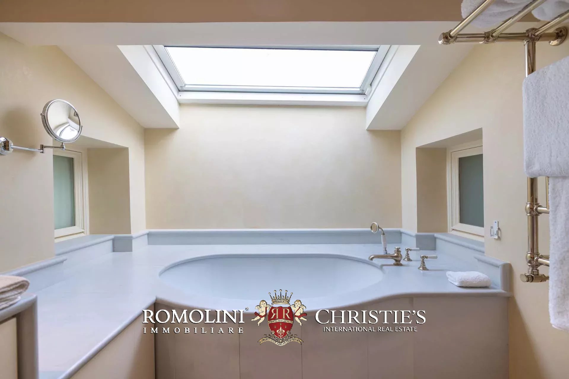 - Appartamento Botticelli (264 m², 3 camere e 4 bagni): accanto all’appartamento Leonardo, questa unità si apre con un piccolo ingresso collegato al grande salone di rappresentanza con bagno di servizio. A fianco della sala si trovano la zona pranzo e la cucina con dispensa, mentre agli angoli due porte conducono a tre camere con bagno en-suite e cabina armadio (una delle camere è accessibile scendendo una breve scala).