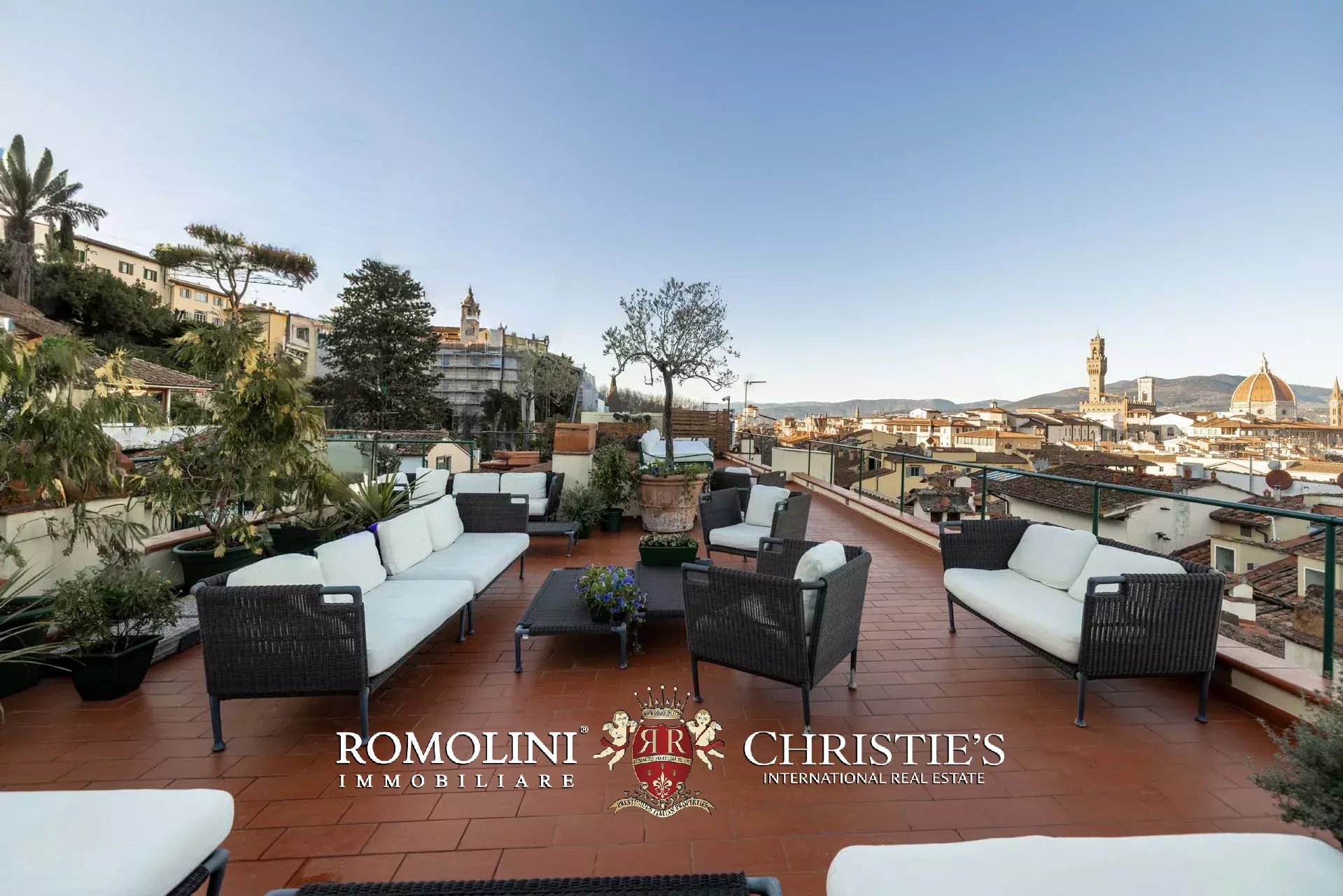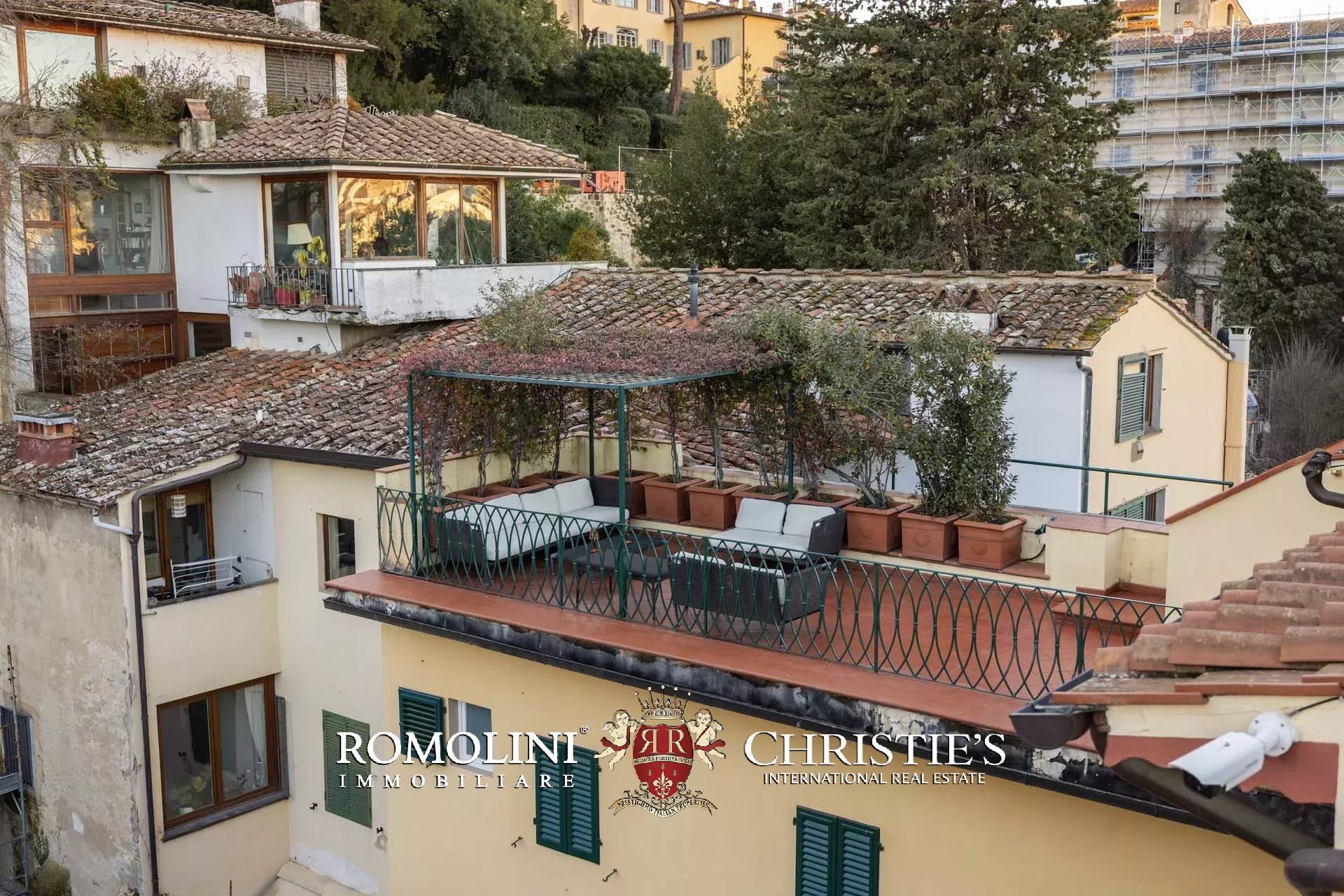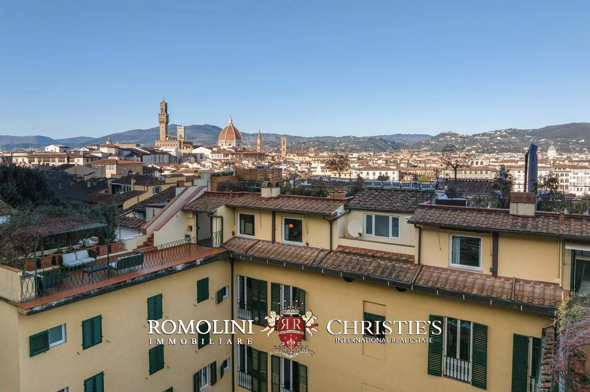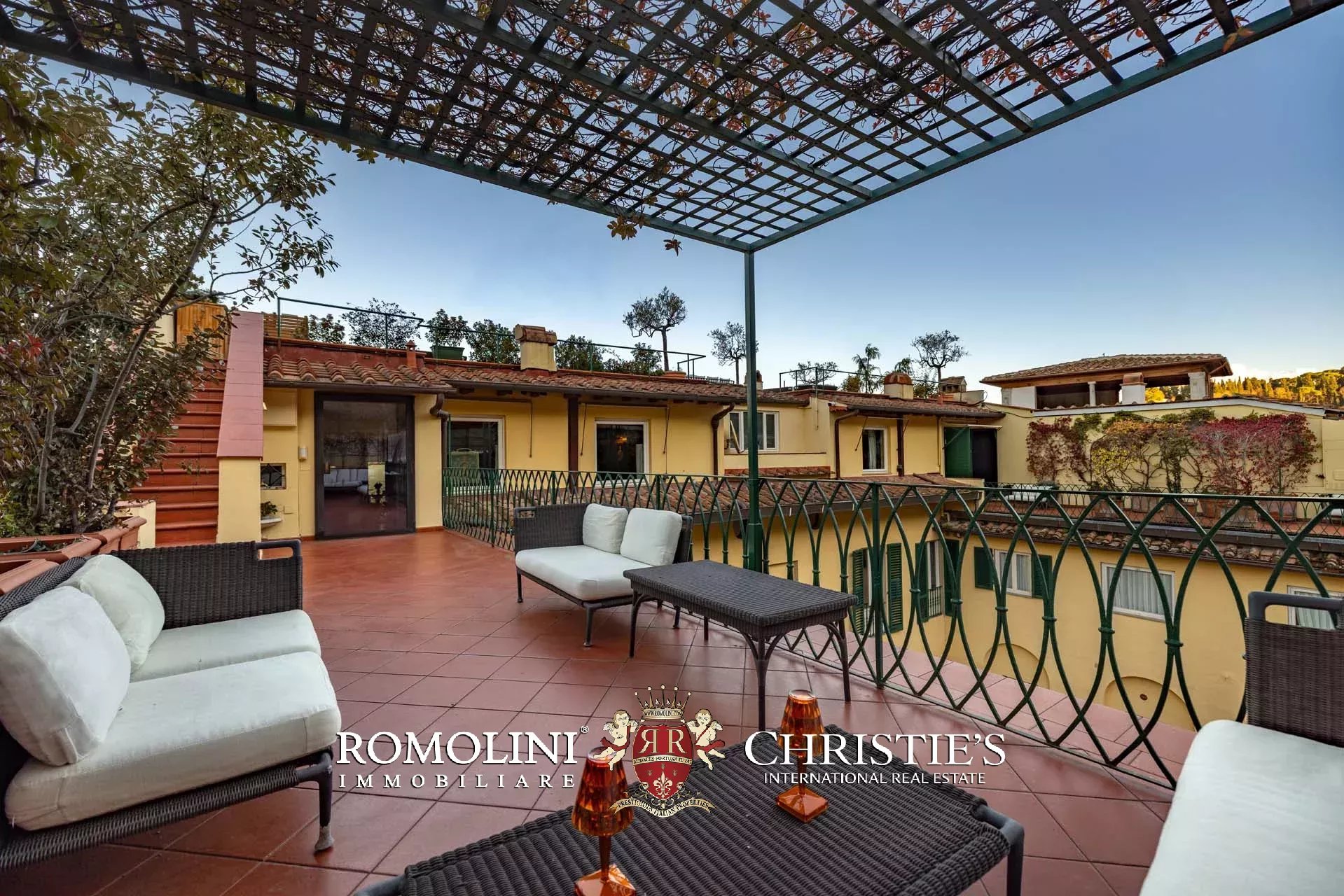 All’ultimo piano del palazzo si apre una terrazza panoramica di straordinaria bellezza, con viste mozzafiato sul centro storico di Firenze e sulle terrazze verdi del Giardino Bardini. Da qui lo sguardo abbraccia i tetti in cotto, le cupole e il profilo senza tempo della città, regalando un panorama unico che unisce secoli di storia, arte e paesaggio in un’armonia perfetta.