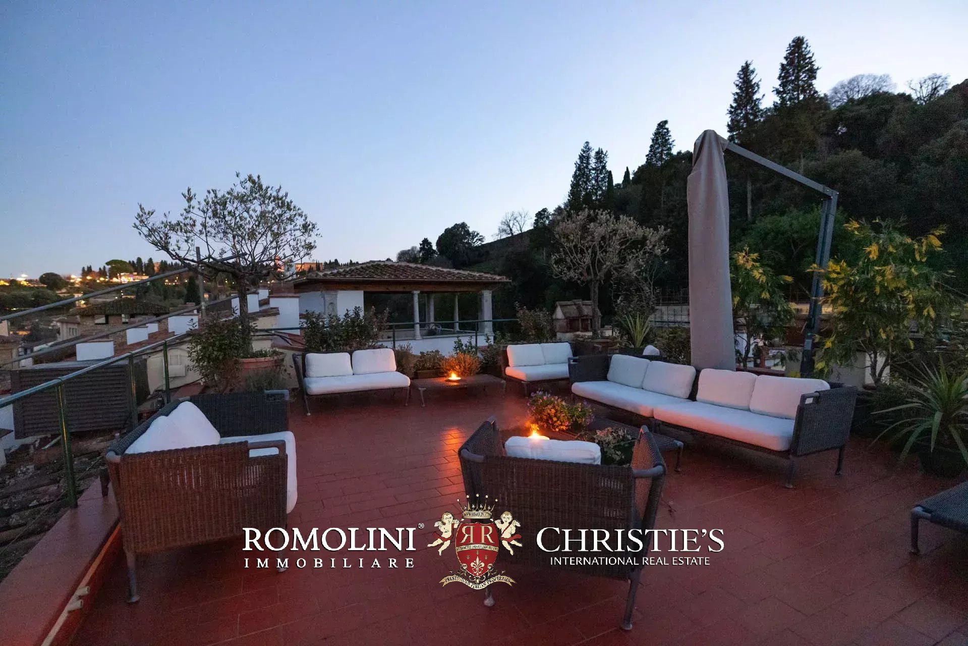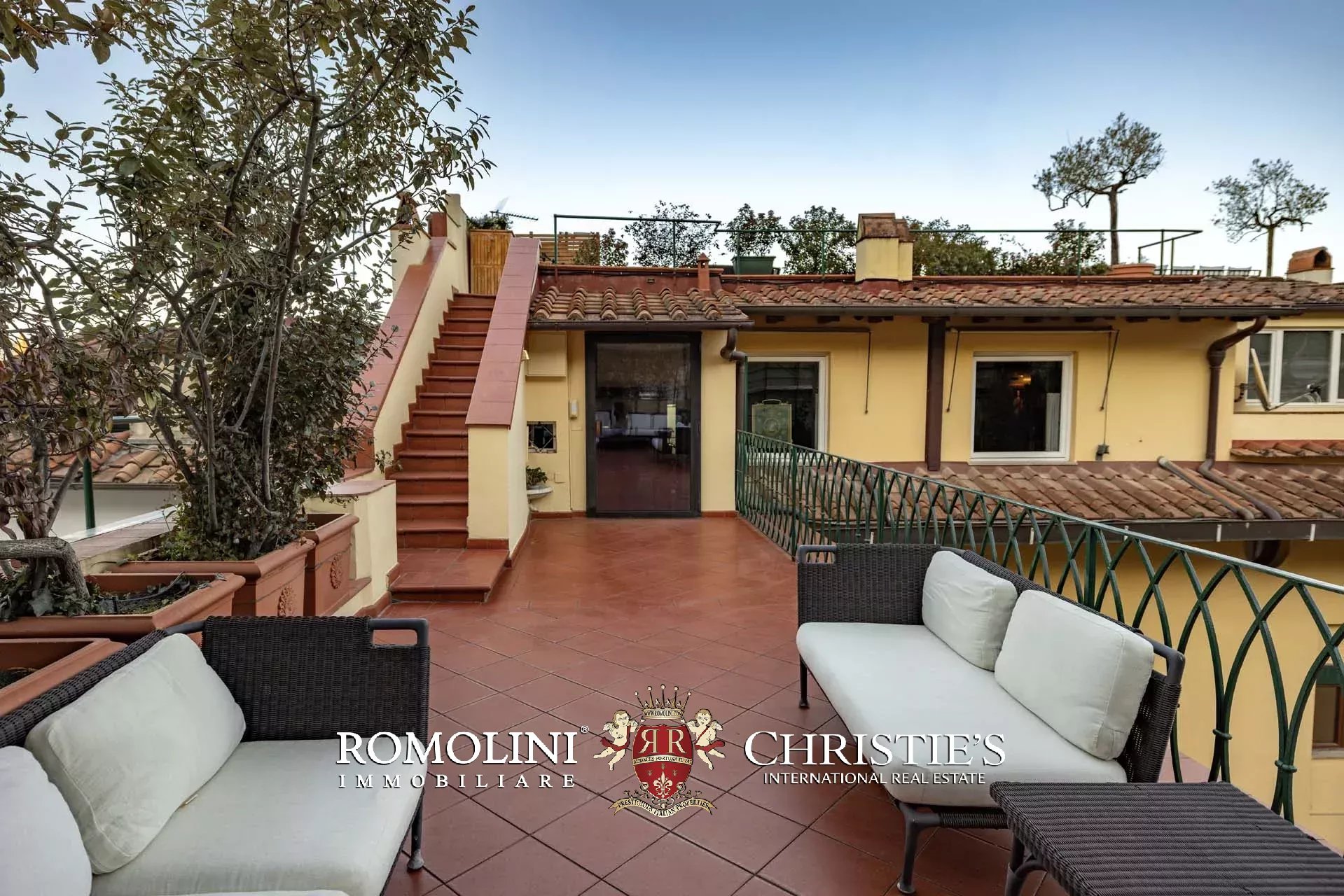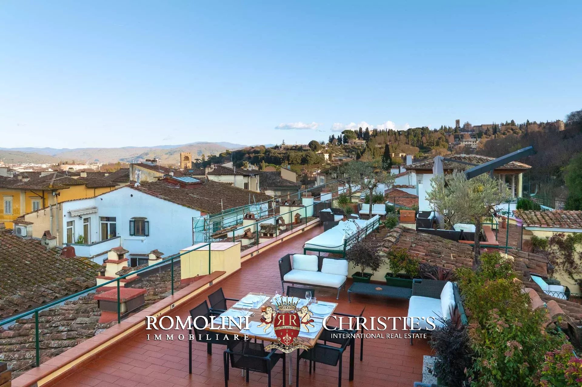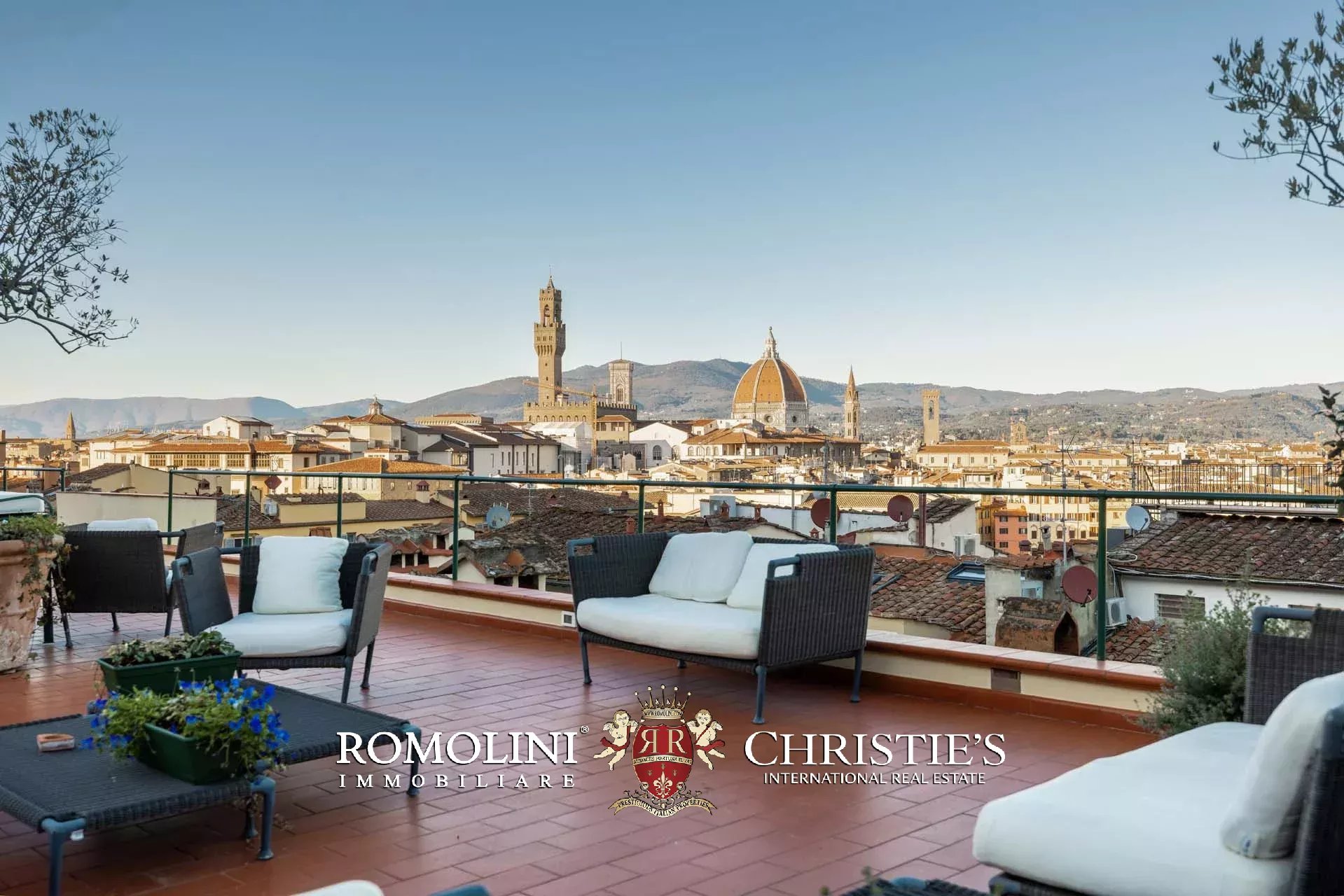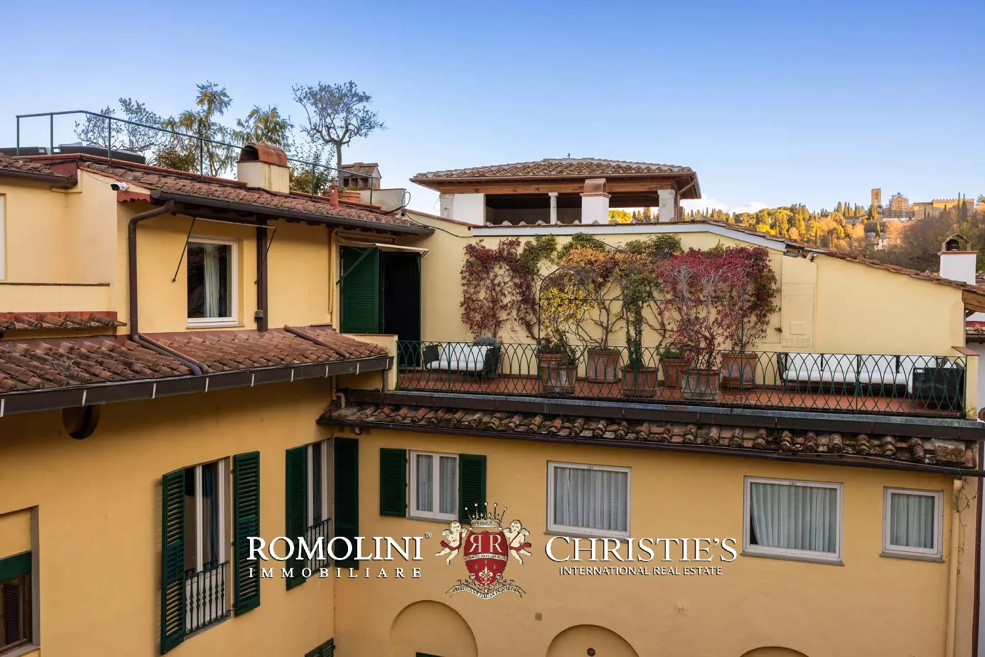 All’ultimo piano del palazzo si apre una terrazza panoramica di straordinaria bellezza, con viste mozzafiato sul centro storico di Firenze e sulle terrazze verdi del Giardino Bardini. Da qui lo sguardo abbraccia i tetti in cotto, le cupole e il profilo senza tempo della città, regalando un panorama unico che unisce secoli di storia, arte e paesaggio in un’armonia perfetta.