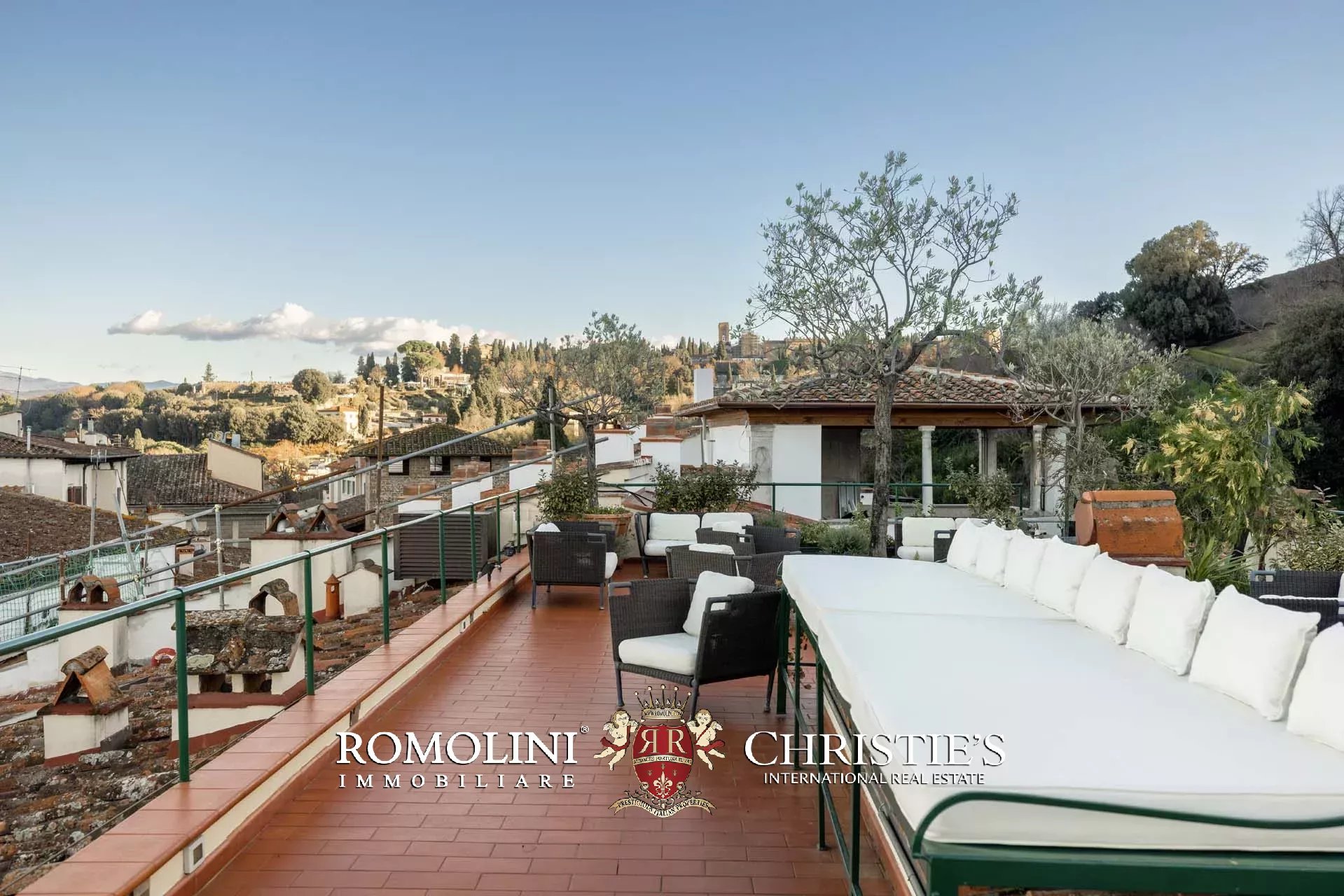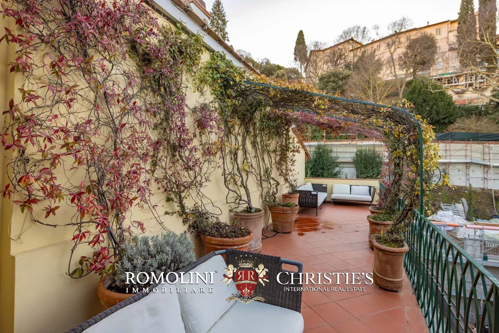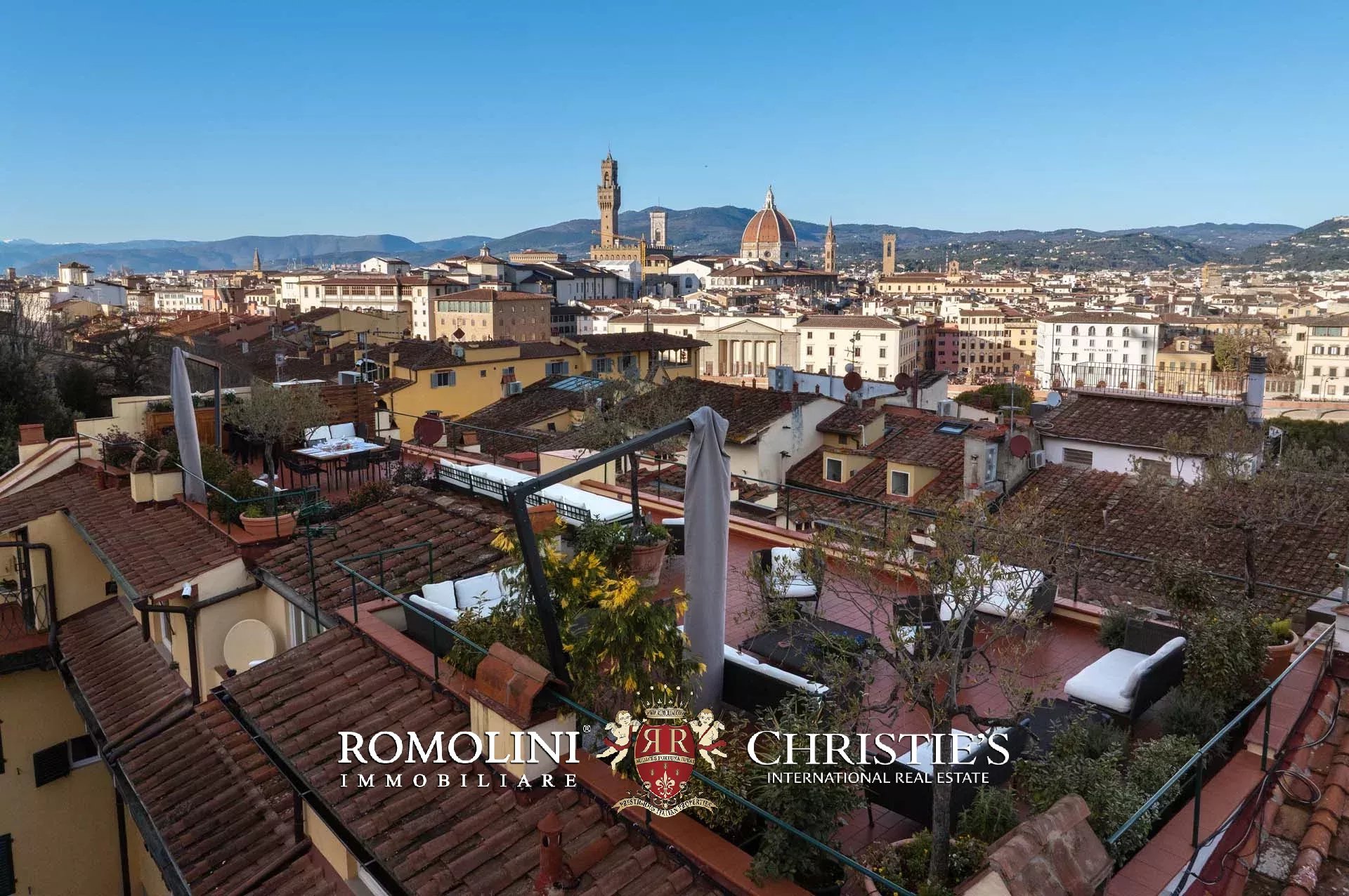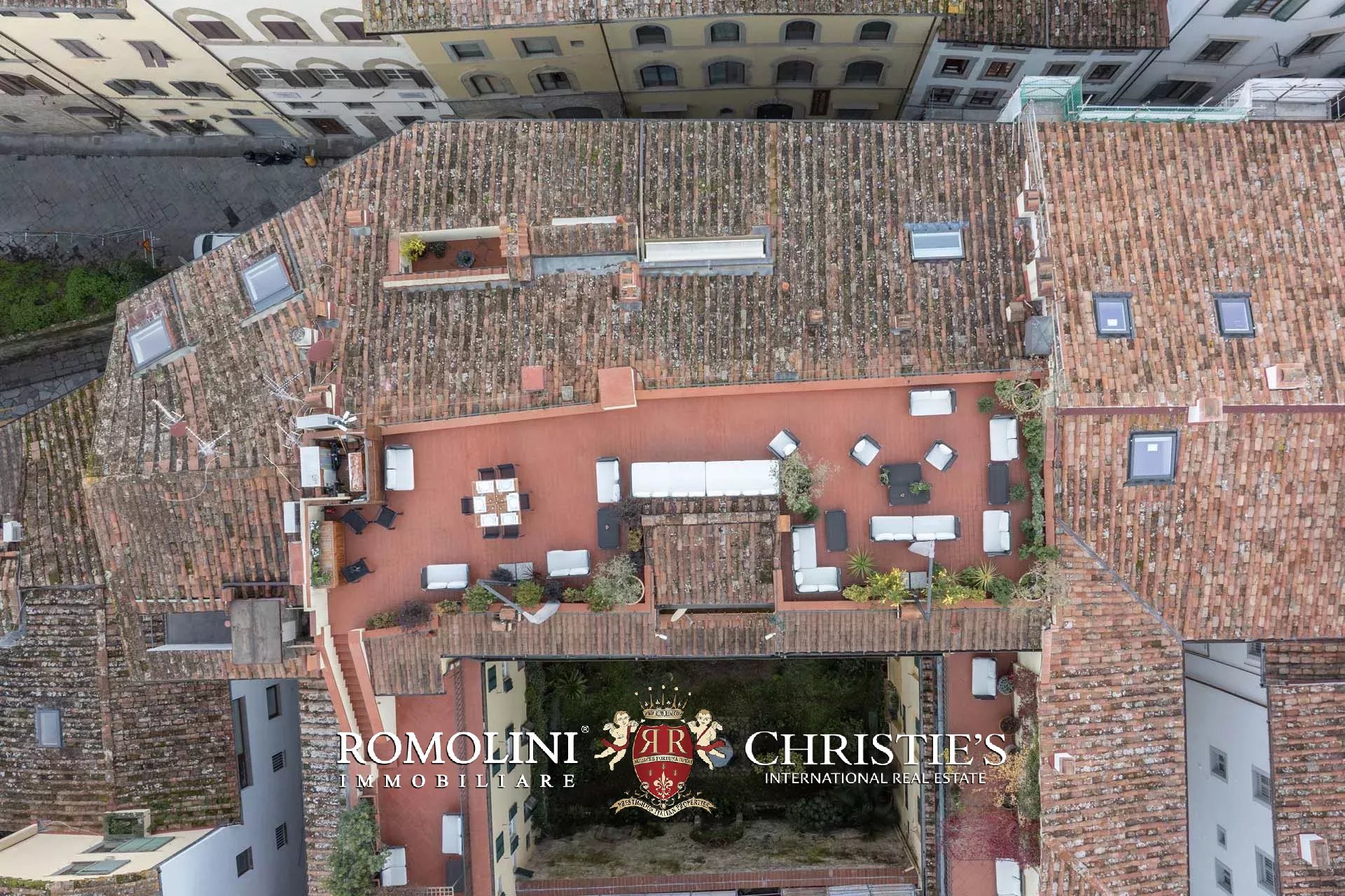 All’ultimo piano del palazzo si apre una terrazza panoramica di straordinaria bellezza, con viste mozzafiato sul centro storico di Firenze e sulle terrazze verdi del Giardino Bardini. Da qui lo sguardo abbraccia i tetti in cotto, le cupole e il profilo senza tempo della città, regalando un panorama unico che unisce secoli di storia, arte e paesaggio in un’armonia perfetta.