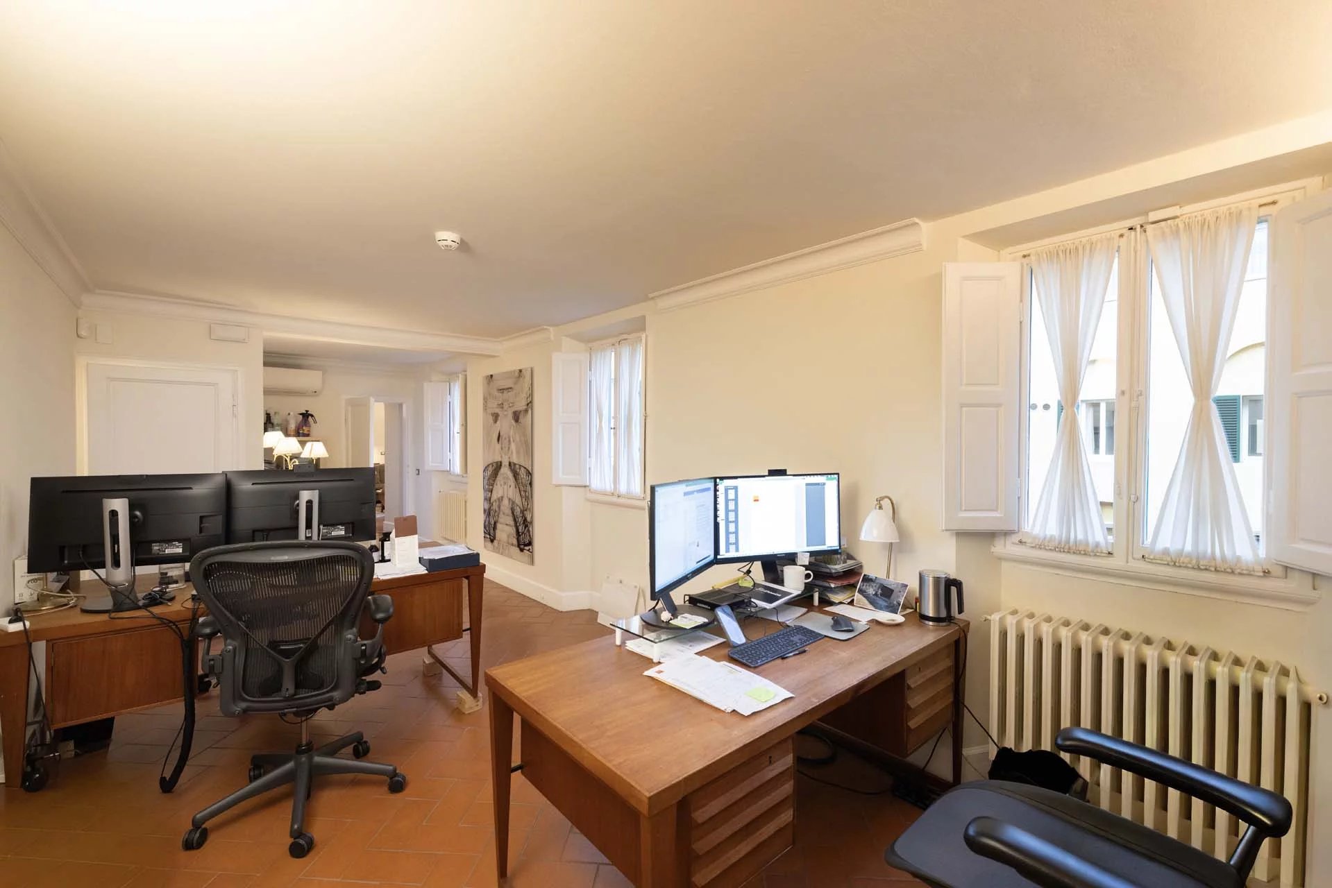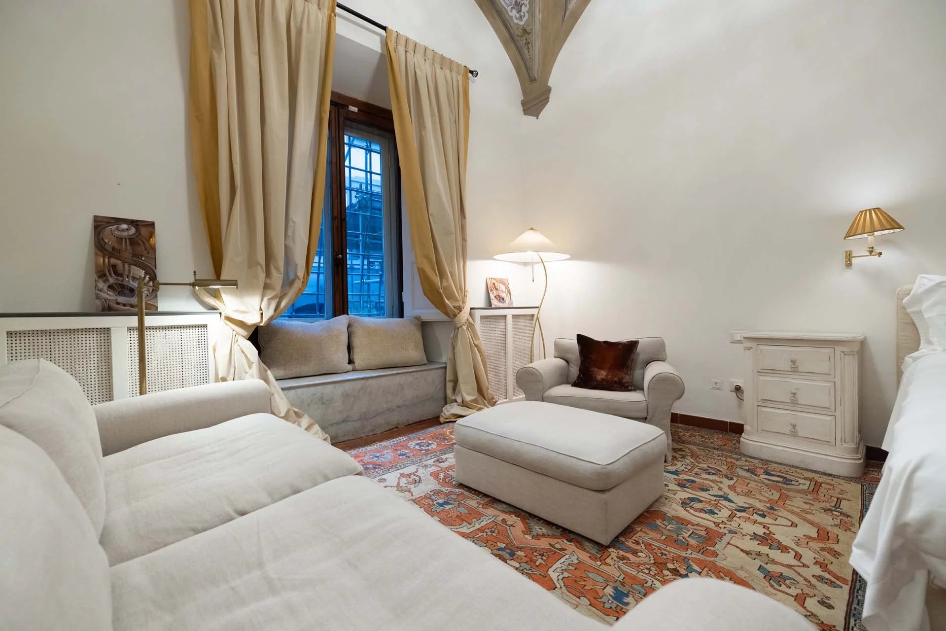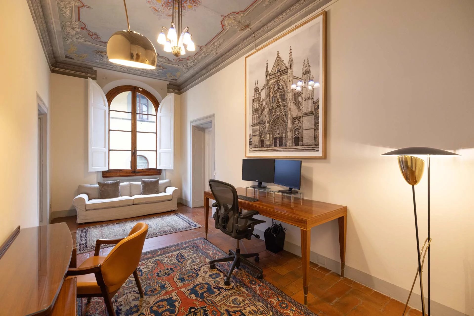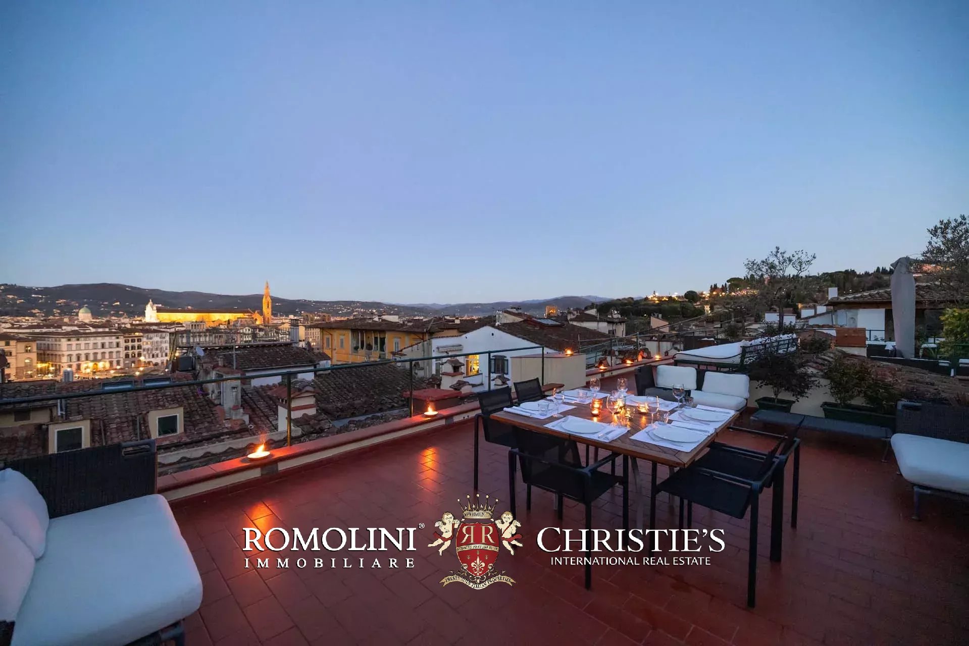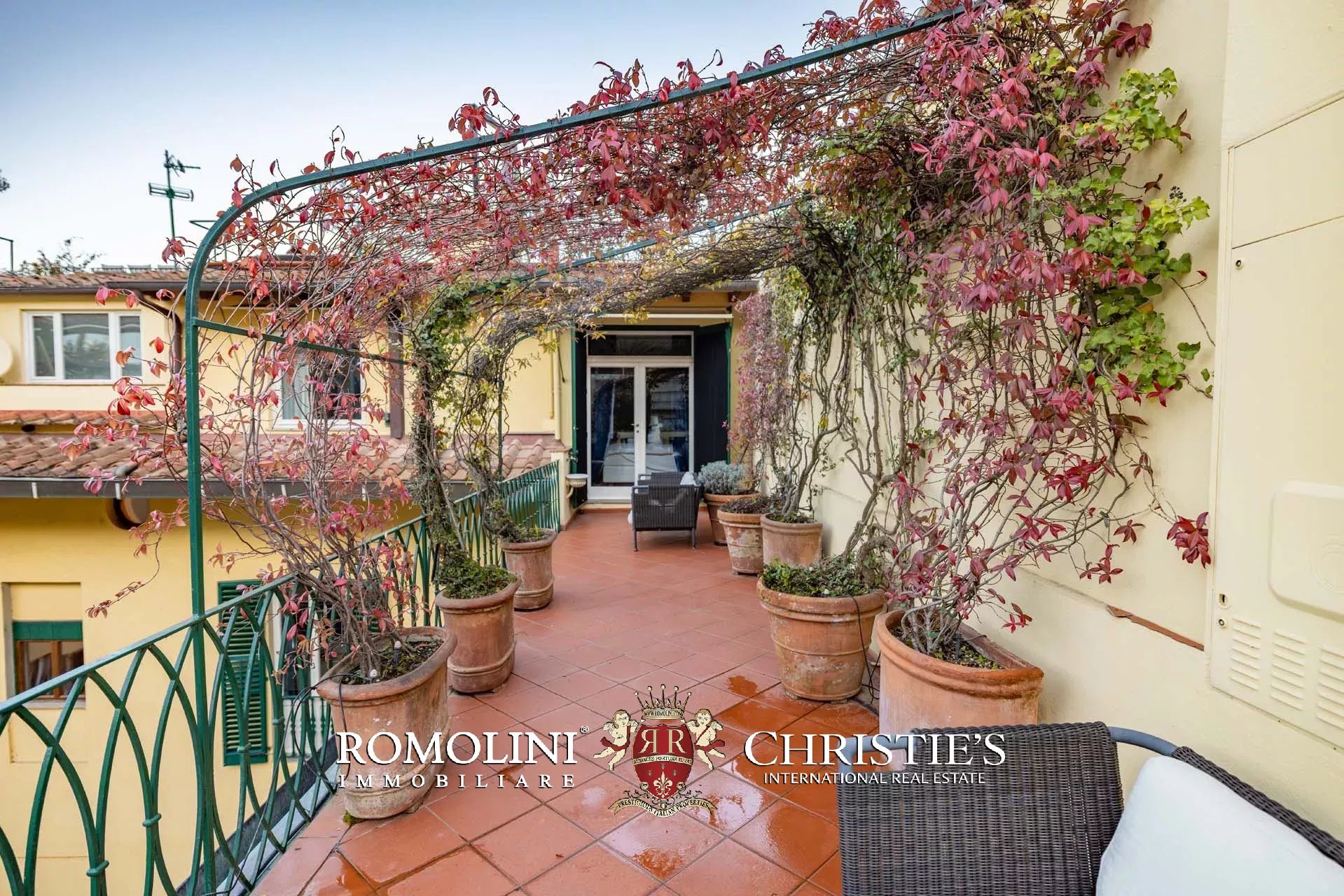 All’ultimo piano del palazzo si apre una terrazza panoramica di straordinaria bellezza, con viste mozzafiato sul centro storico di Firenze e sulle terrazze verdi del Giardino Bardini. Da qui lo sguardo abbraccia i tetti in cotto, le cupole e il profilo senza tempo della città, regalando un panorama unico che unisce secoli di storia, arte e paesaggio in un’armonia perfetta.
