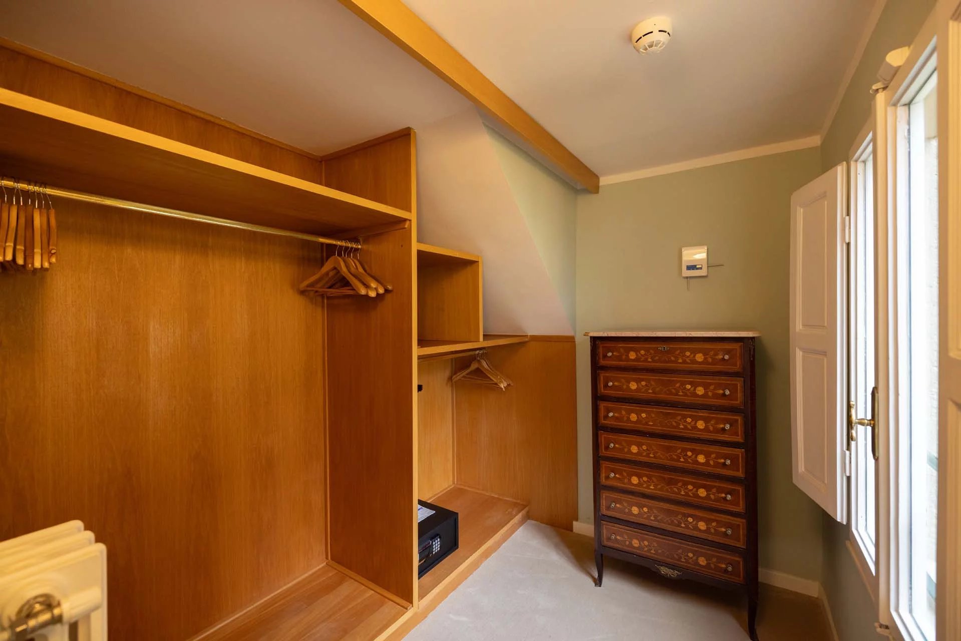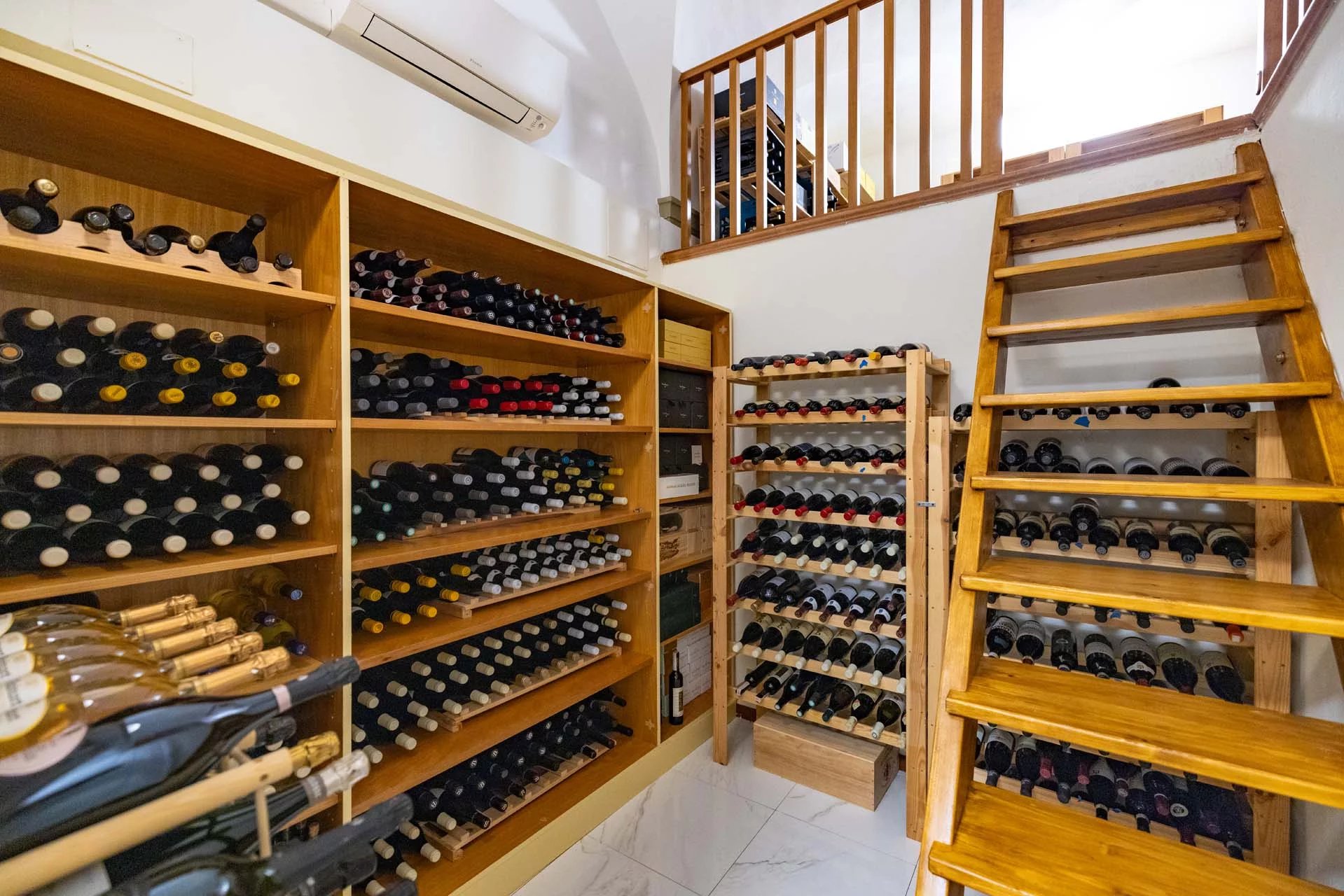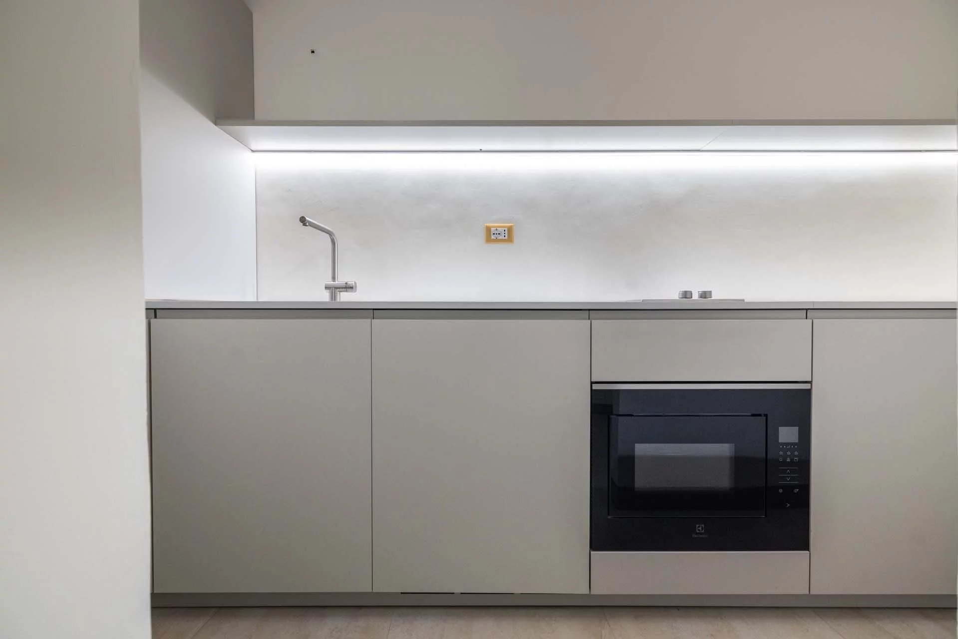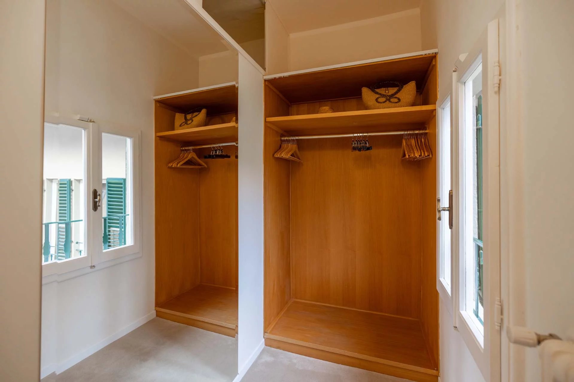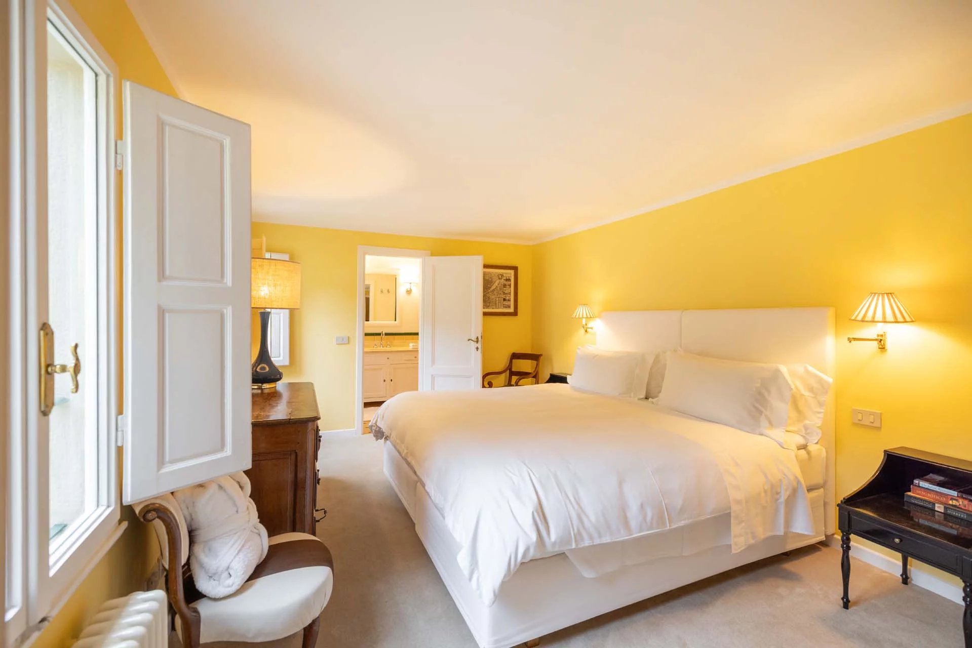 - Appartamento Giotto (147 m², 1 camera e 2 bagni): sempre al piano terra, l’unità è accessibile direttamente dalla strada o dall’androne condominiale e viene attualmente usata dai custodi della proprietà. Le due porte si aprono su un salotto con bagno, collegato posteriormente alla lavanderia. Salendo una scala interna si arriva alla sala da pranzo con annessa cucina e alla camera con bagno e cabina armadio.