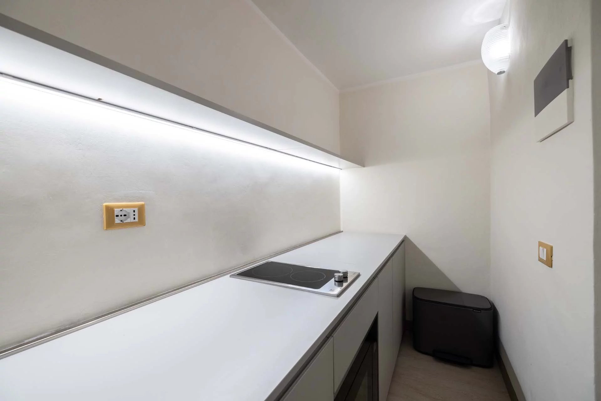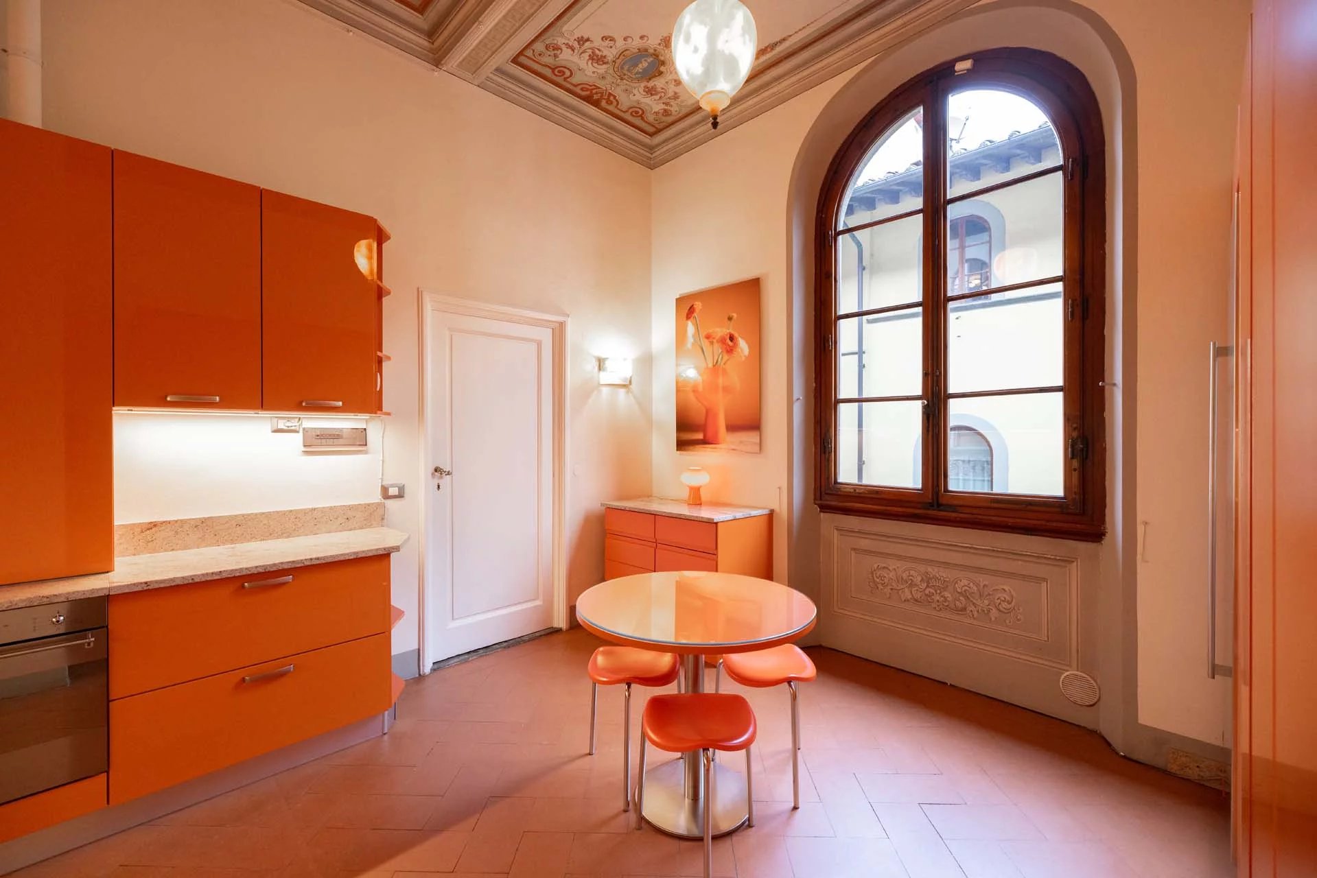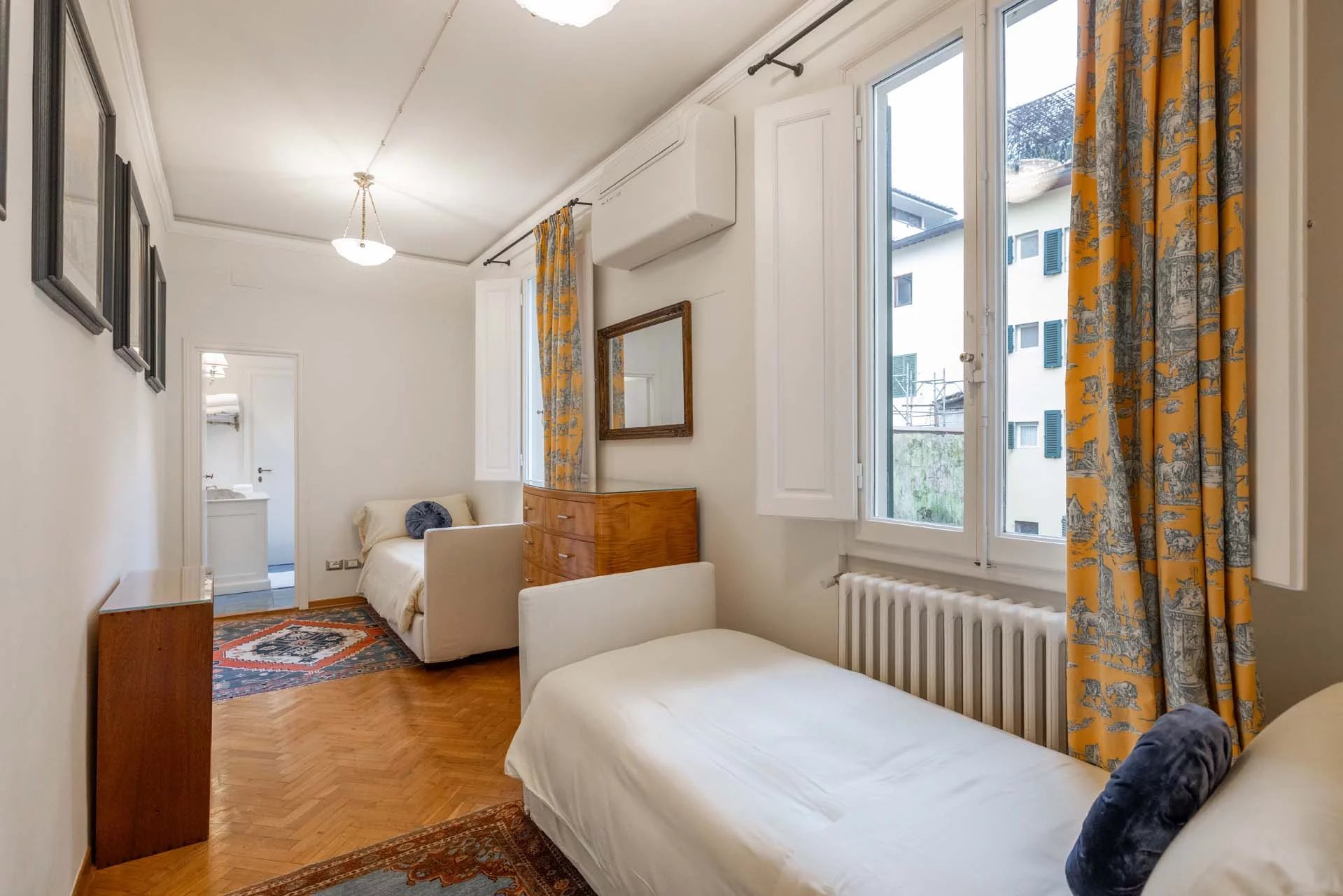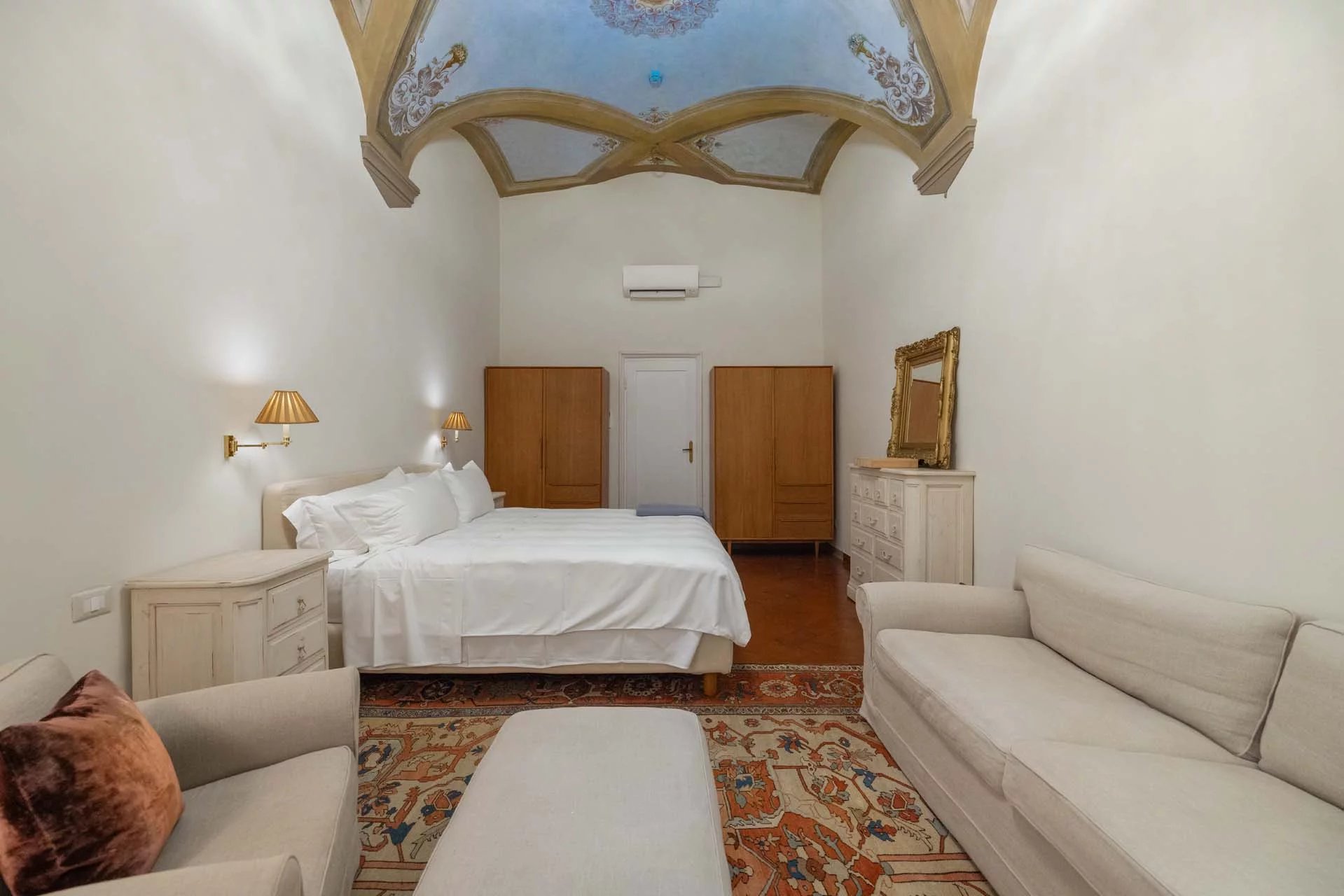 - Appartamento Brunelleschi (48 m², 1 camera e 1 bagno): posta al piano terra, questa piccola unità indipendente è accessibile dall’androne condominiale e si compone di una grande stanza che funge da zona giorno/notte, cucina e bagno.