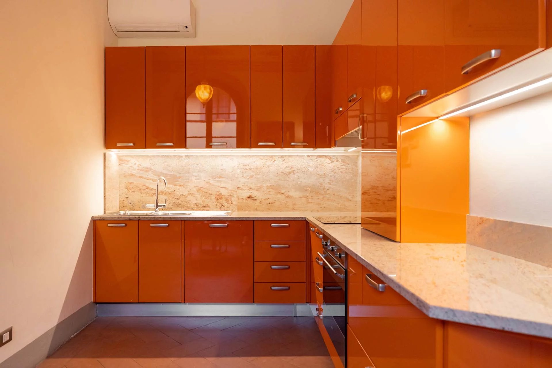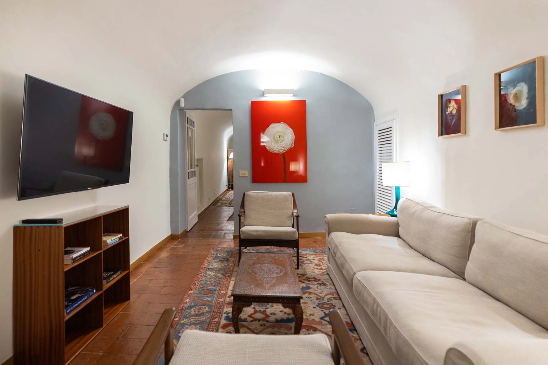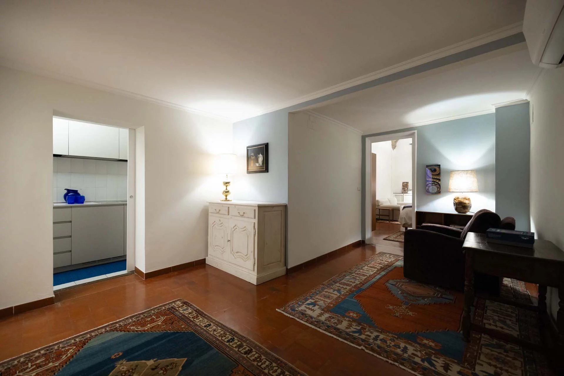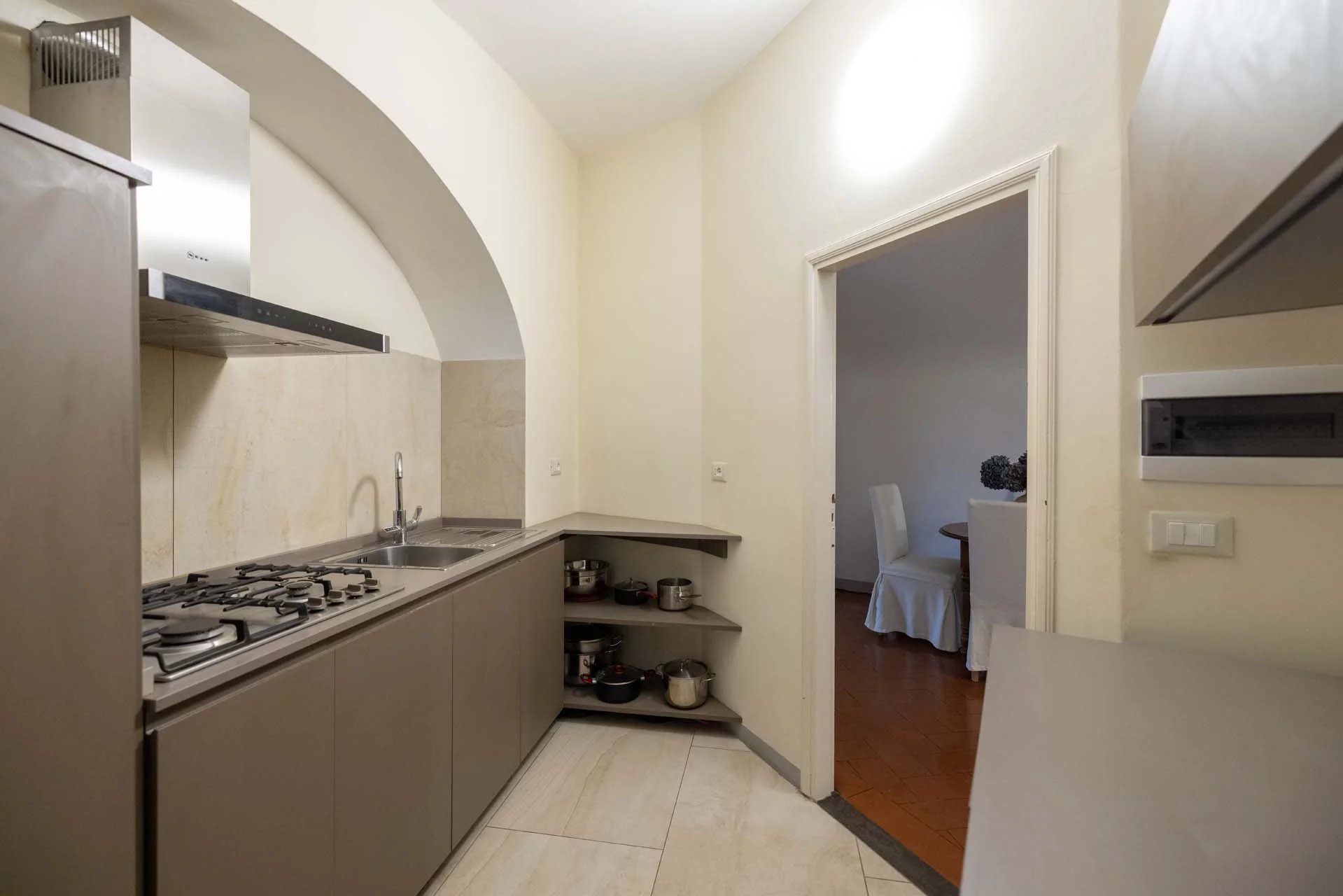 - Appartamento Brunelleschi (48 m², 1 camera e 1 bagno): posta al piano terra, questa piccola unità indipendente è accessibile dall’androne condominiale e si compone di una grande stanza che funge da zona giorno/notte, cucina e bagno.