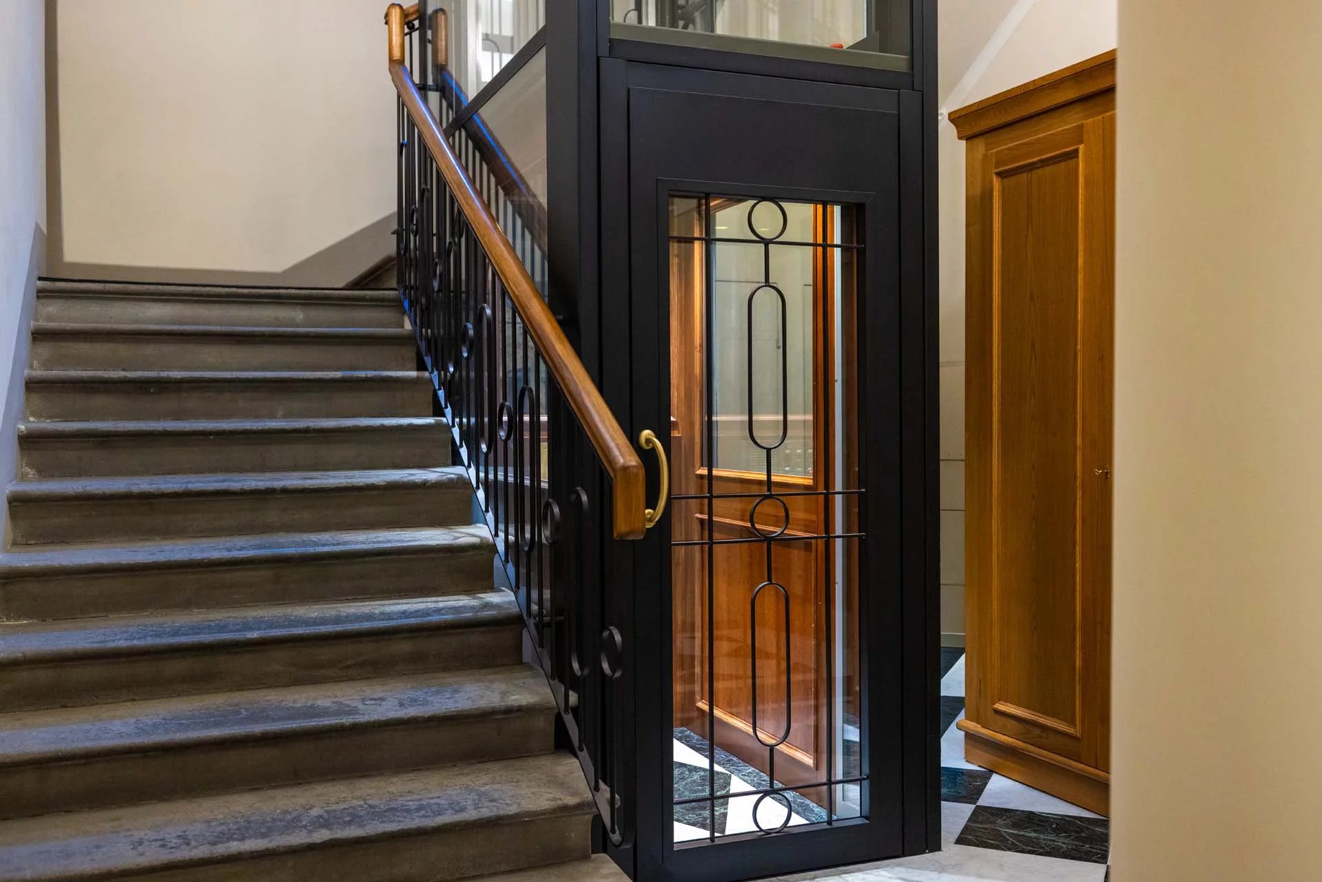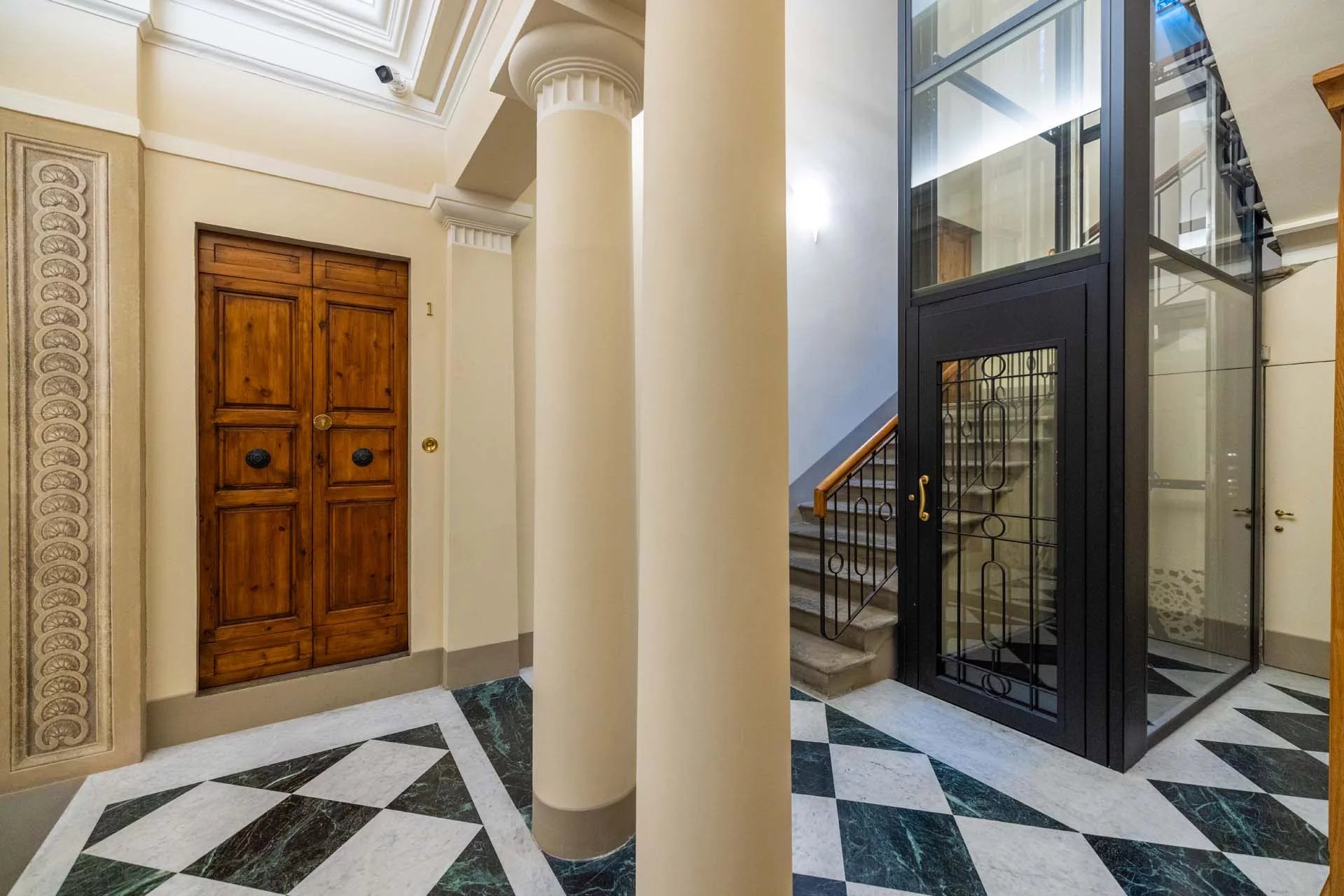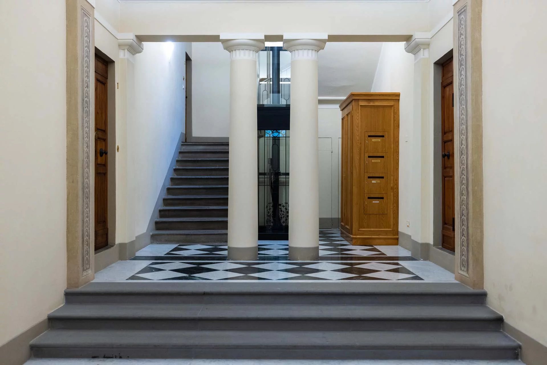 I cinque piani del palazzo sono tutti collegati da un comodo ascensore che parte dall’androne condominiale. Troviamo il garage e tre appartamenti al piano terra, un appartamento al piano ammezzato, due al piano secondo, due al terzo e il più grande al quarto (completato dalla terrazza sul tetto esclusiva).