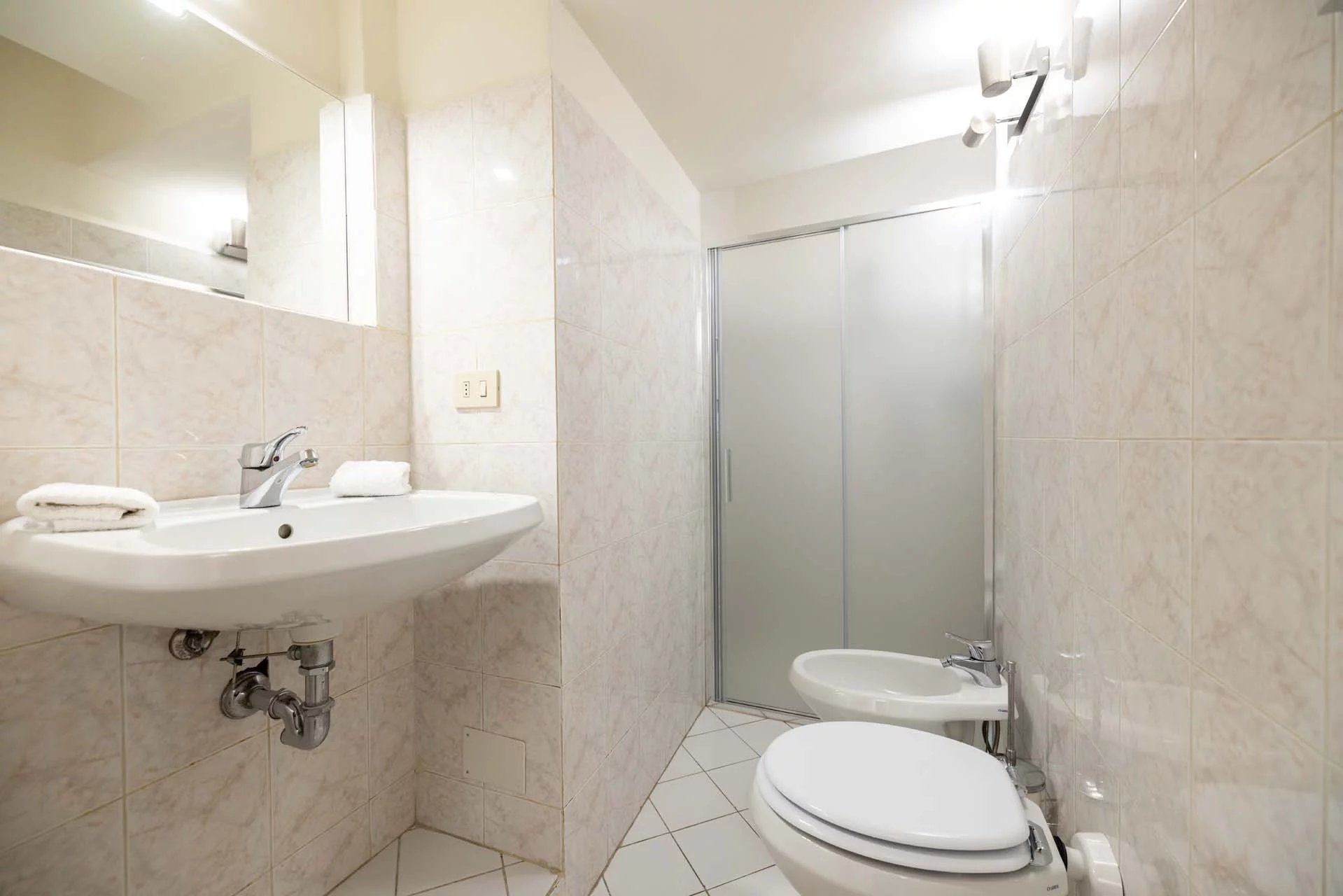 - Appartamento Leonardo (75 m², 1 camera e 1 bagno): posto al terzo piano, l’appartamento si apre con un ingresso che conduce alla zona giorno con cucina. Da qui si passa poi alla camera con bagno en-suite.