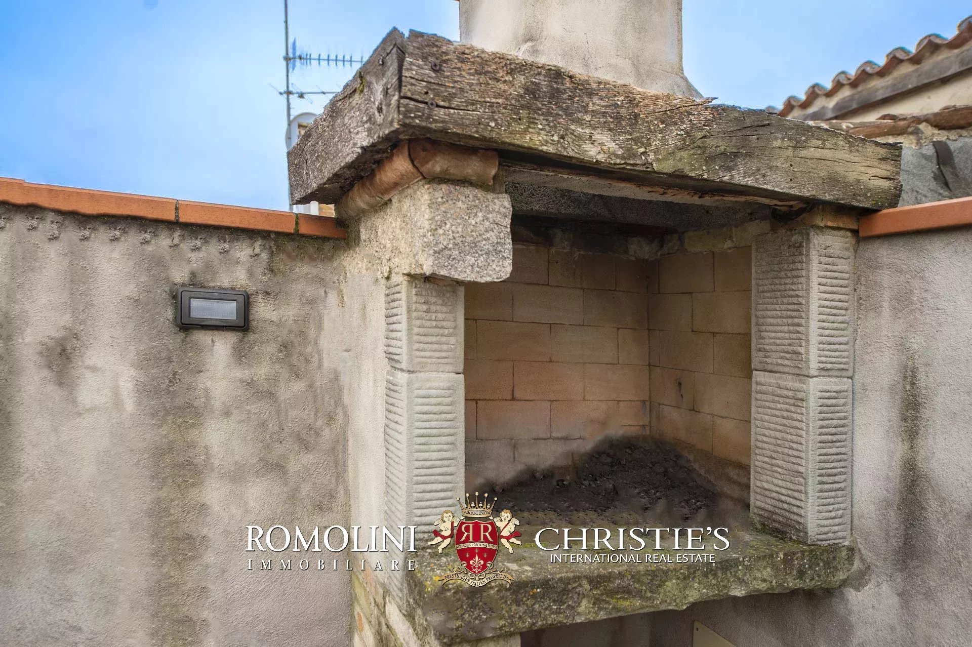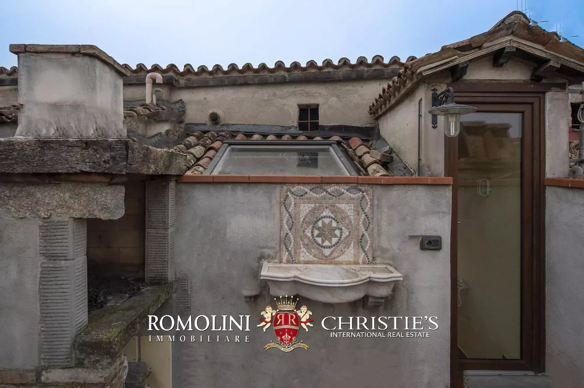Attraverso una scala di design, incorniciata da un passamano in ferro battuto di fine Ottocento, si accede al piano superiore, spazio di servizio per locale tecnico e lavanderia e l’ingresso alla terrazzina a tasca (circa 10 m²) dotata di barbecue e lavandino in marmo a conchiglia. Da qui si ha uno scorcio suggestivo sui vicoli della città, con una vista che spazia dai tetti del centro storico fino alle campagne circostanti.