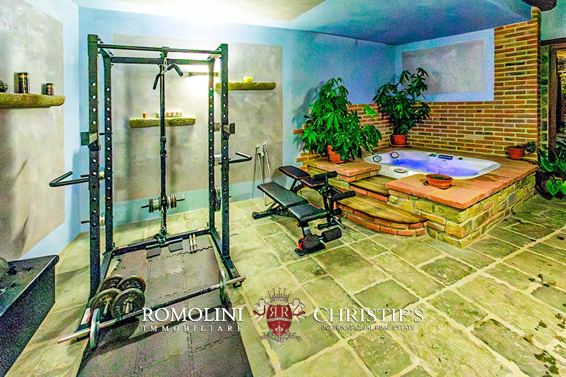 - Piano terra: locali adibiti a cantina e deposito, oltre a un locale tecnico/centrale termica. Sul lato affacciato verso la piscina si trova una loggia, con accanto una quercia secolare che offre riparo dalla calura estiva.