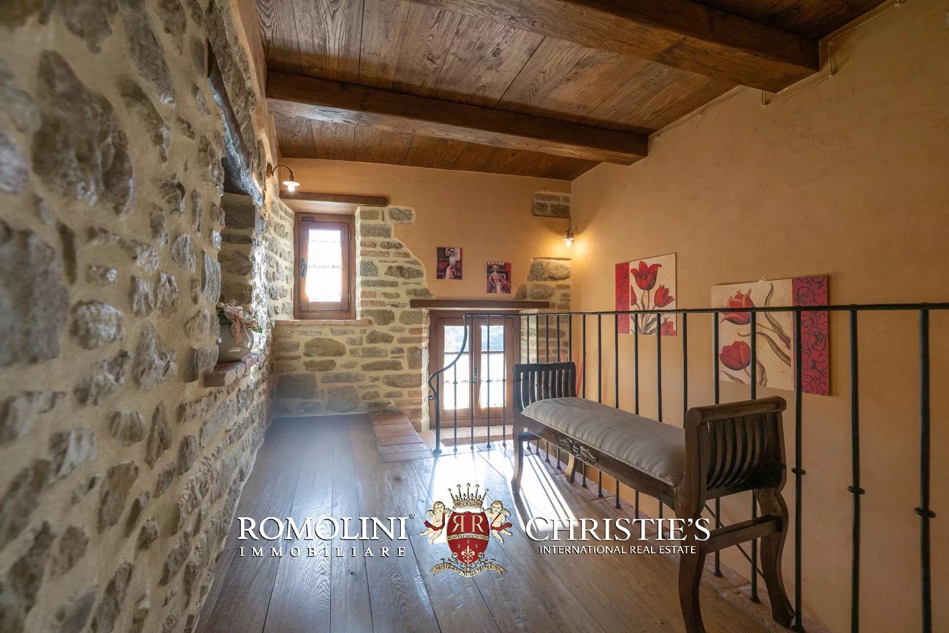 La posizione della proprietà è molto interessante, in quanto piuttosto privata ma non lontana da un paese in grado di offrire tutti i servizi necessari: in meno di cinque minuti si possono infatti raggiungere supermercati, scuole, ufficio postale, negozi e studi medici. La posizione non lontana dalla strada umbro-casentinese è un ulteriore vantaggio in quanto permette di raggiungere rapidamente centri più grandi come Bibbiena e Arezzo.