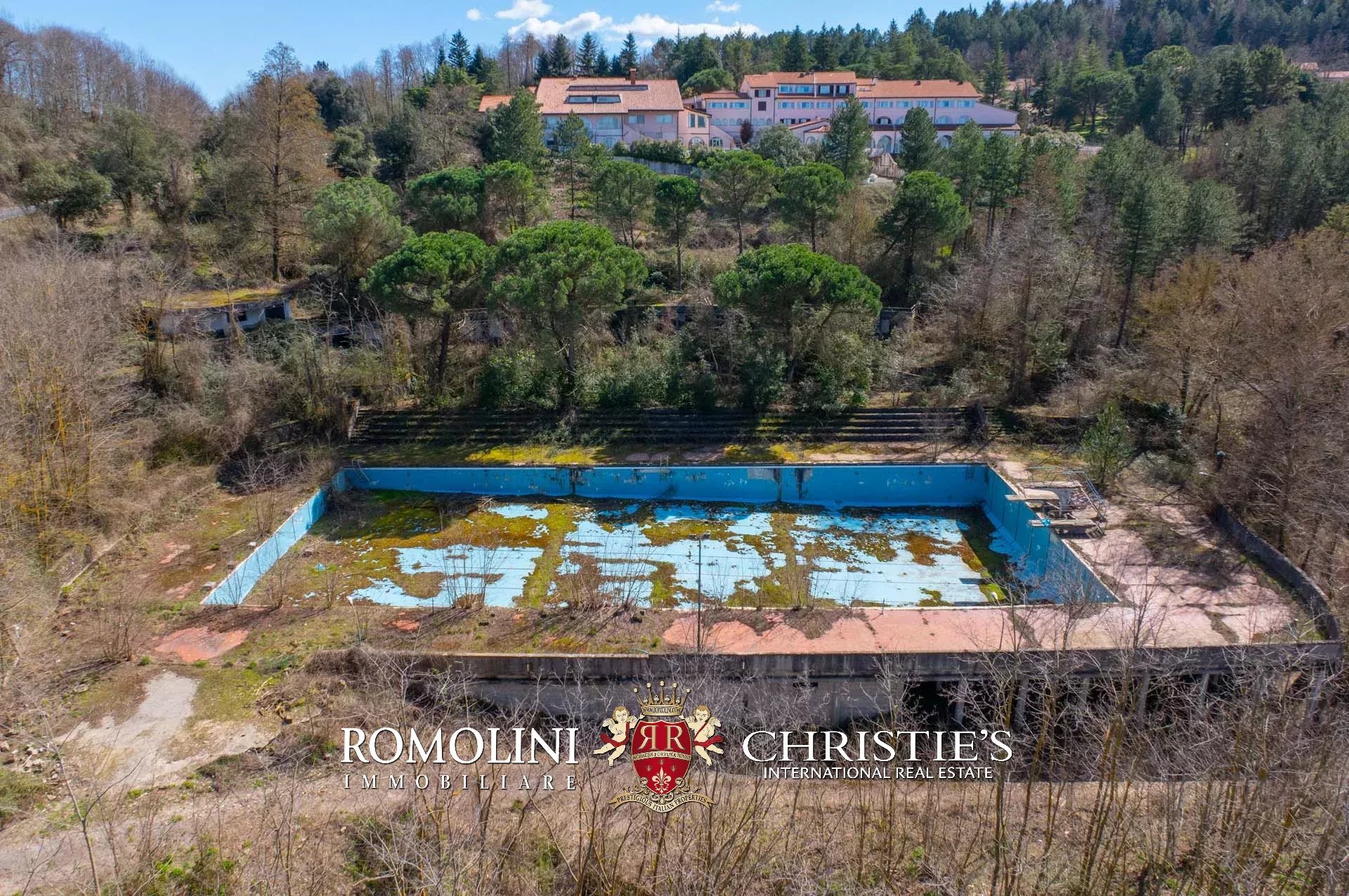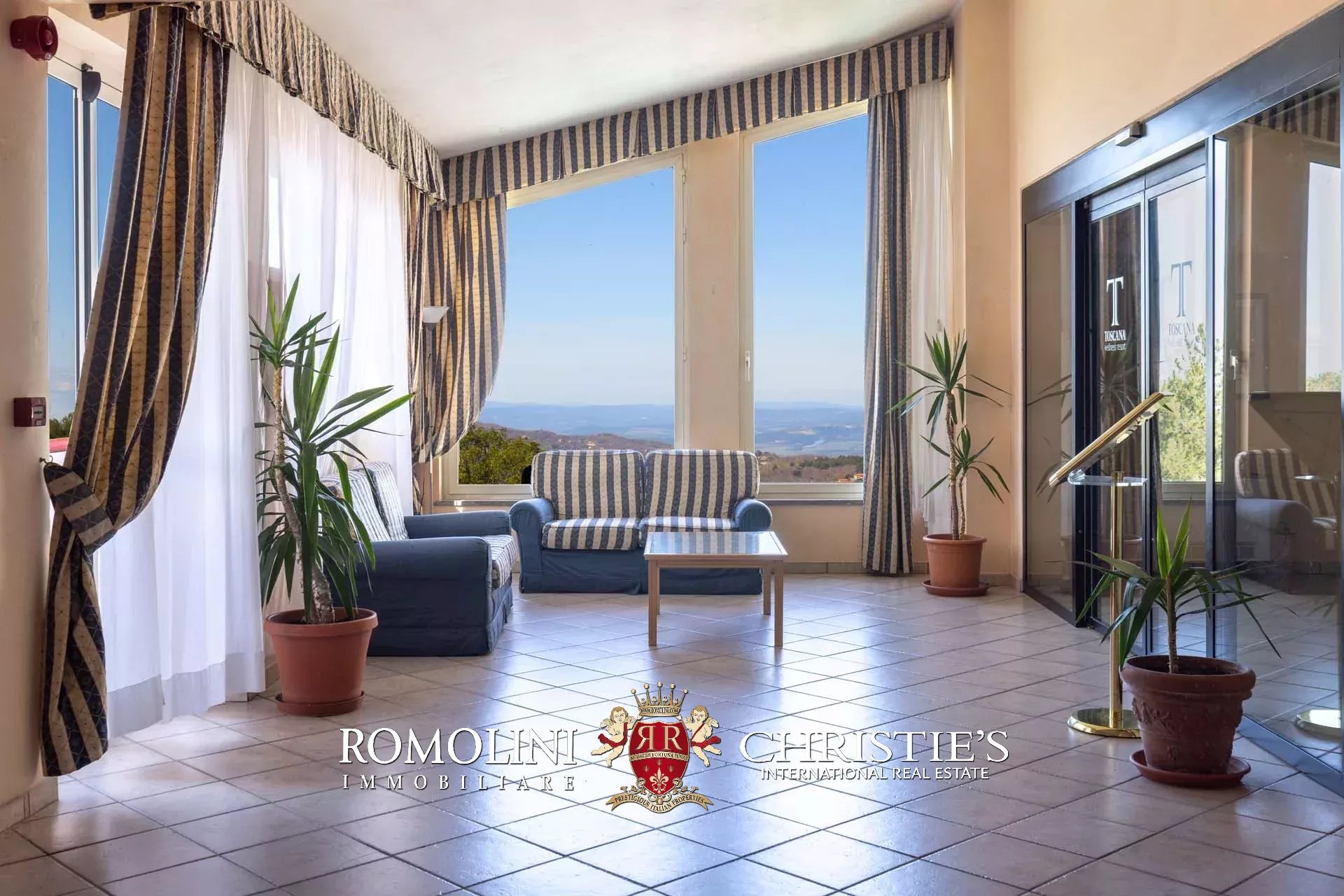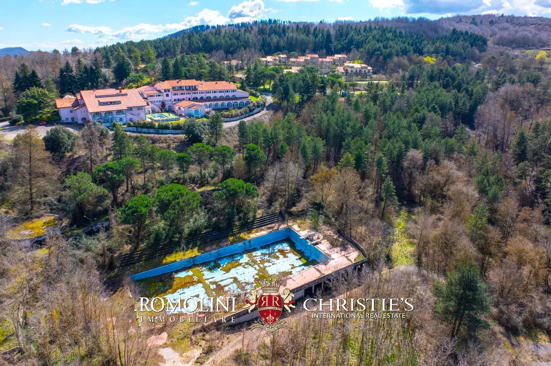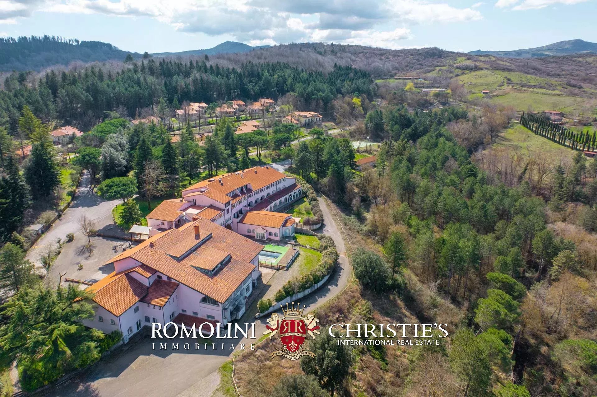 Sulle colline tra Val d’Orcia e Maremma, in posizione molto panoramica, resort con sorgente termale in vendita. La proprietà (oltre 7.500 m²) include 108 camere per gli ospiti, centro benessere, ristorante, piscina olimpica e maneggio per cavalli, ed è circondata da oltre 40.000 m² di parco alberato con aree relax. Tutto attorno, altri 18,4 ha di terreno sono coperti prevalentemente di alberi e assicurano zone ombreggiate in cui rilassarsi in estate.