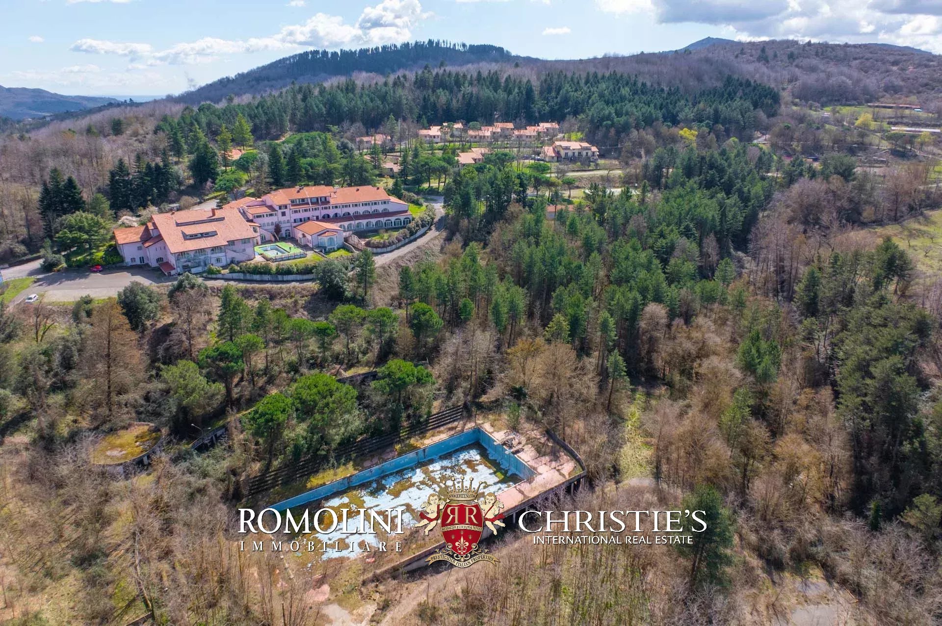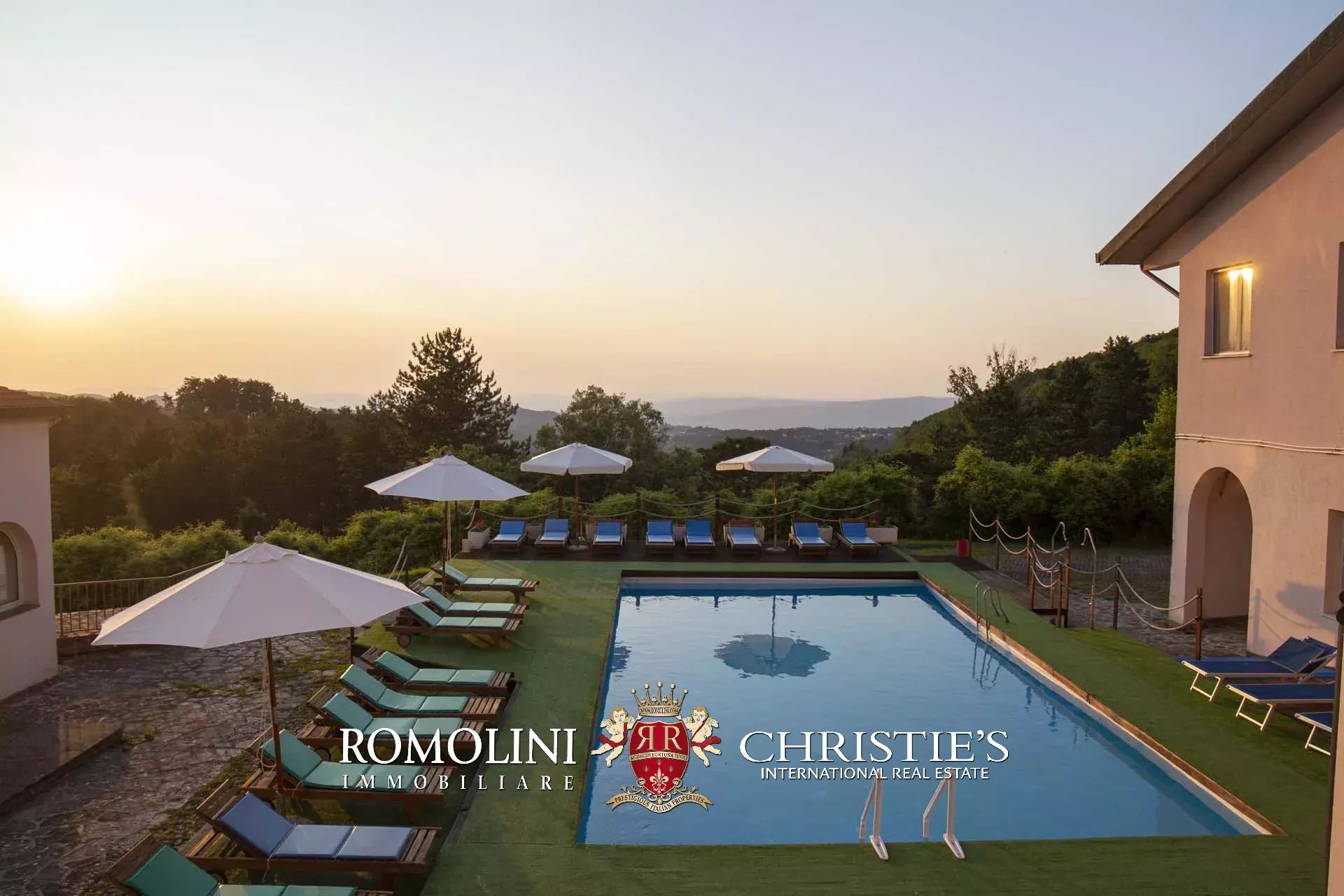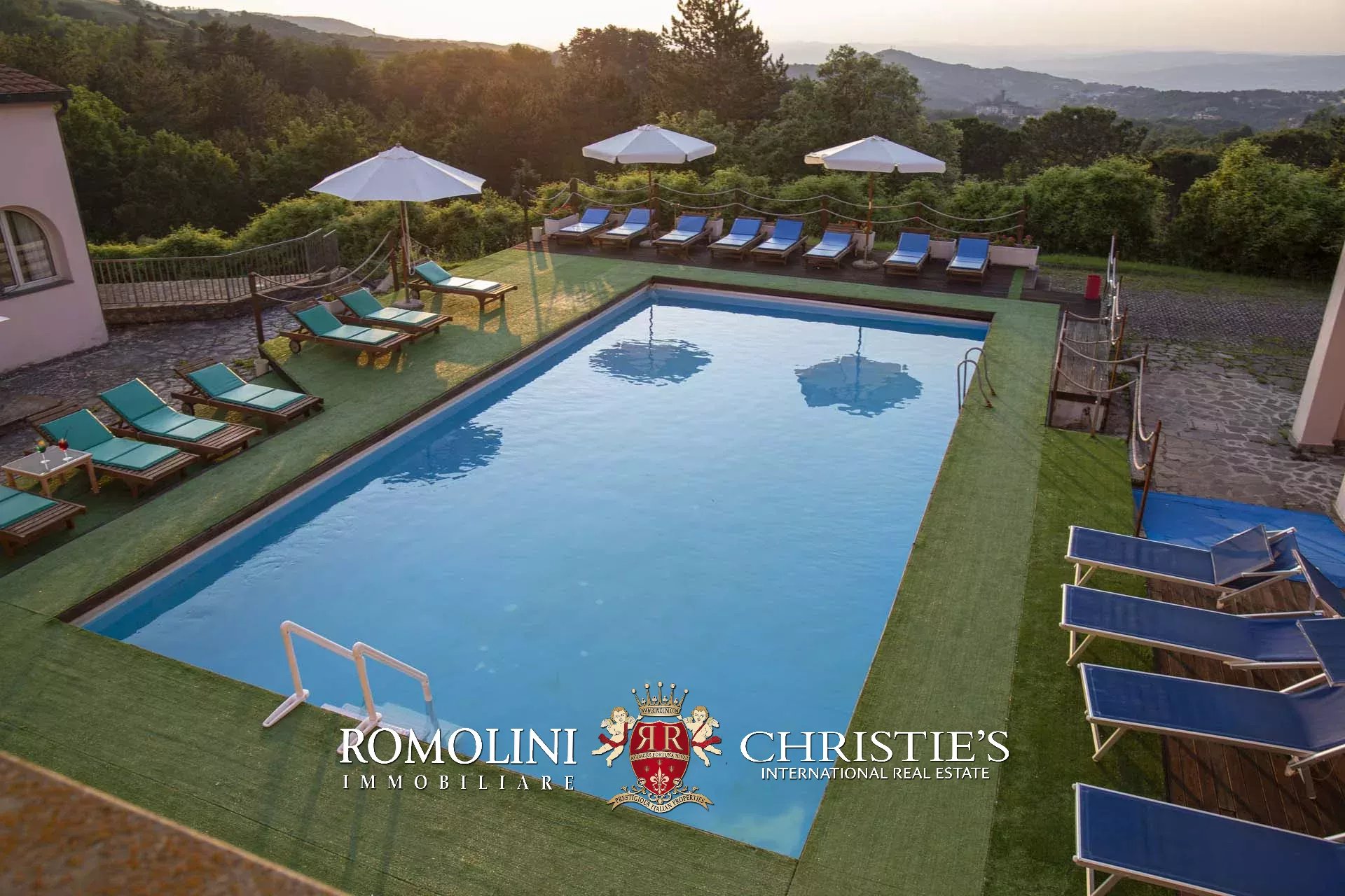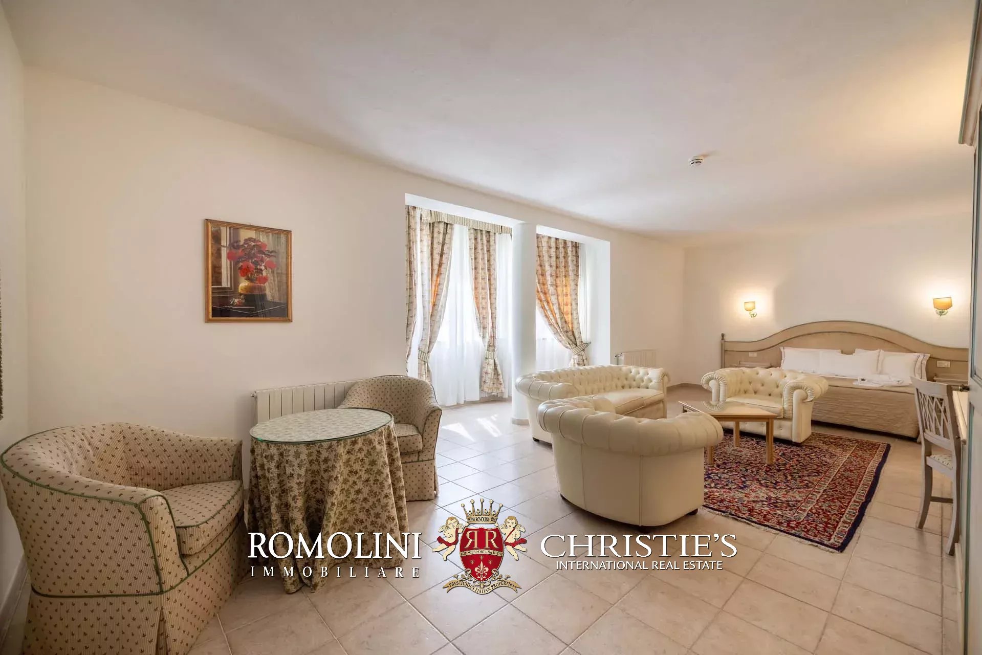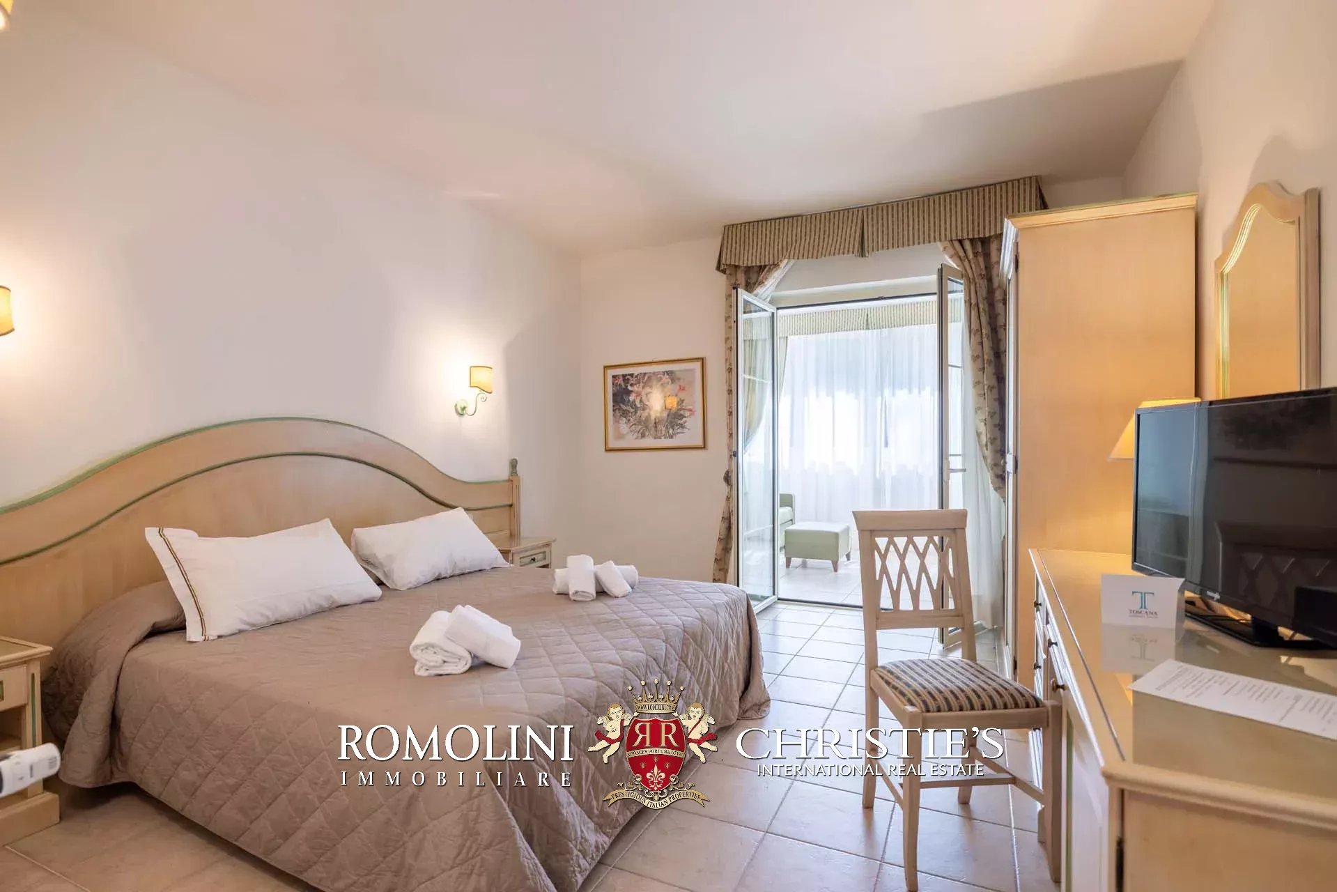 Sulle colline tra Val d’Orcia e Maremma, in posizione molto panoramica, resort con sorgente termale in vendita. La proprietà (oltre 7.500 m²) include 108 camere per gli ospiti, centro benessere, ristorante, piscina olimpica e maneggio per cavalli, ed è circondata da oltre 40.000 m² di parco alberato con aree relax. Tutto attorno, altri 18,4 ha di terreno sono coperti prevalentemente di alberi e assicurano zone ombreggiate in cui rilassarsi in estate.