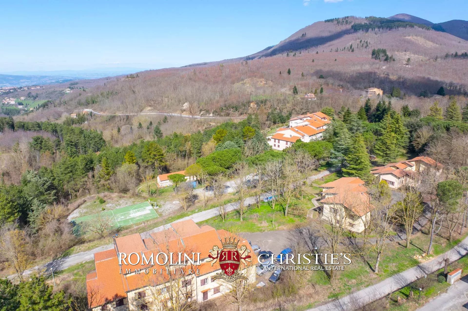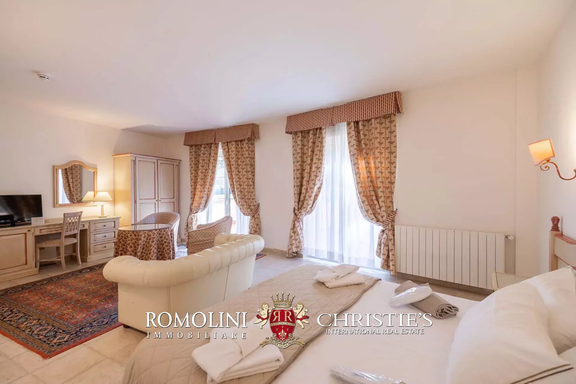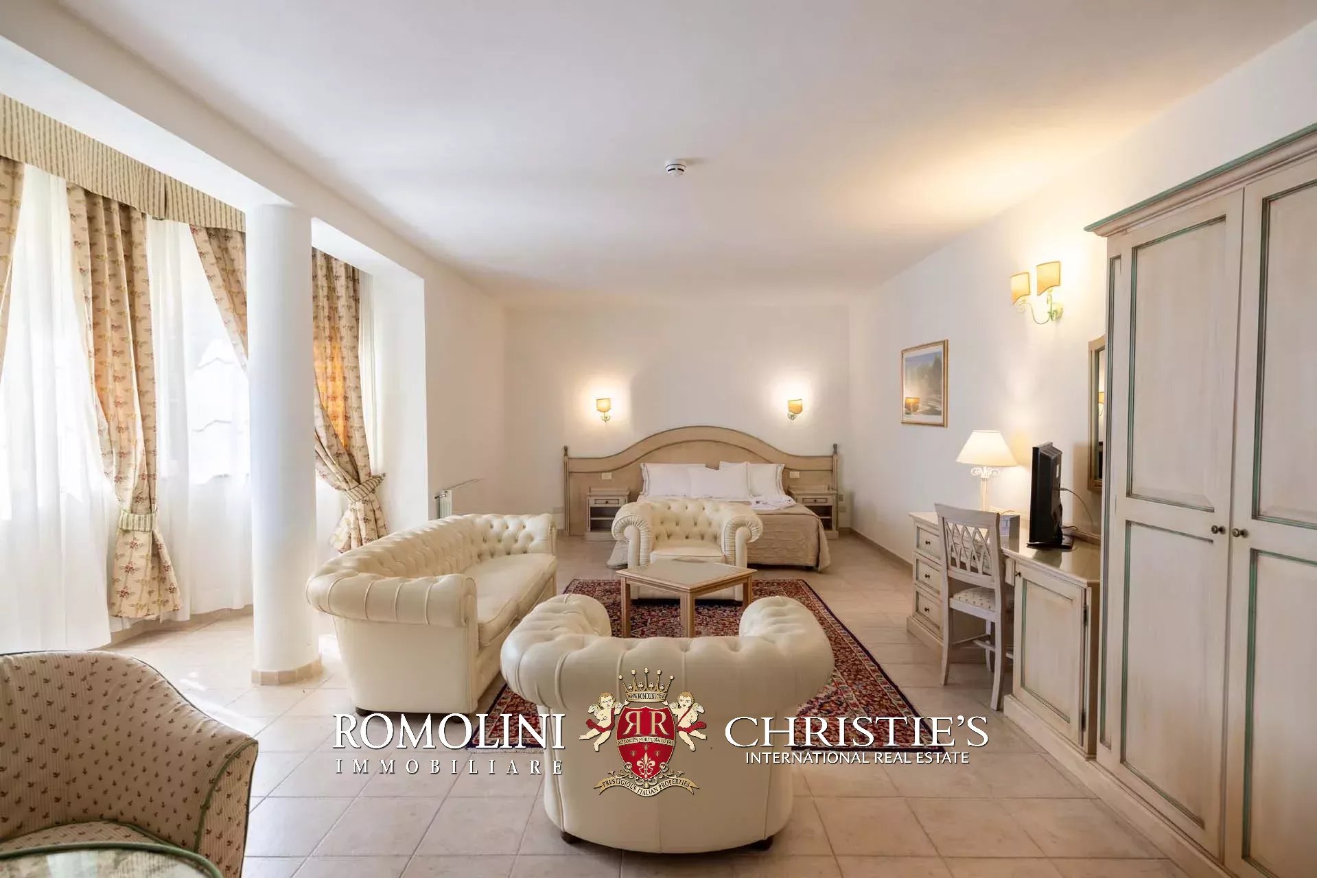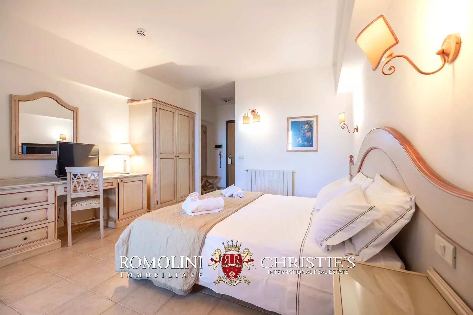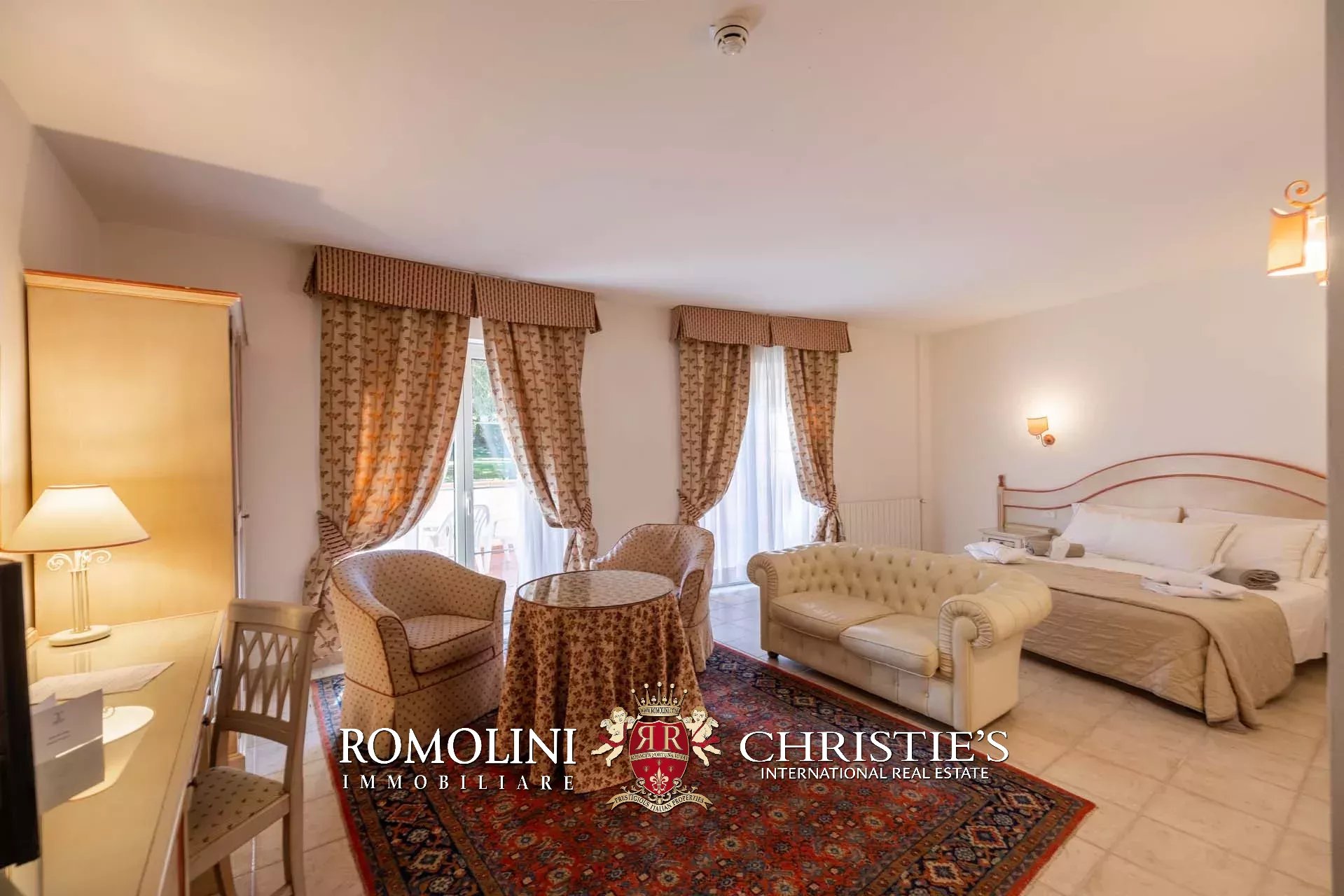 Sulle colline tra Val d’Orcia e Maremma, in posizione molto panoramica, resort con sorgente termale in vendita. La proprietà (oltre 7.500 m²) include 108 camere per gli ospiti, centro benessere, ristorante, piscina olimpica e maneggio per cavalli, ed è circondata da oltre 40.000 m² di parco alberato con aree relax. Tutto attorno, altri 18,4 ha di terreno sono coperti prevalentemente di alberi e assicurano zone ombreggiate in cui rilassarsi in estate.